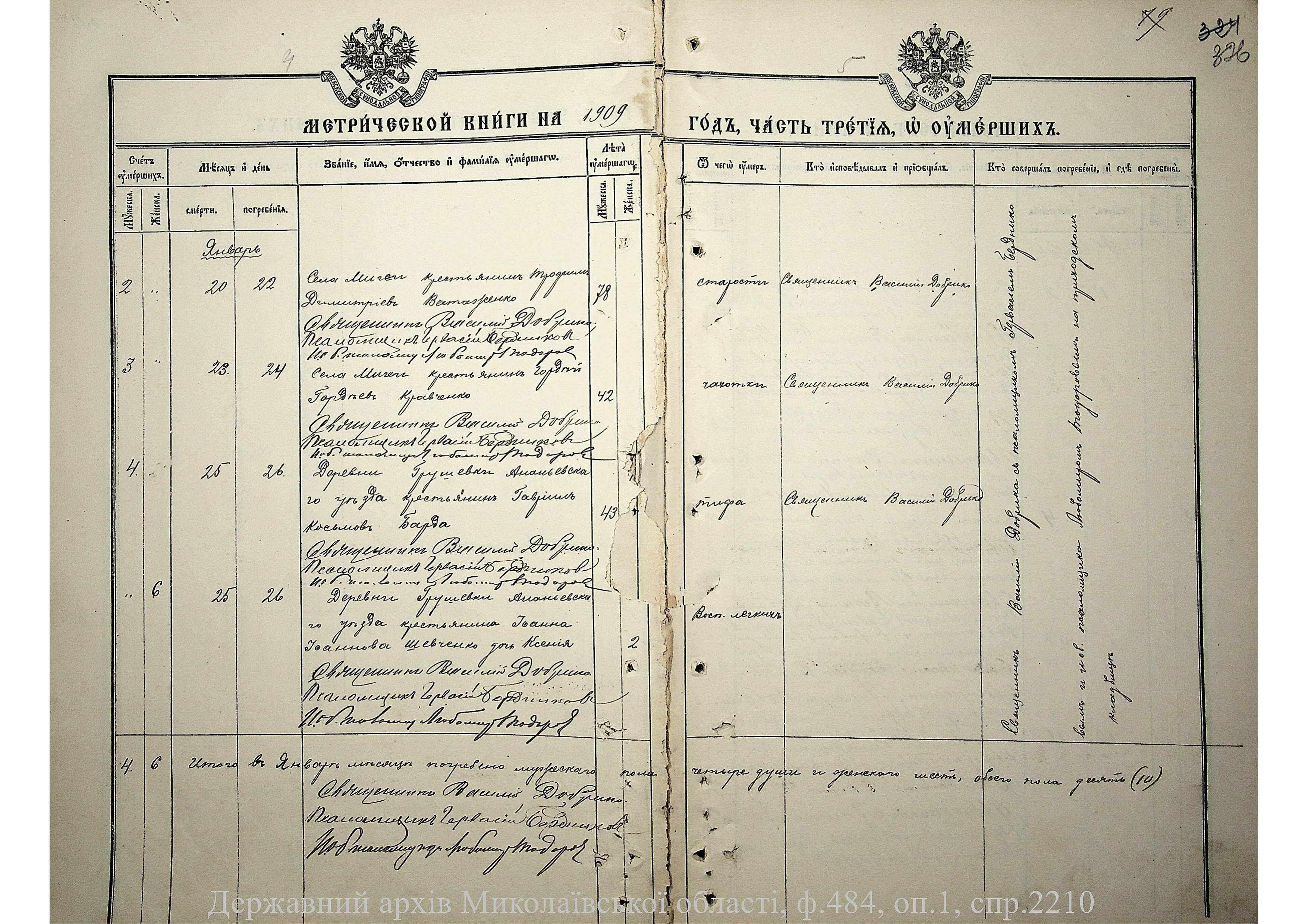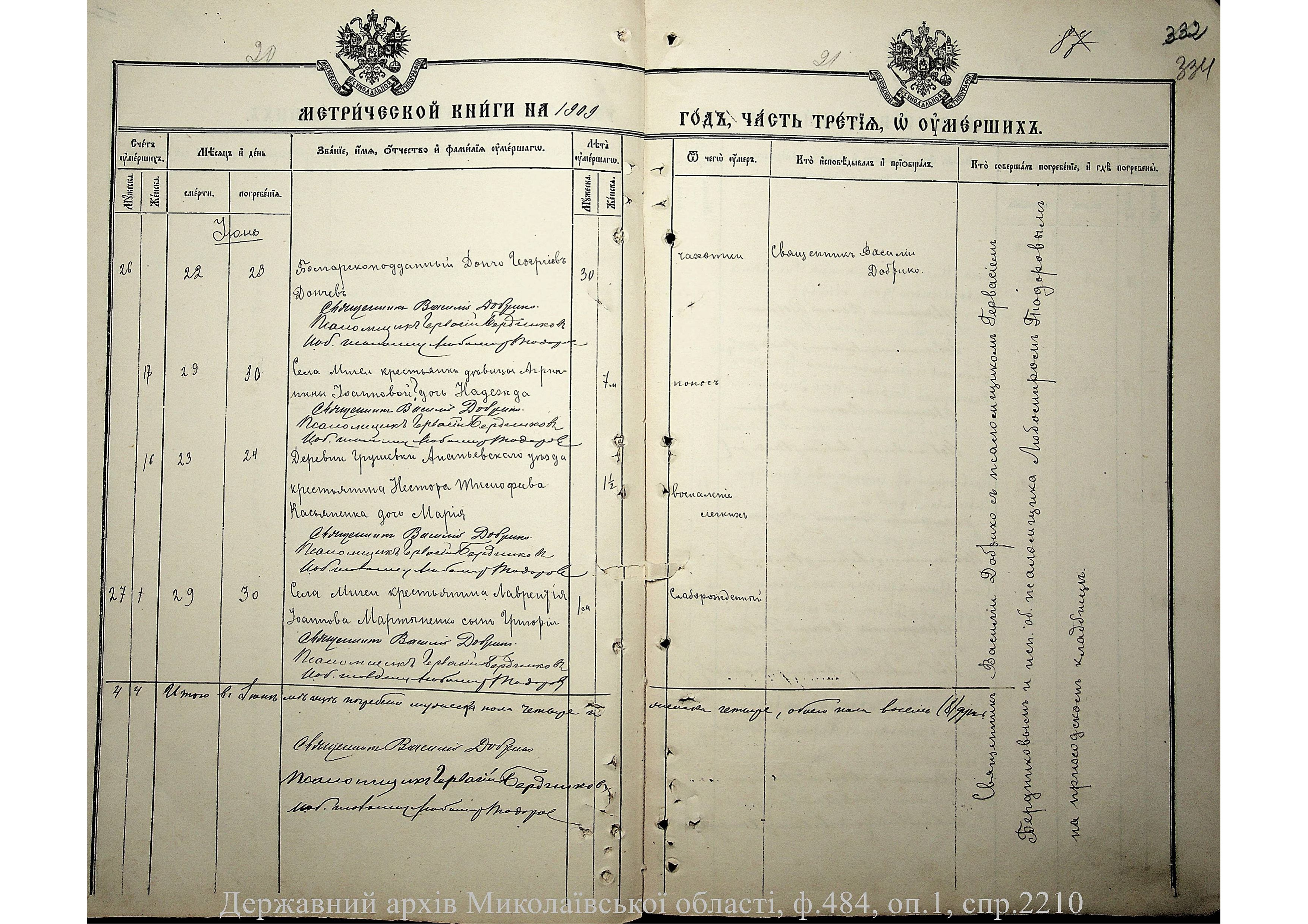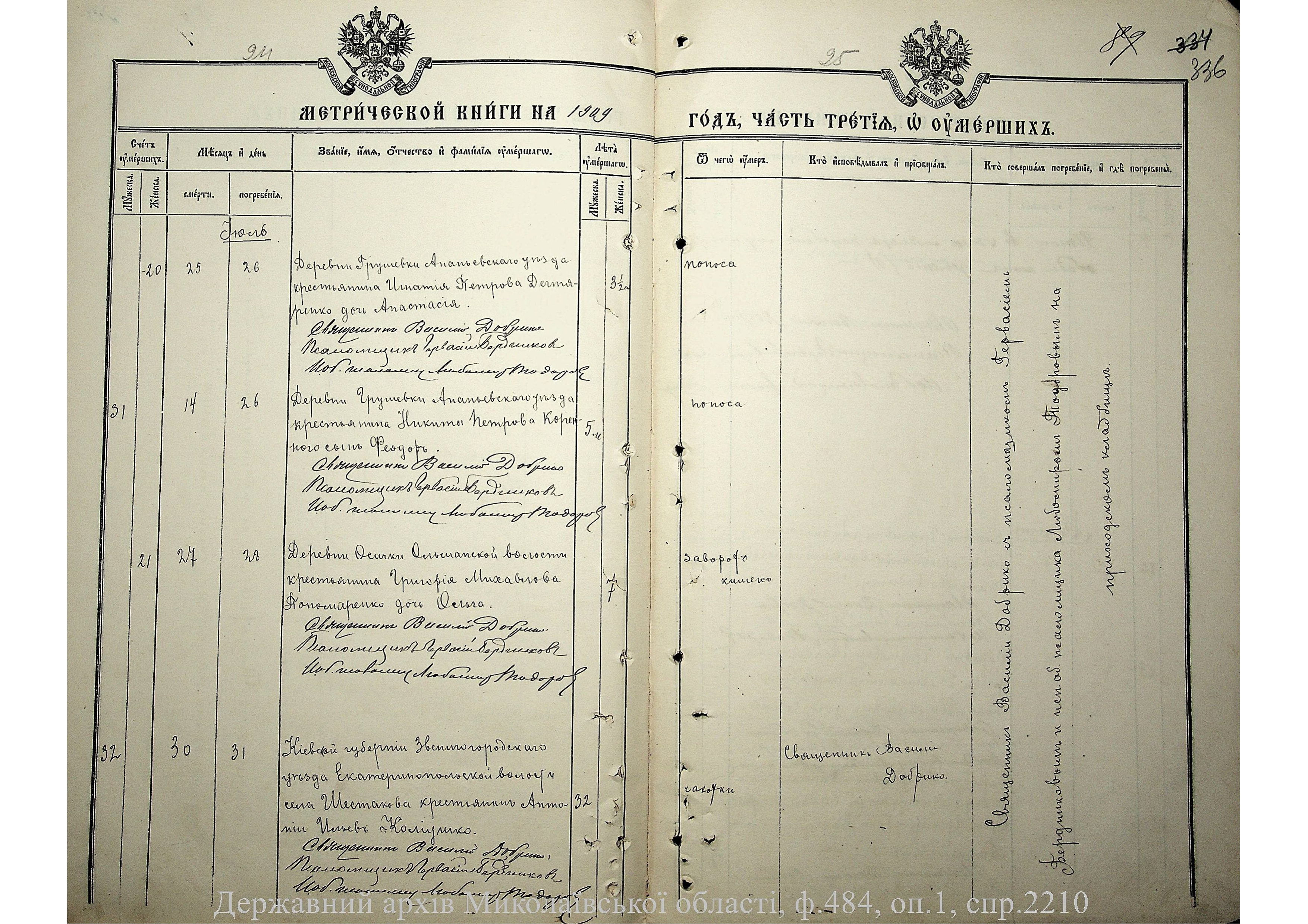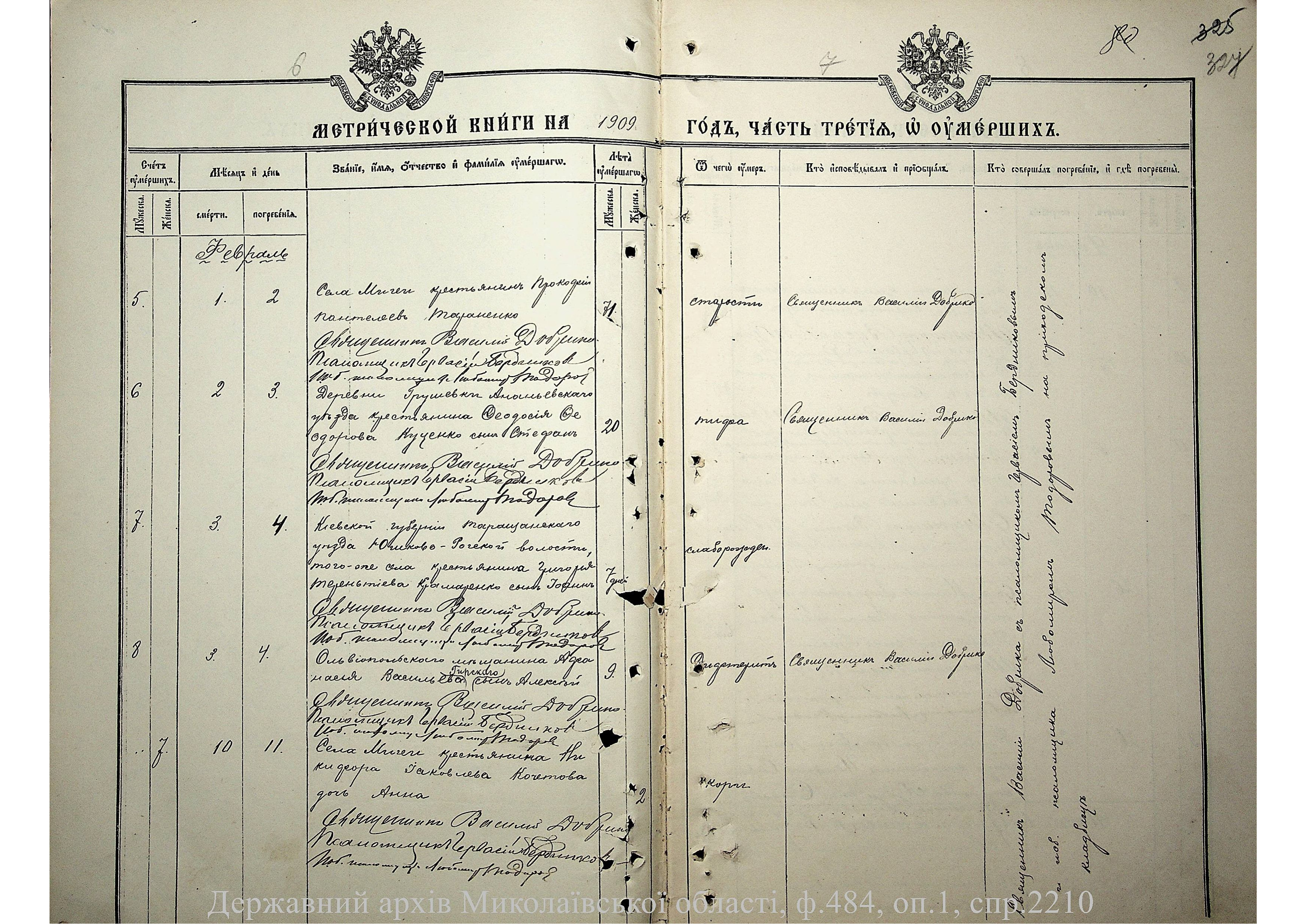 • • • • Справа № 2210 “Метрична книга: Церква Святих Петра і Павла, с. Мигія, Єлисаветградський повіт, Херсонська губернія: про народжених, одружених та померлих”
