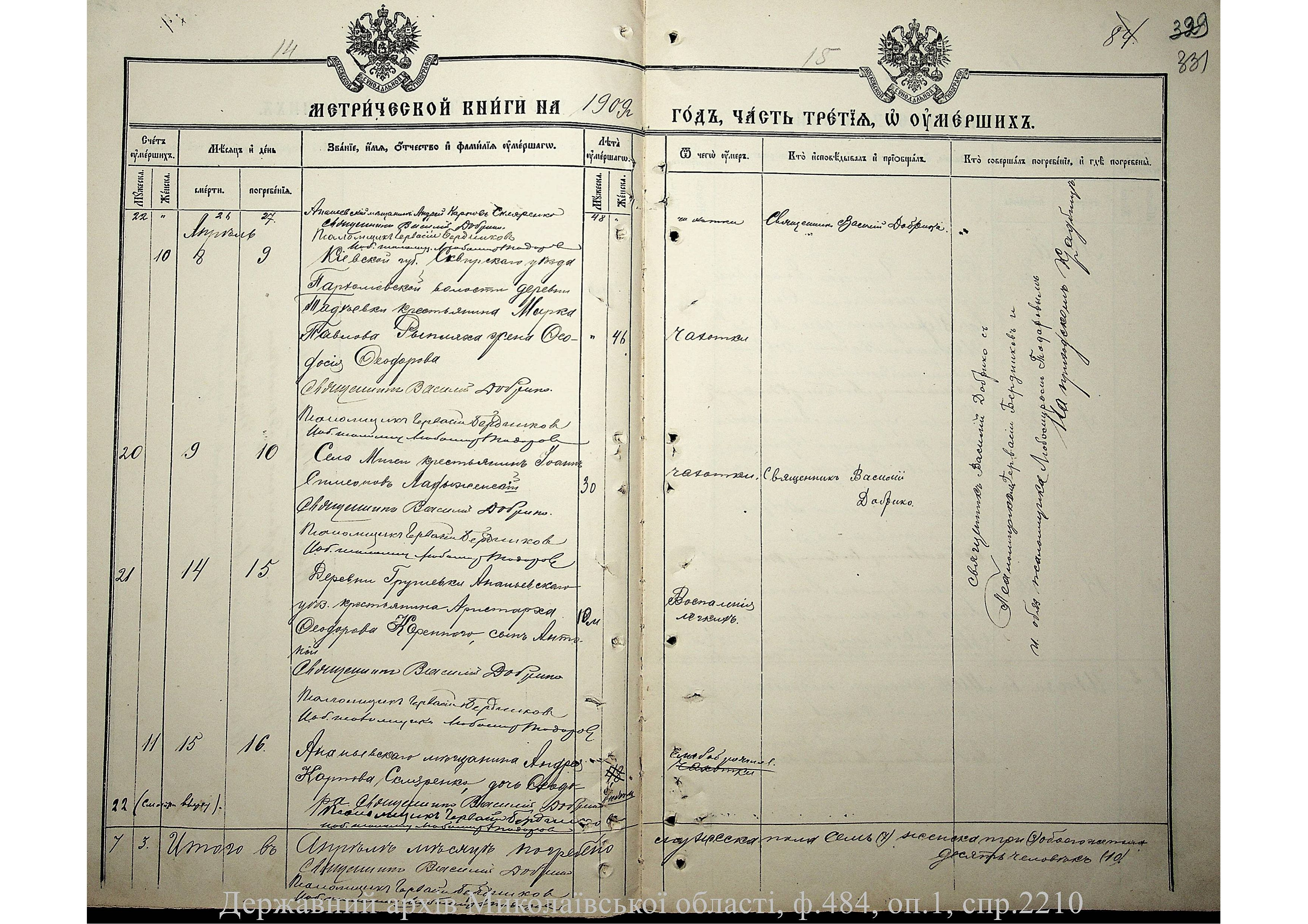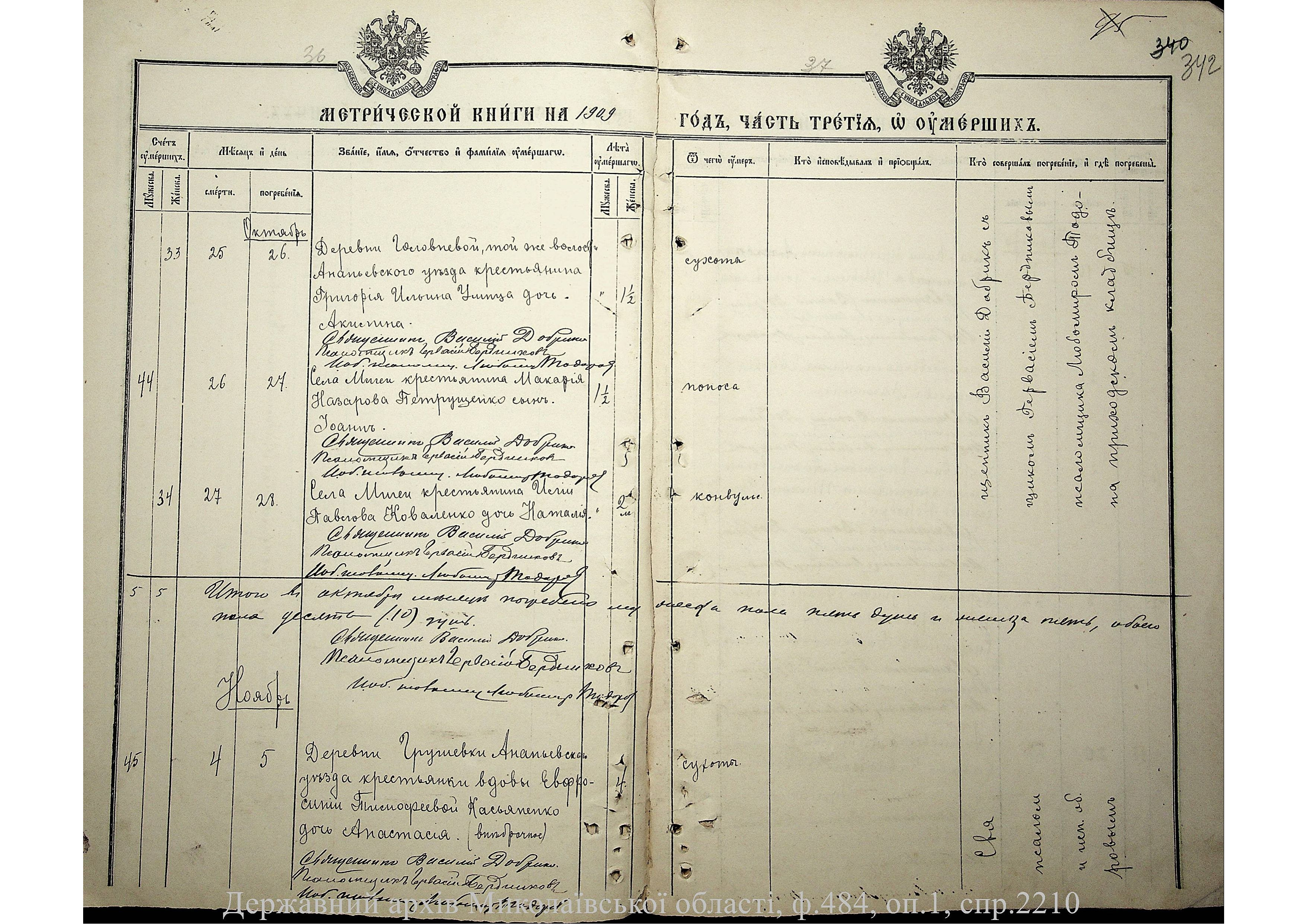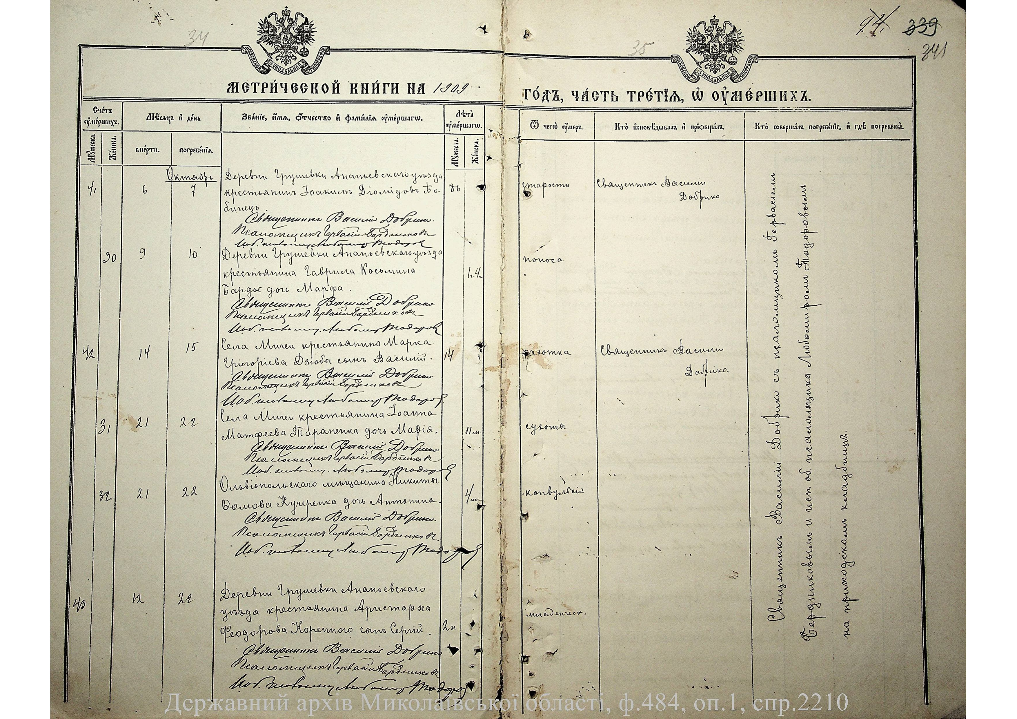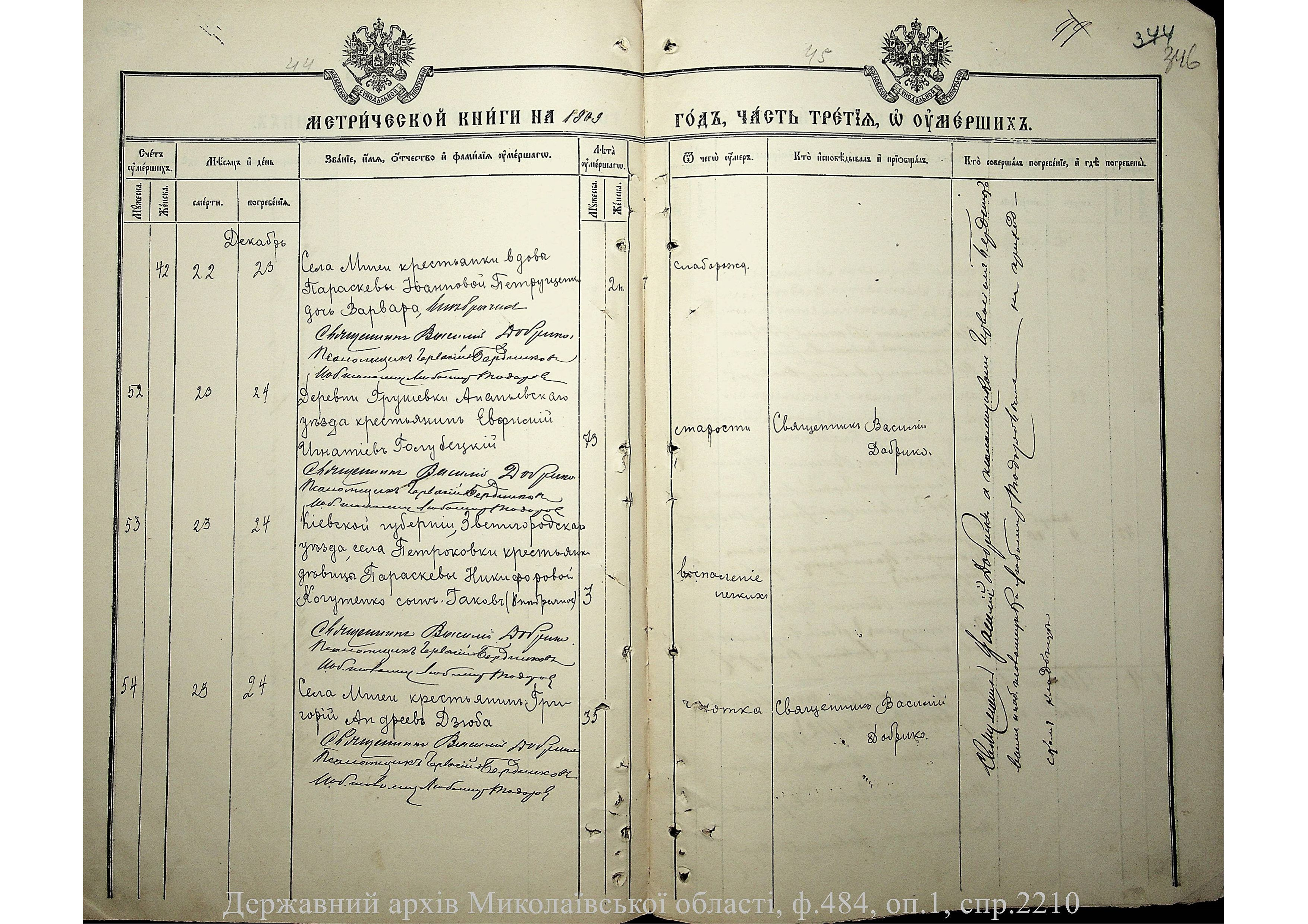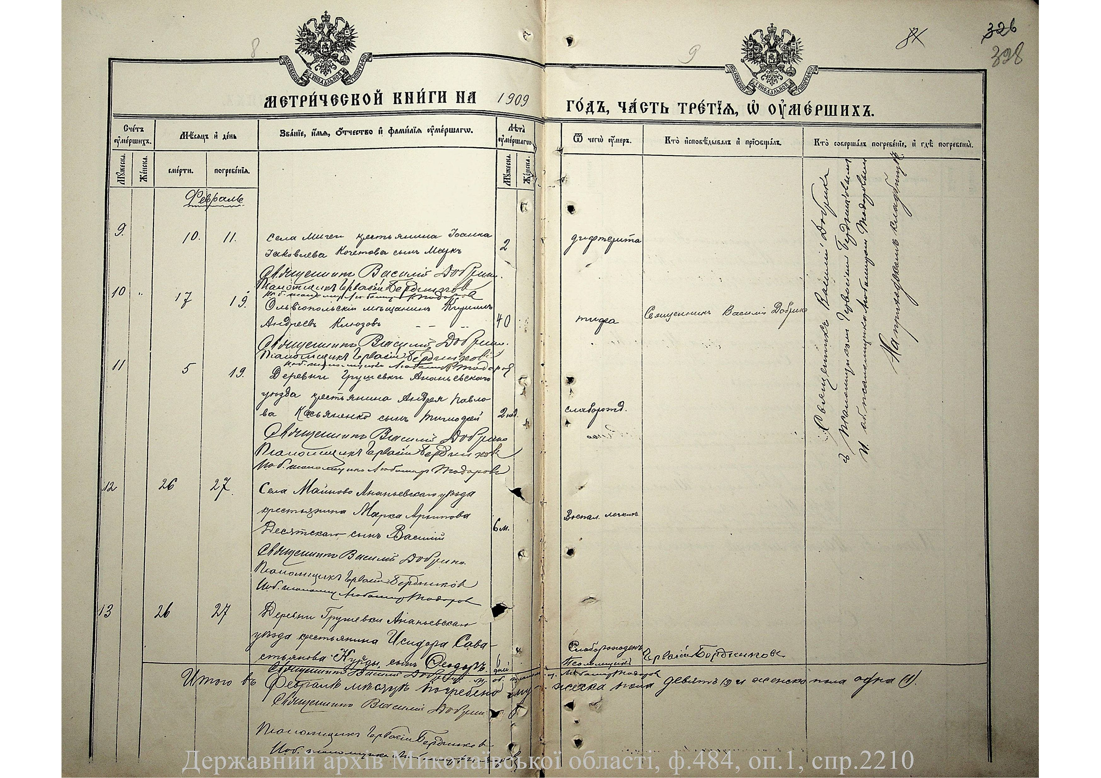 • • • • Справа № 2210 “Метрична книга: Церква Святих Петра і Павла, с. Мигія, Єлисаветградський повіт, Херсонська губернія: про народжених, одружених та померлих”