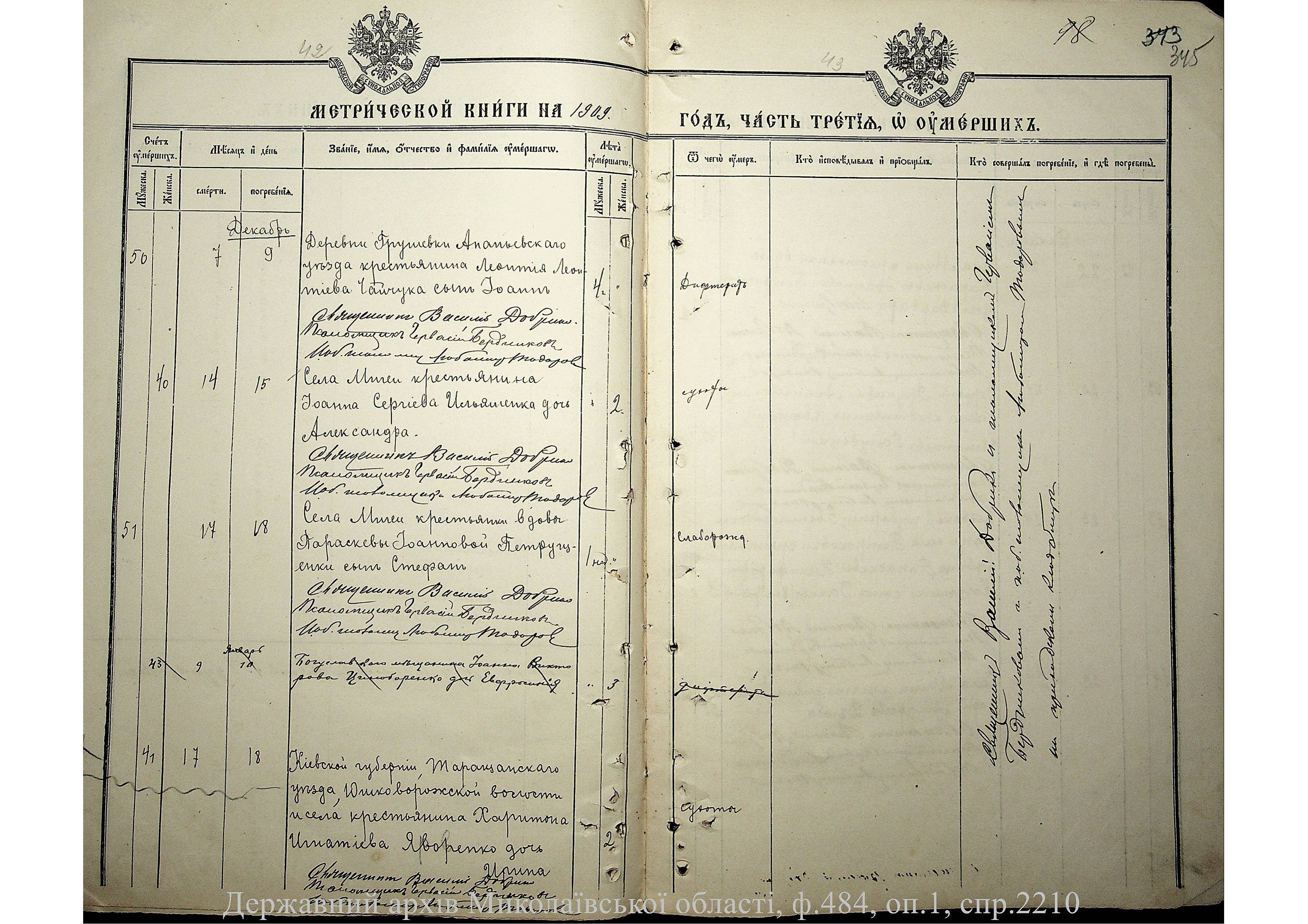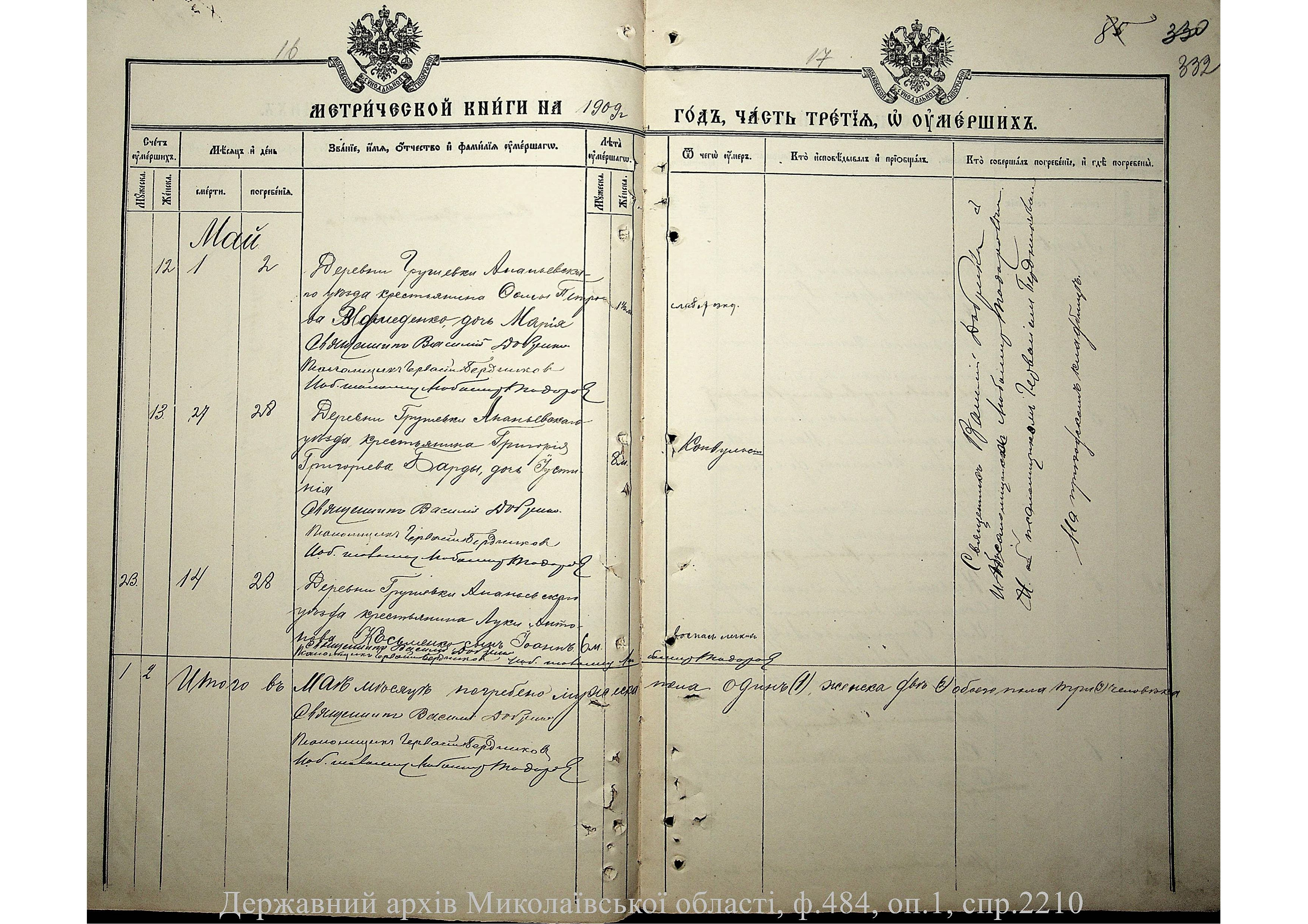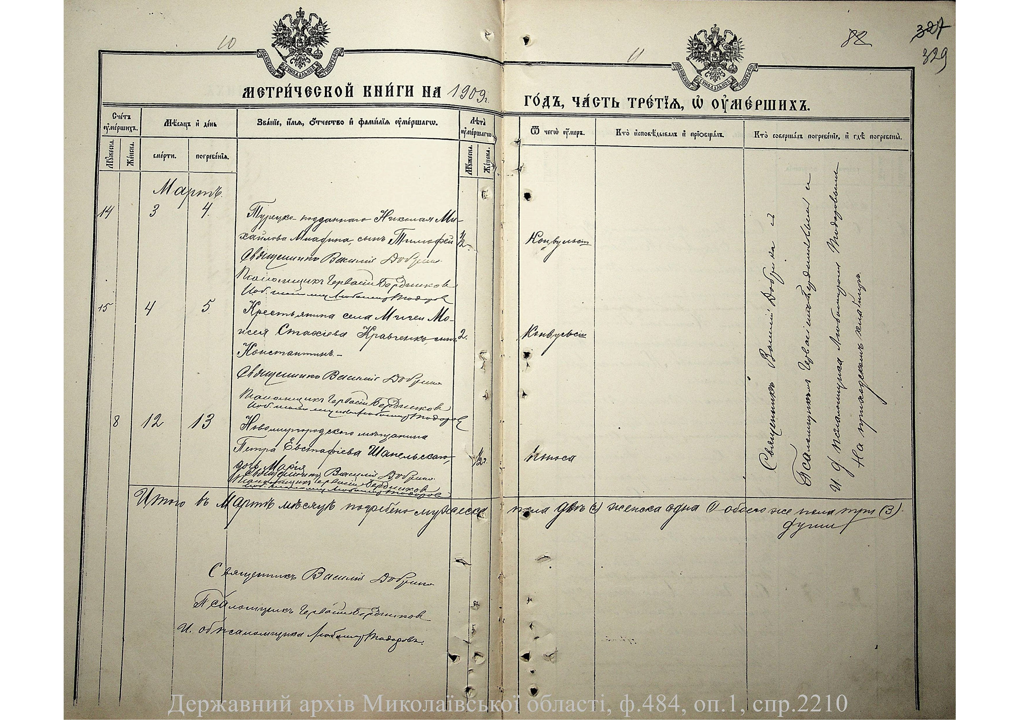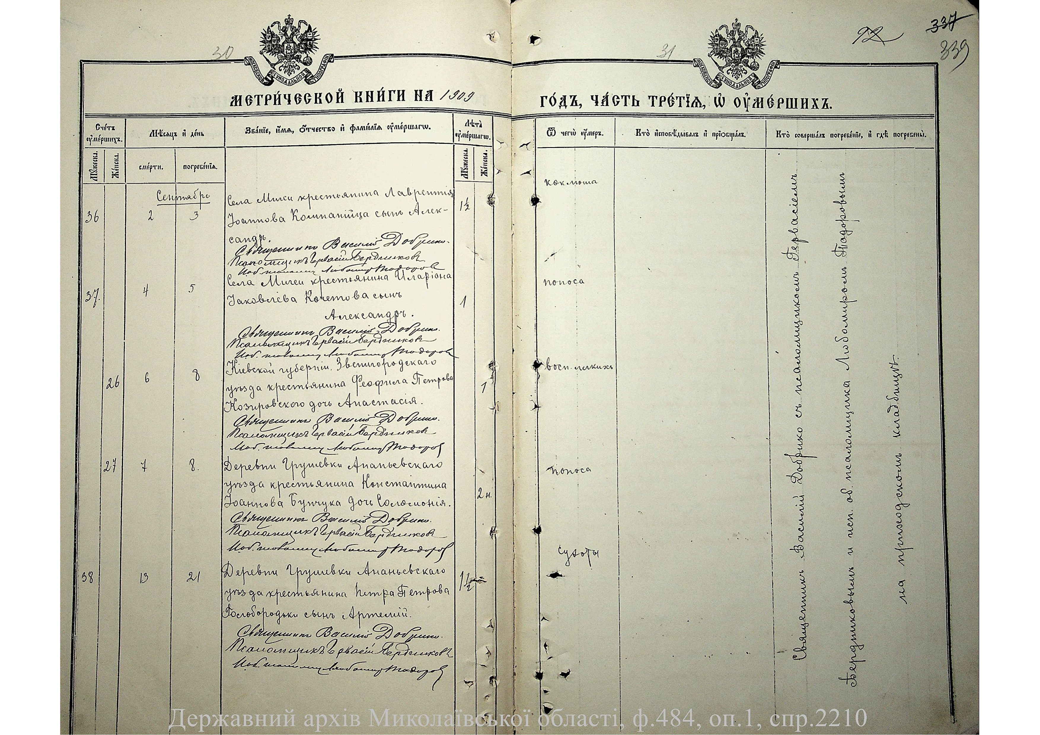 • • • • Справа № 2210 “Метрична книга: Церква Святих Петра і Павла, с. Мигія, Єлисаветградський повіт, Херсонська губернія: про народжених, одружених та померлих”