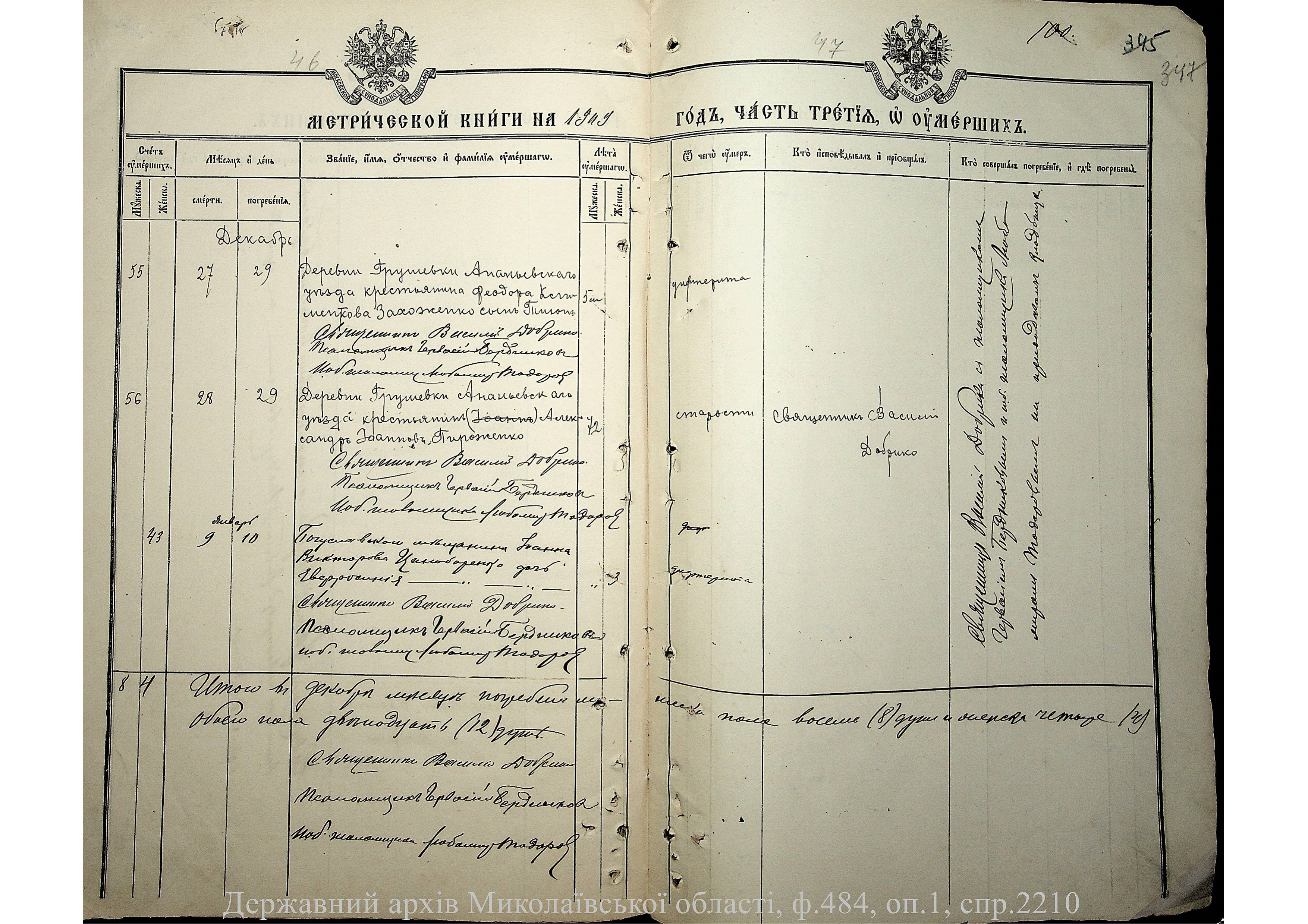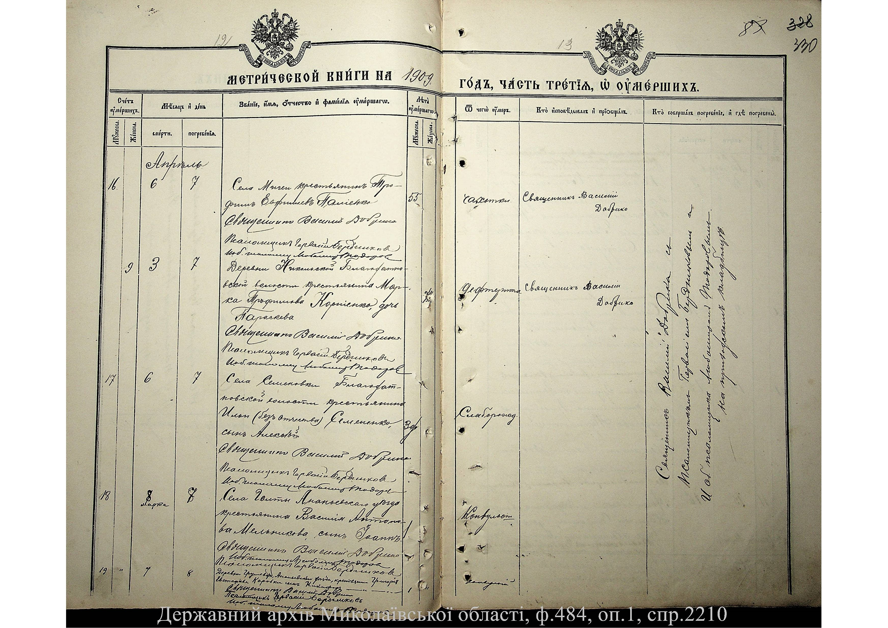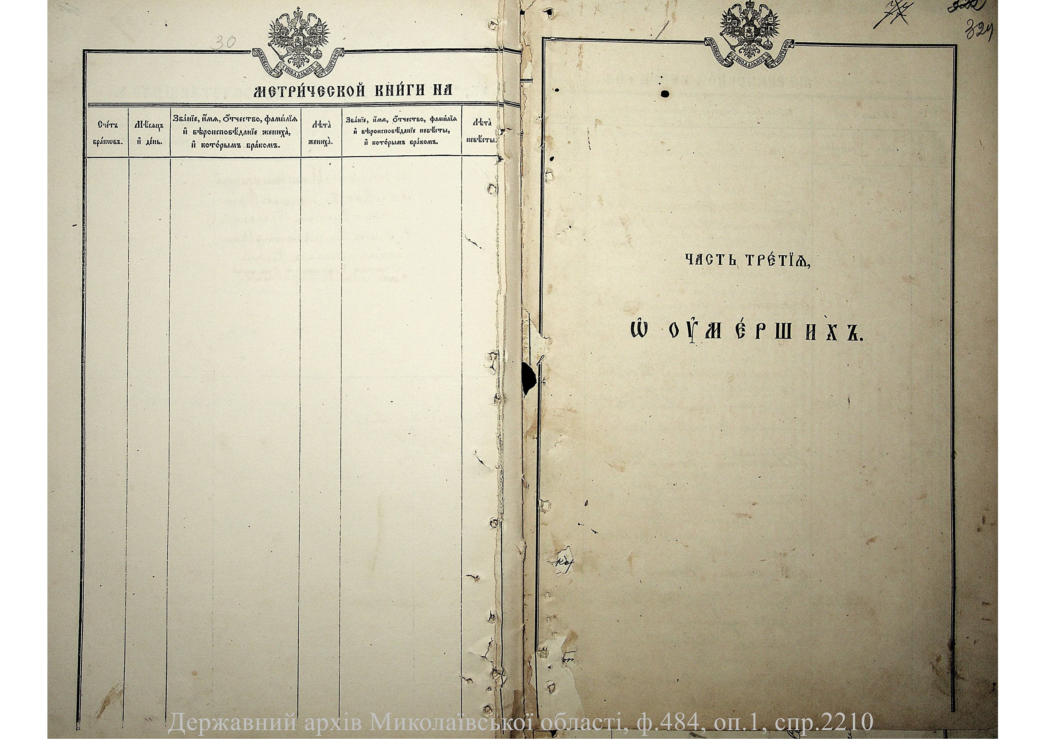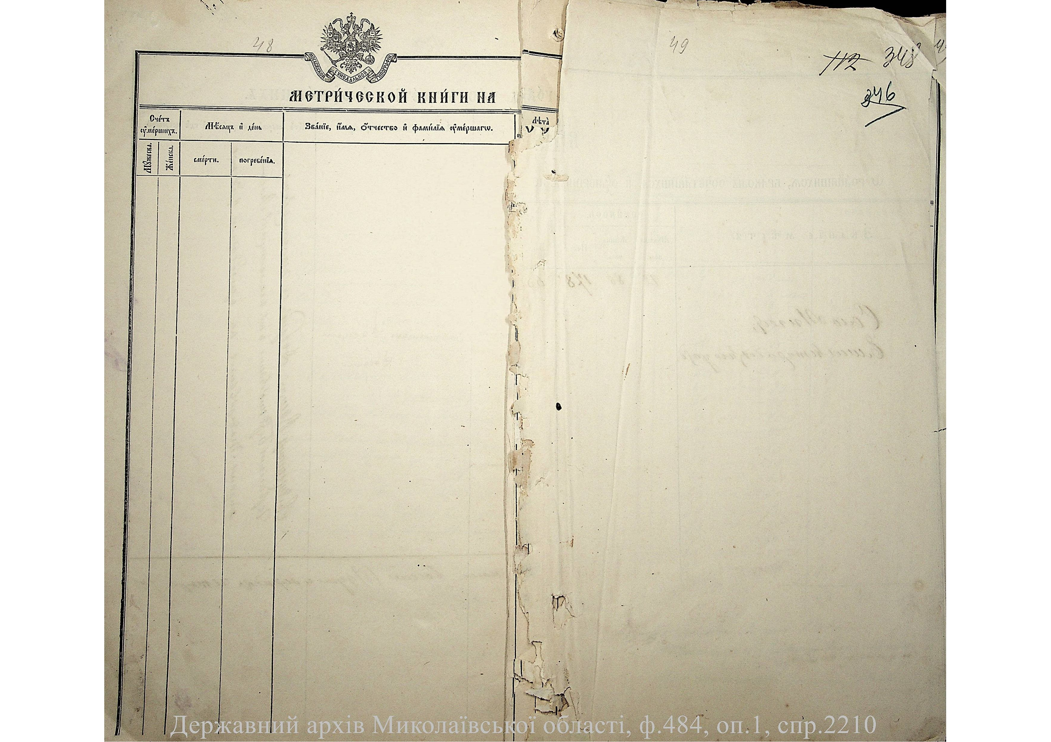 ◦ ◦ Фонд № 484 “Колекція метричних книг установ релігійних культів, що існували на території Миколаївської області”