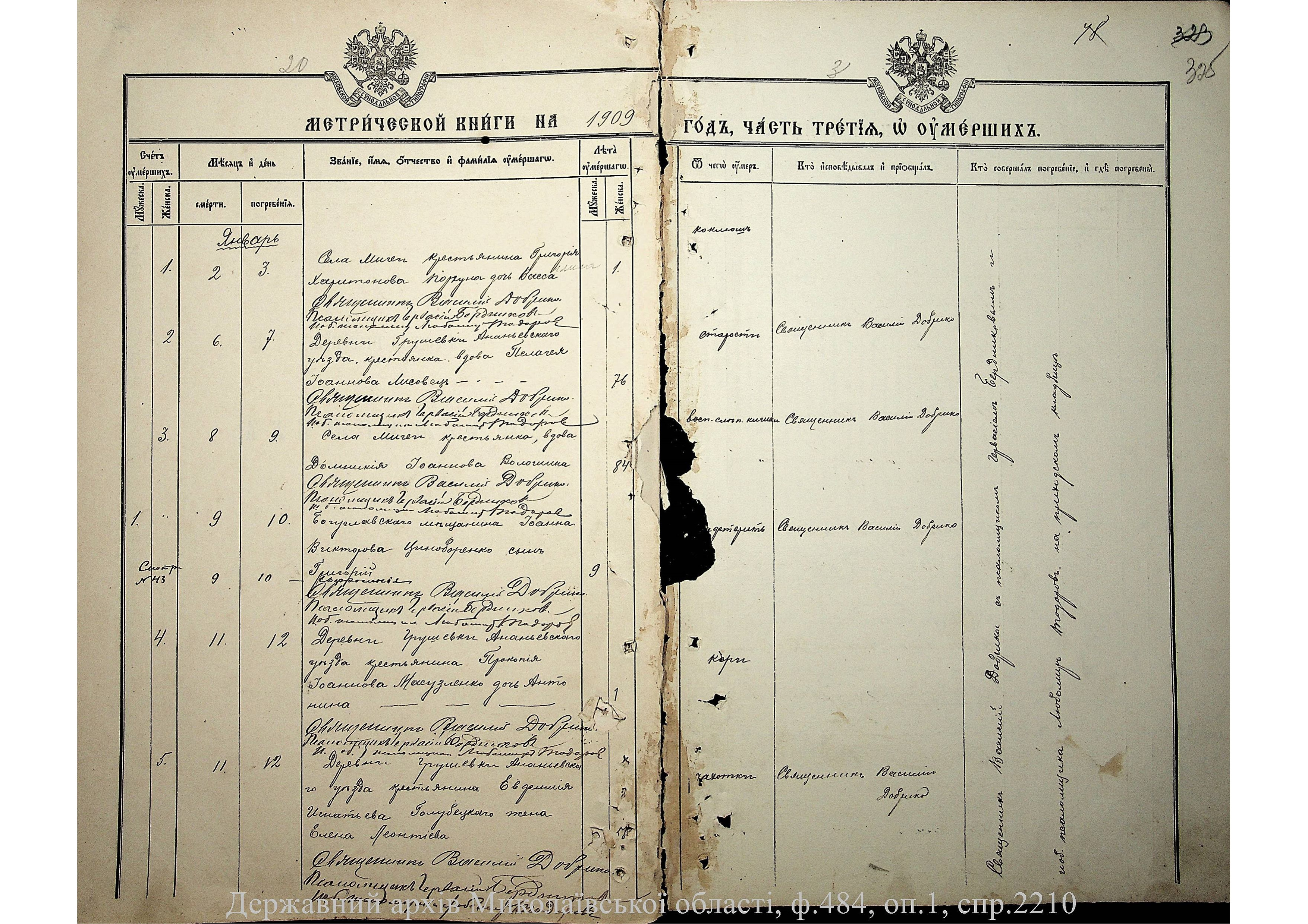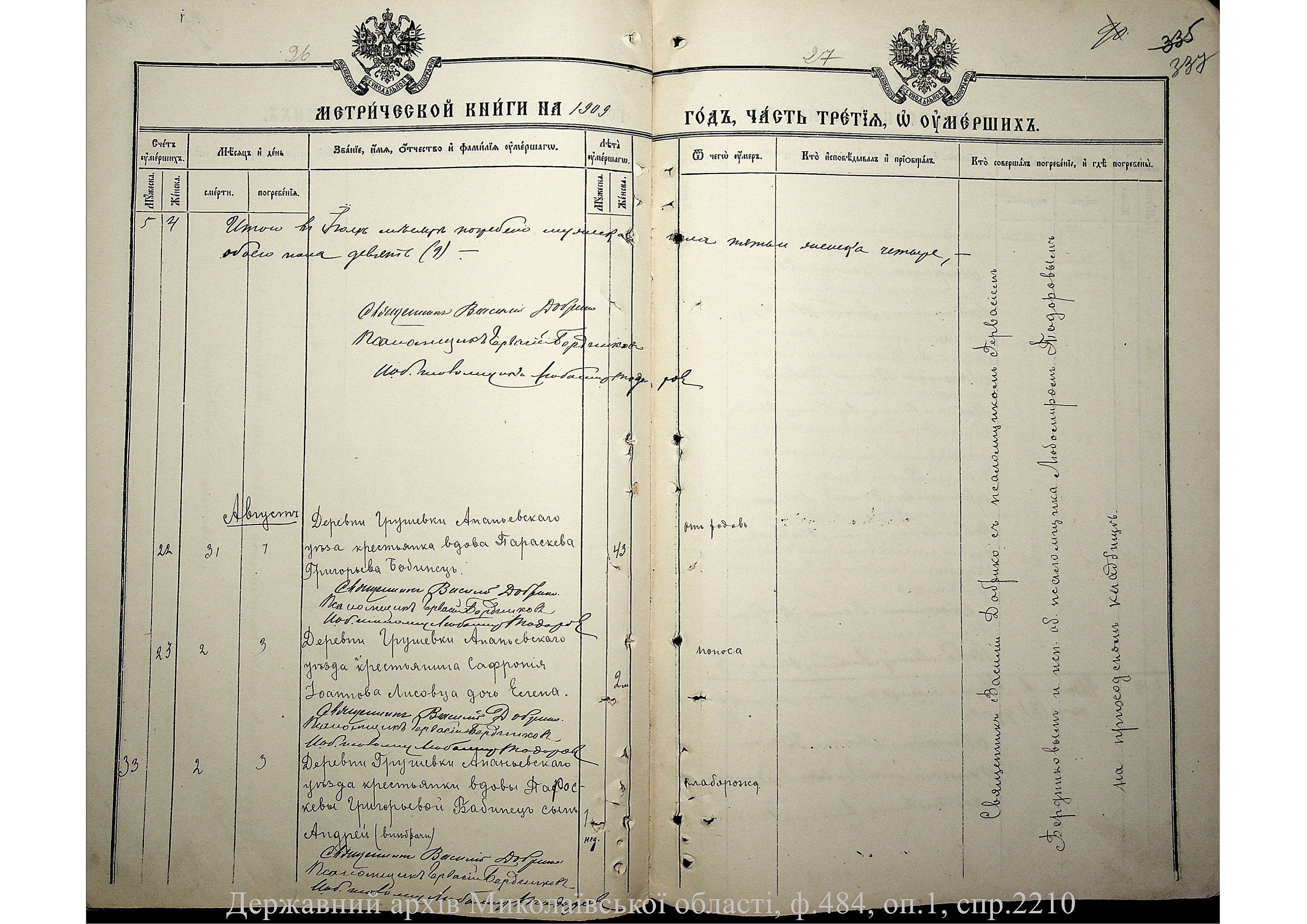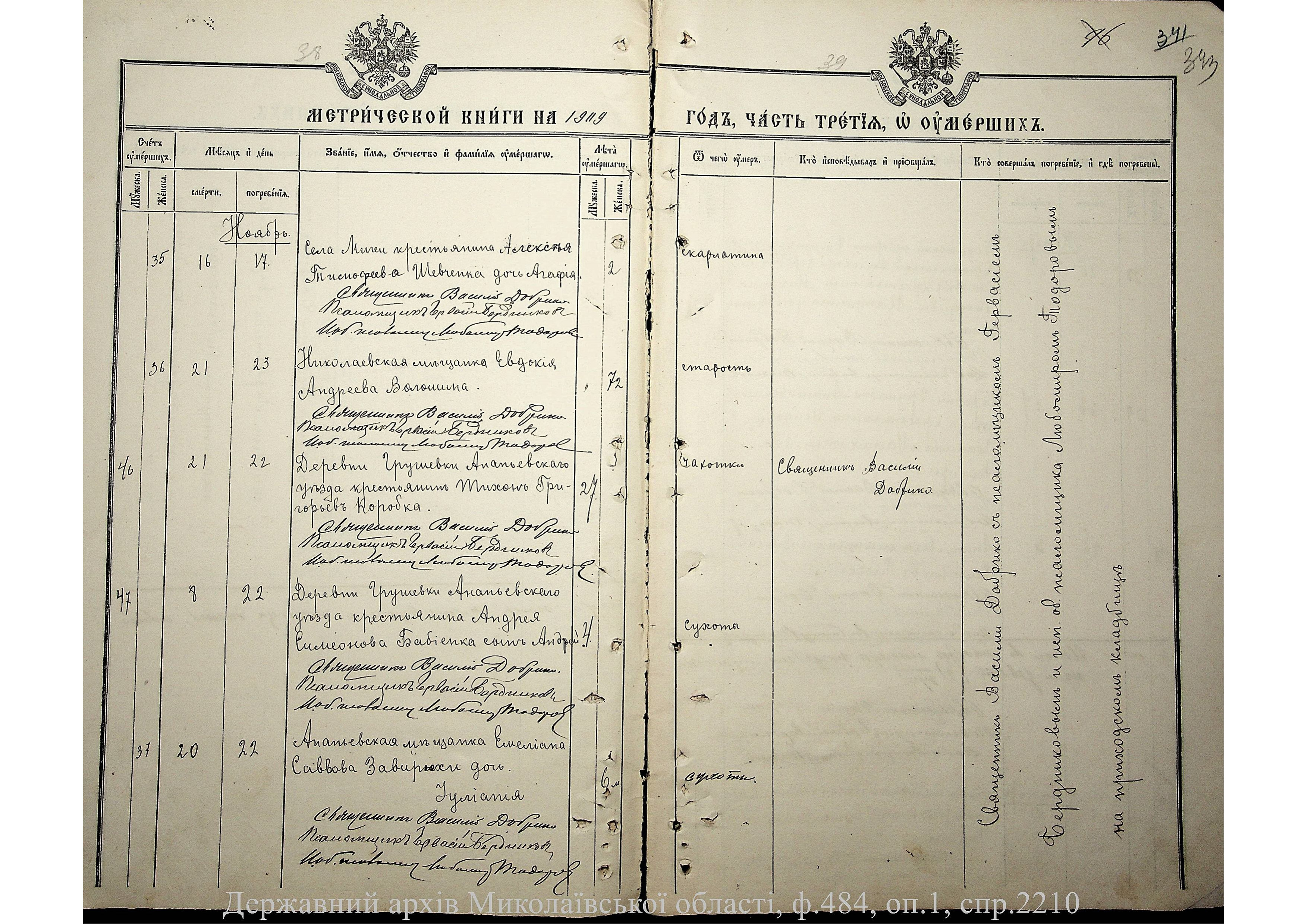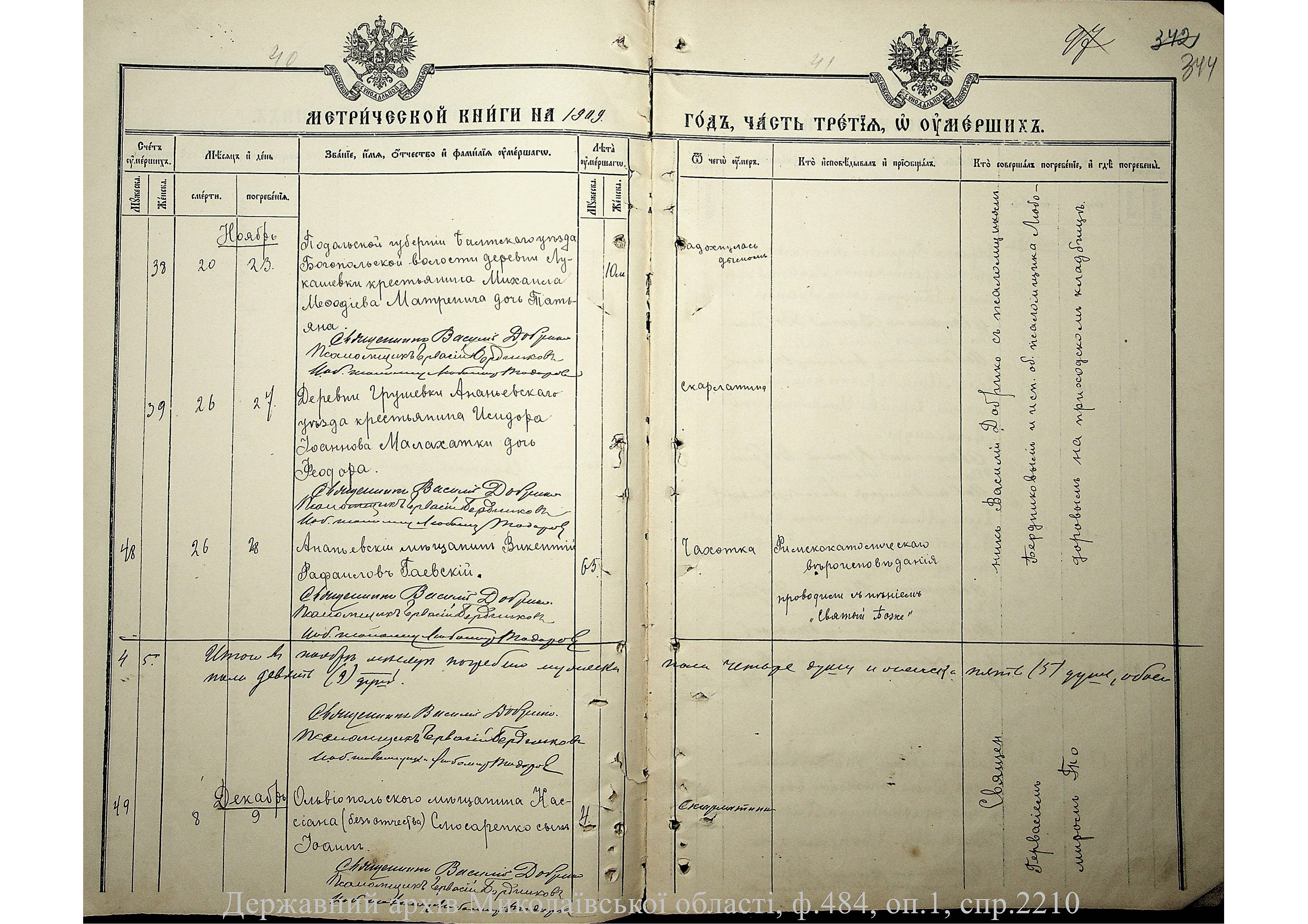 ◦ ◦ Фонд № 484 “Колекція метричних книг установ релігійних культів, що існували на території Миколаївської області”