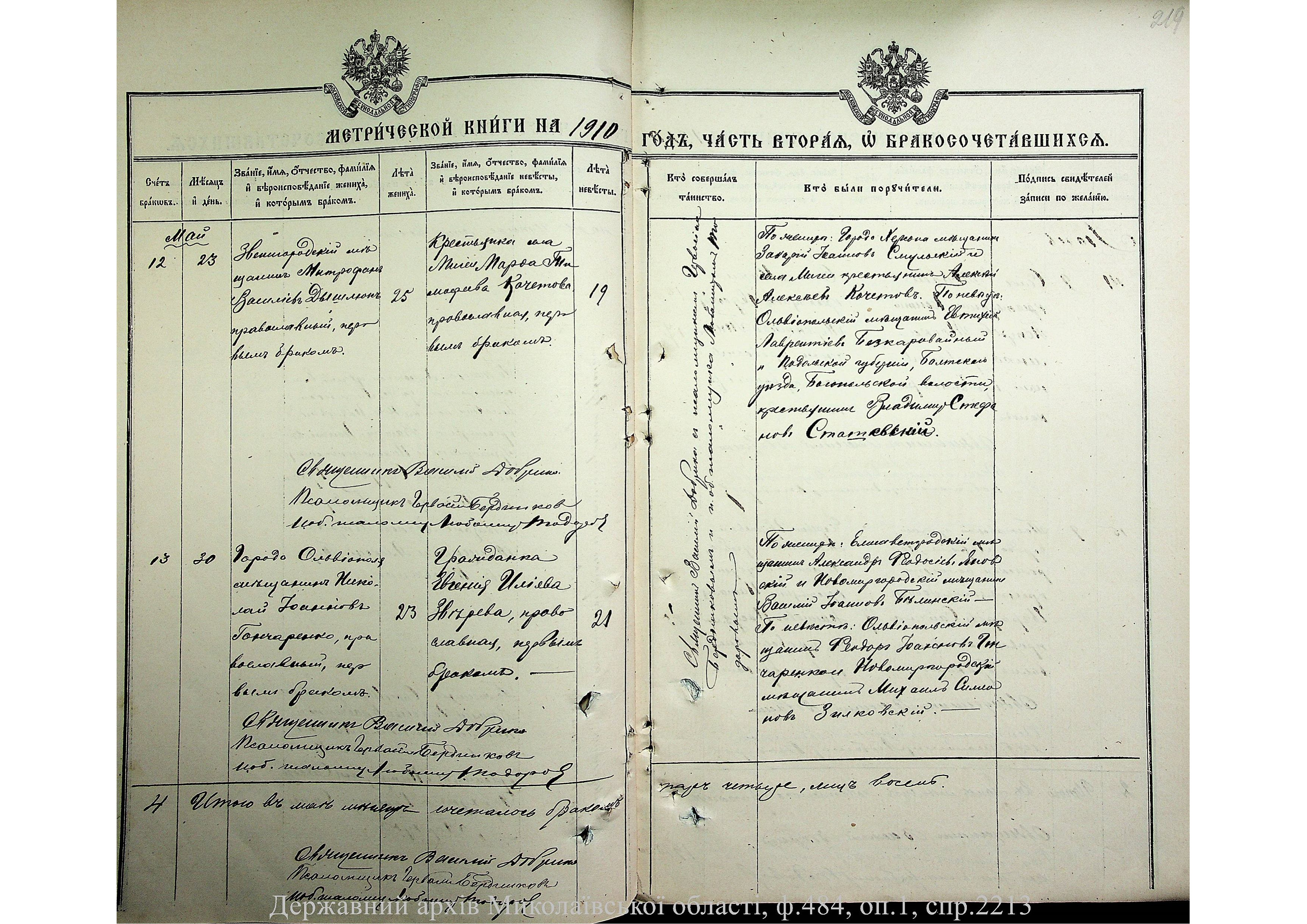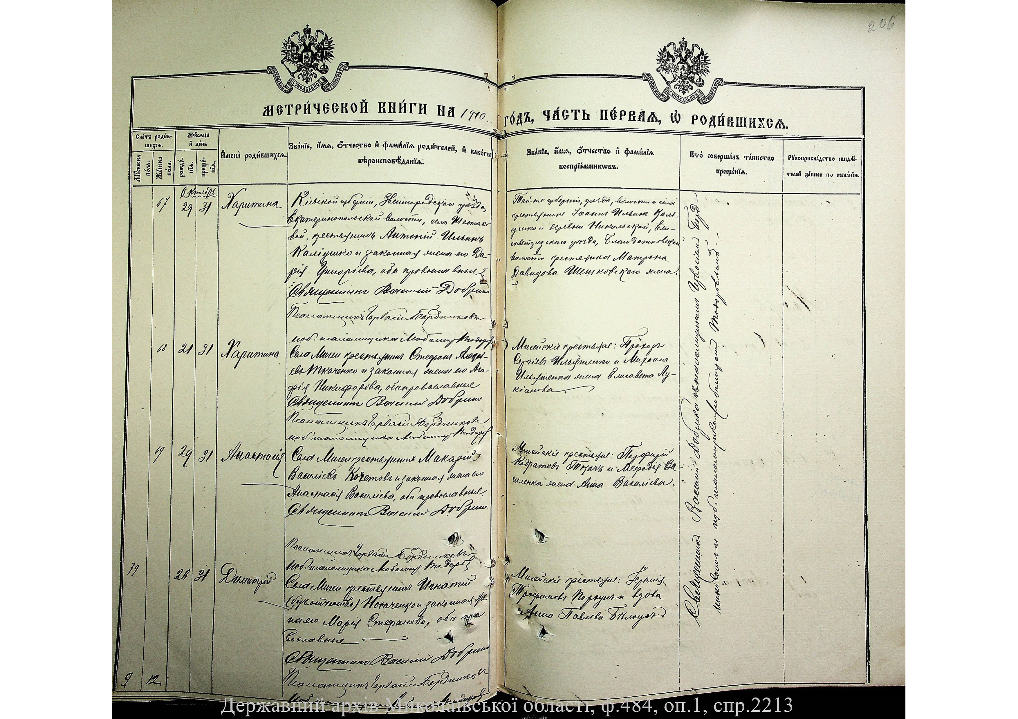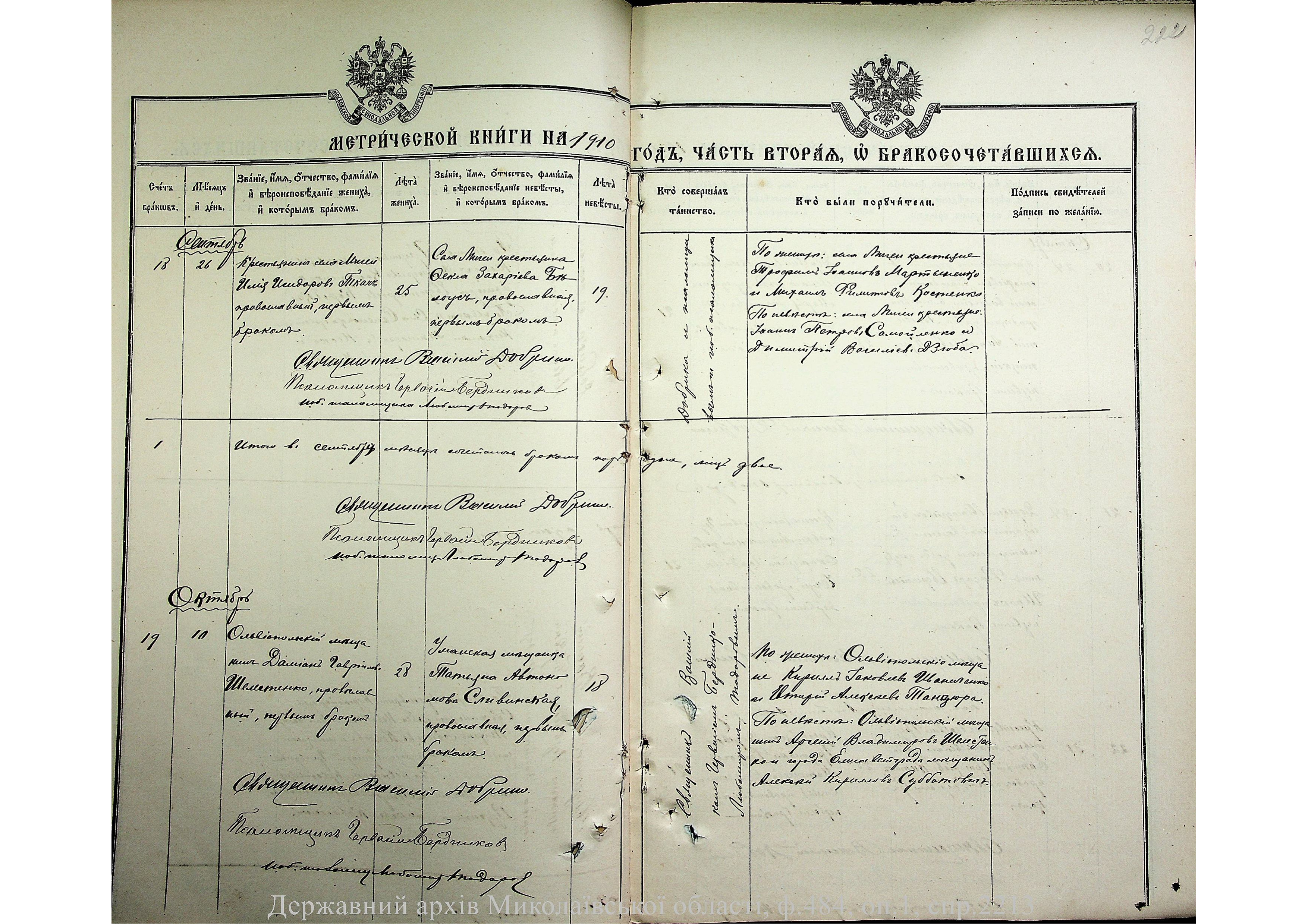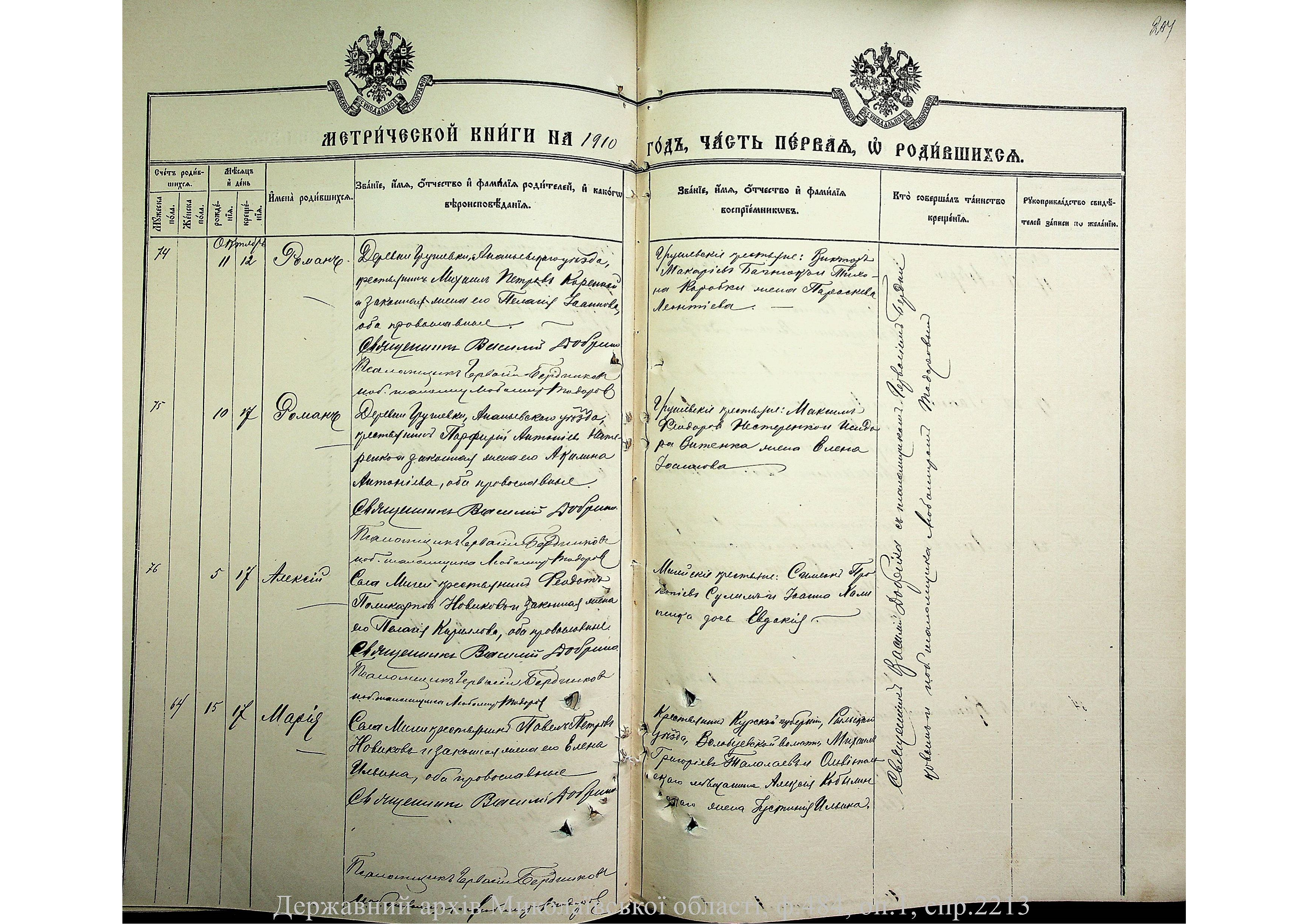 • • • • Справа № 2213 “Метрична книга: Церква Святих Петра і Павла, с. Мигія, Єлисаветградський повіт, Херсонська губернія: про народжених, одружених та померлих”