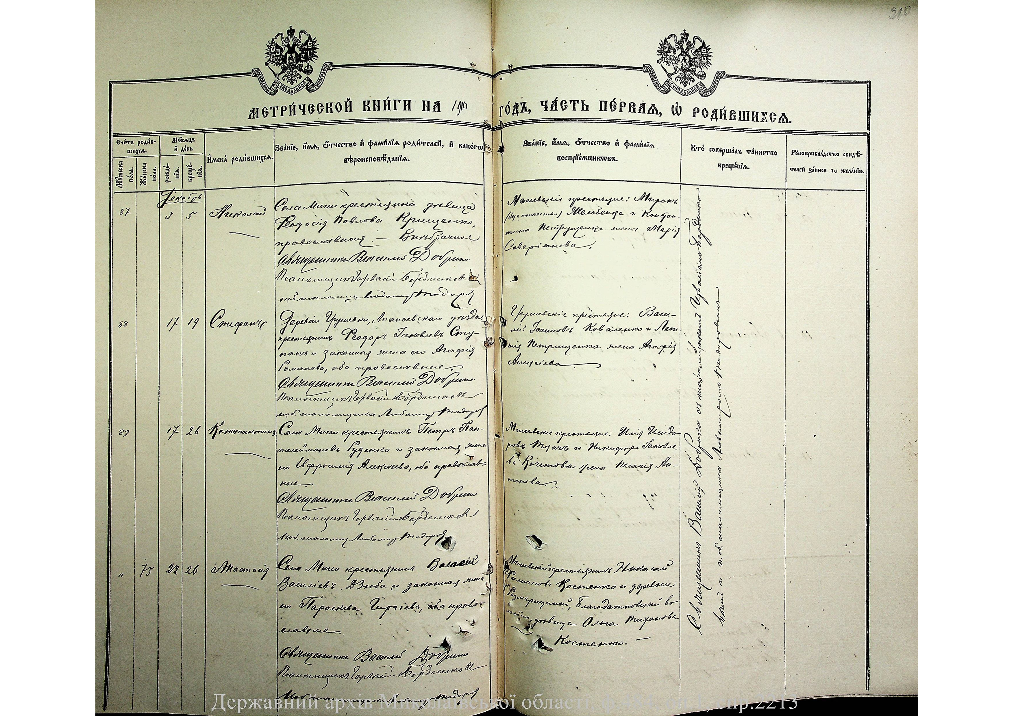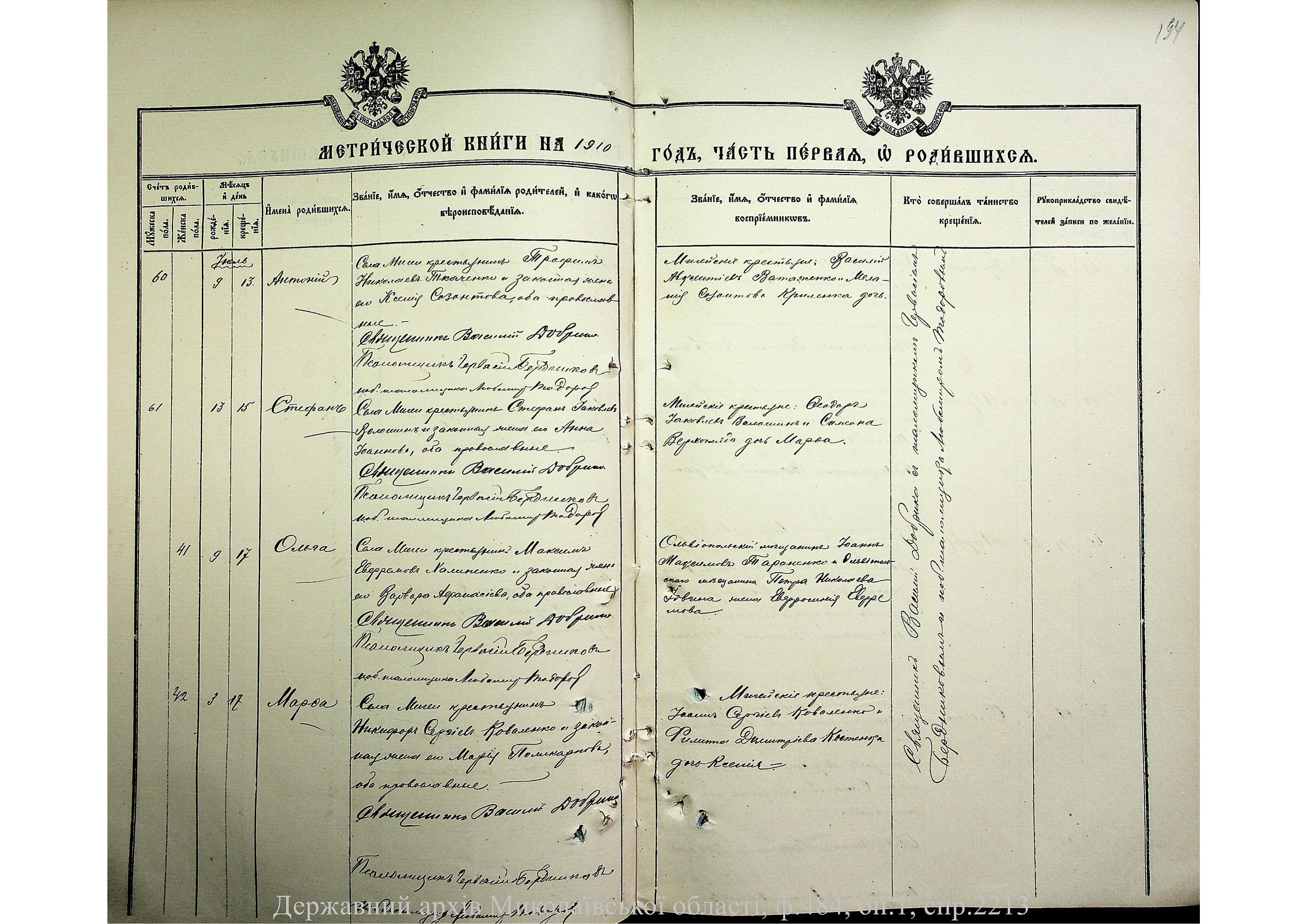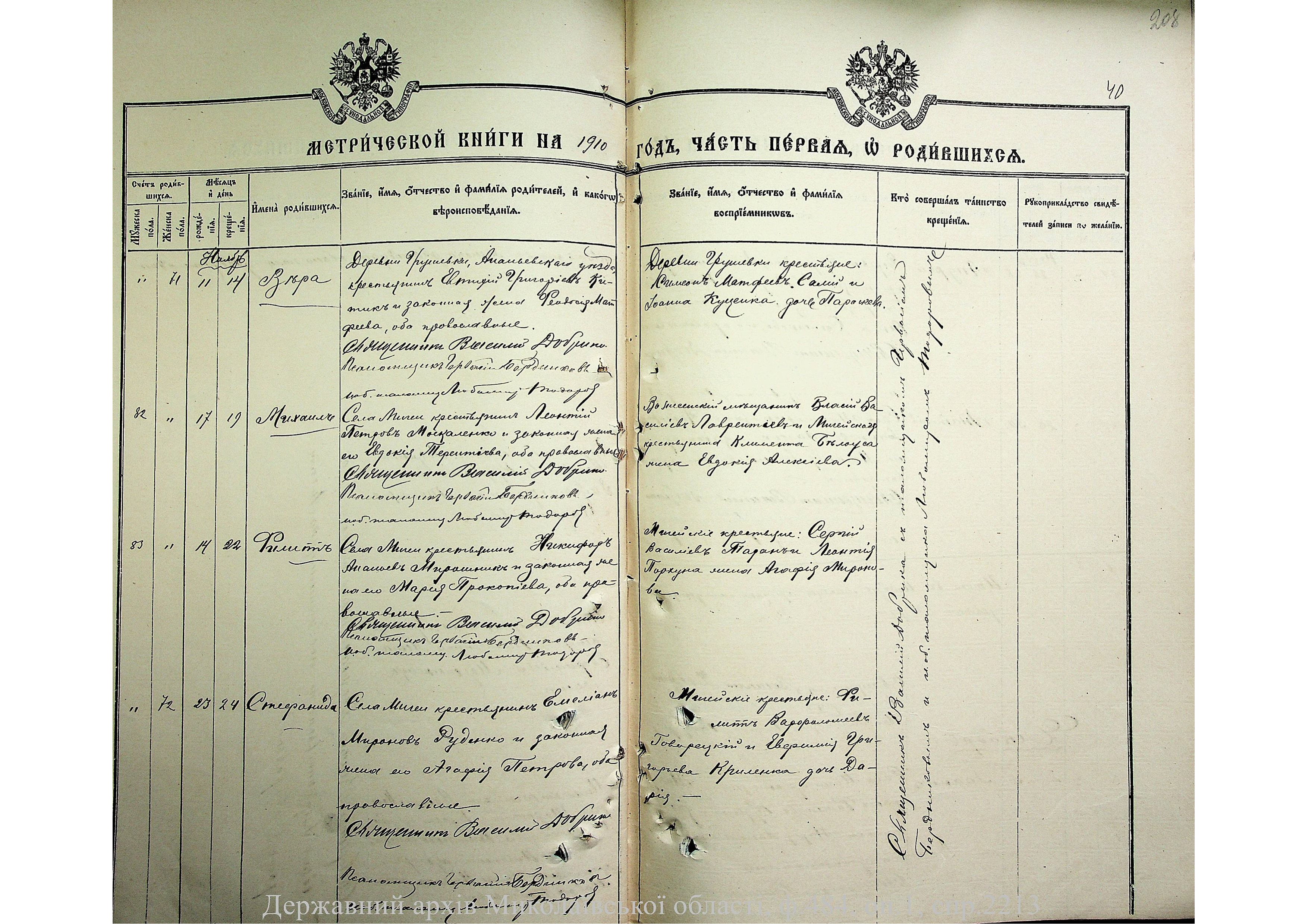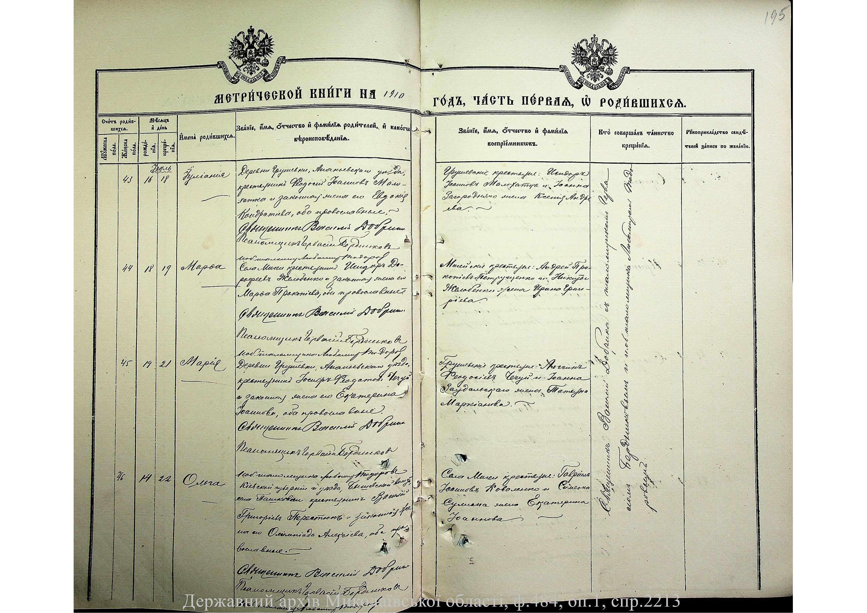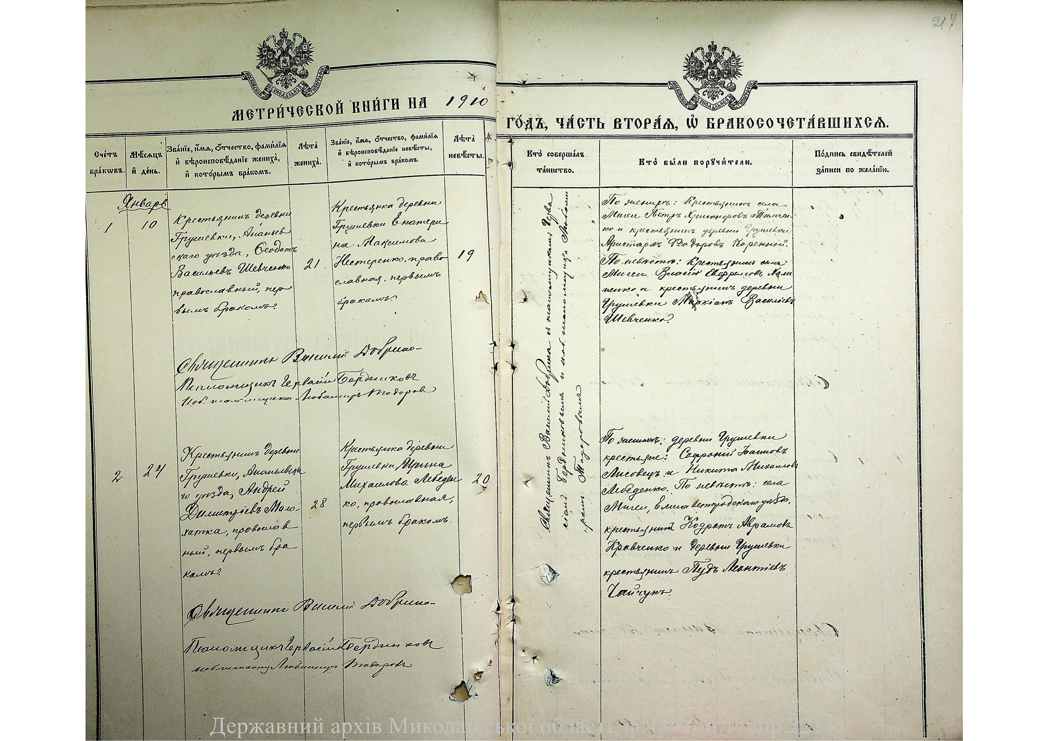 • • • • Справа № 2213 “Метрична книга: Церква Святих Петра і Павла, с. Мигія, Єлисаветградський повіт, Херсонська губернія: про народжених, одружених та померлих”