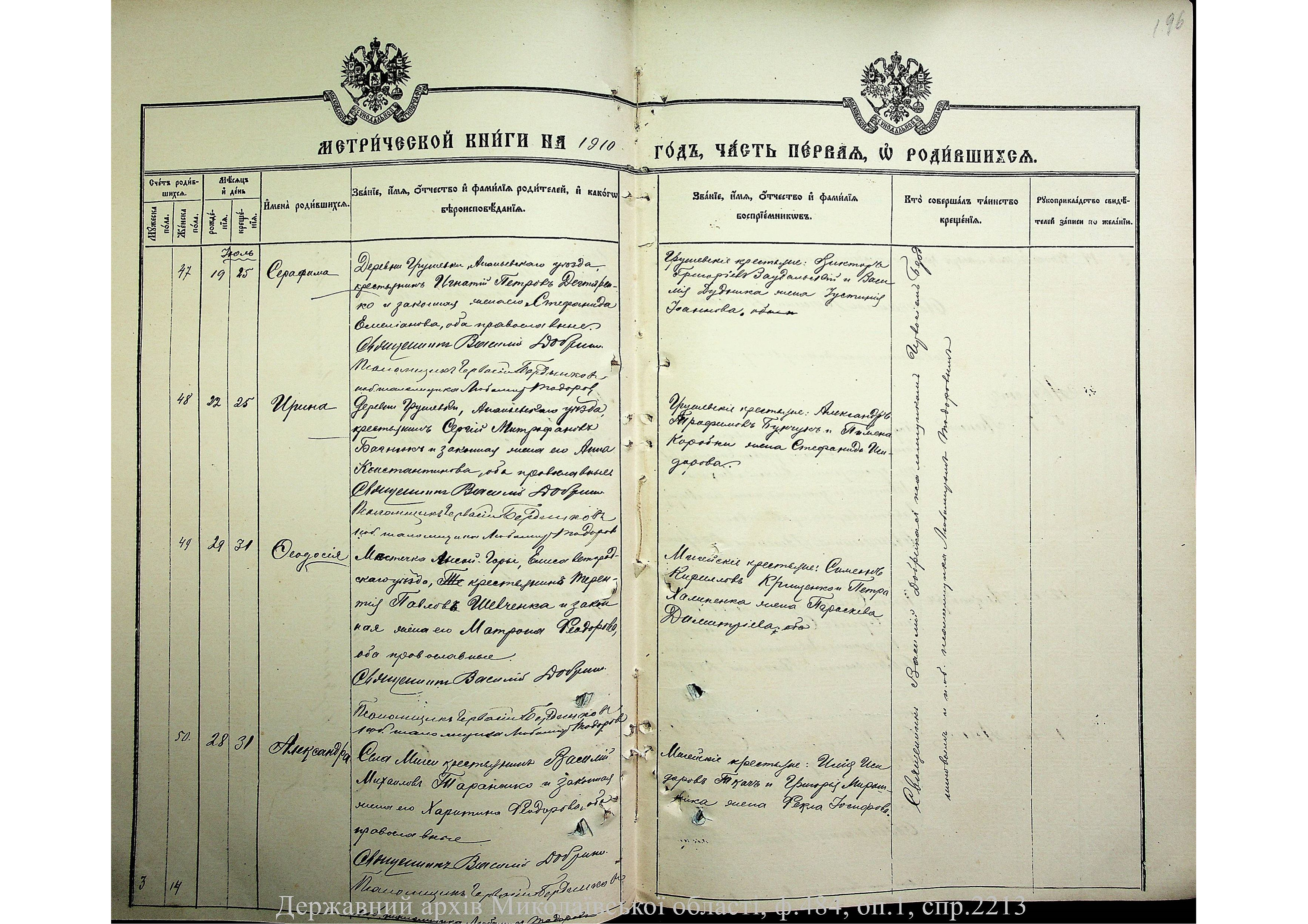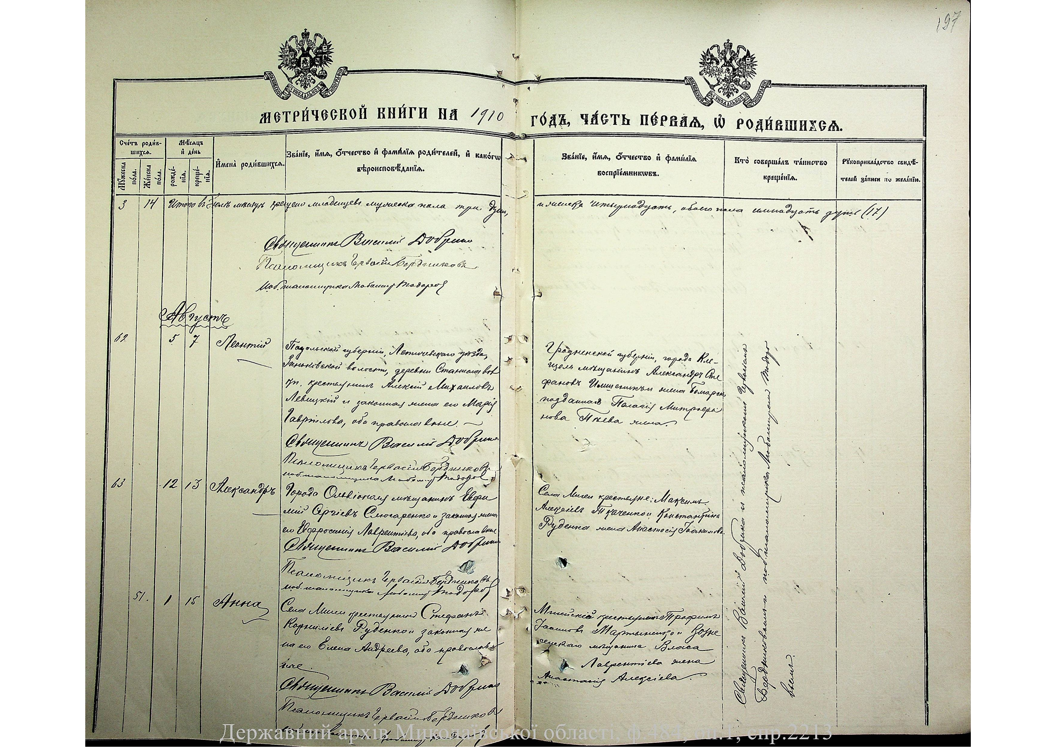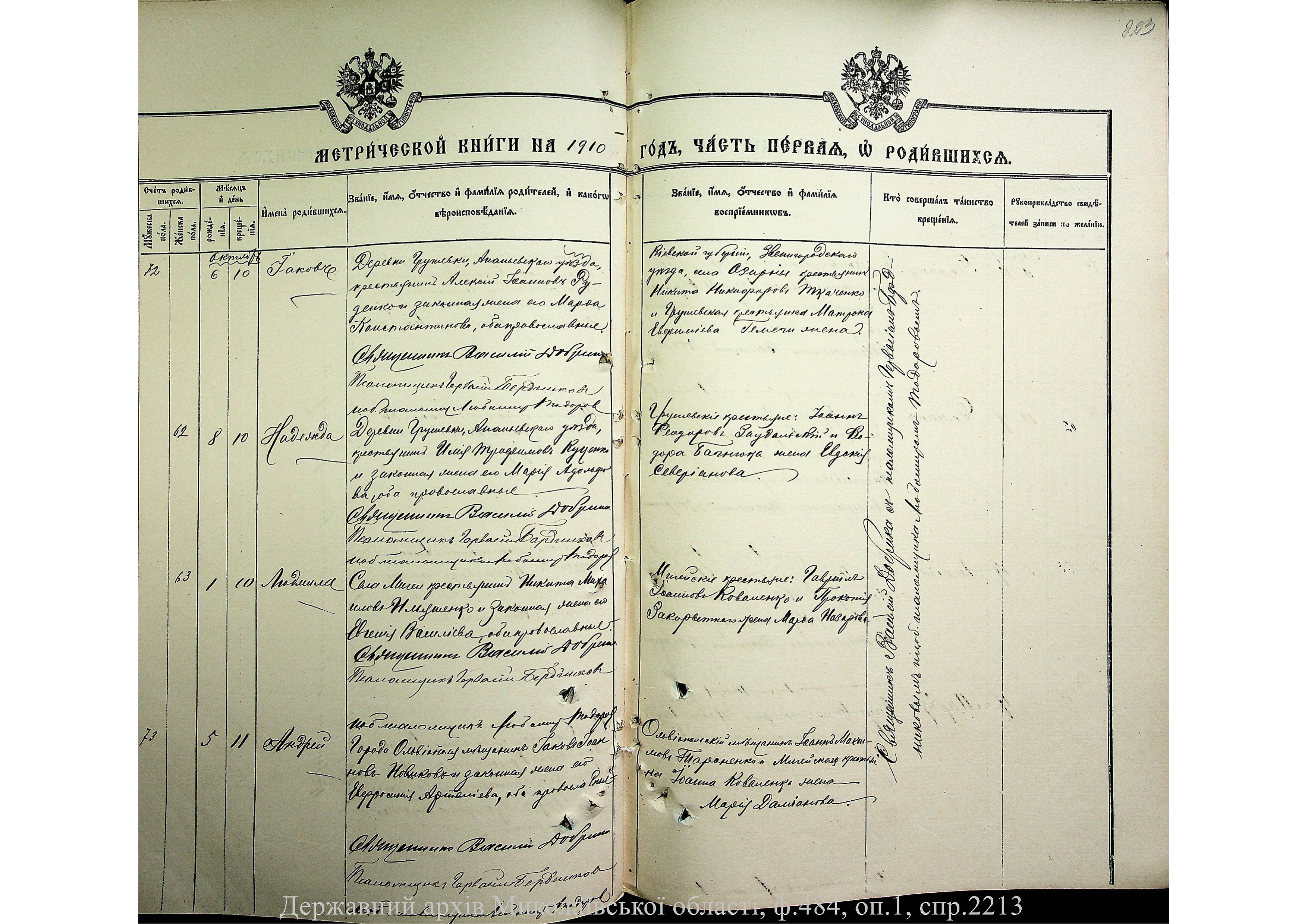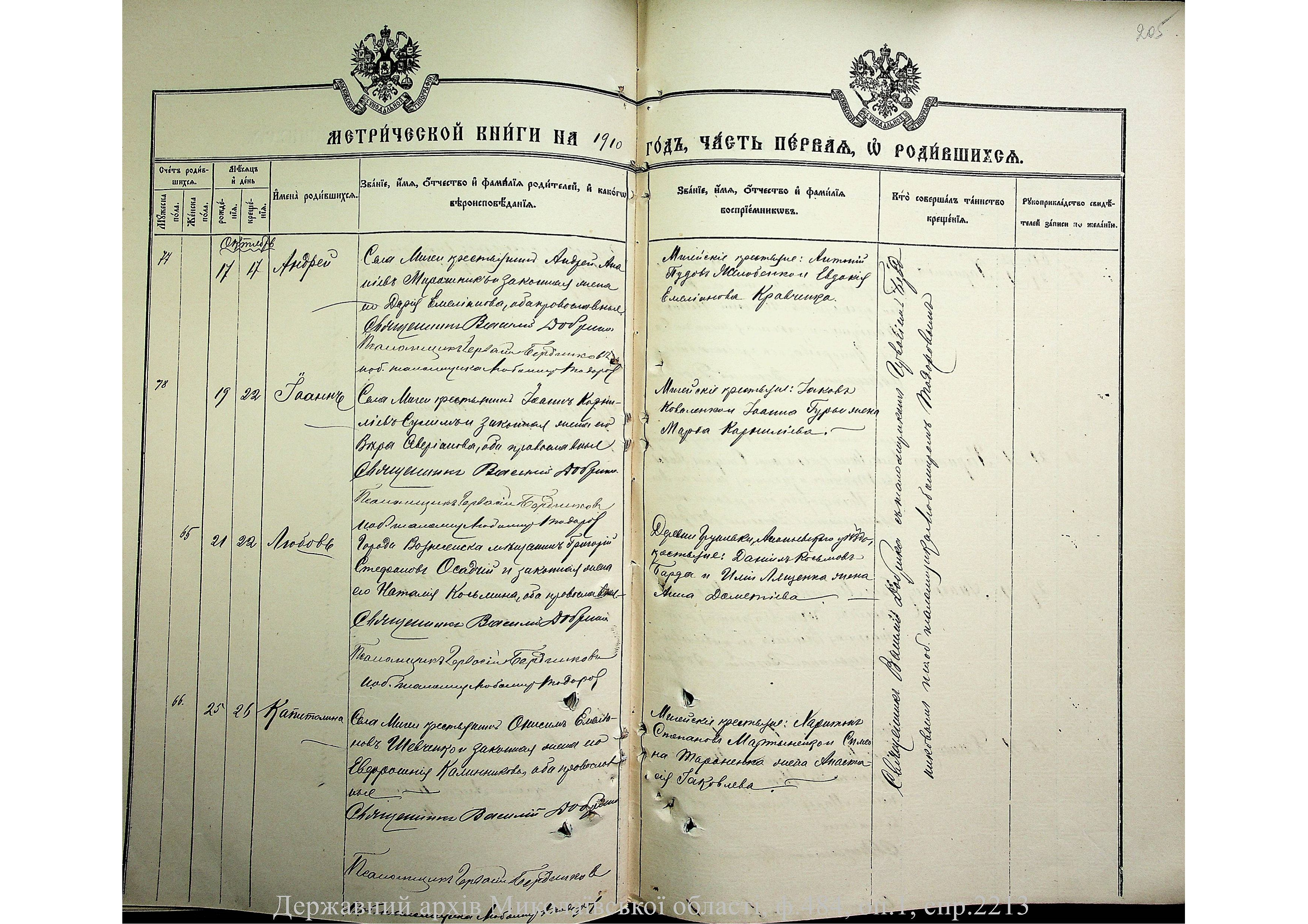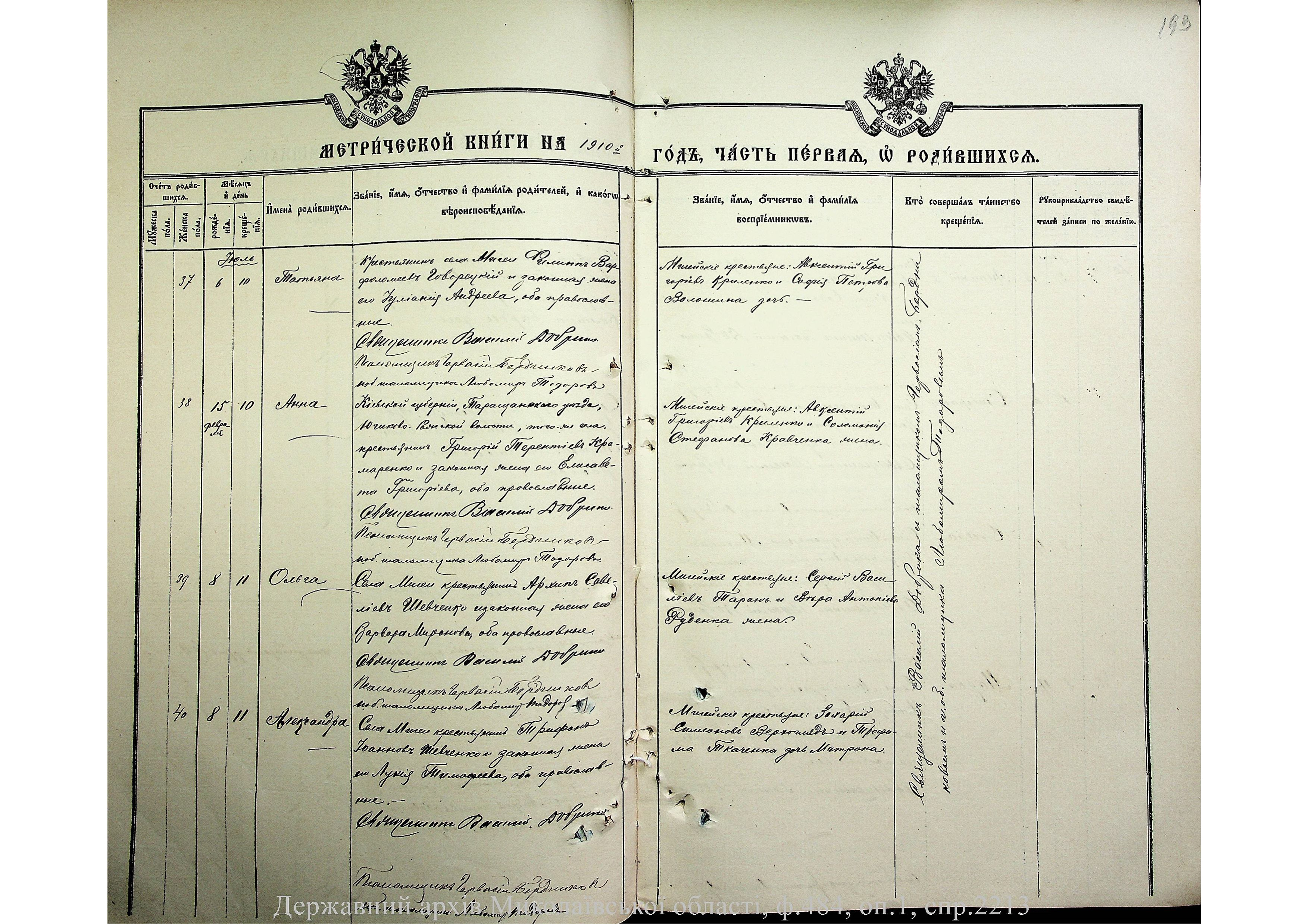 • • • • Справа № 2213 “Метрична книга: Церква Святих Петра і Павла, с. Мигія, Єлисаветградський повіт, Херсонська губернія: про народжених, одружених та померлих”