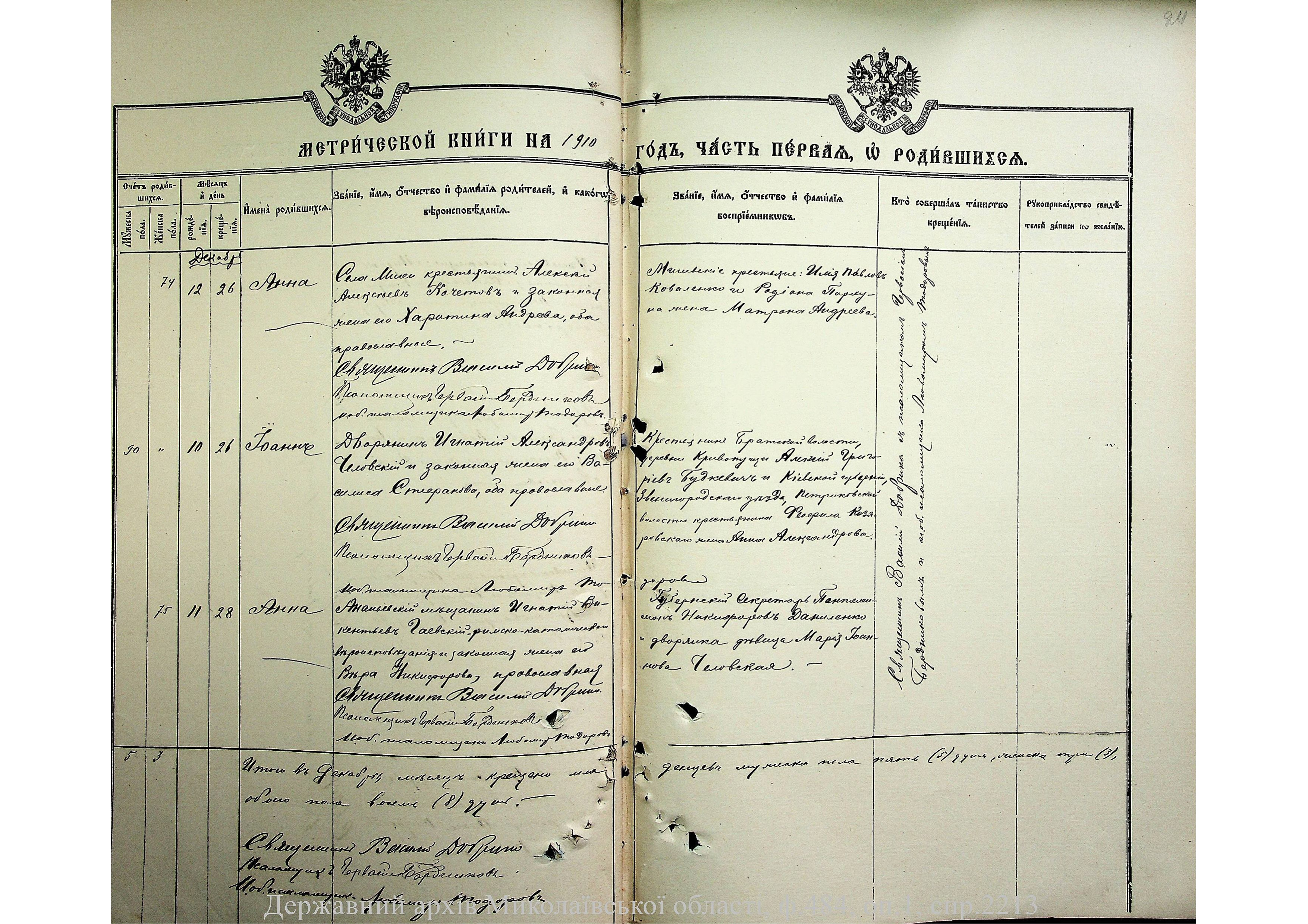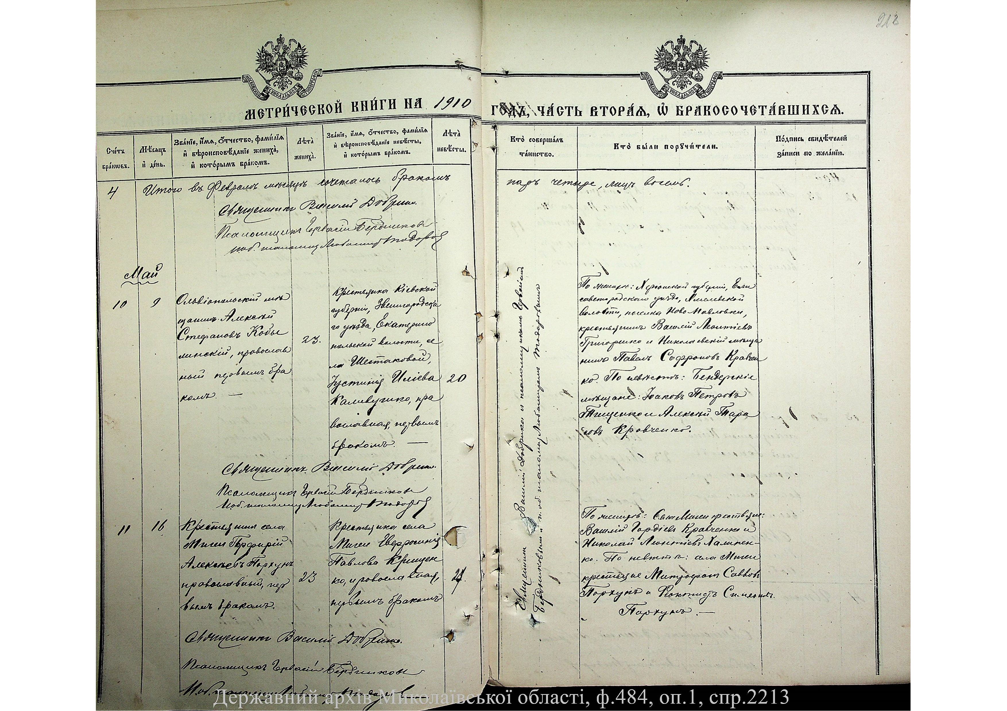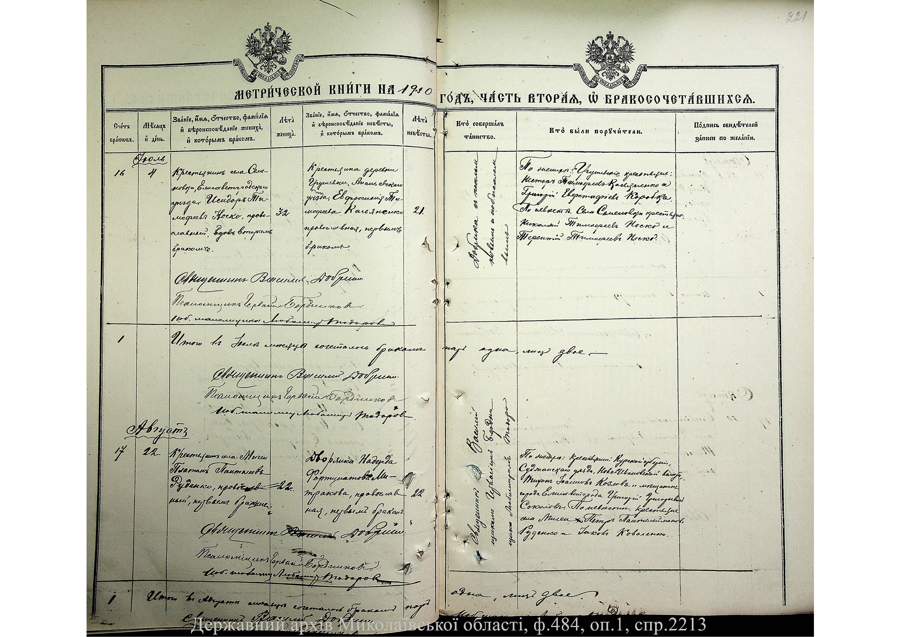 ◦ ◦ Фонд № 484 “Колекція метричних книг установ релігійних культів, що існували на території Миколаївської області”