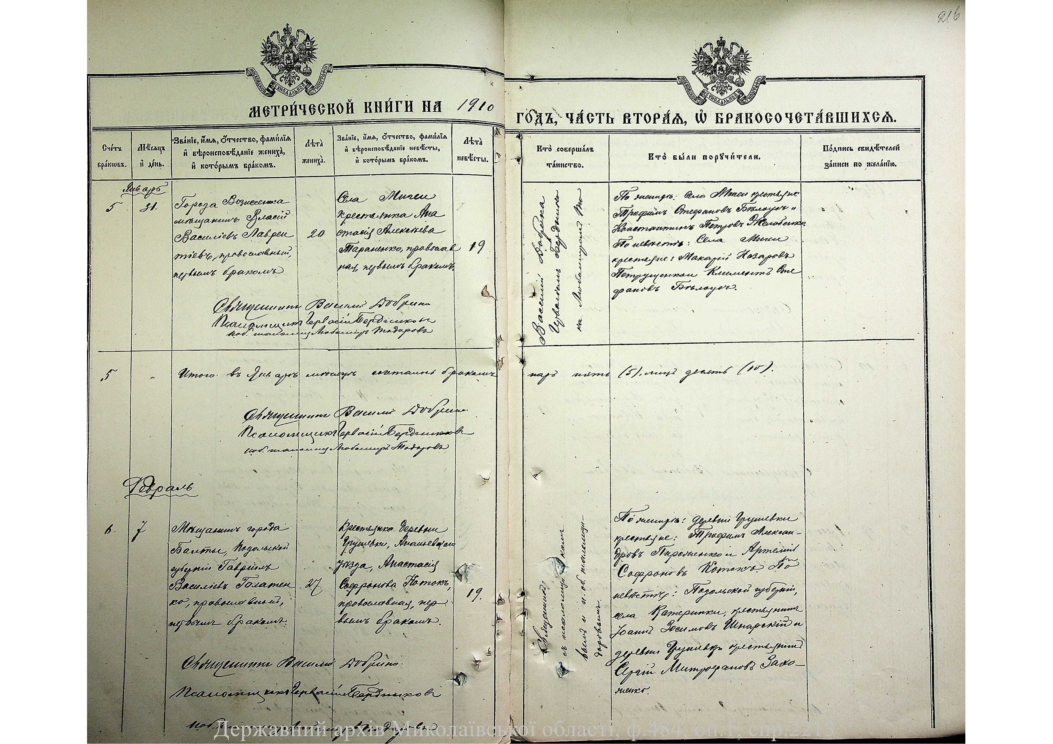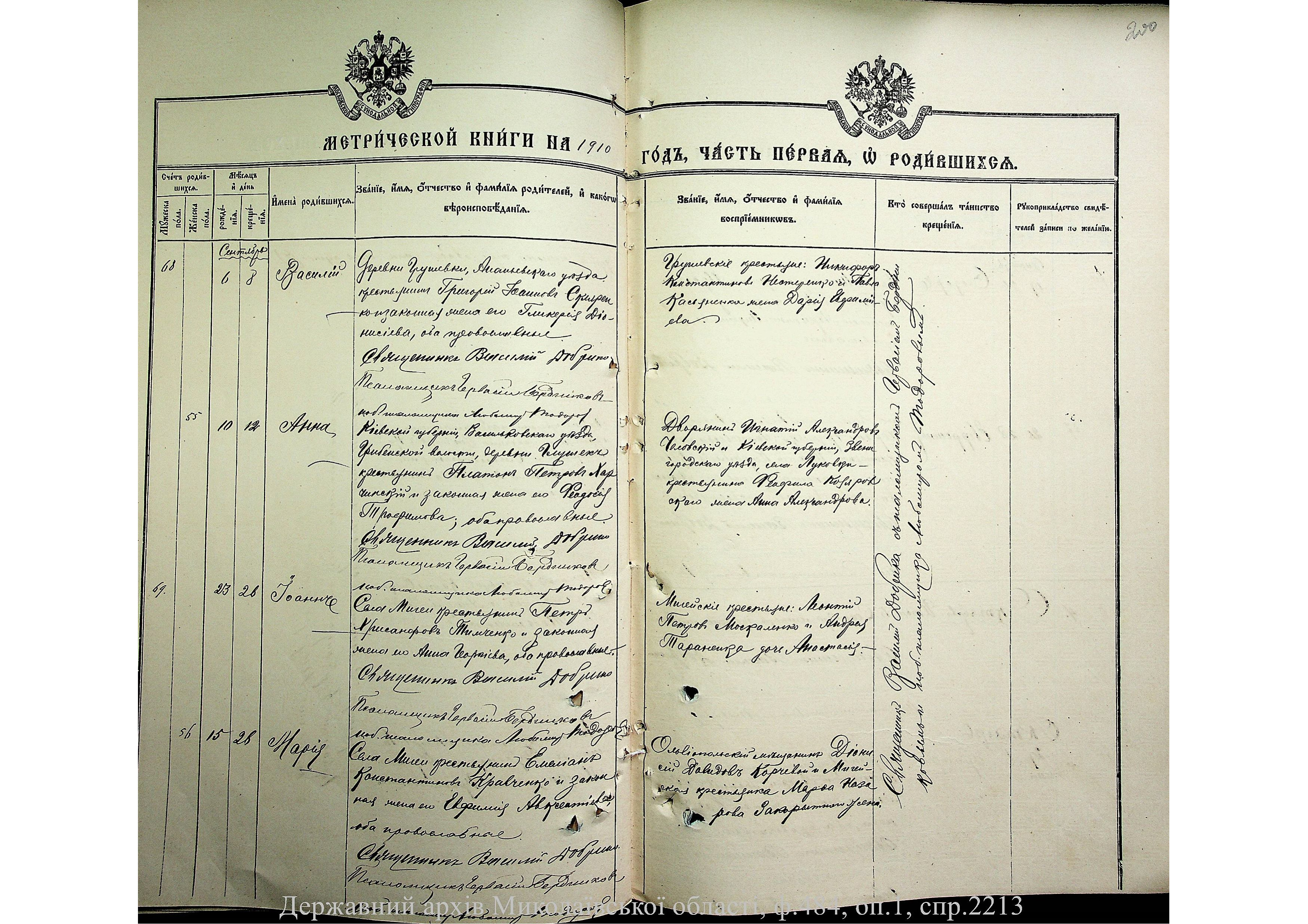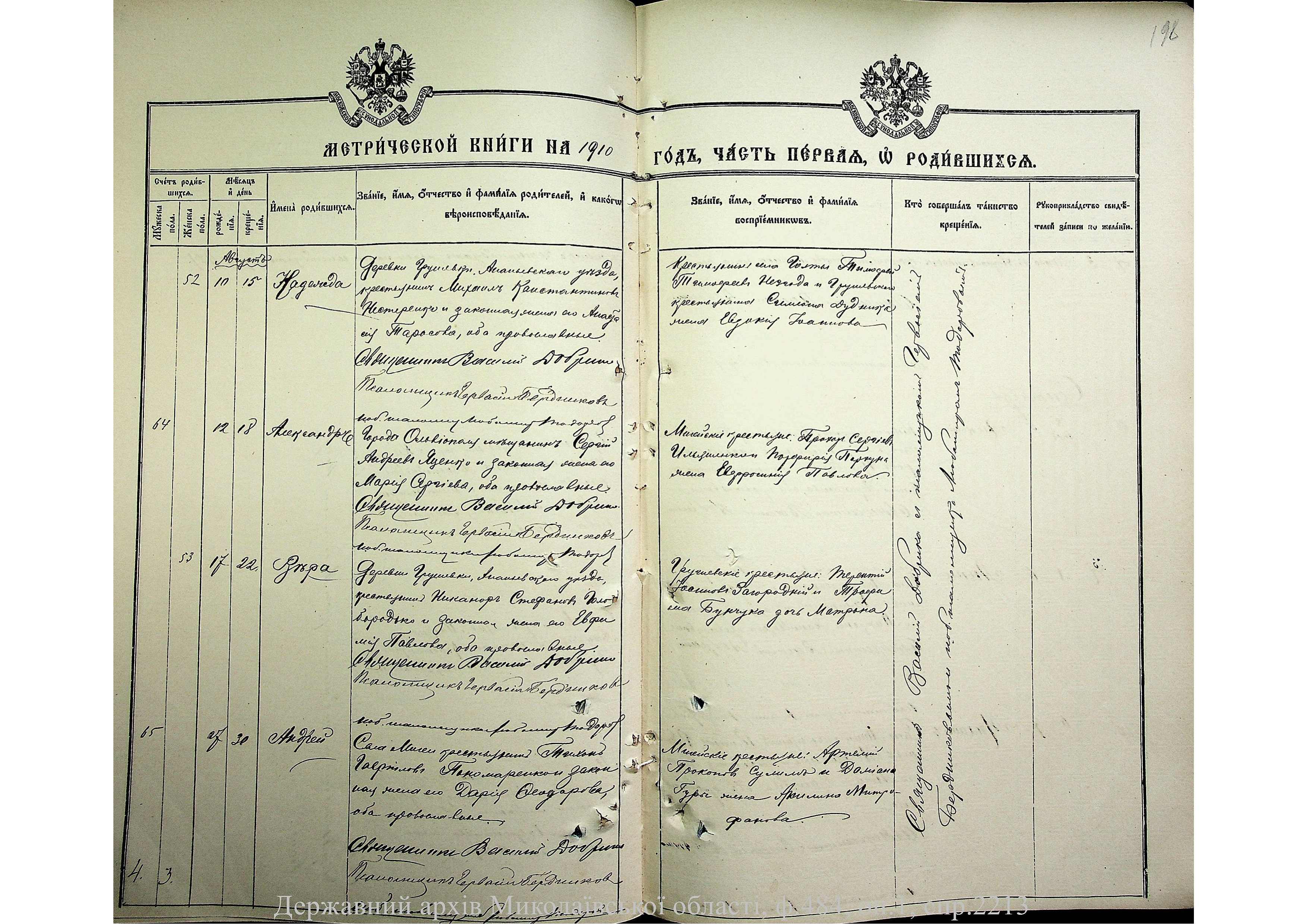 ◦ ◦ Фонд № 484 “Колекція метричних книг установ релігійних культів, що існували на території Миколаївської області”