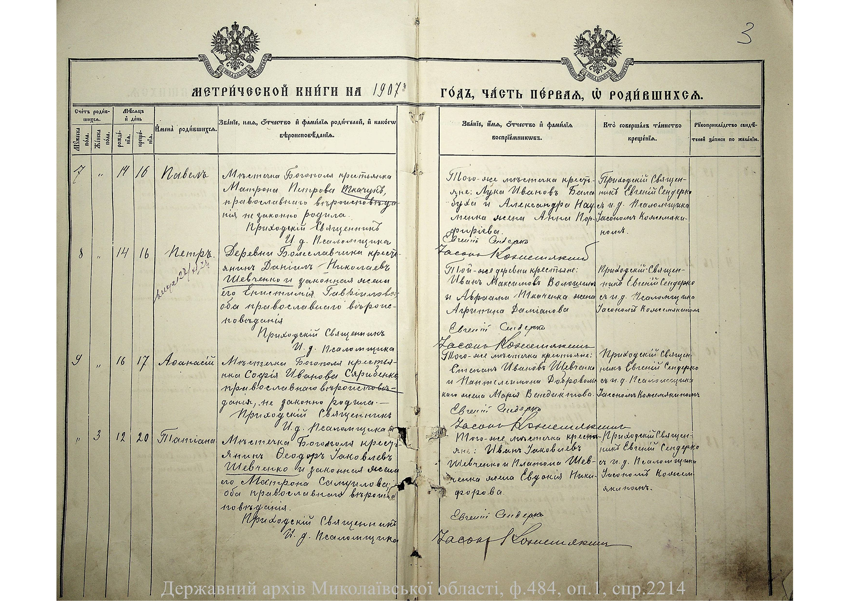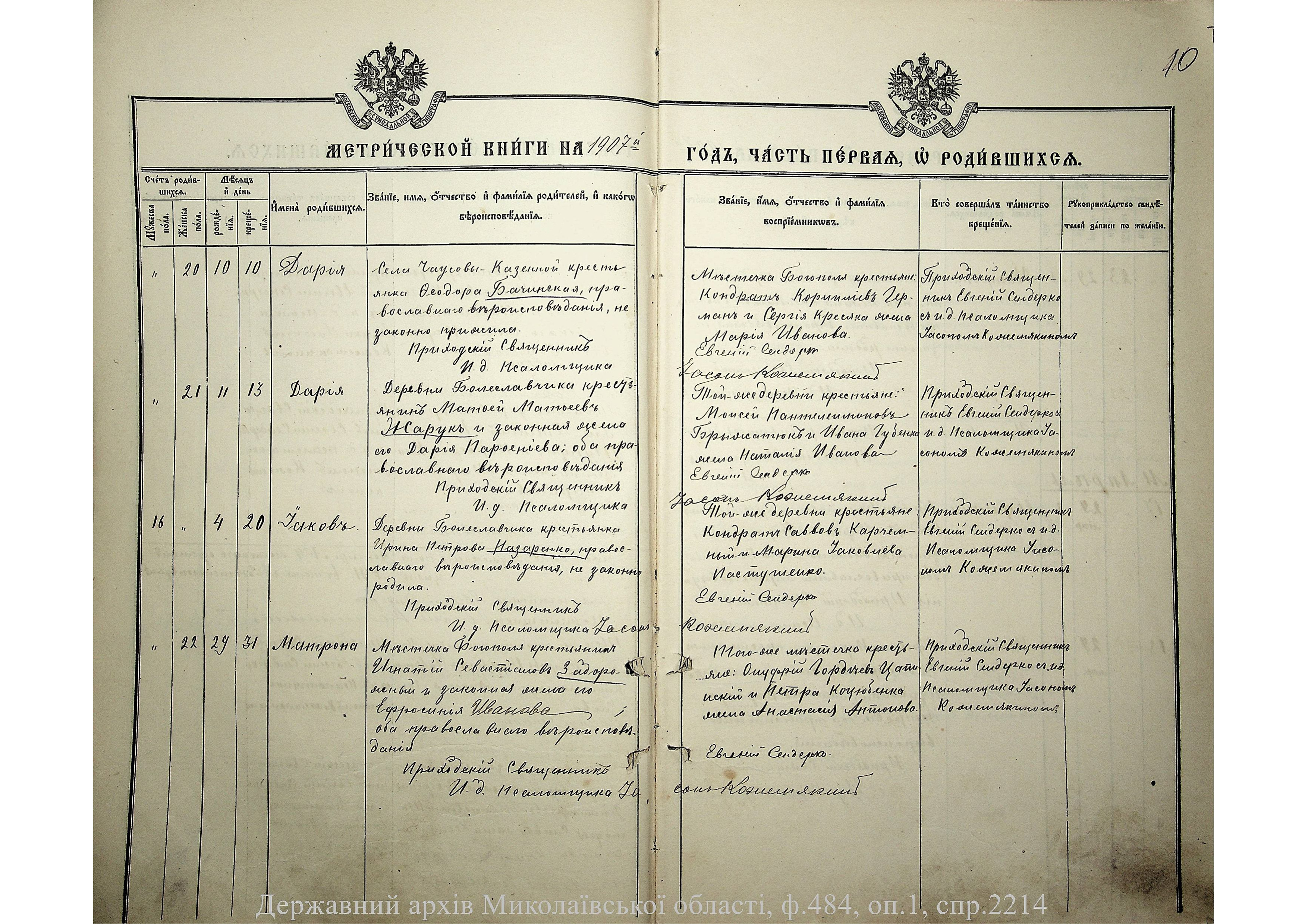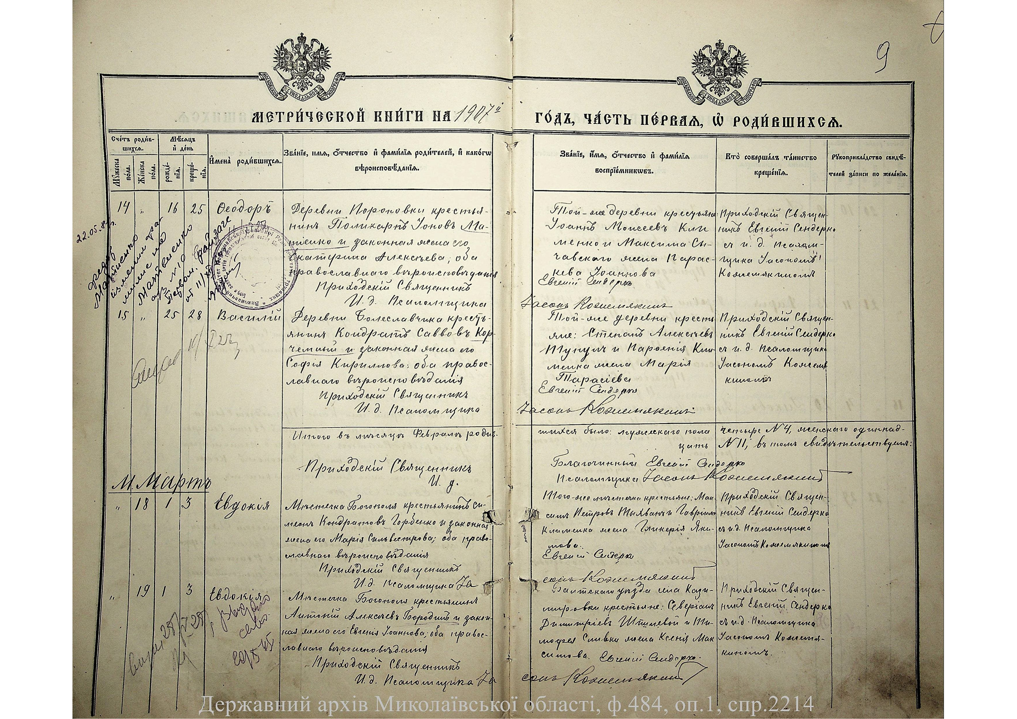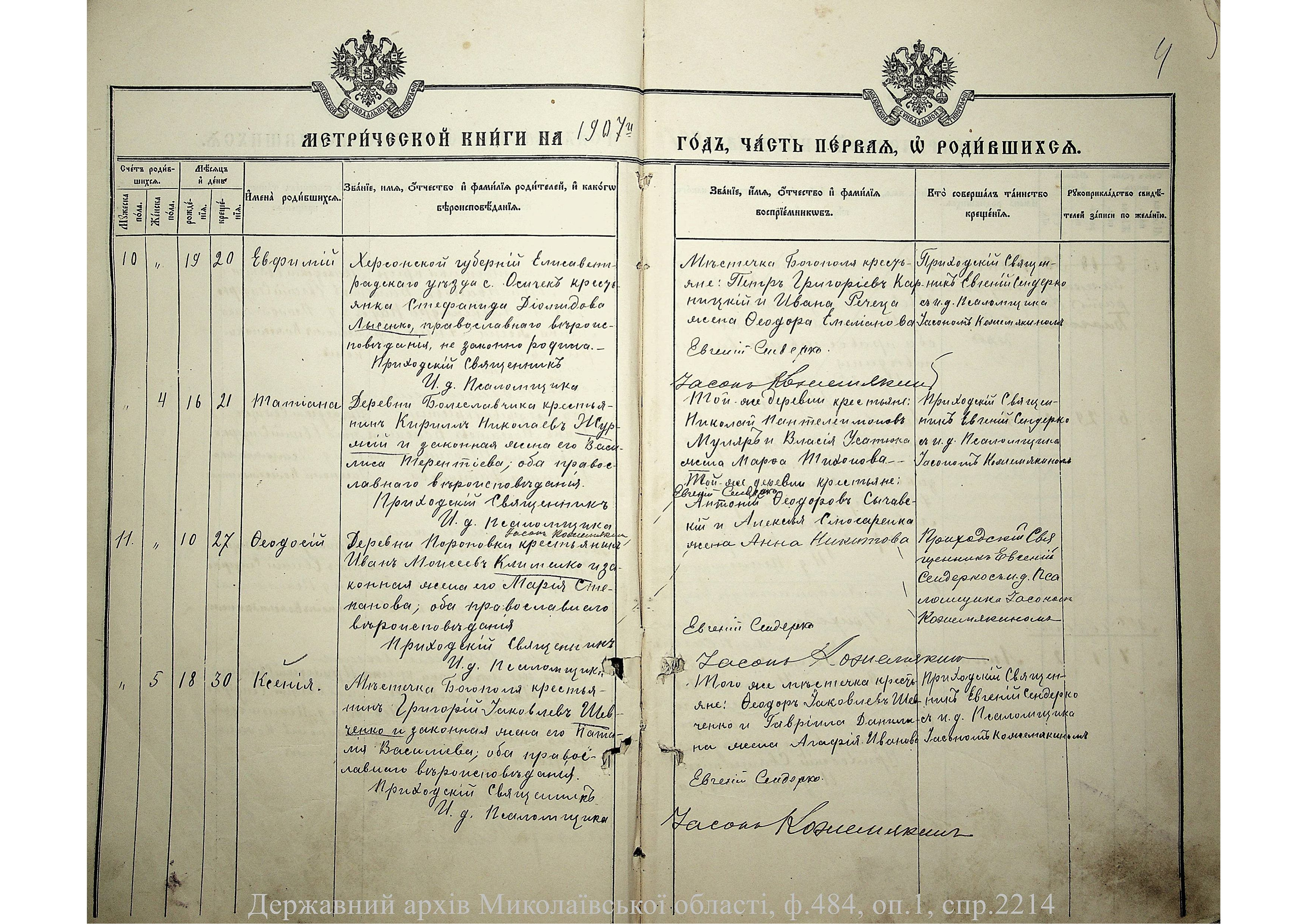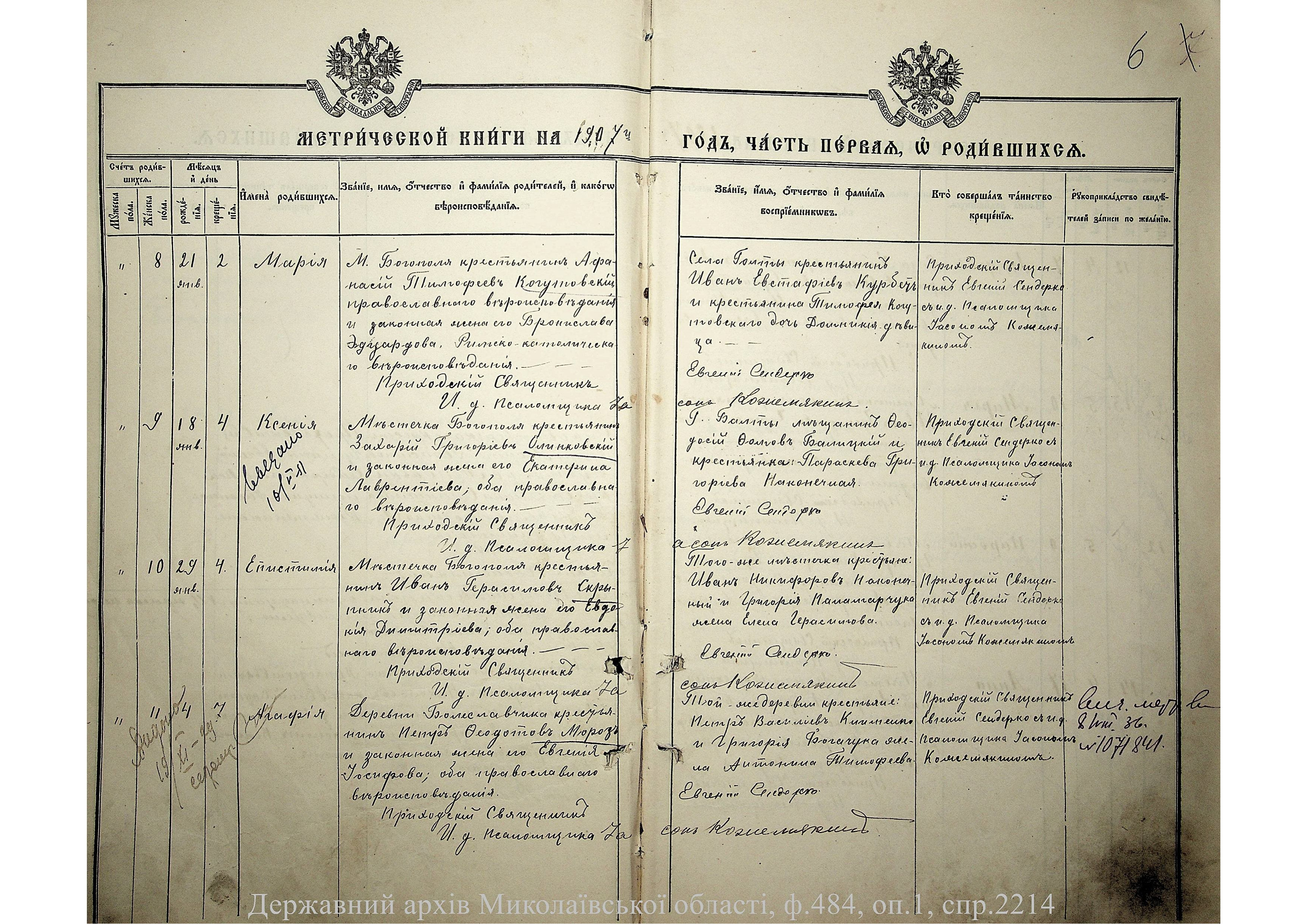 ◦ ◦ Фонд № 484 “Колекція метричних книг установ релігійних культів, що існували на території Миколаївської області”
