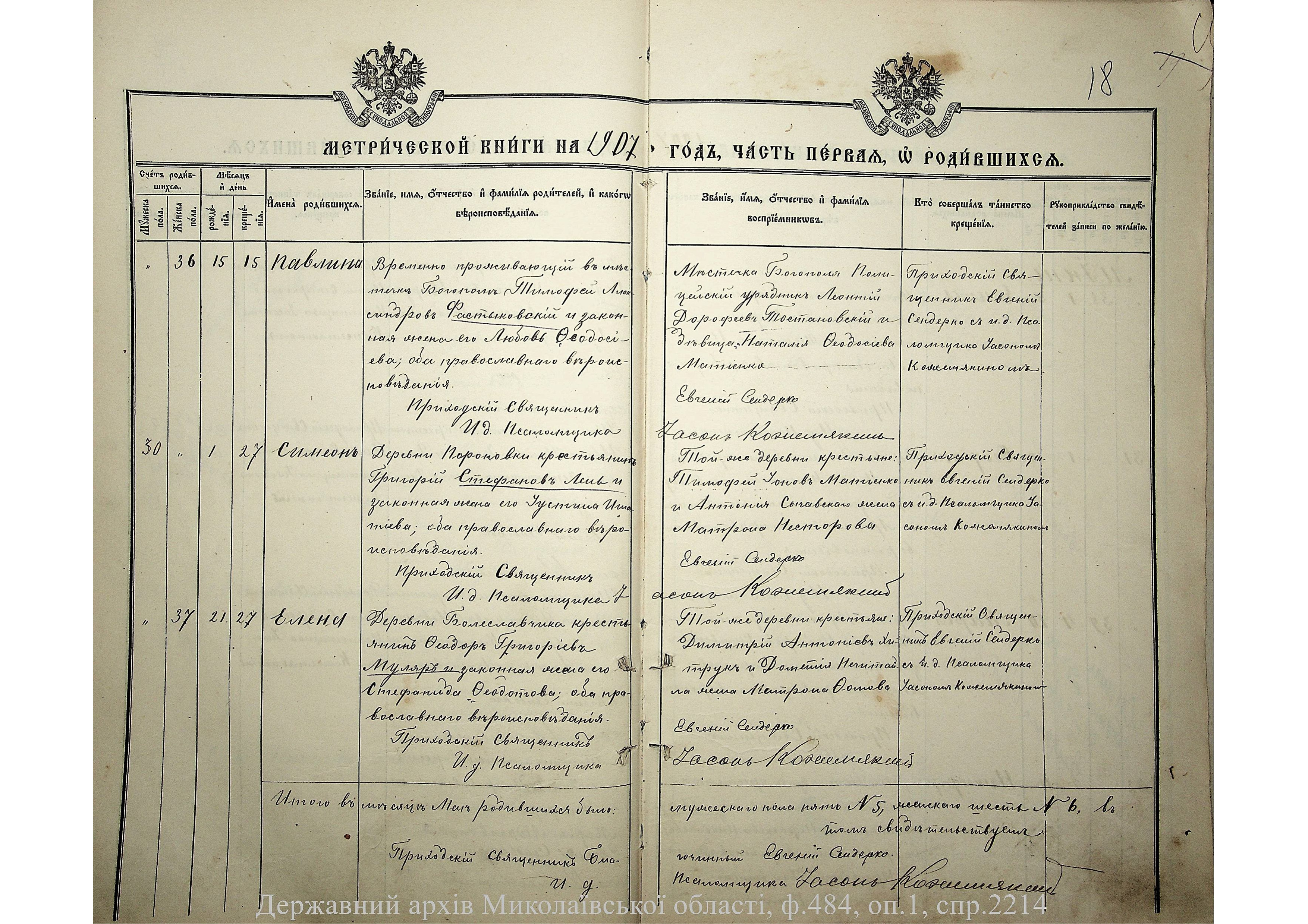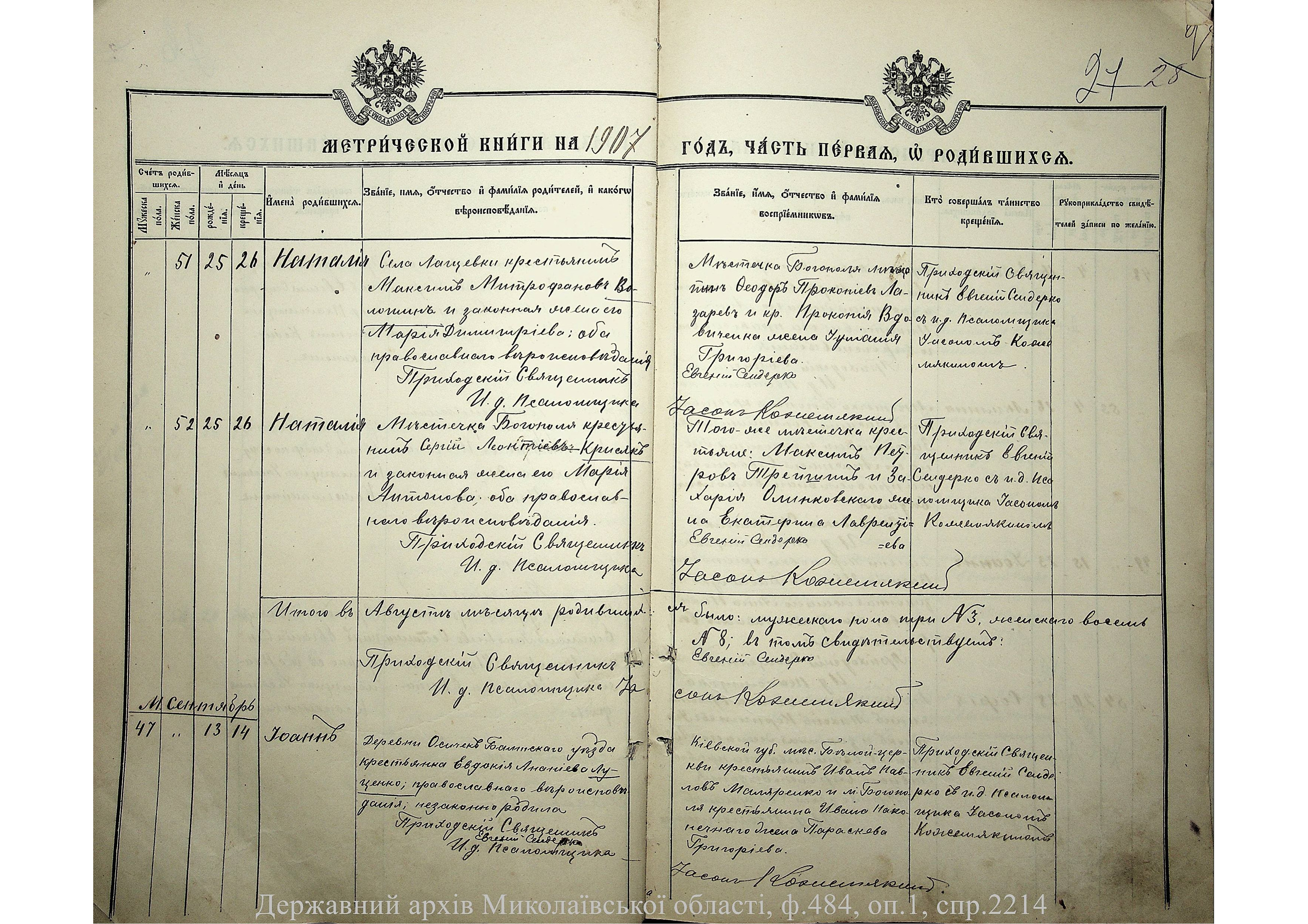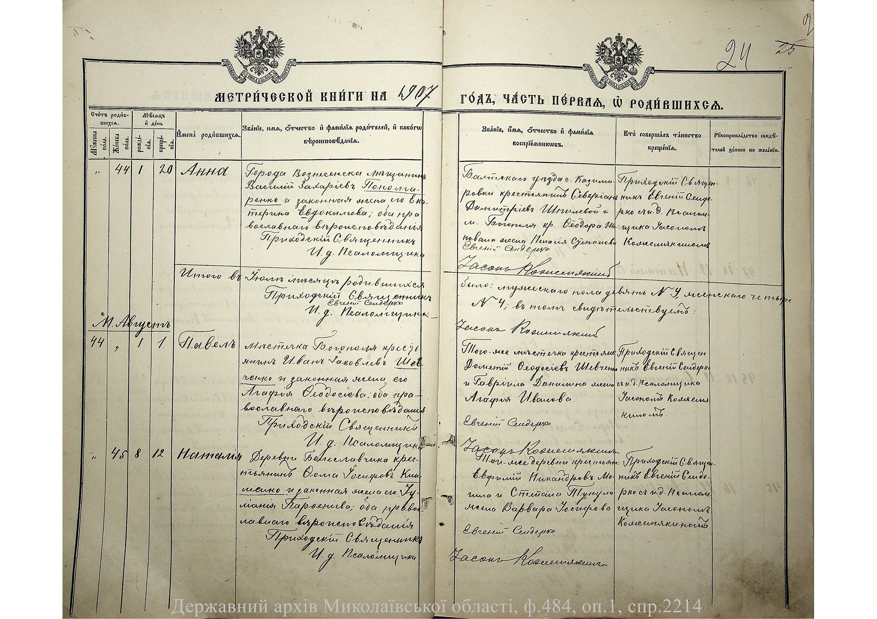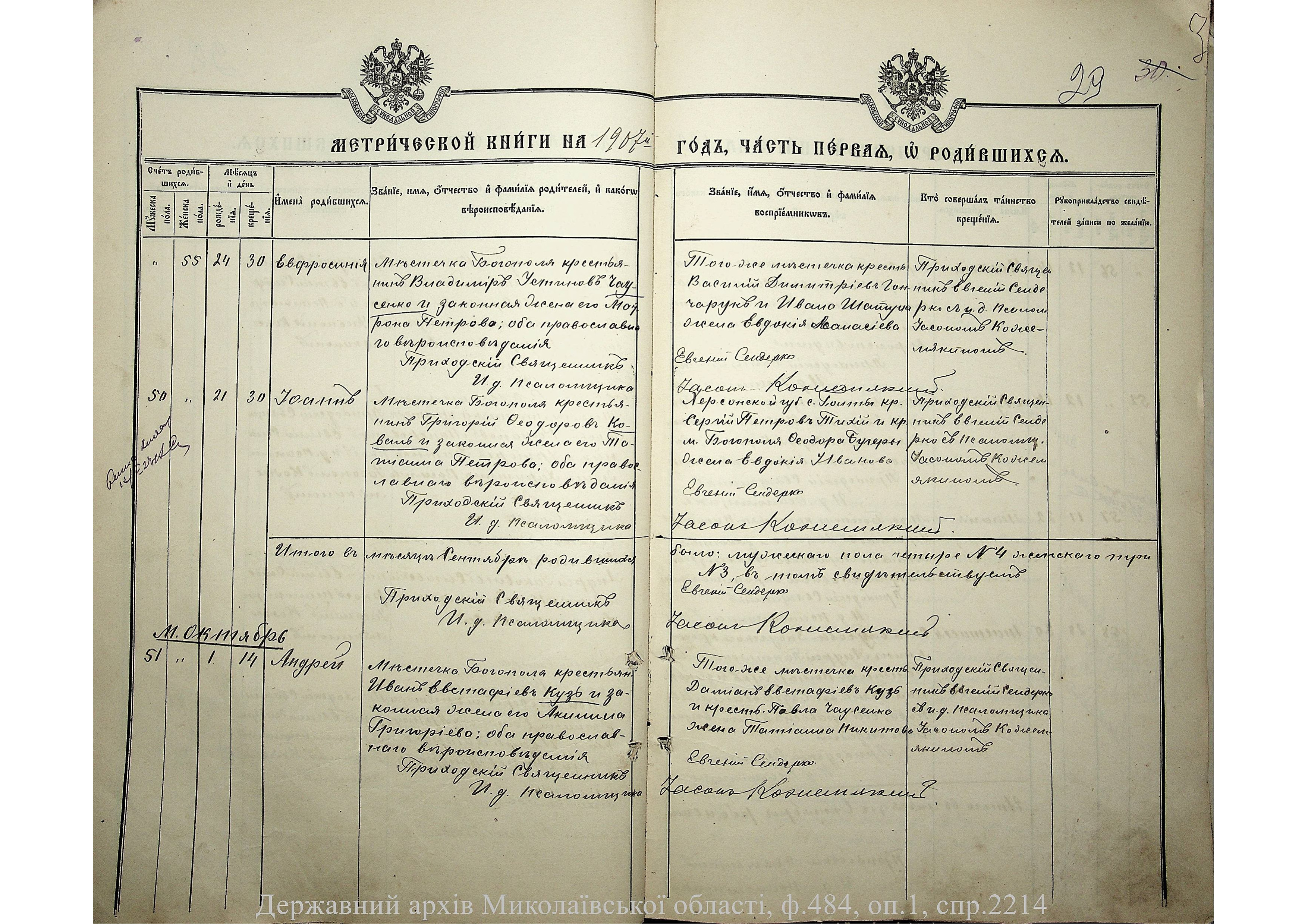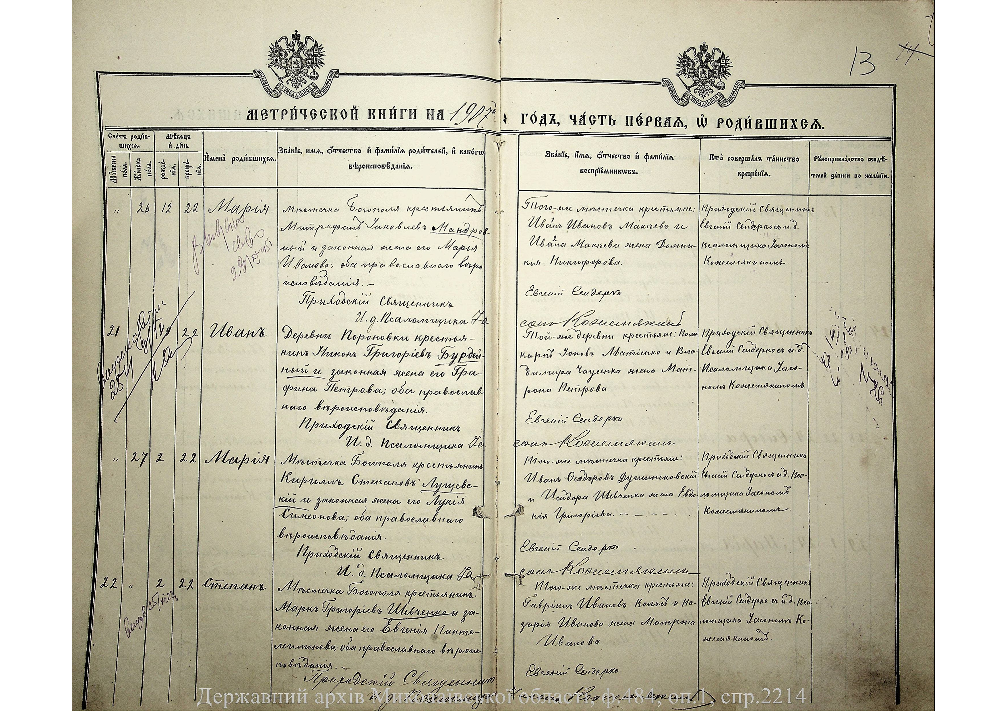 • • • • Справа № 2214 “Метрична книга: Свято-Покровська церква, с. Богопіль, Балтський повіт, Подільська губернія: про народжених, одружених та померлих”