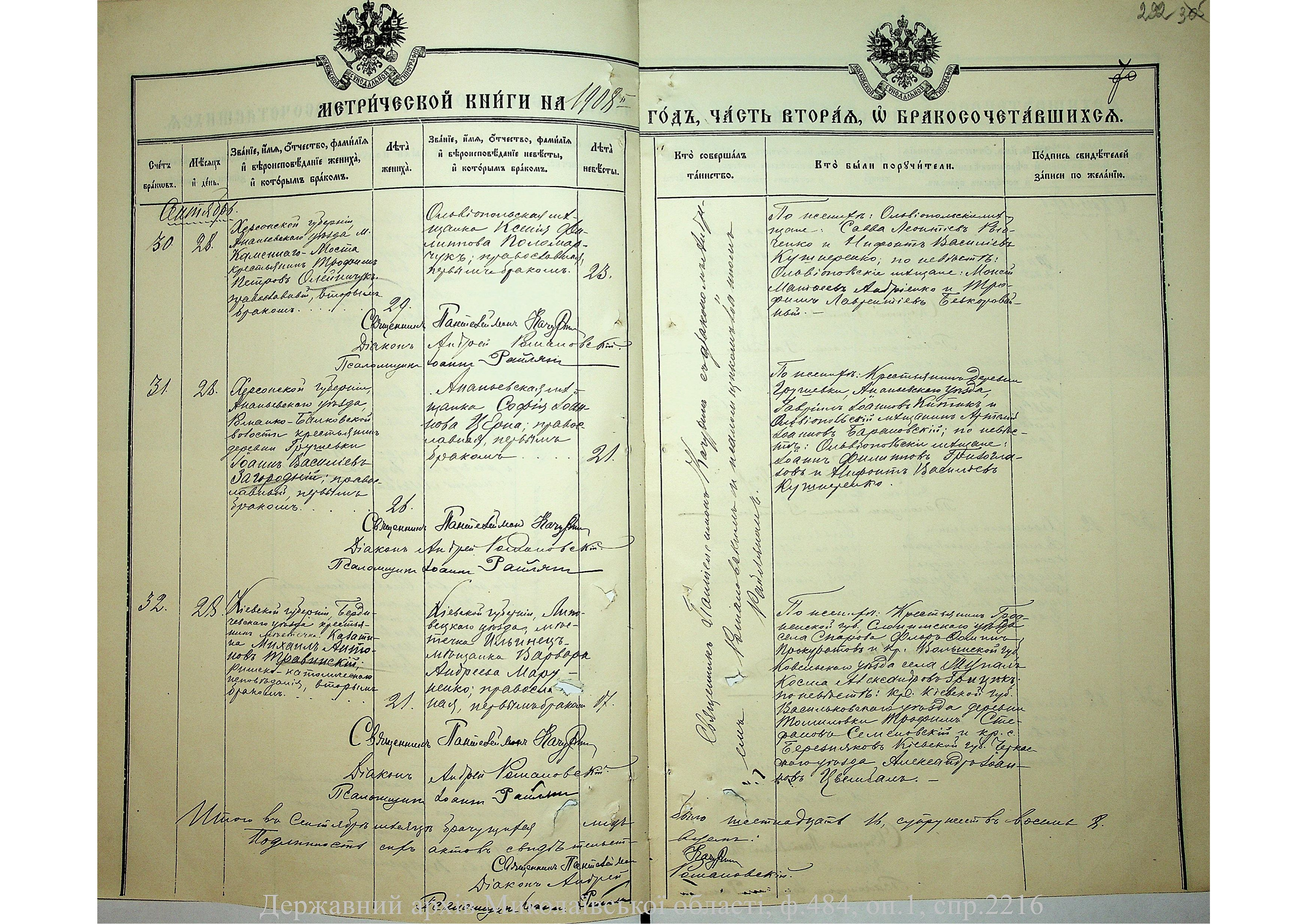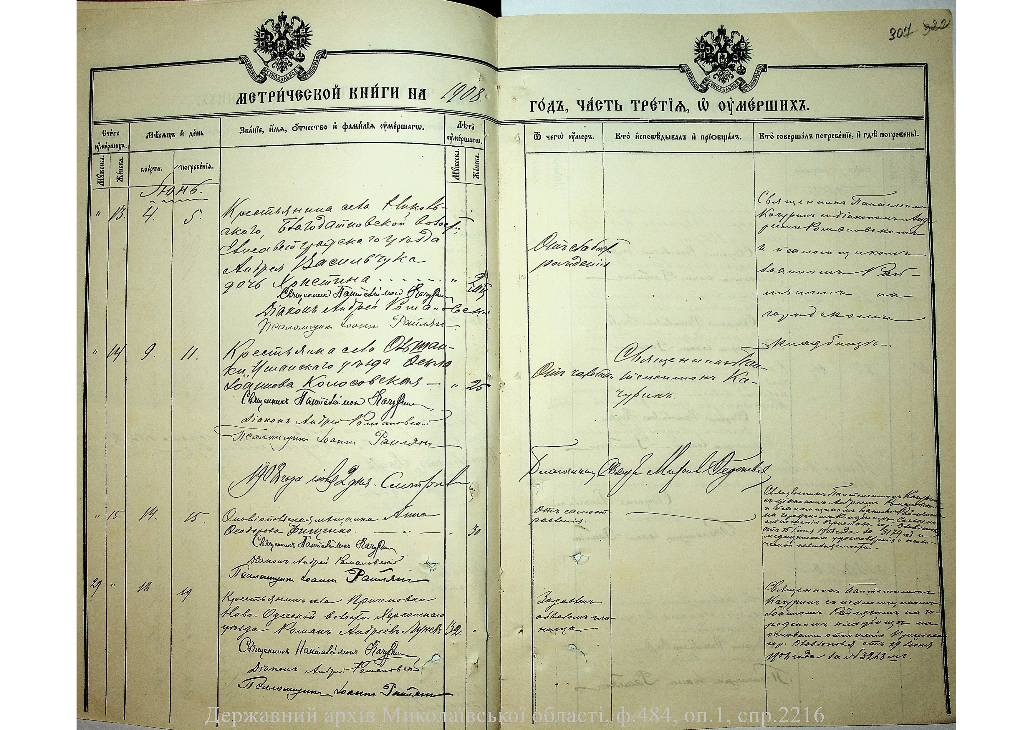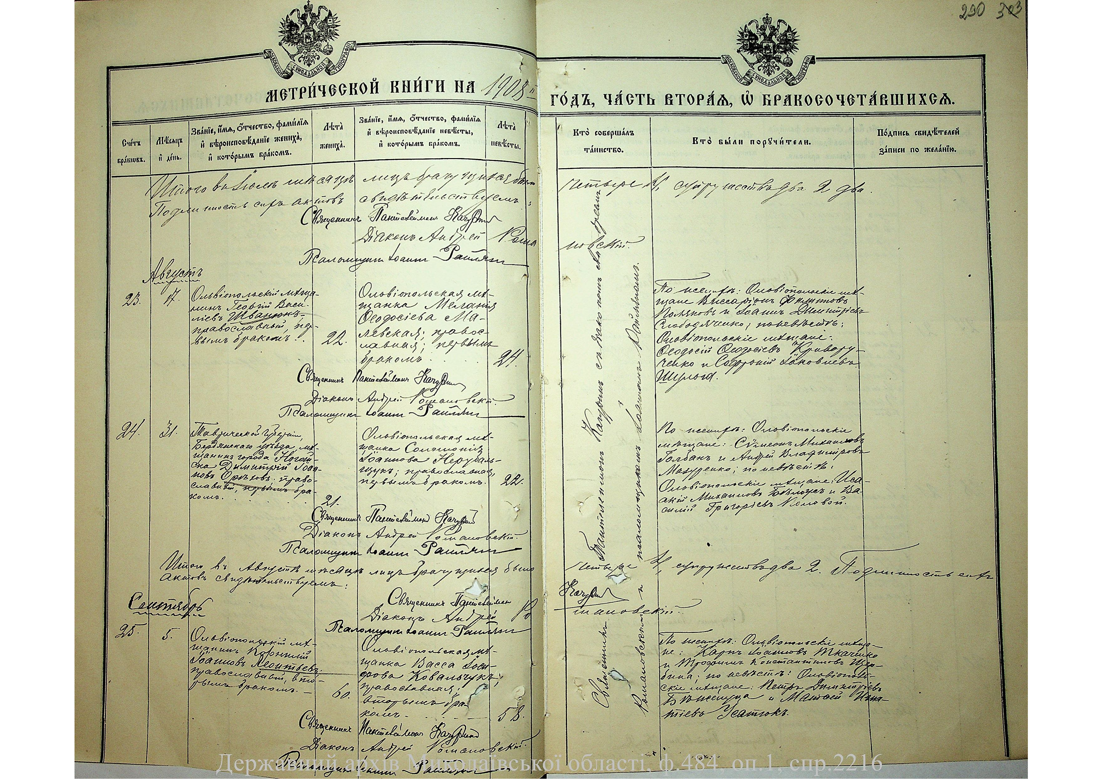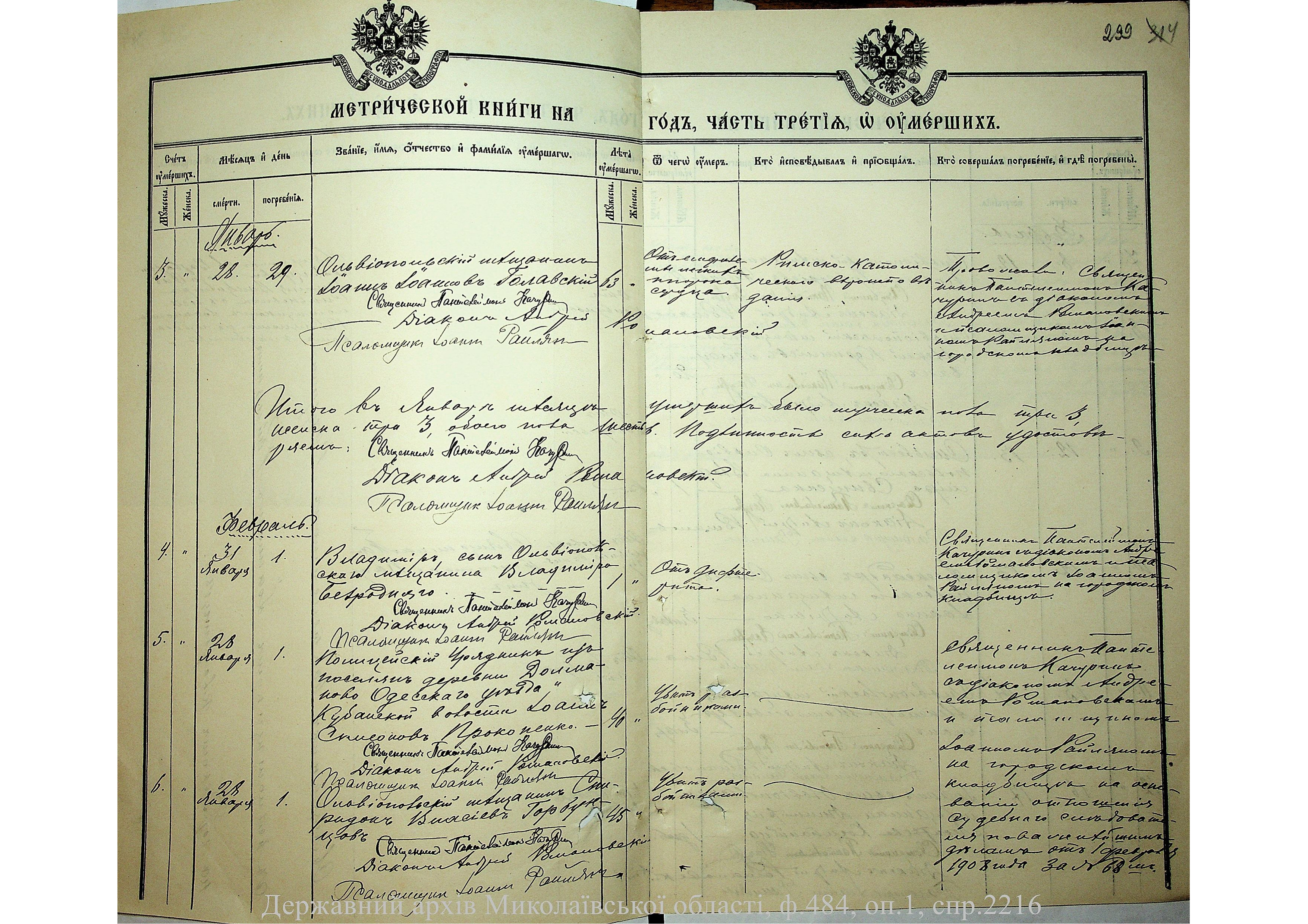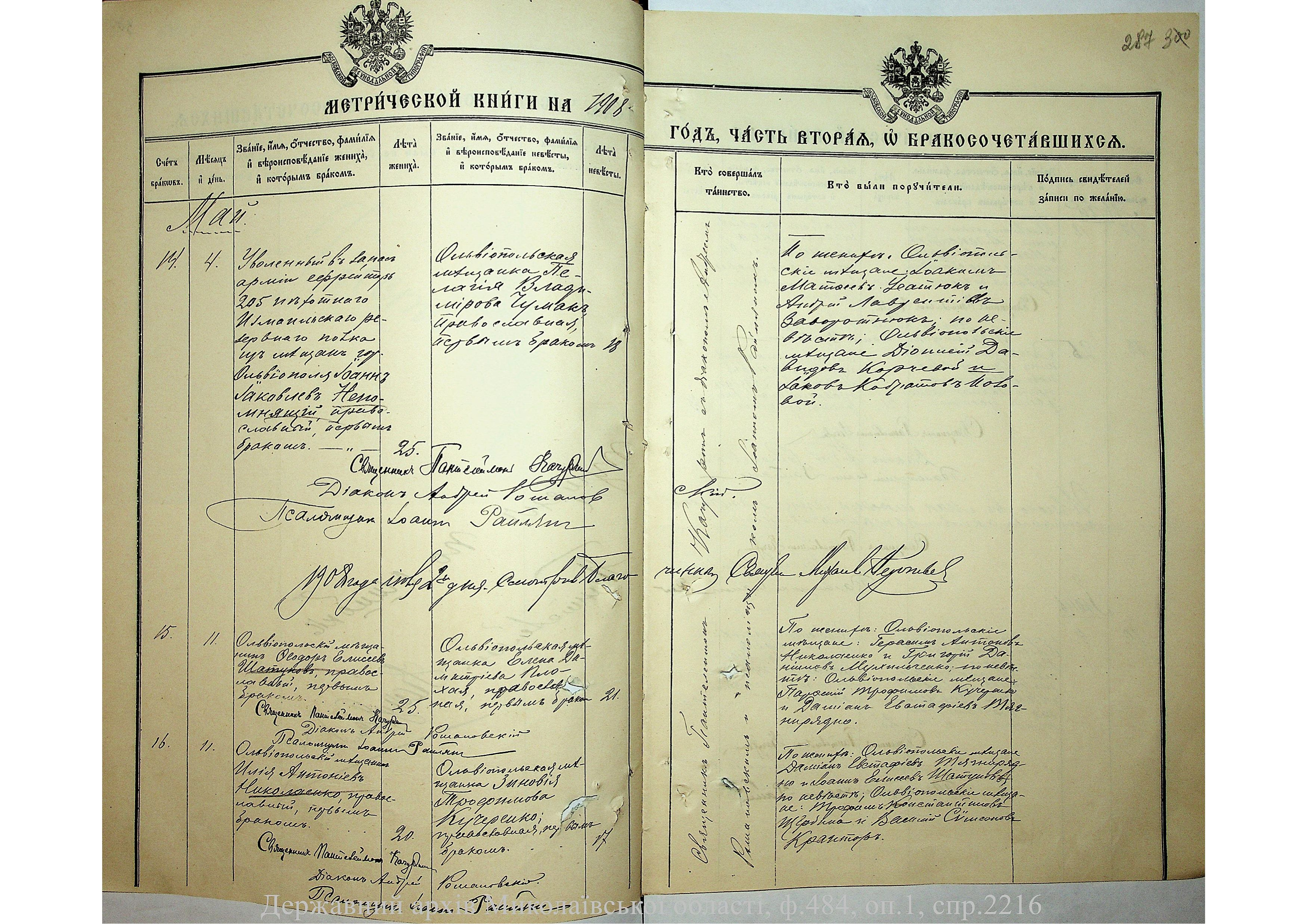 • • • • Справа № 2216 “Метрична книга: Свято-Варваринська церква, с. Ольвіополь, Єлисаветградський повіт, Херсонська губернія: про народжених, одружених та померлих”