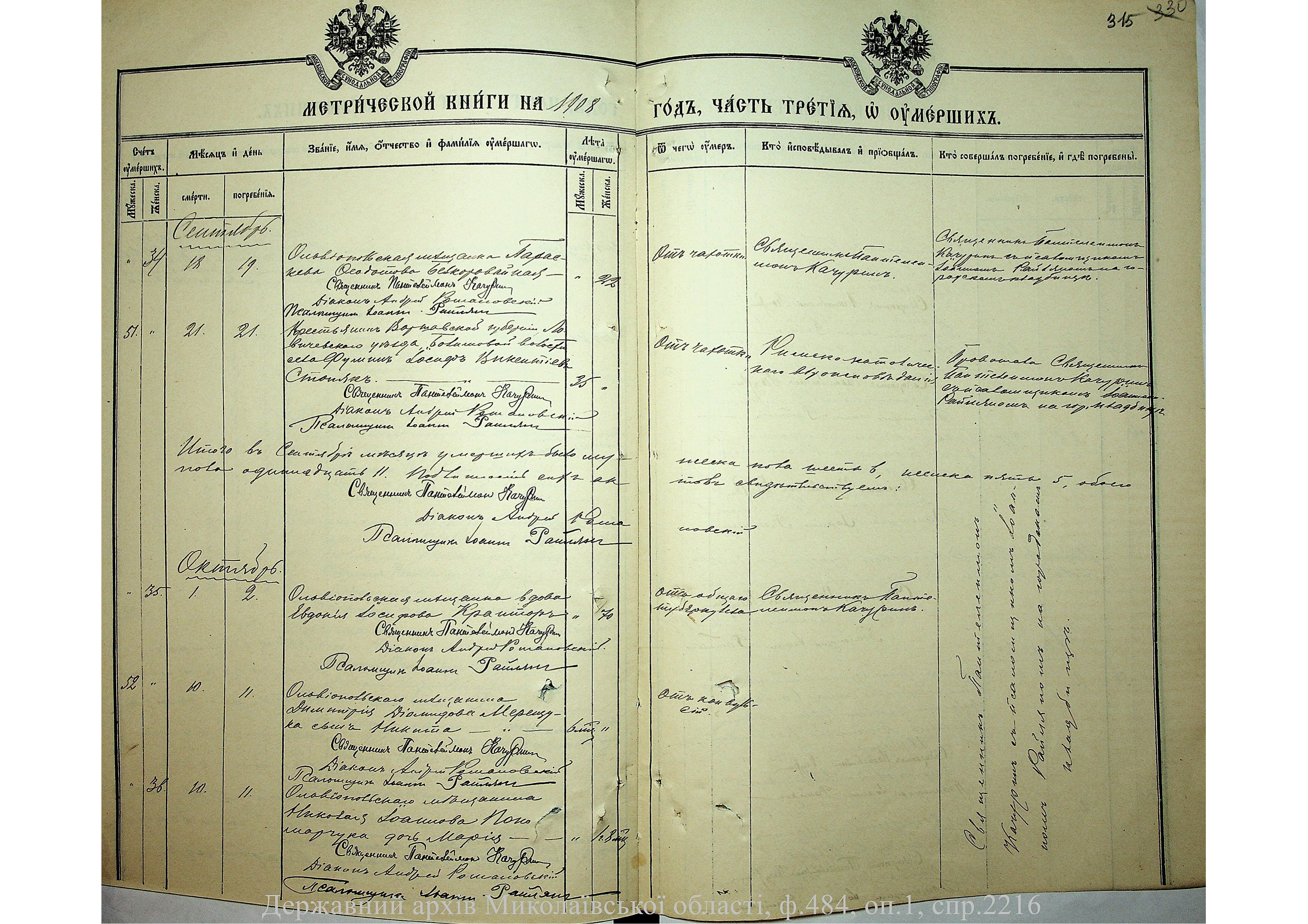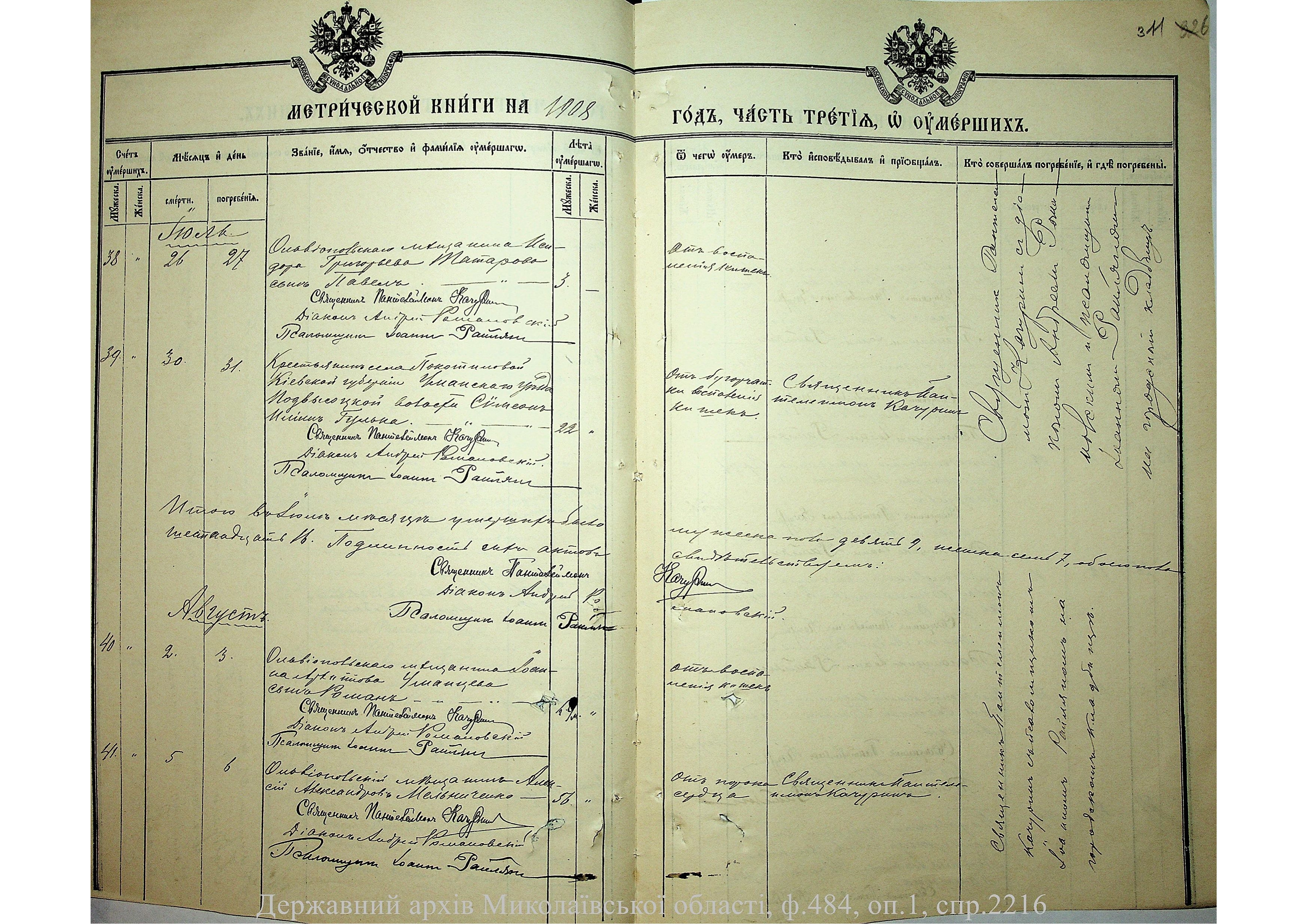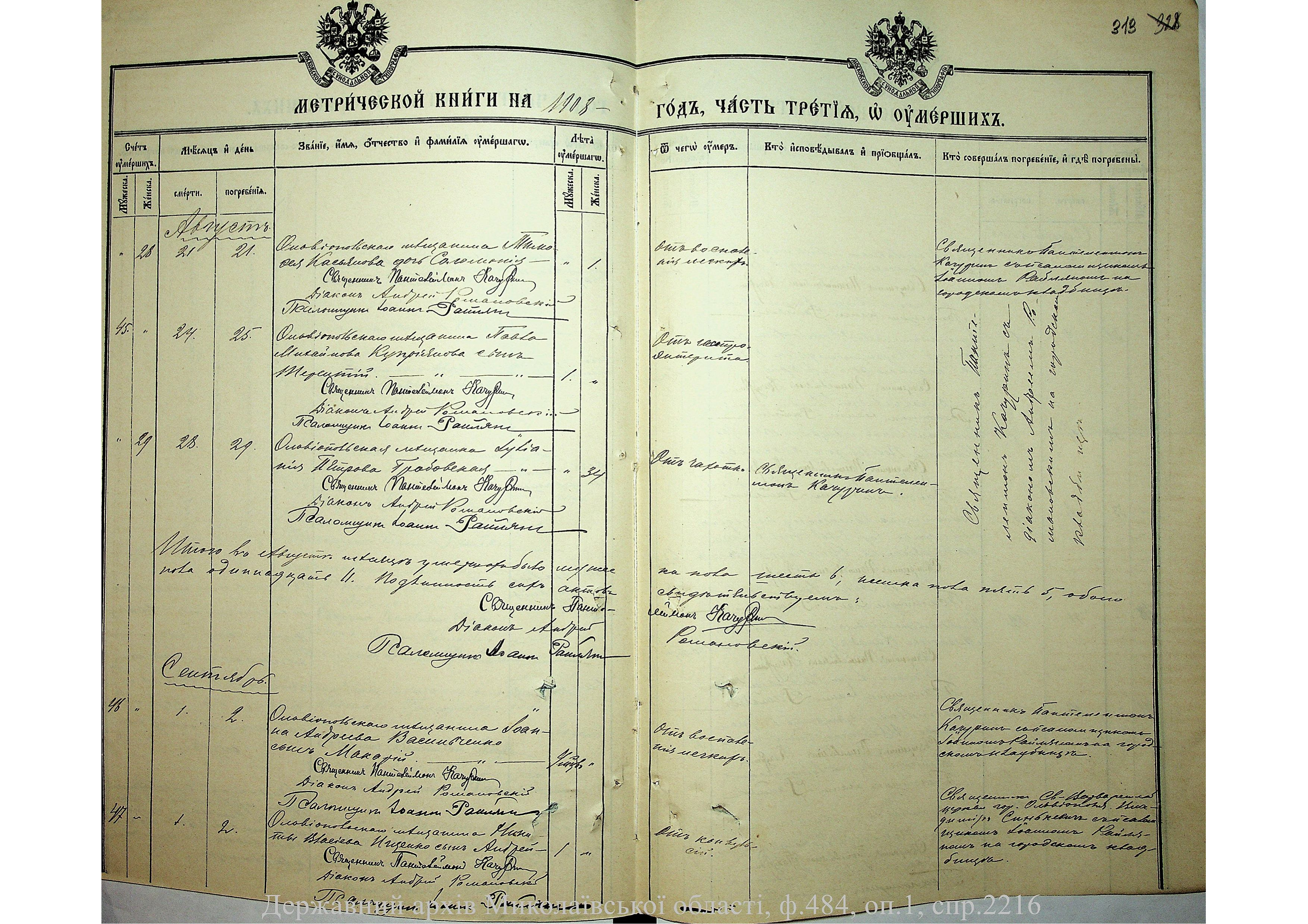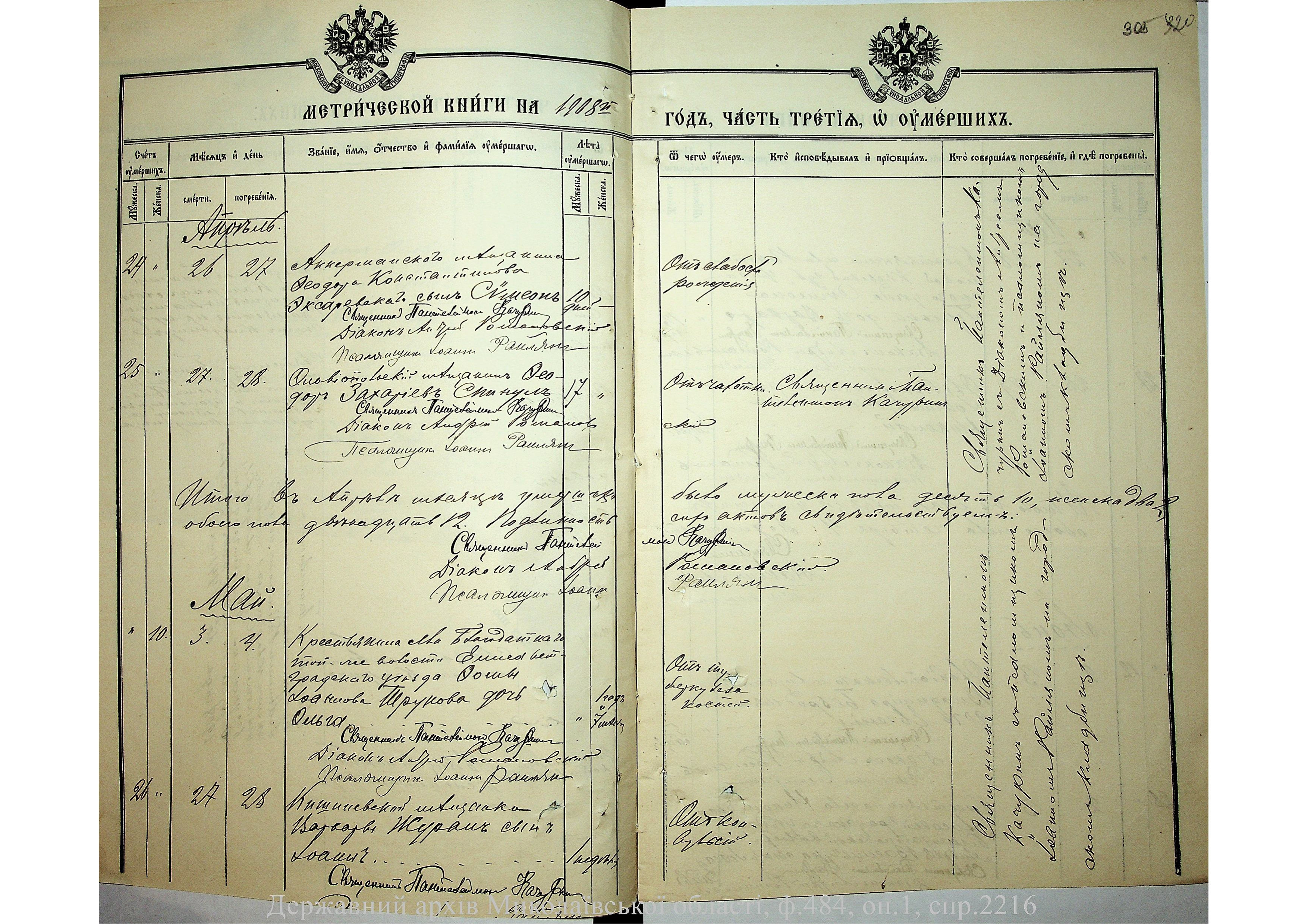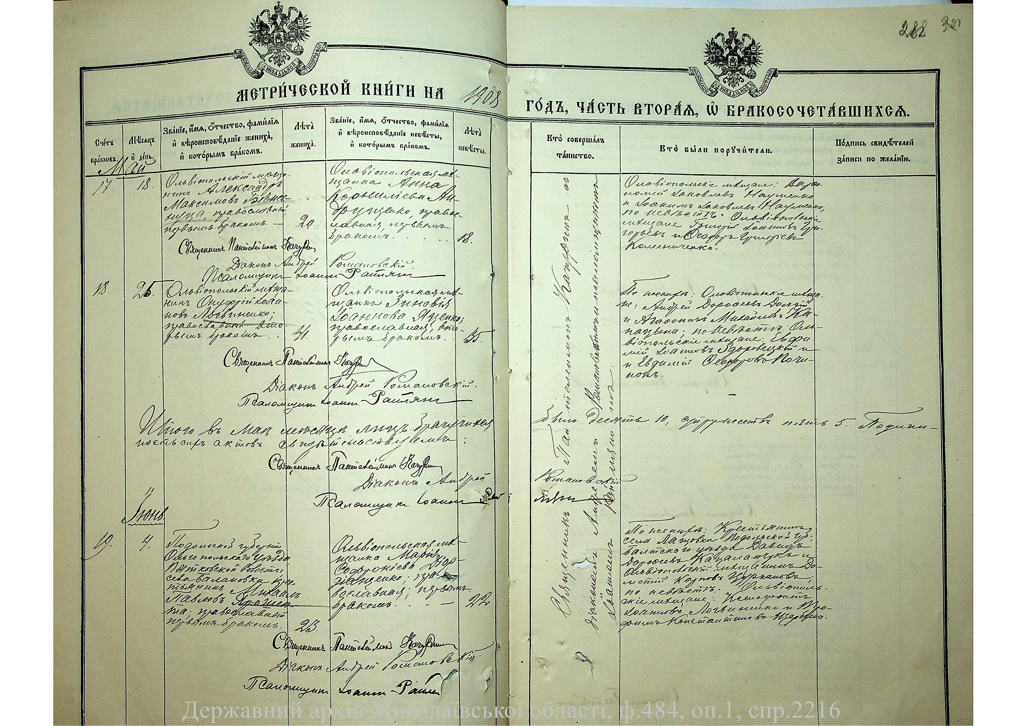 • • • • Справа № 2216 “Метрична книга: Свято-Варваринська церква, с. Ольвіополь, Єлисаветградський повіт, Херсонська губернія: про народжених, одружених та померлих”