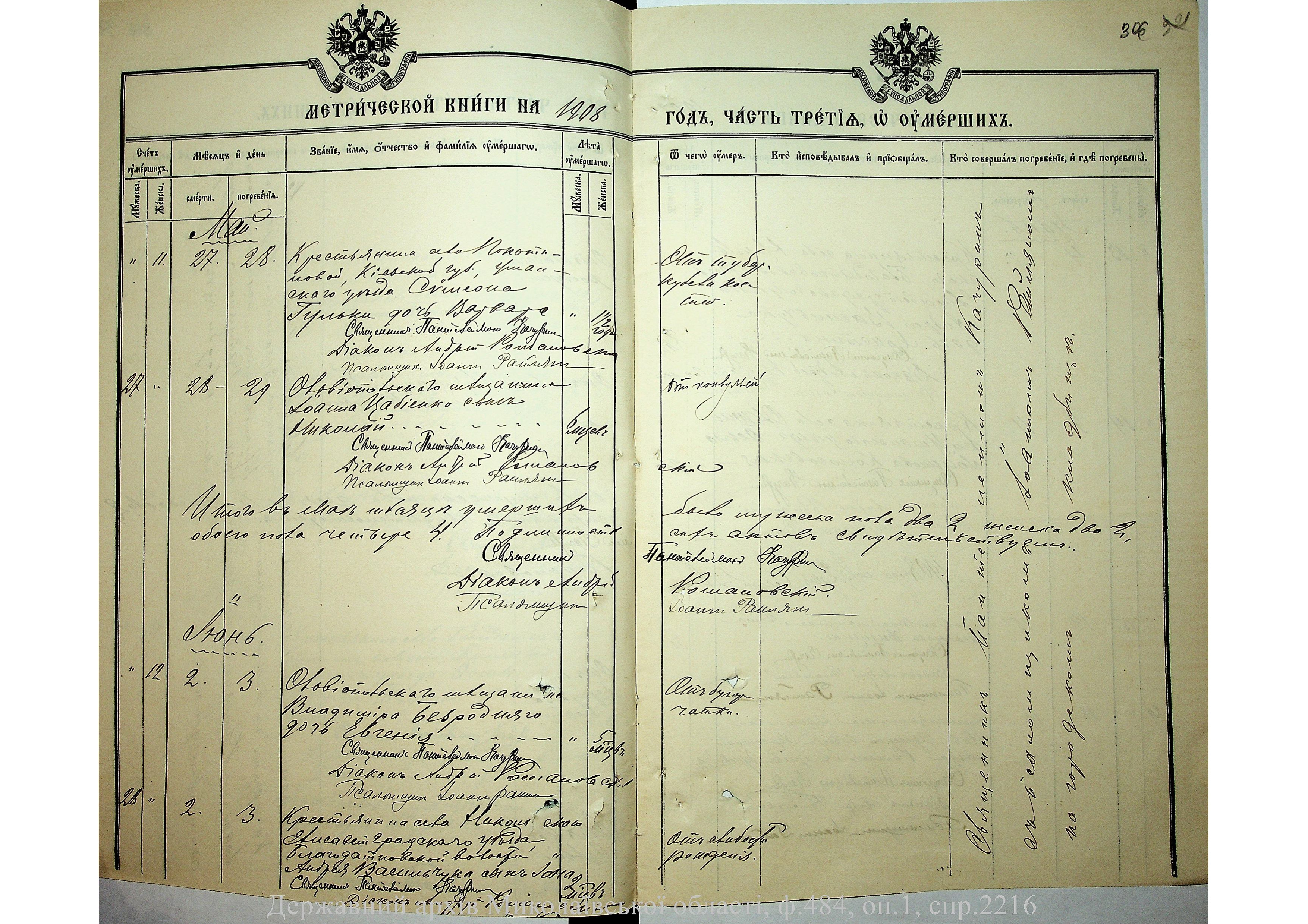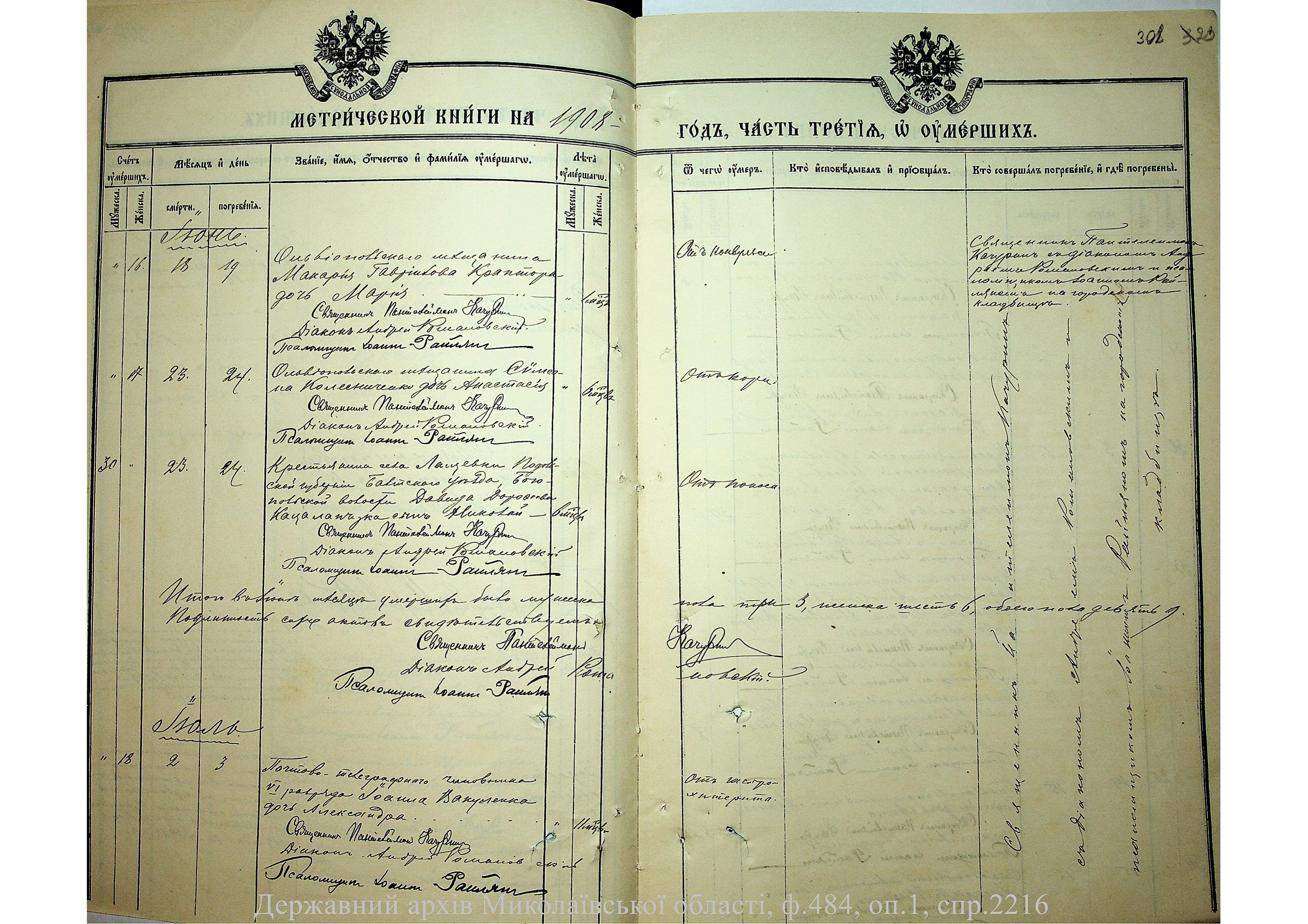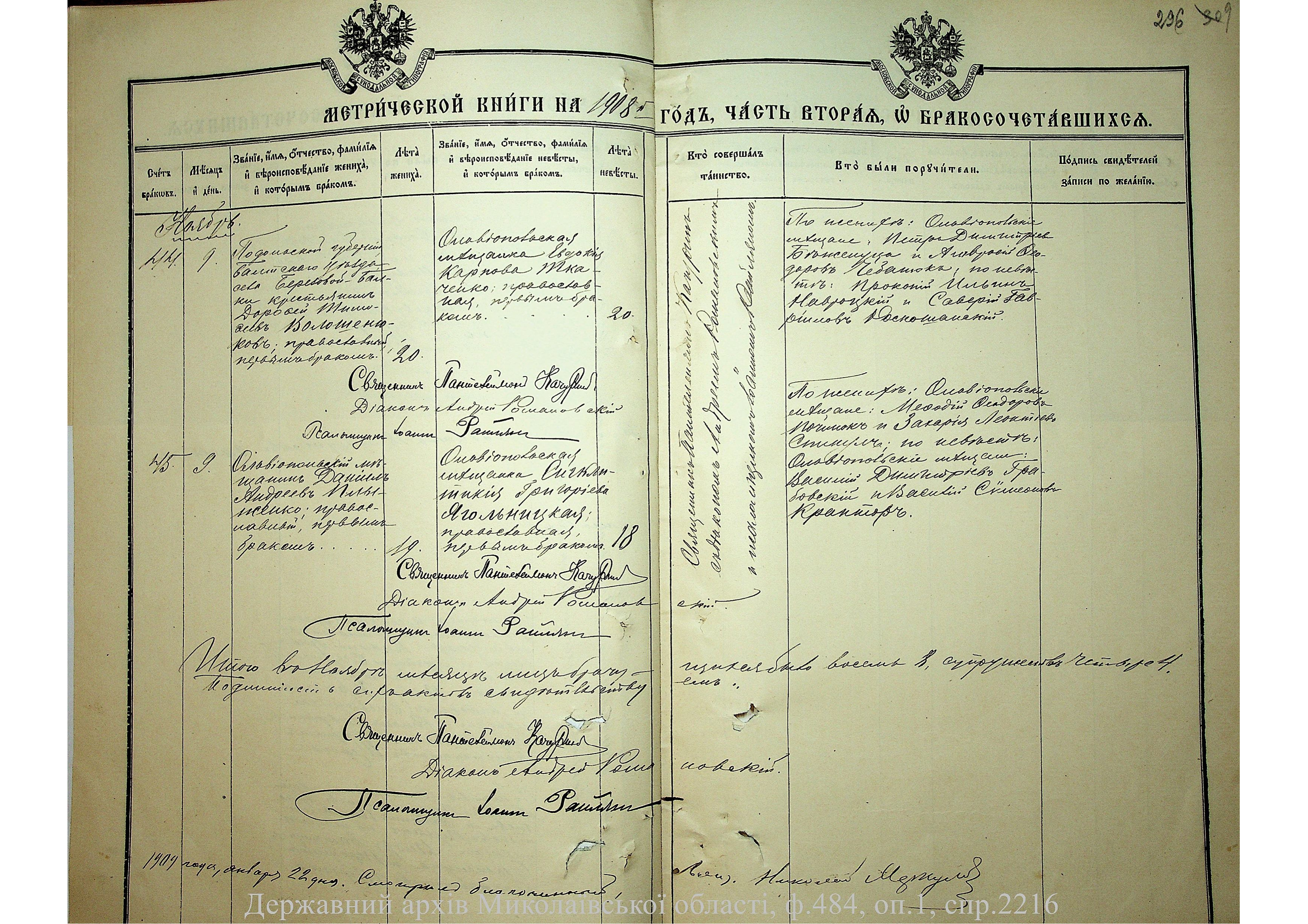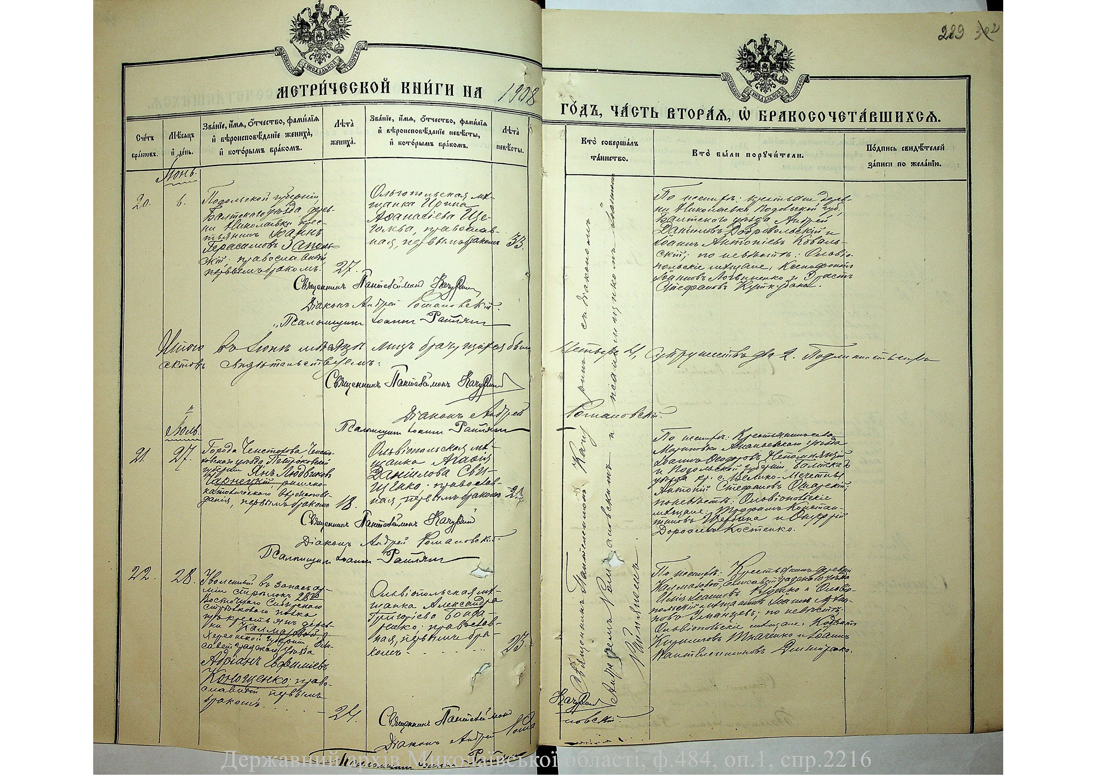◦ ◦ Фонд № 484 “Колекція метричних книг установ релігійних культів, що існували на території Миколаївської області”