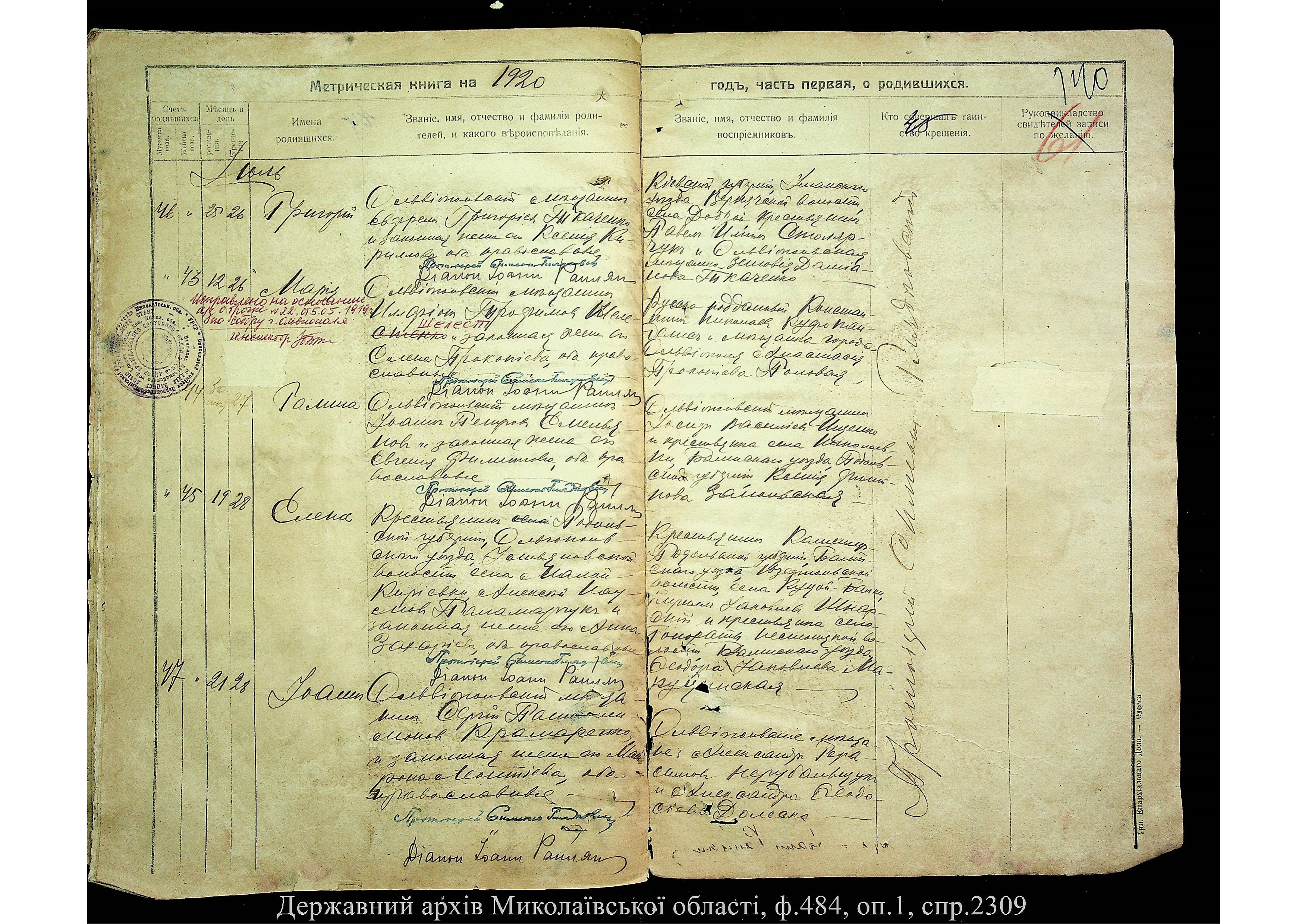 Фонд 484 / Опис 1 / Справа 2309