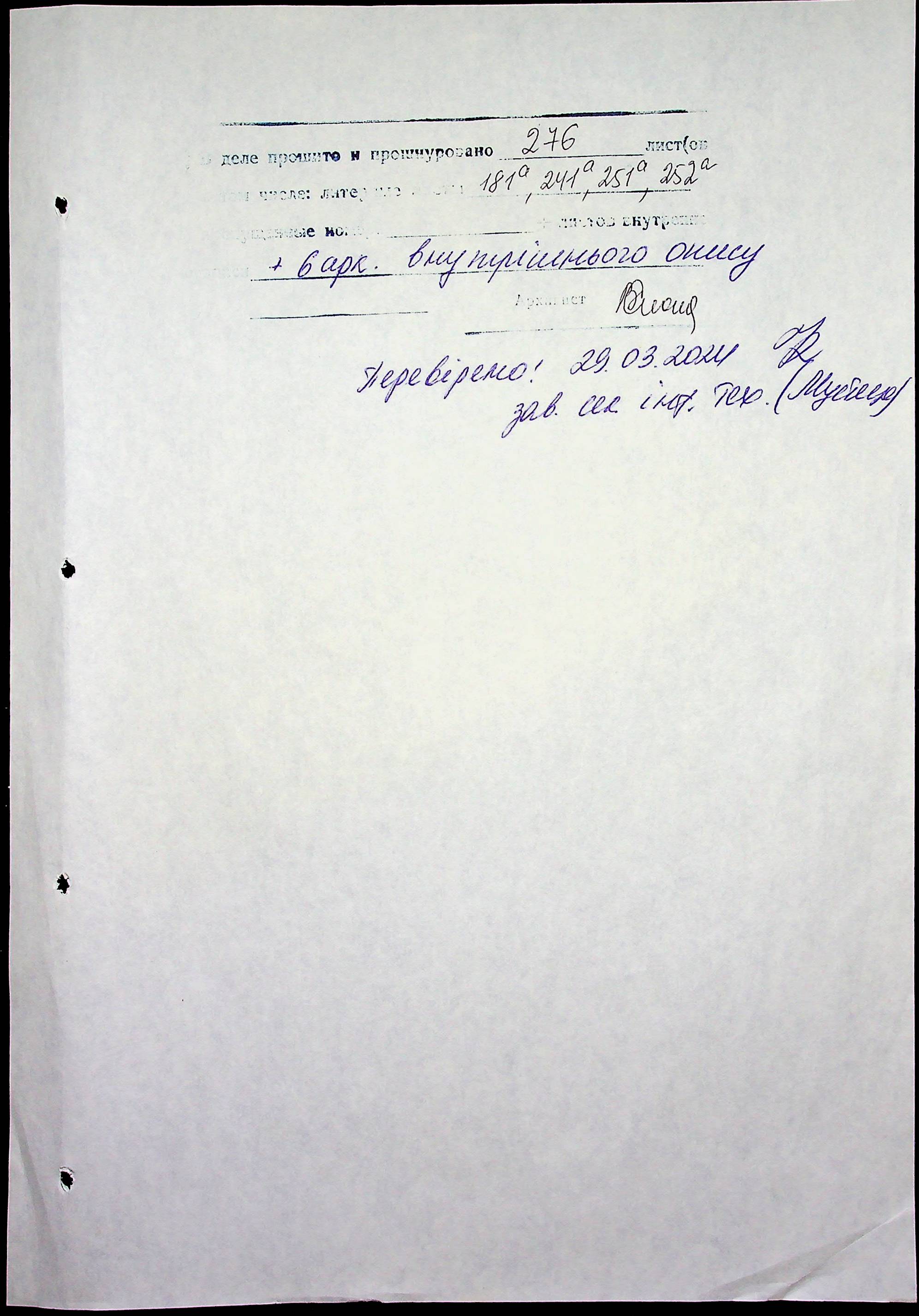 ◦ ◦ ◦ Опис № 1 справ постійного зберігання за 2009-2010 роки