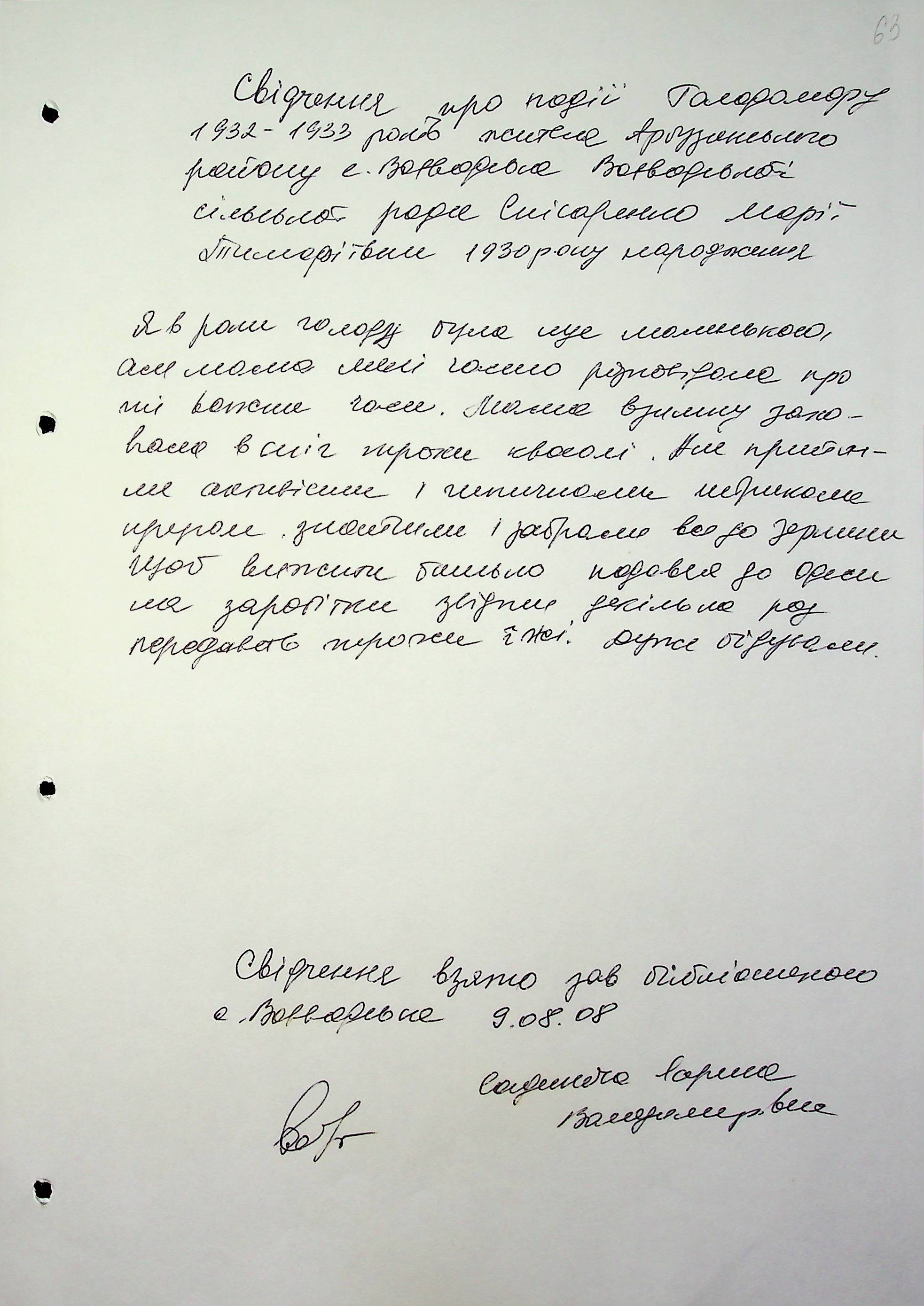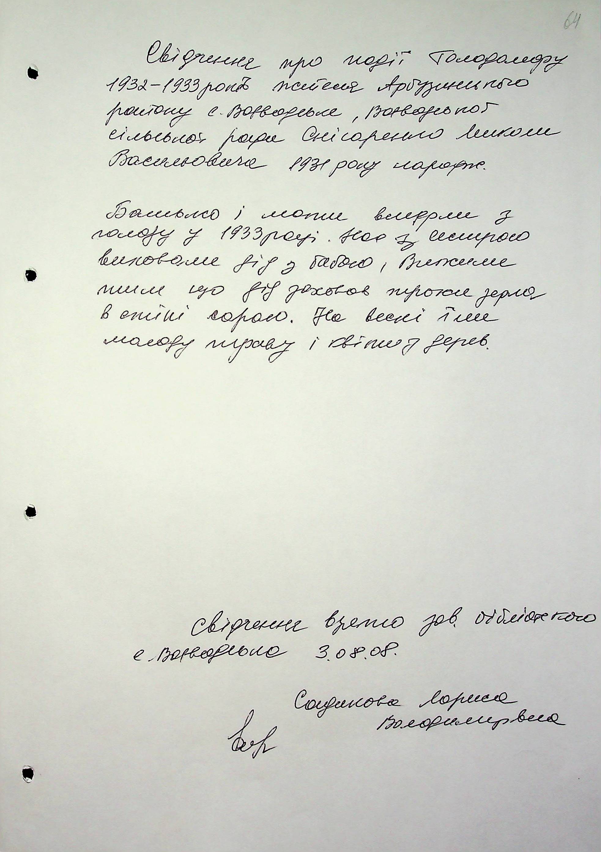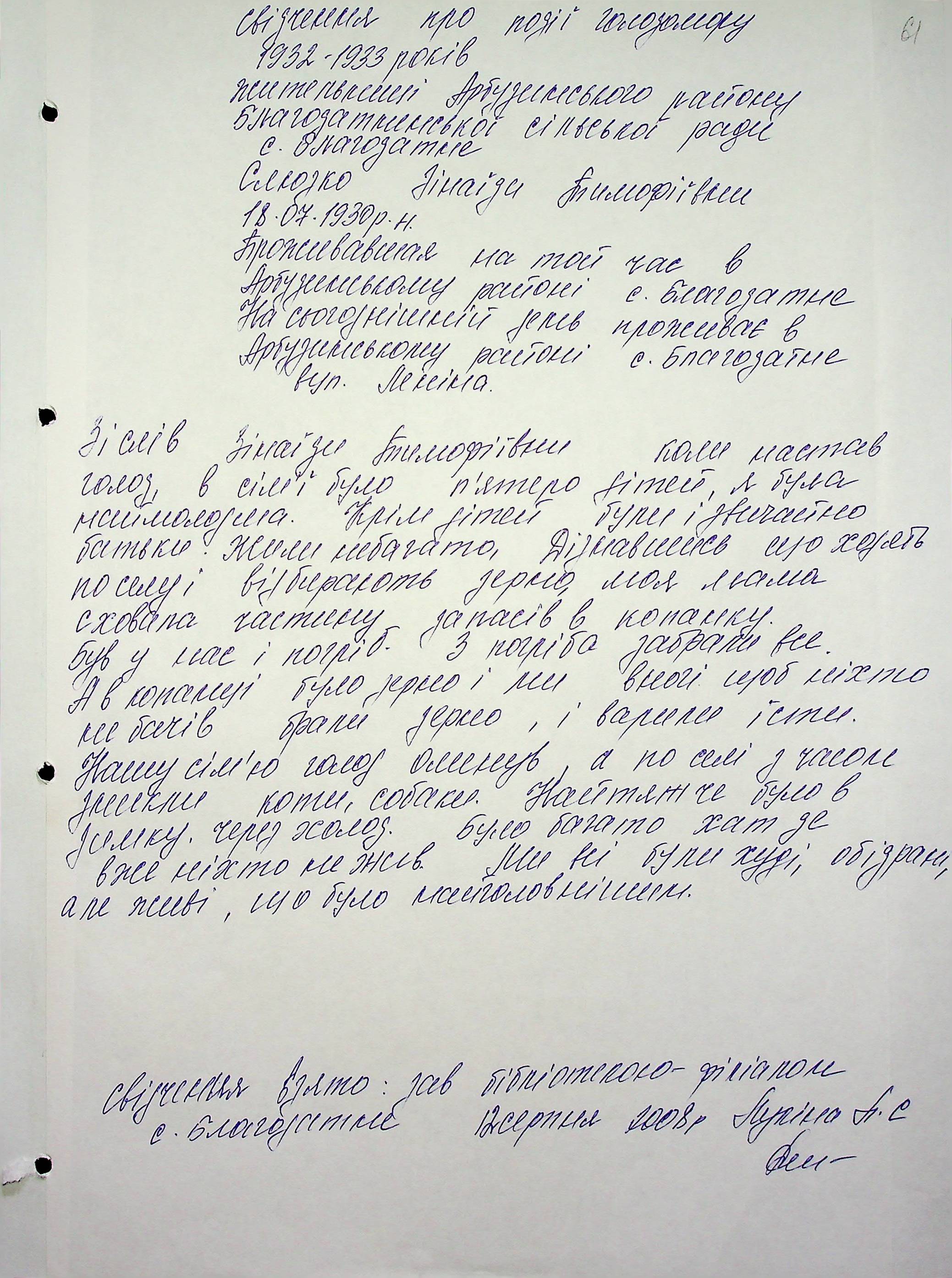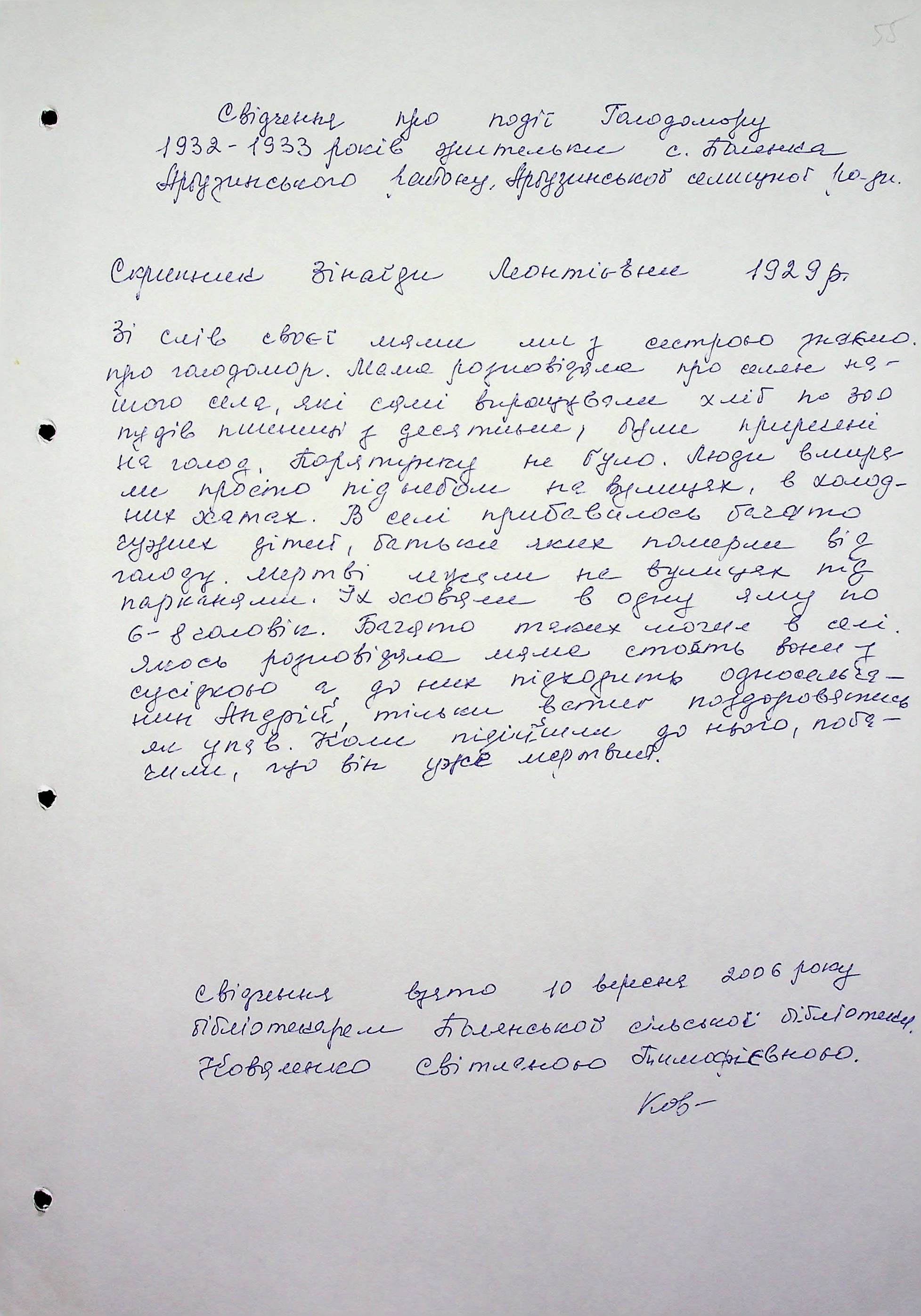 ◦ ◦ Фонд № 6146 “Колекція свідчень очевидців Голодомору 1932-1933 рр., нині проживаючих у Миколаївській області”