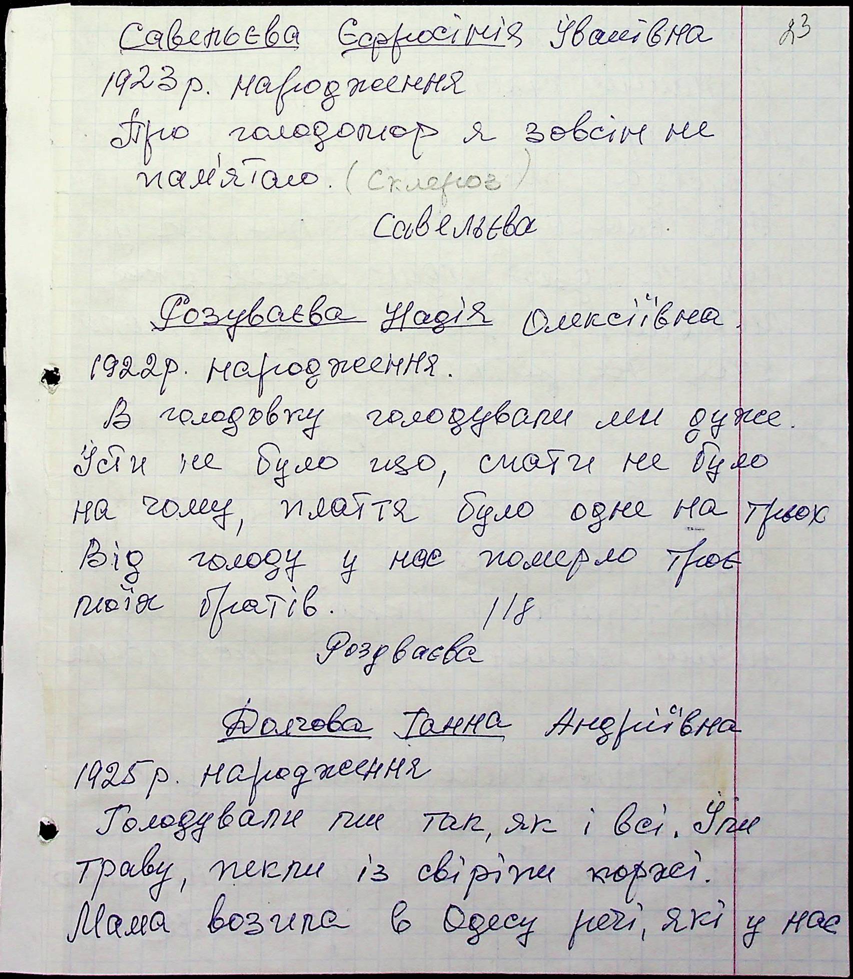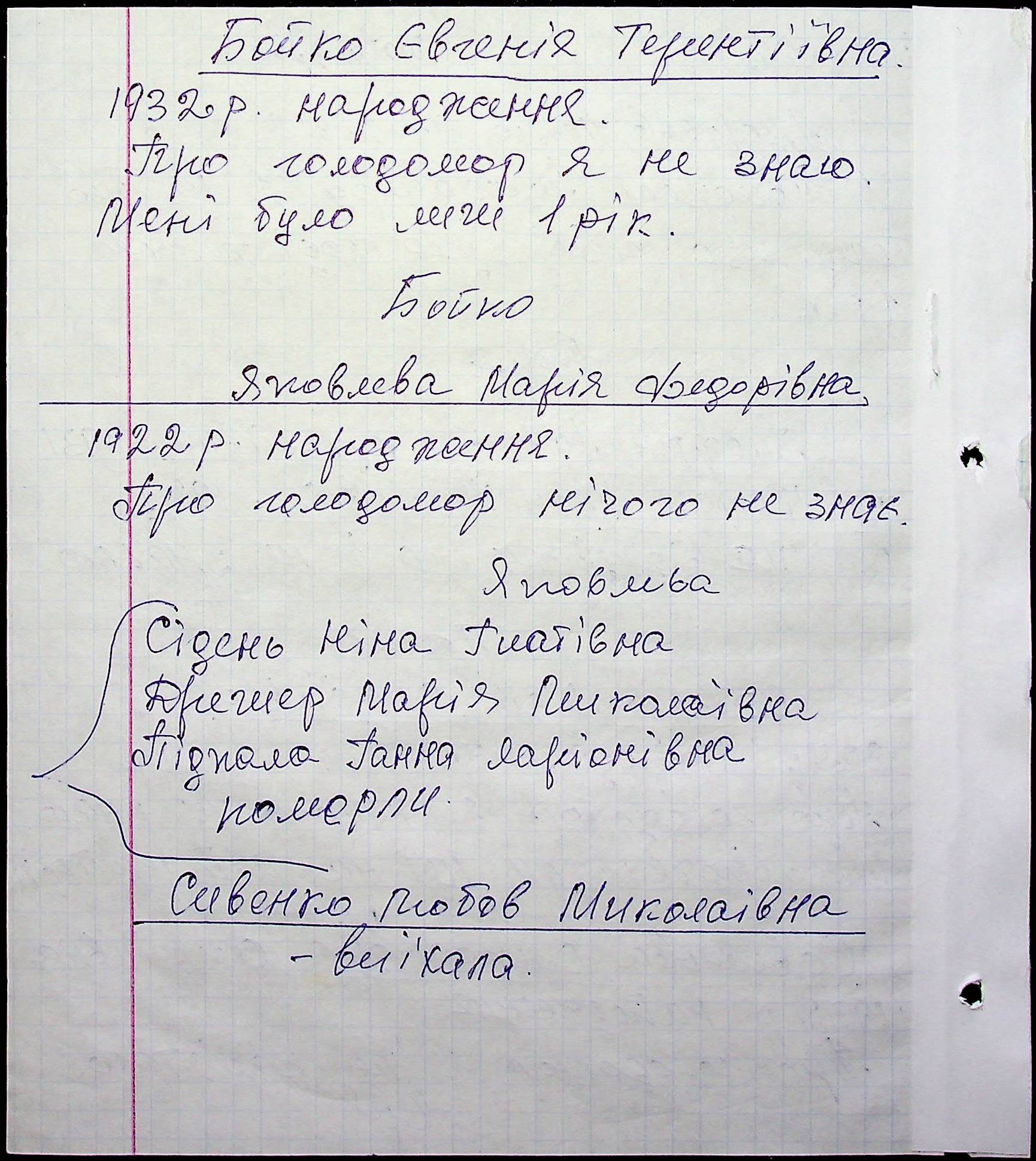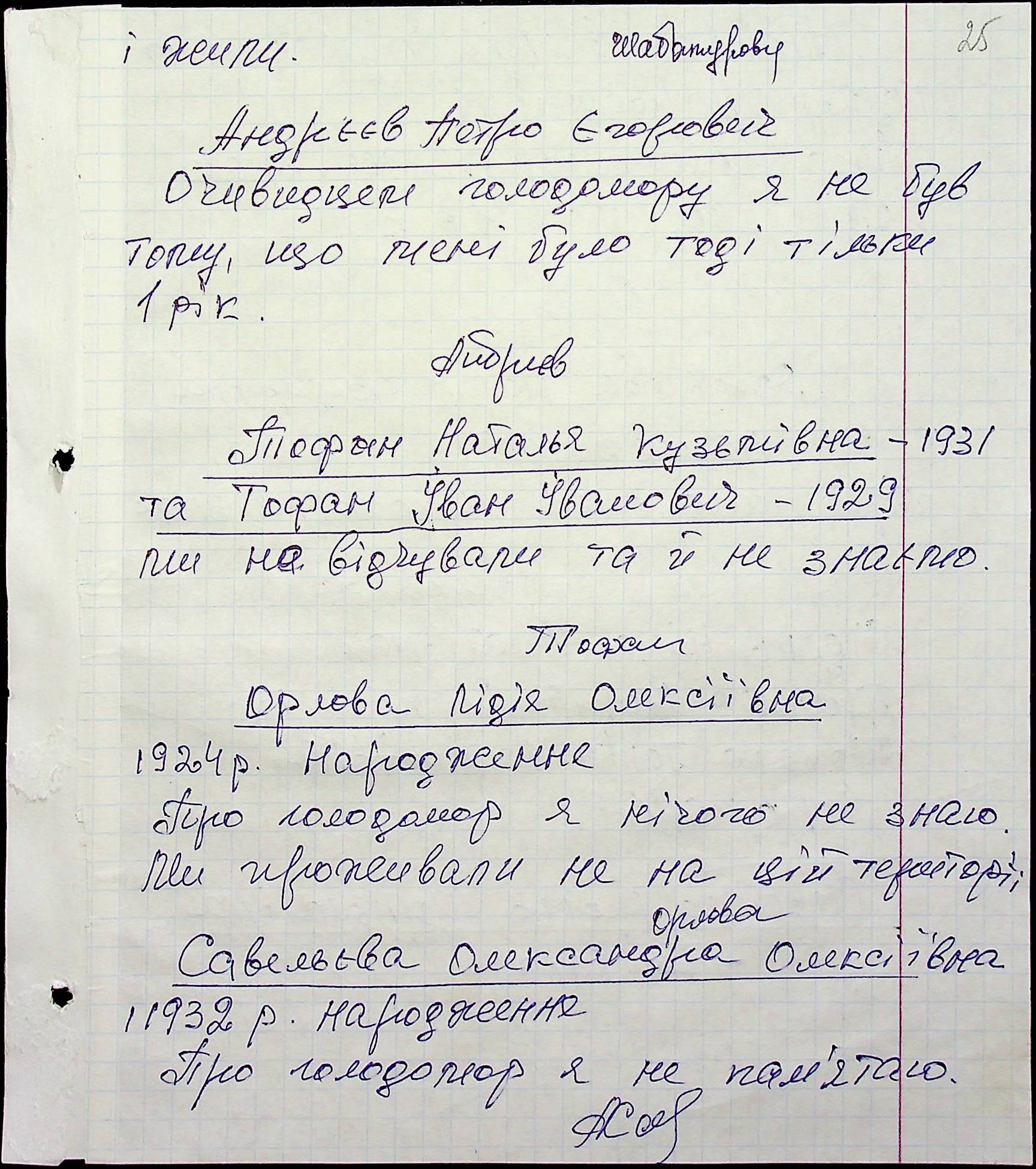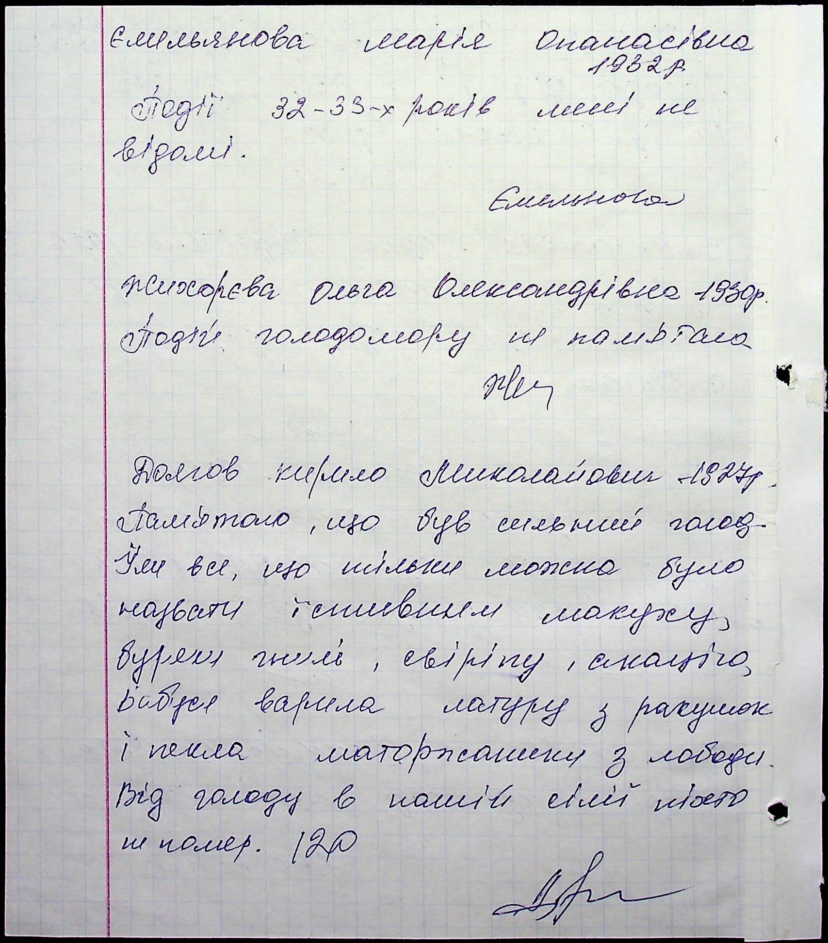 • • • • Справа № 7 “Свідчення очевидців Голодомору 1932-1933 років, які проживають в Арбузинському районі, з прізвищами на літери А–Я (доповнення)”