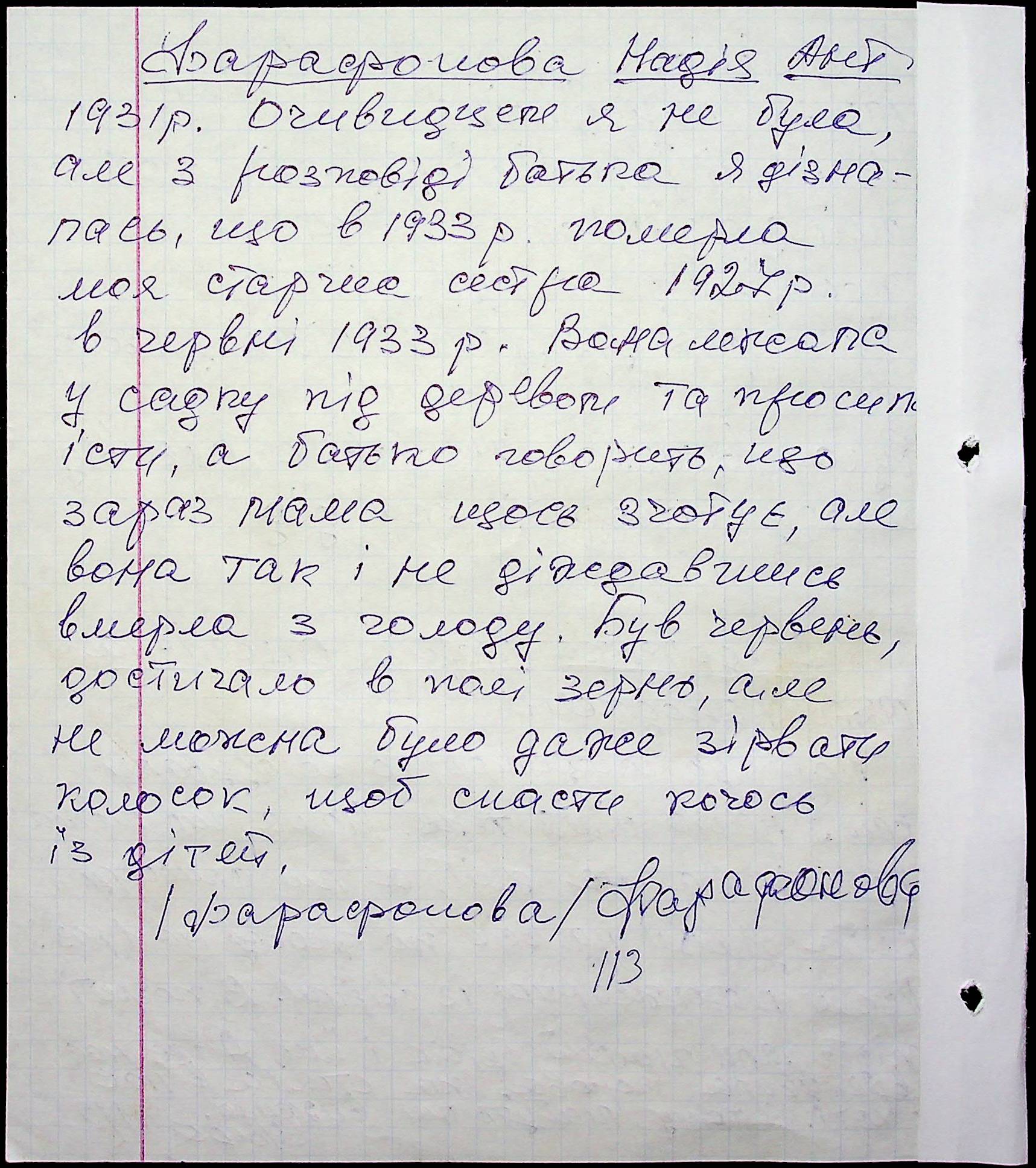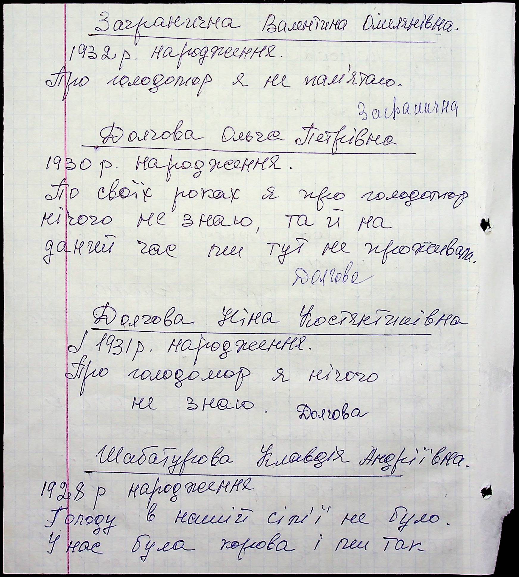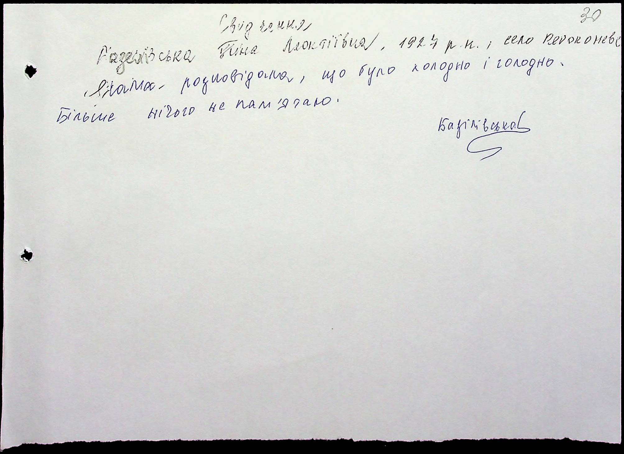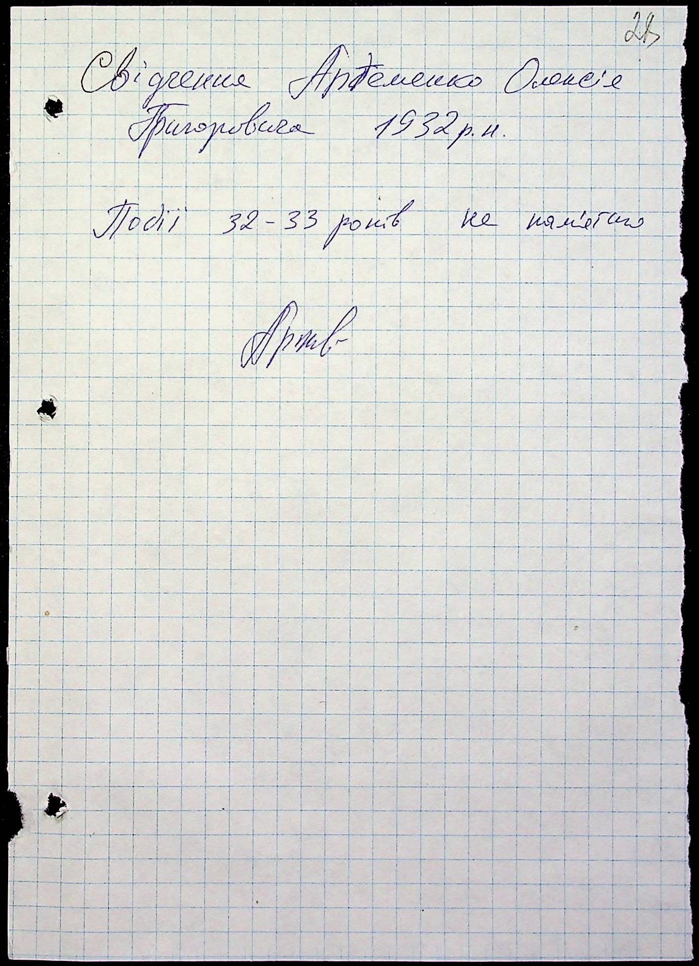 • • • • Справа № 7 “Свідчення очевидців Голодомору 1932-1933 років, які проживають в Арбузинському районі, з прізвищами на літери А–Я (доповнення)”