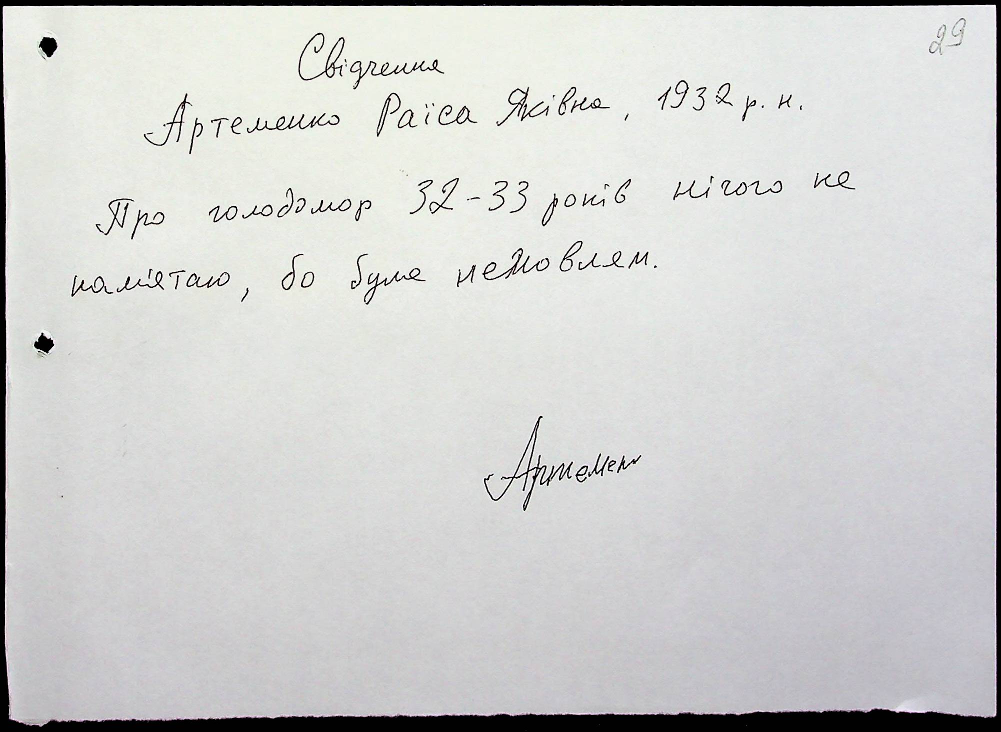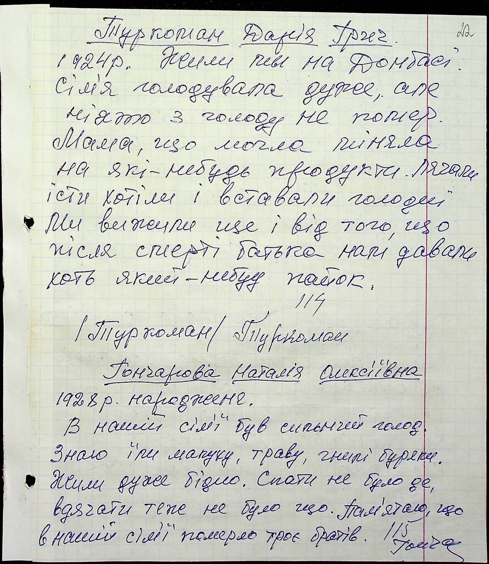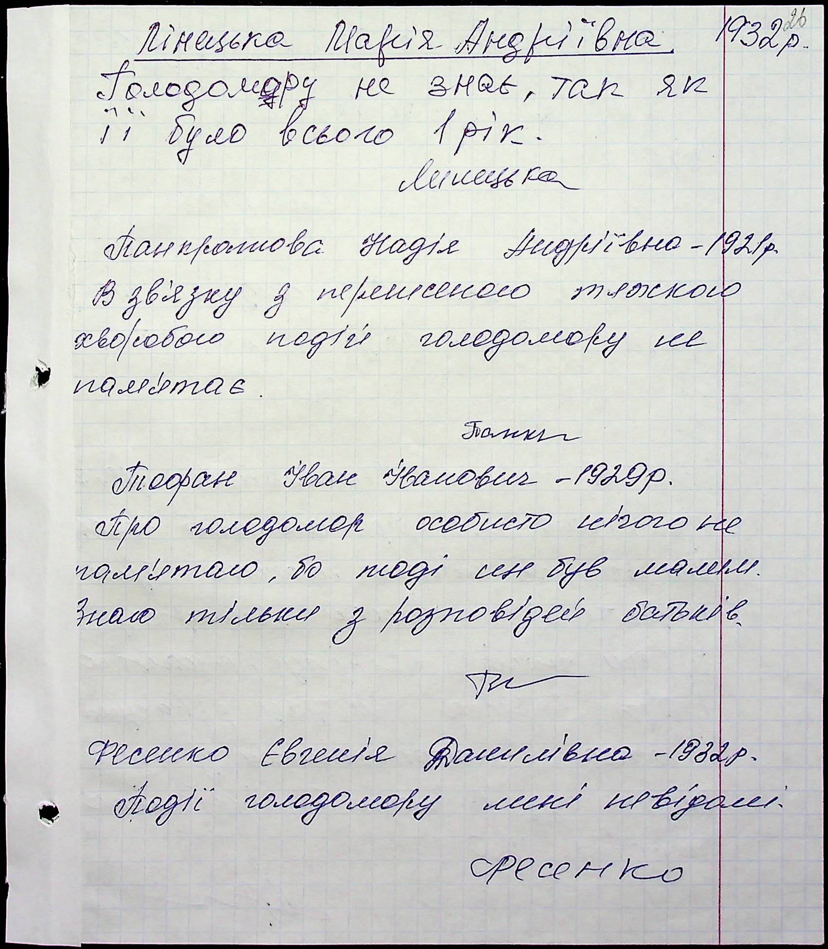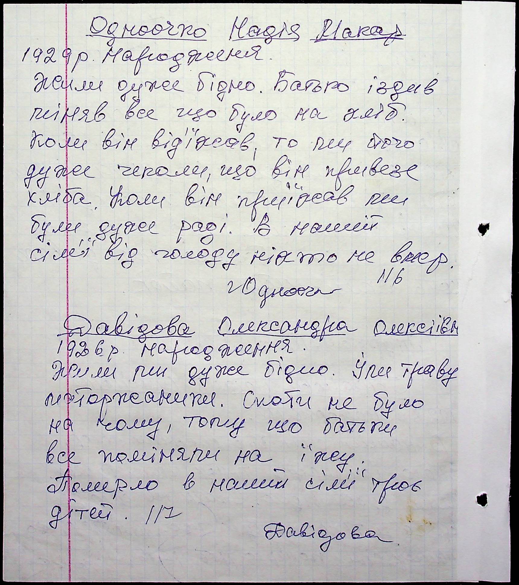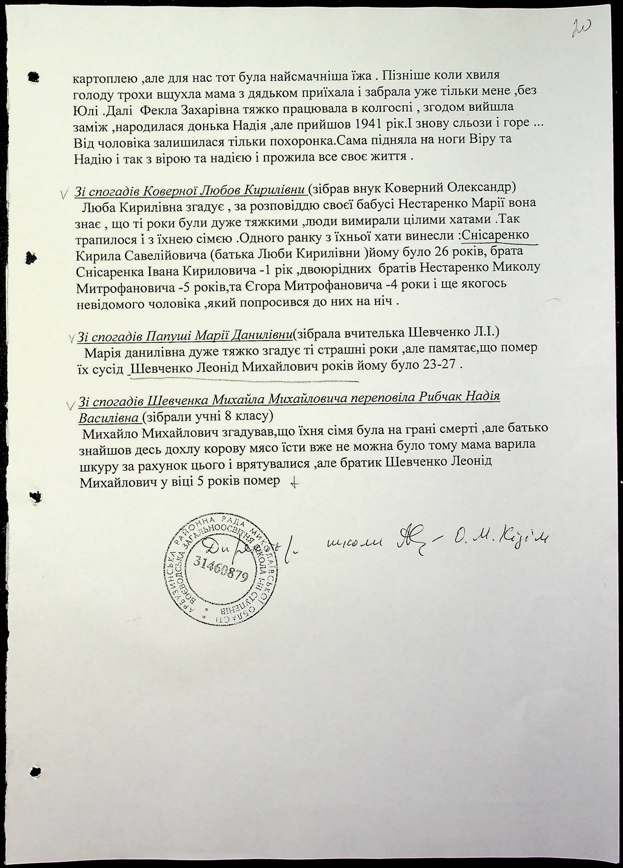 • • • • Справа № 7 “Свідчення очевидців Голодомору 1932-1933 років, які проживають в Арбузинському районі, з прізвищами на літери А–Я (доповнення)”