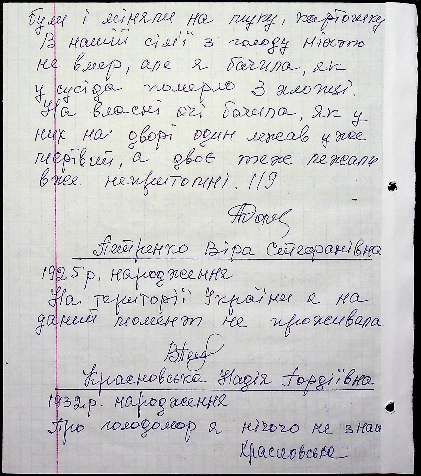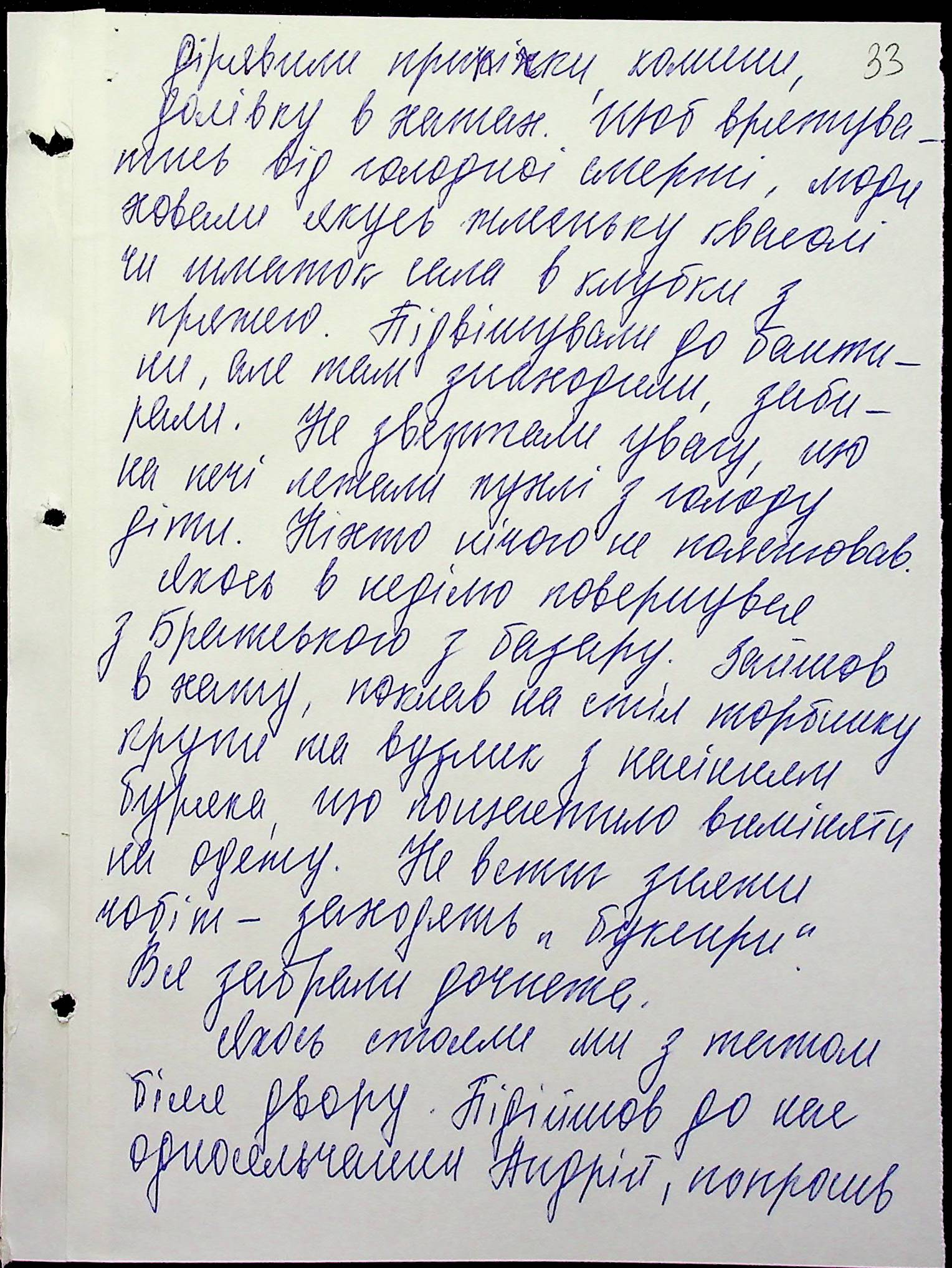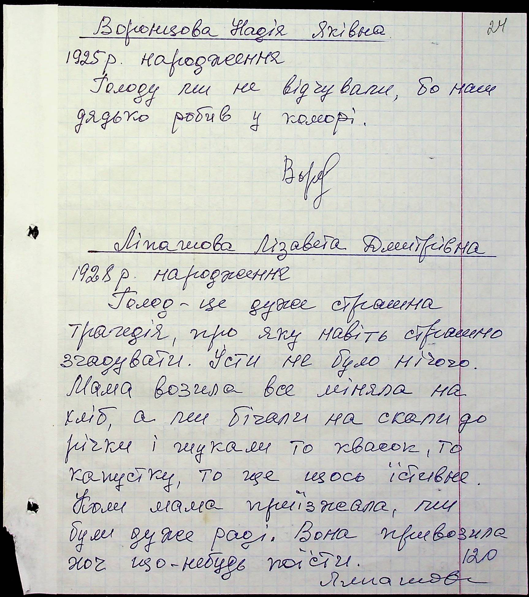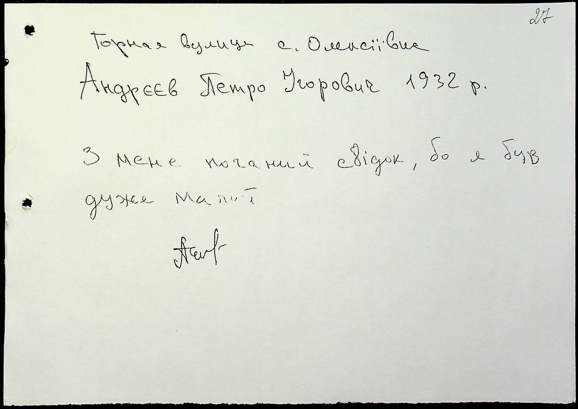 • • • • Справа № 7 “Свідчення очевидців Голодомору 1932-1933 років, які проживають в Арбузинському районі, з прізвищами на літери А–Я (доповнення)”