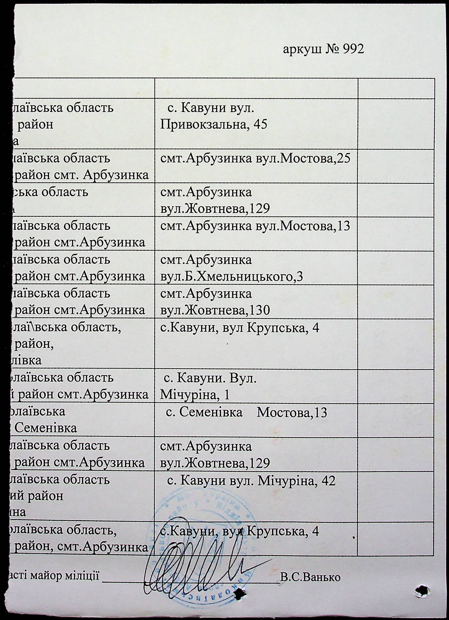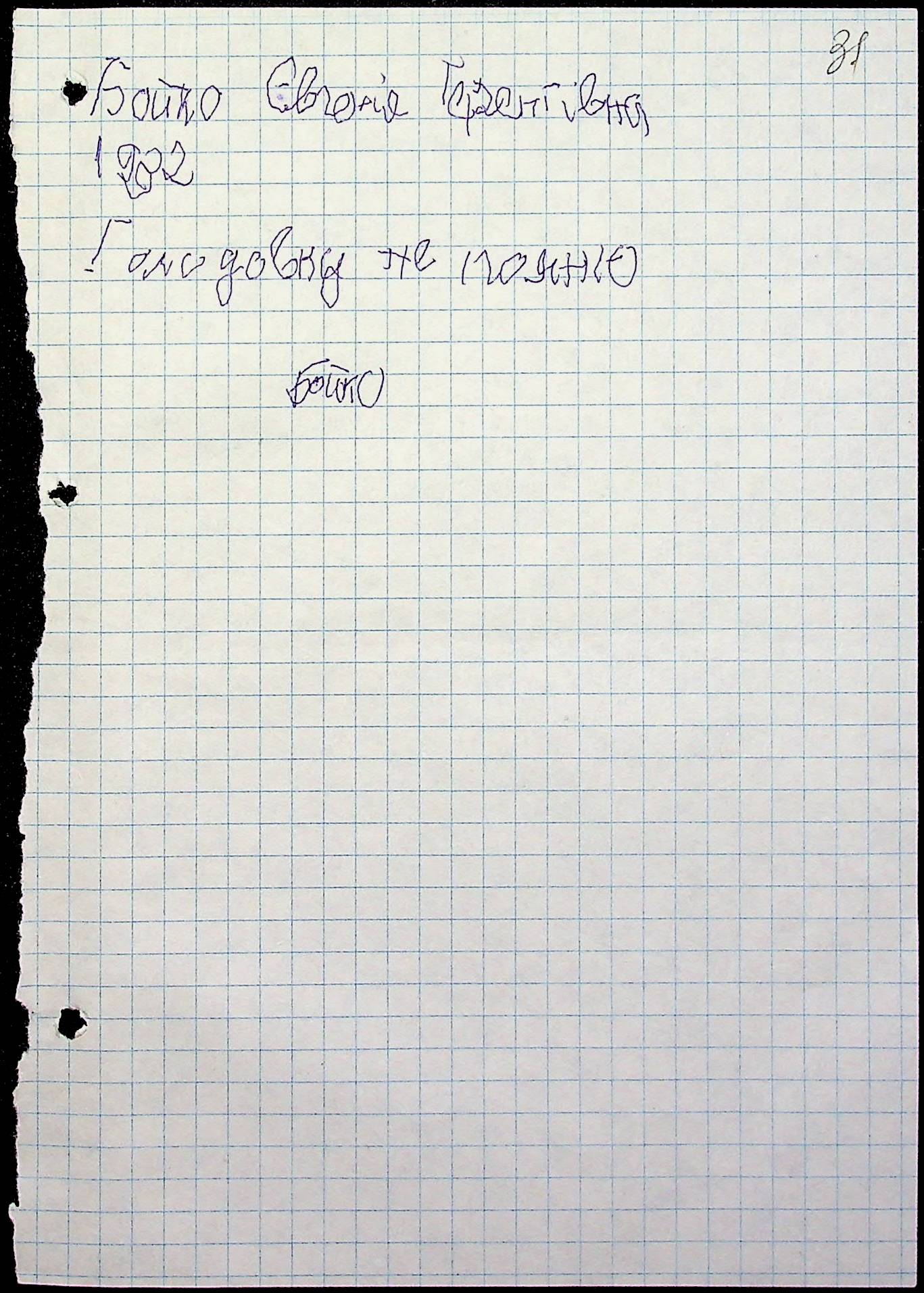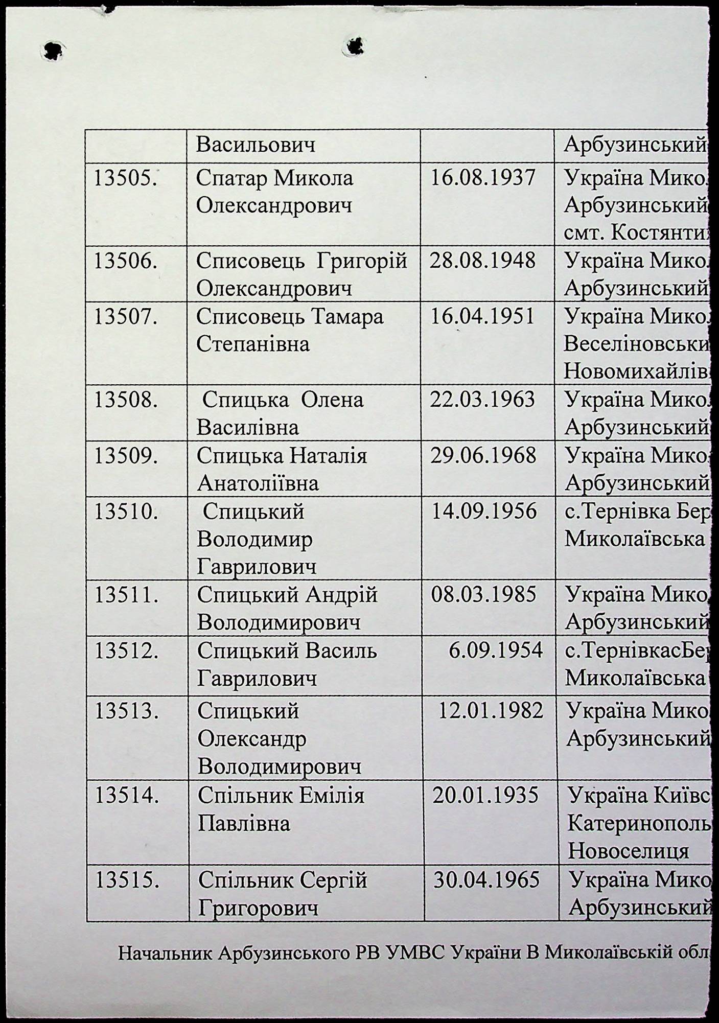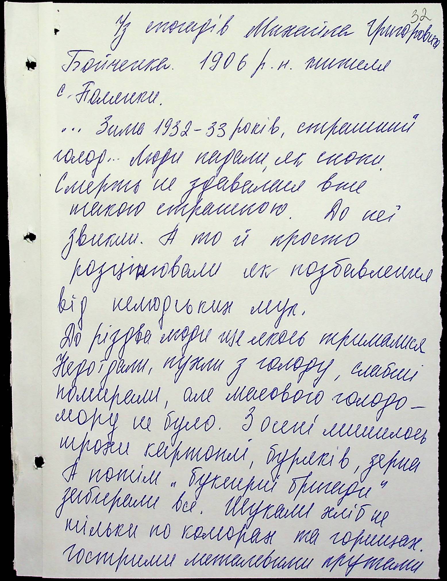 • • • • Справа № 7 “Свідчення очевидців Голодомору 1932-1933 років, які проживають в Арбузинському районі, з прізвищами на літери А–Я (доповнення)”