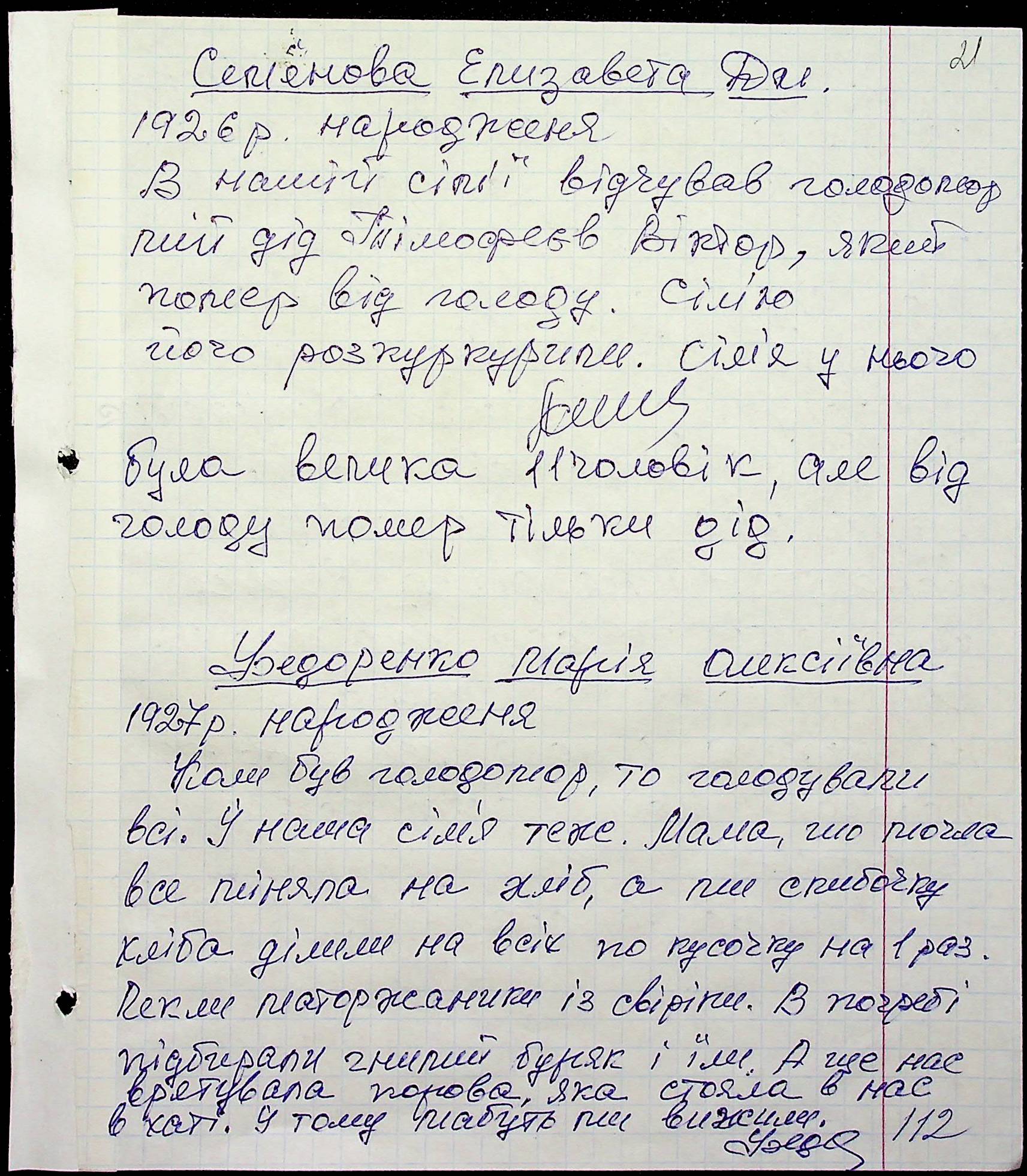 ◦ ◦ Фонд № 6146 “Колекція свідчень очевидців Голодомору 1932-1933 рр., нині проживаючих у Миколаївській області”