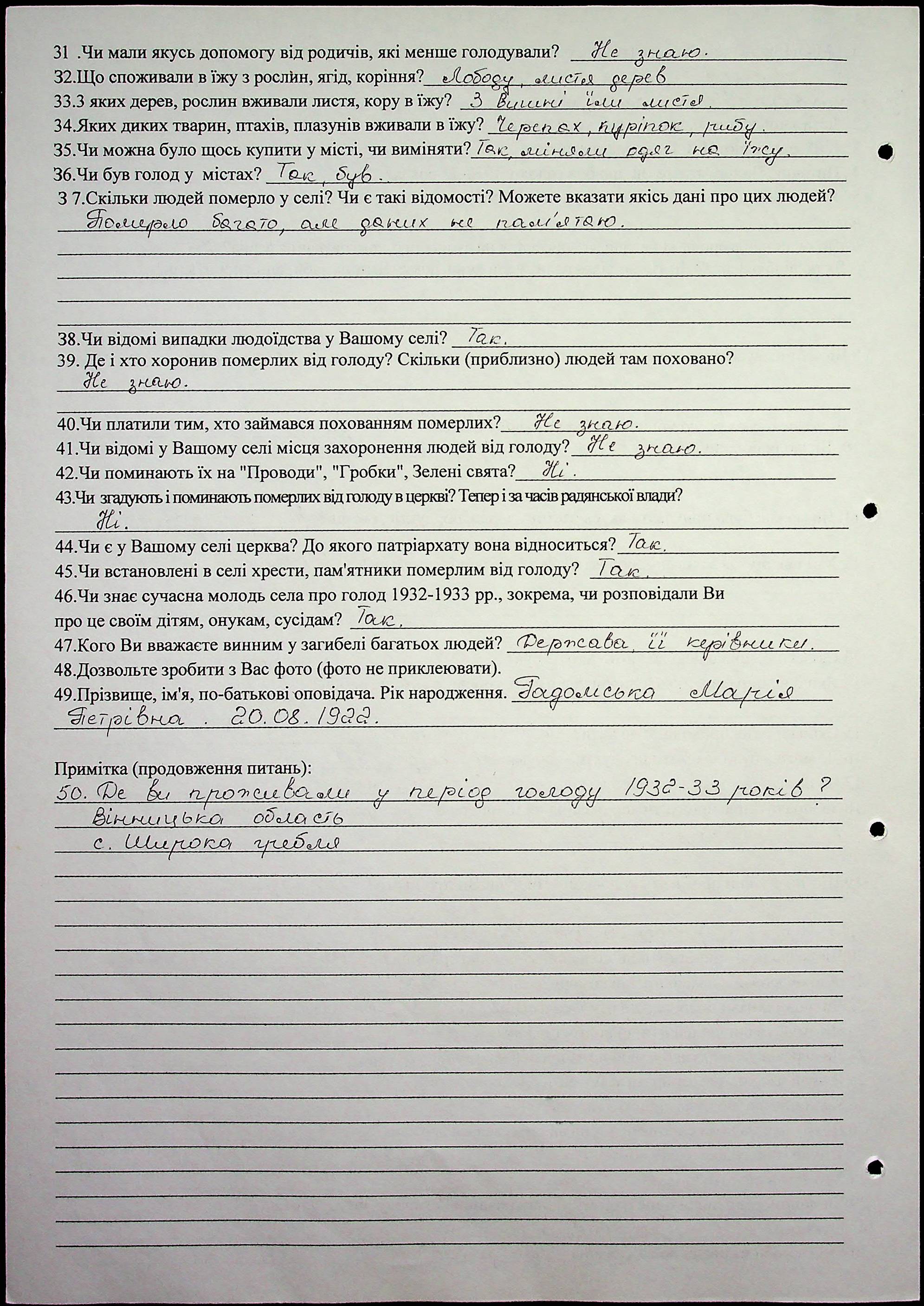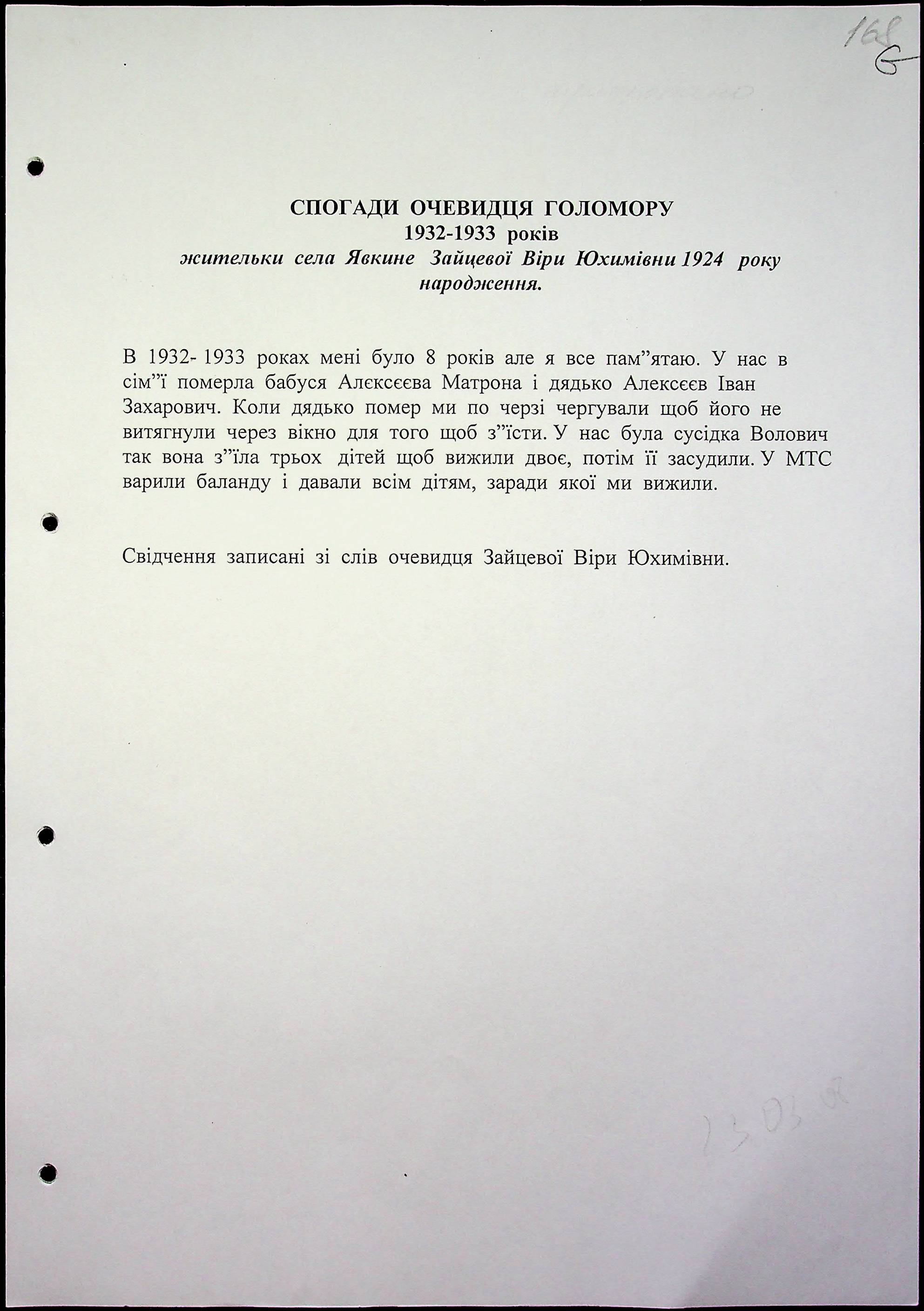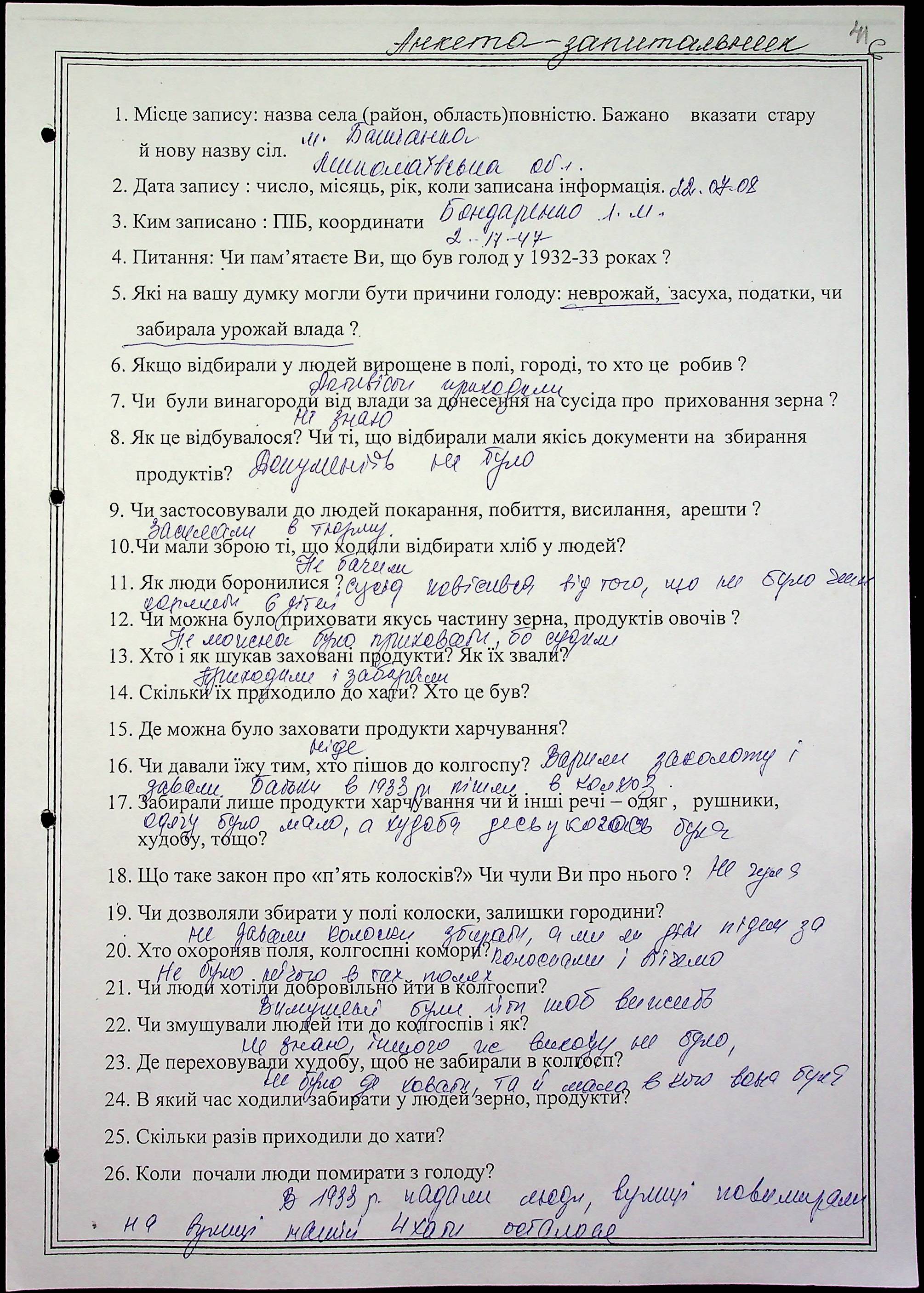 • • • • Справа № 8 “Свідчення очевидців Голодомору 1932-1933 років, які проживають у Баштанському районі, з прізвищами на літери А–І”