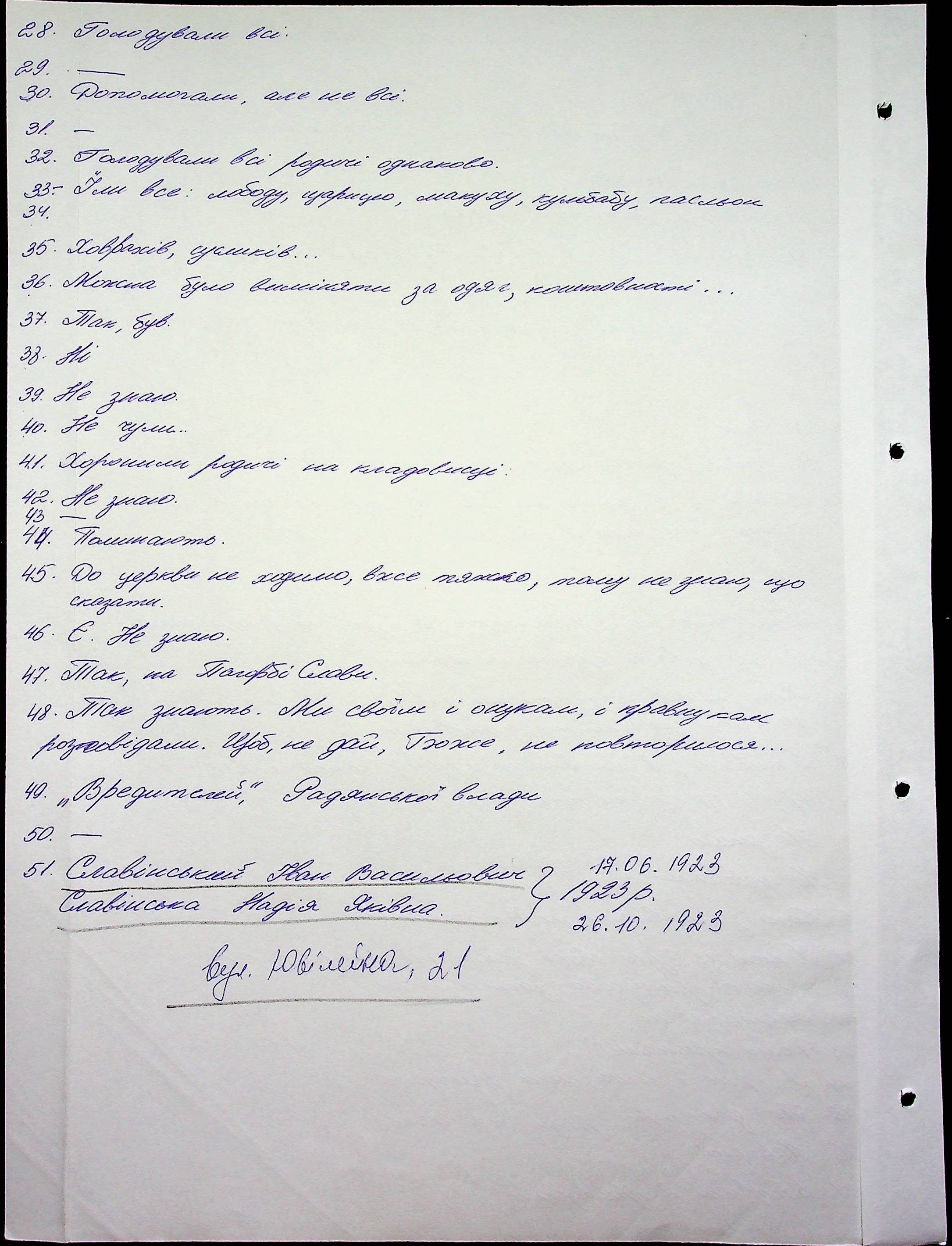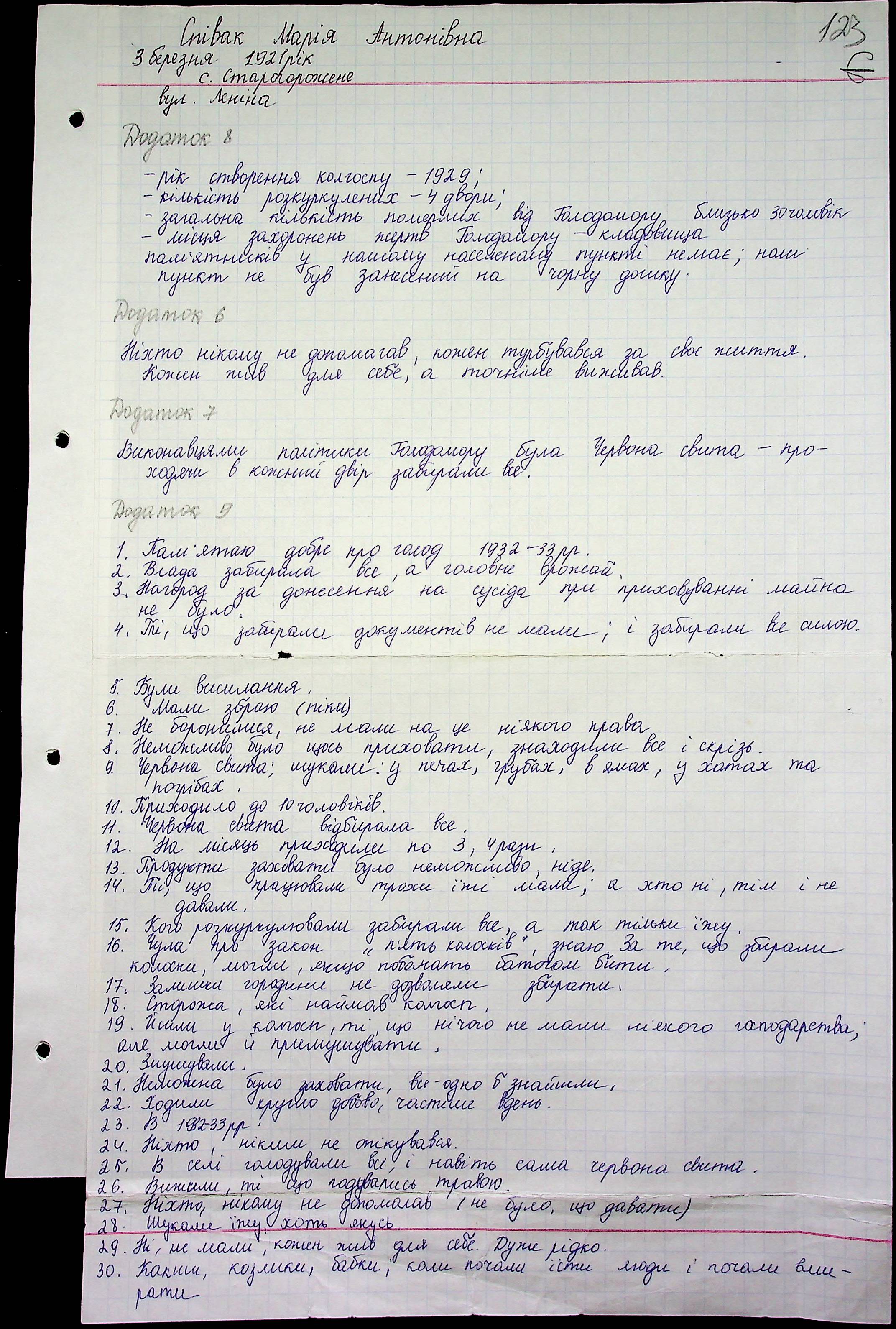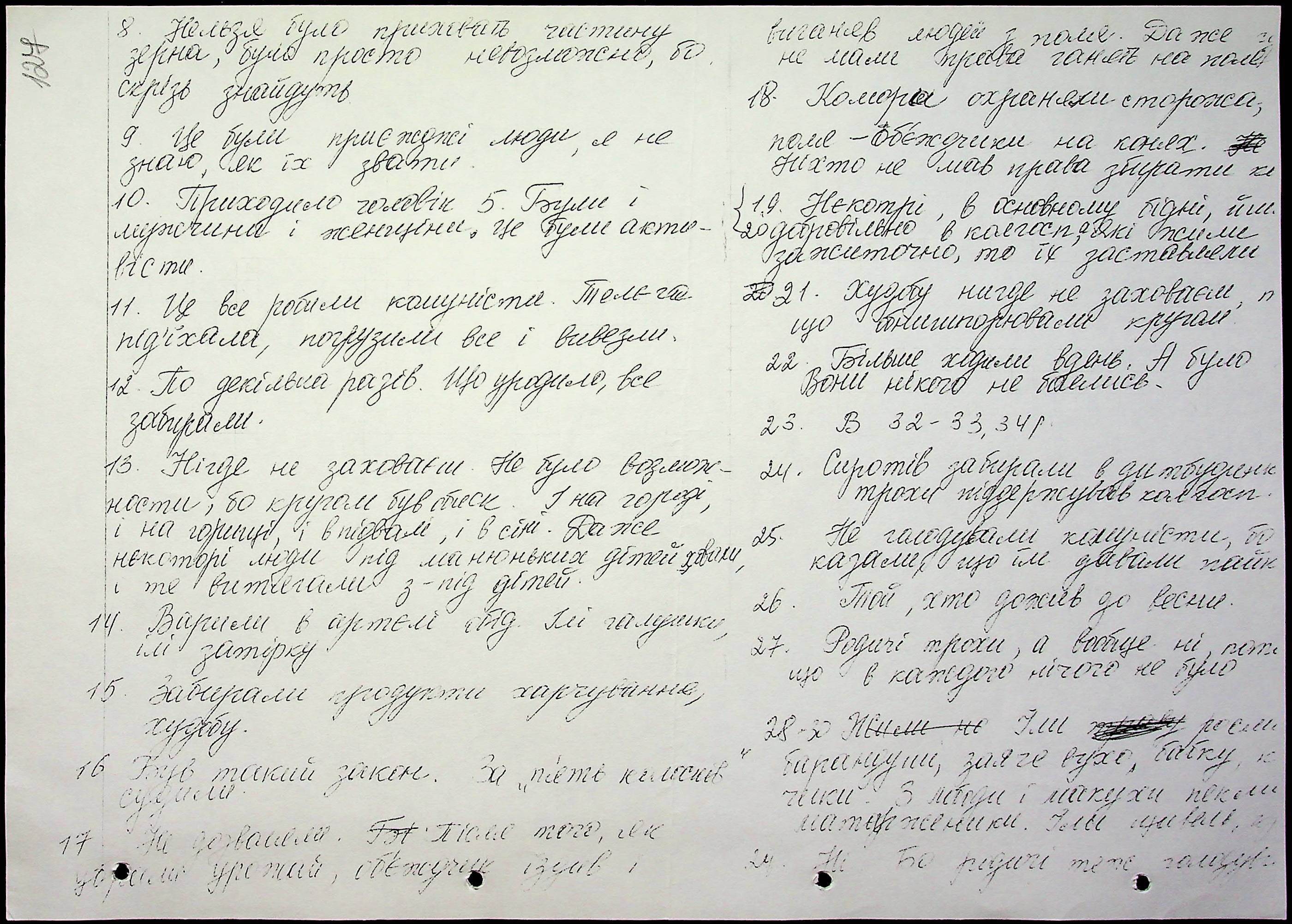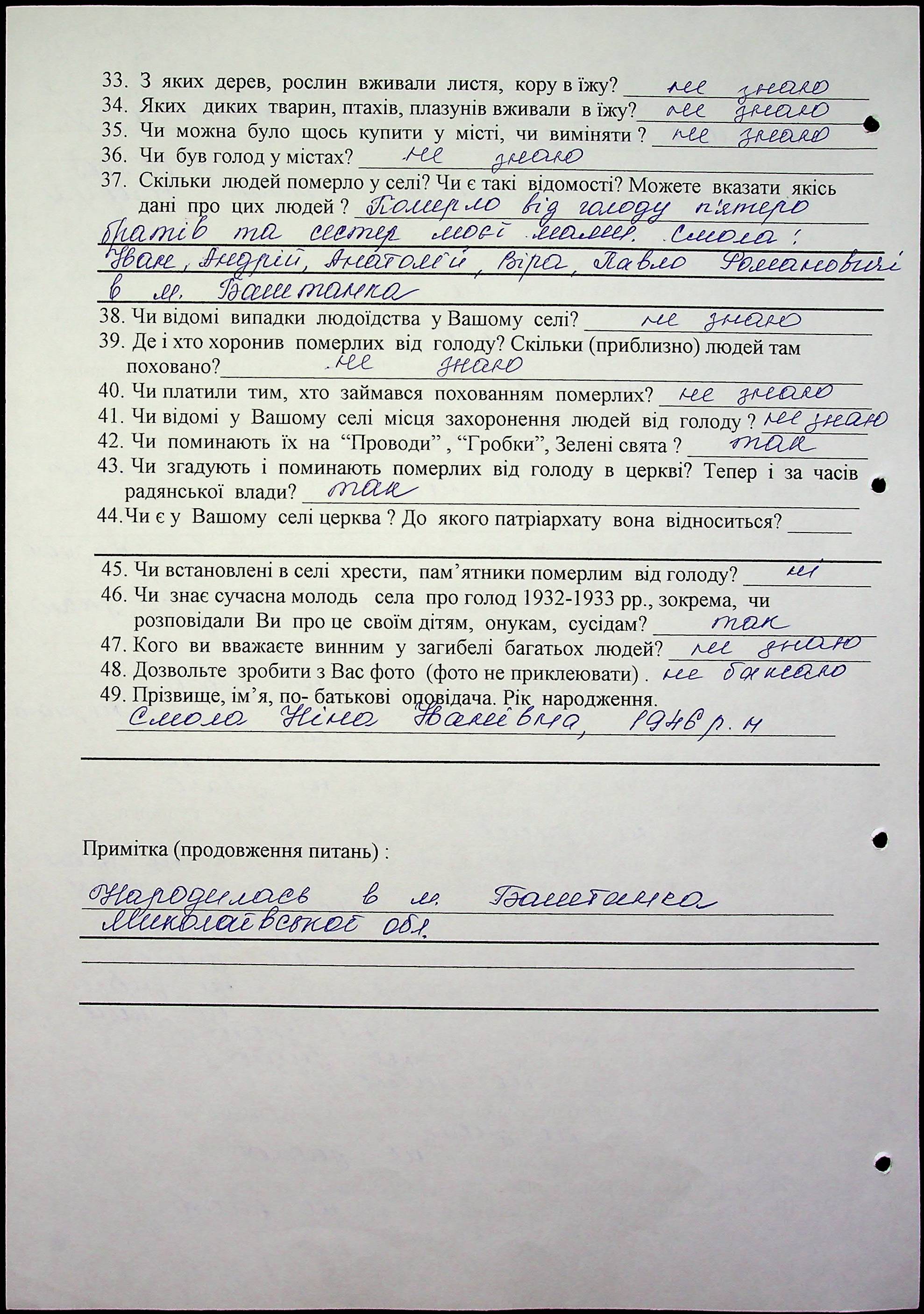 • • • • Справа № 10 “Свідчення очевидців Голодомору 1932-1933 років, які проживають у Баштанському районі, з прізвищами на літери П–Я”