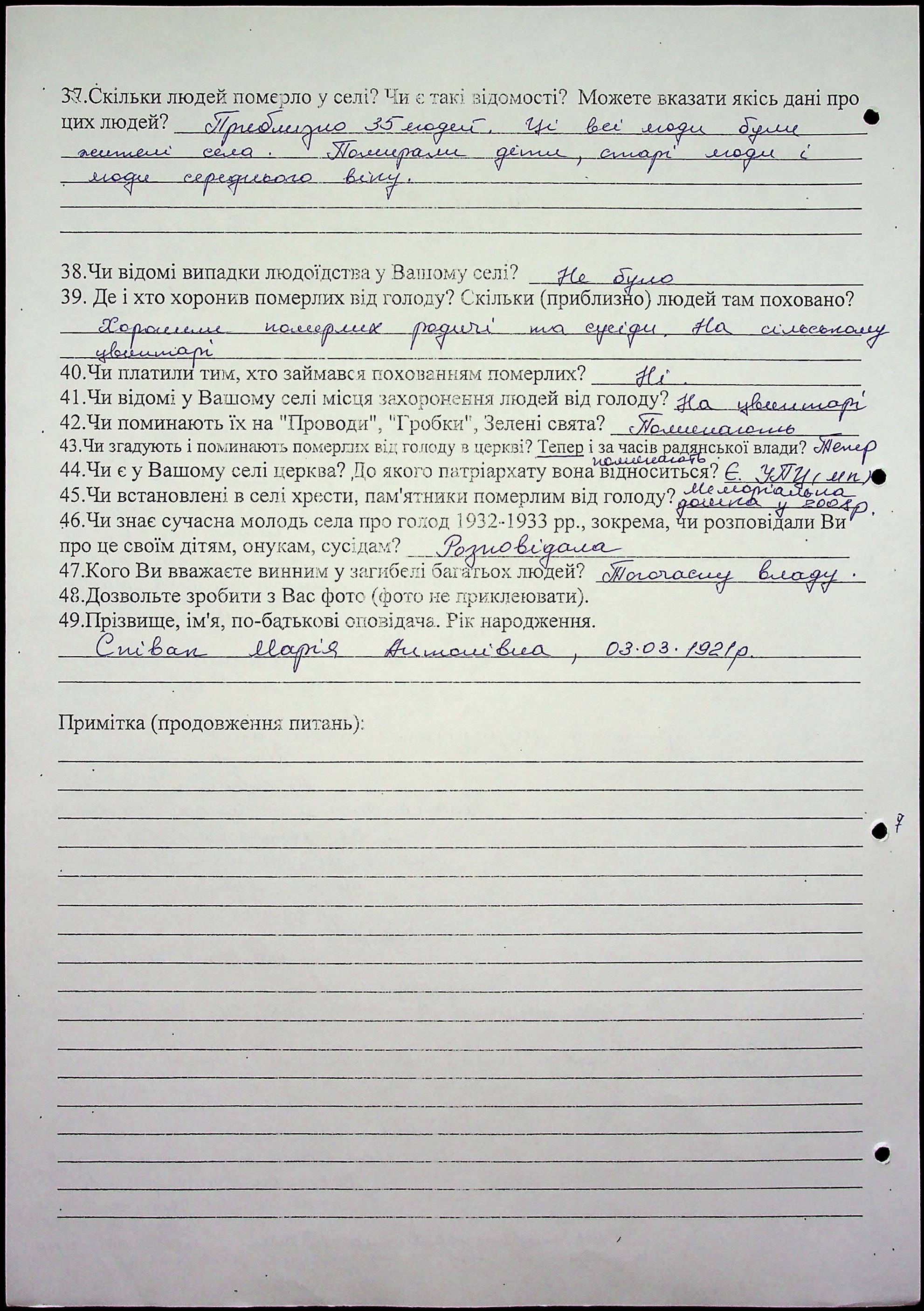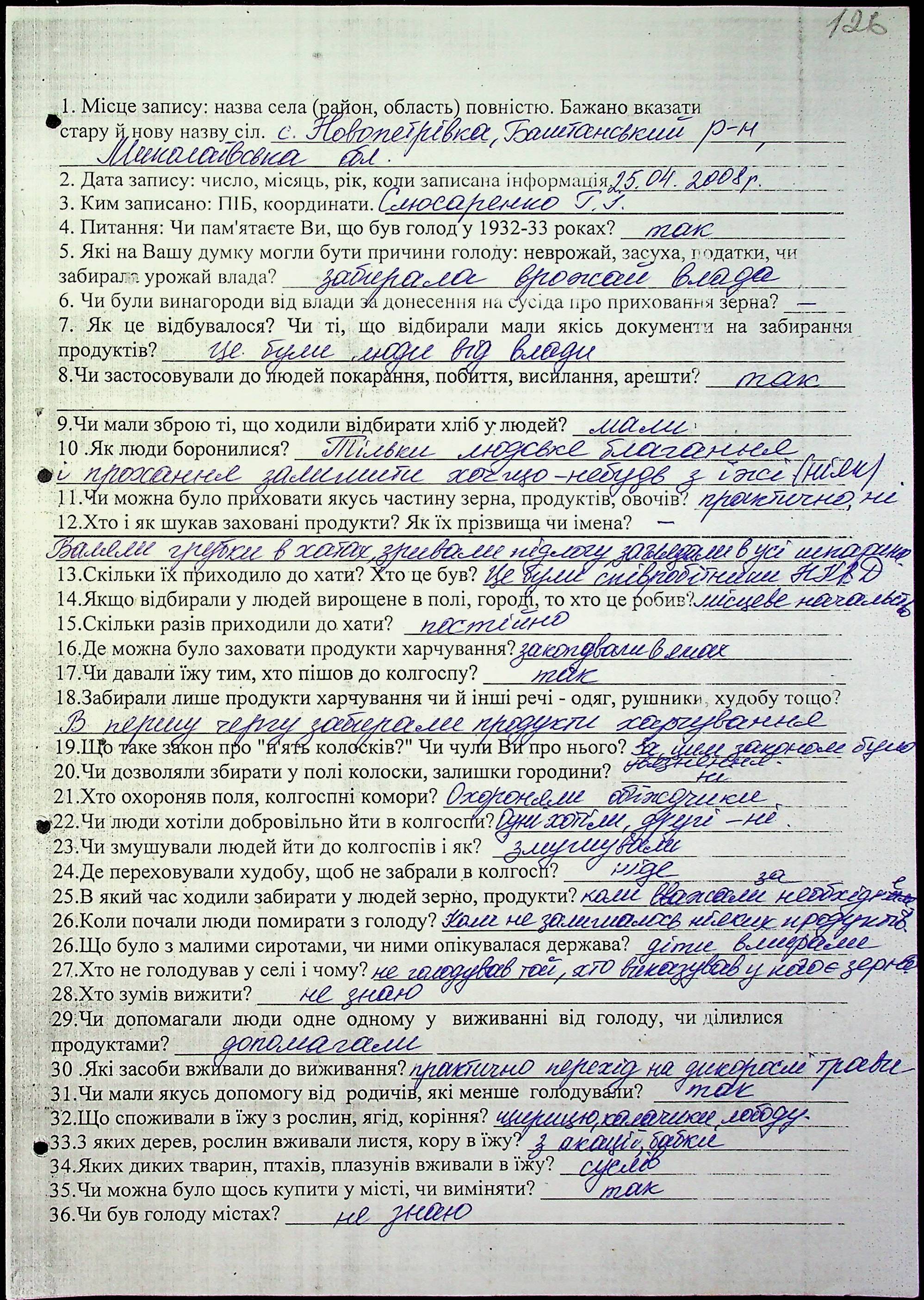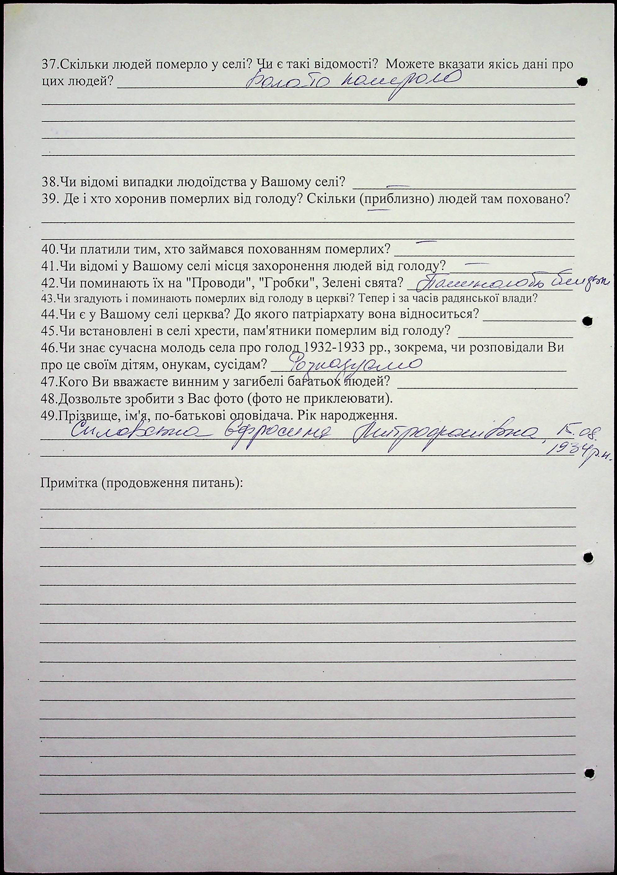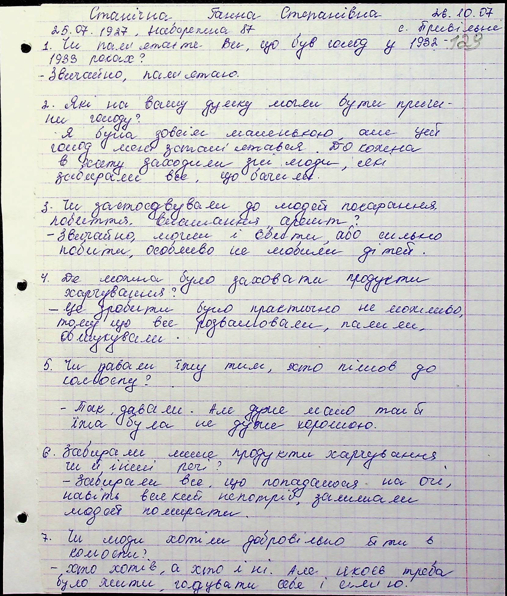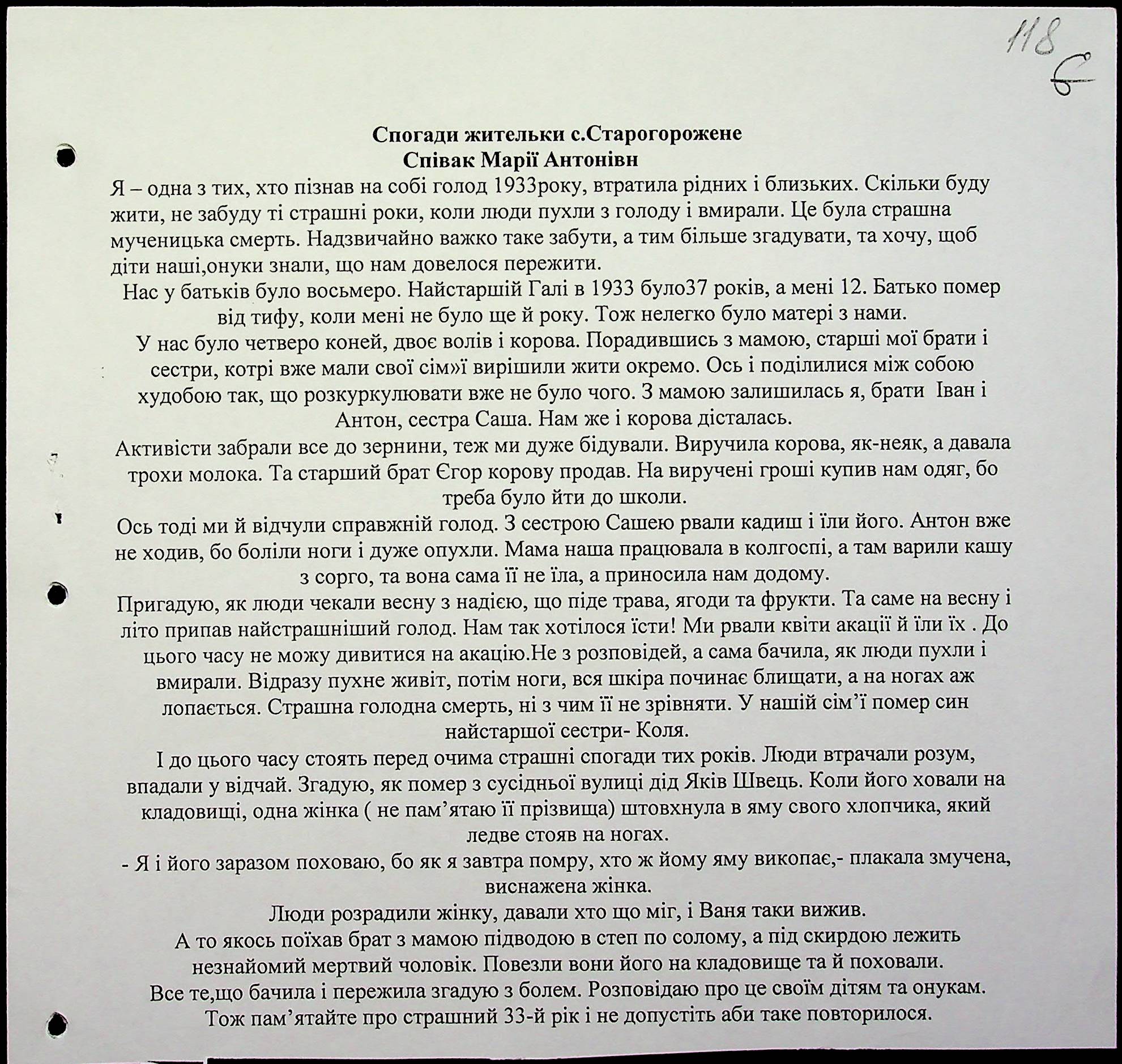 • • • • Справа № 10 “Свідчення очевидців Голодомору 1932-1933 років, які проживають у Баштанському районі, з прізвищами на літери П–Я”