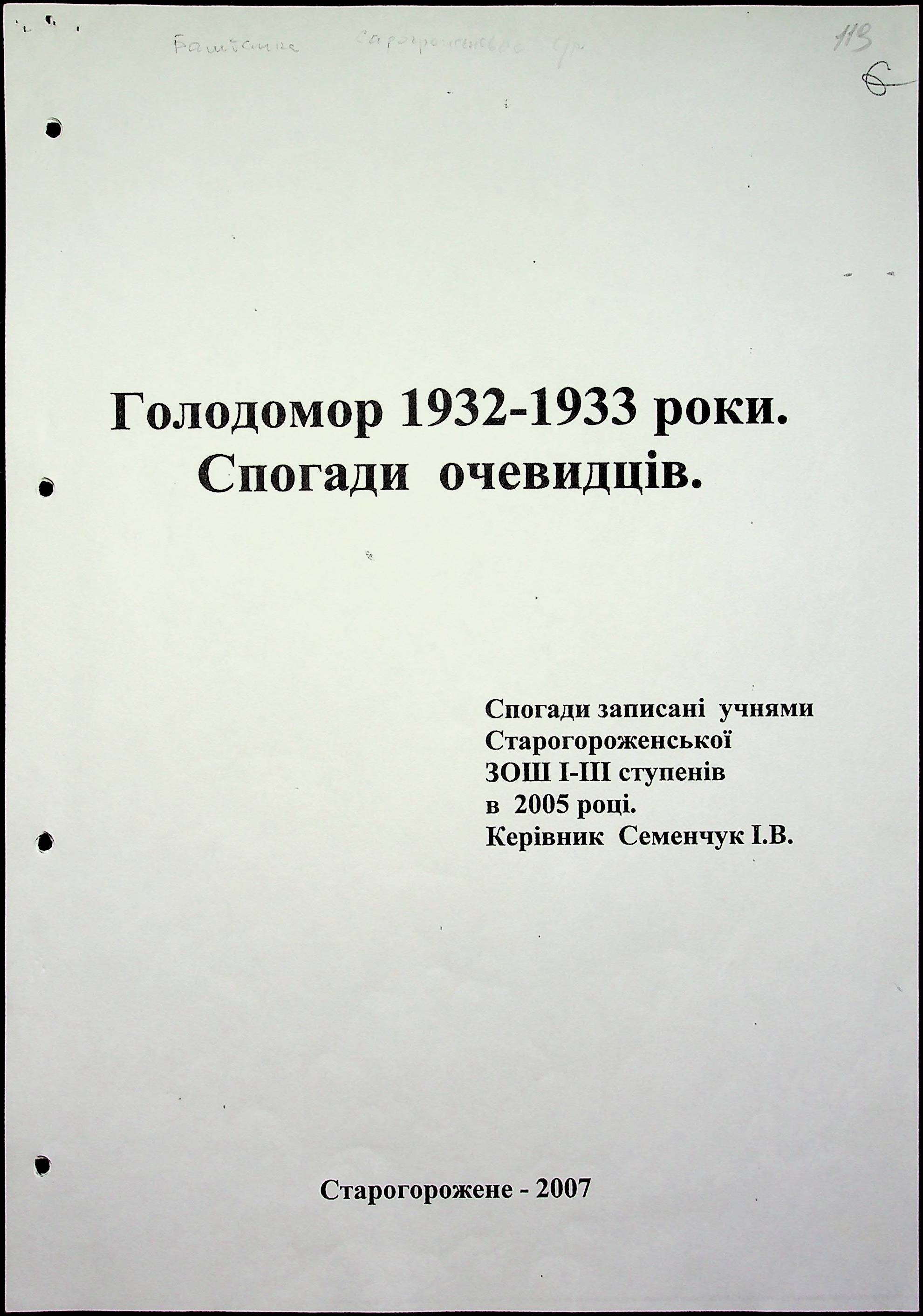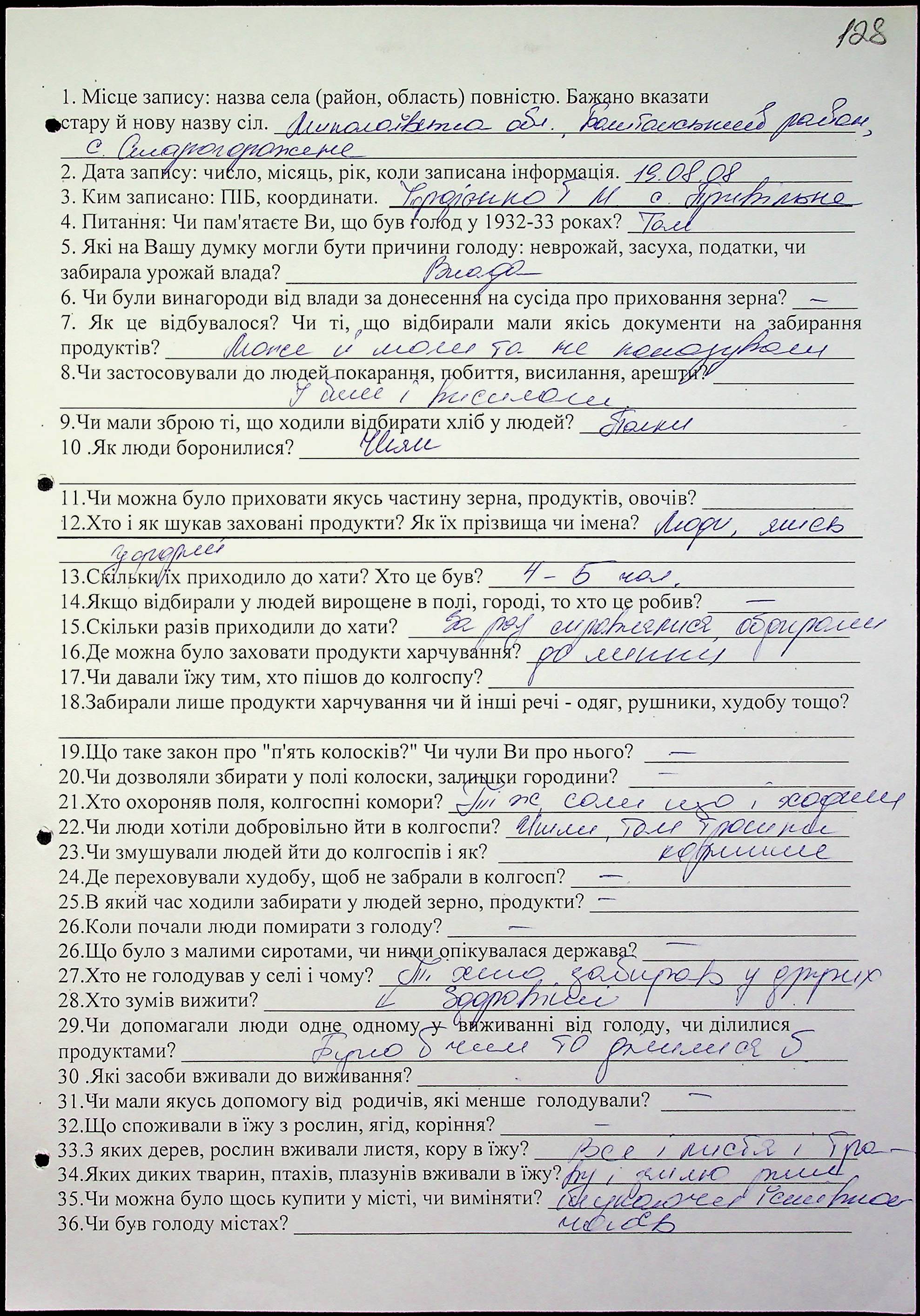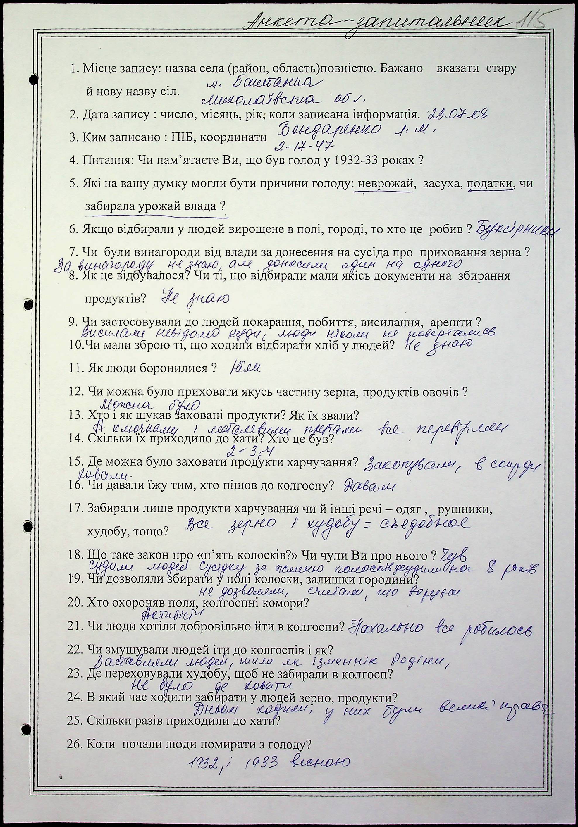 ◦ ◦ Фонд № 6146 “Колекція свідчень очевидців Голодомору 1932-1933 рр., нині проживаючих у Миколаївській області”