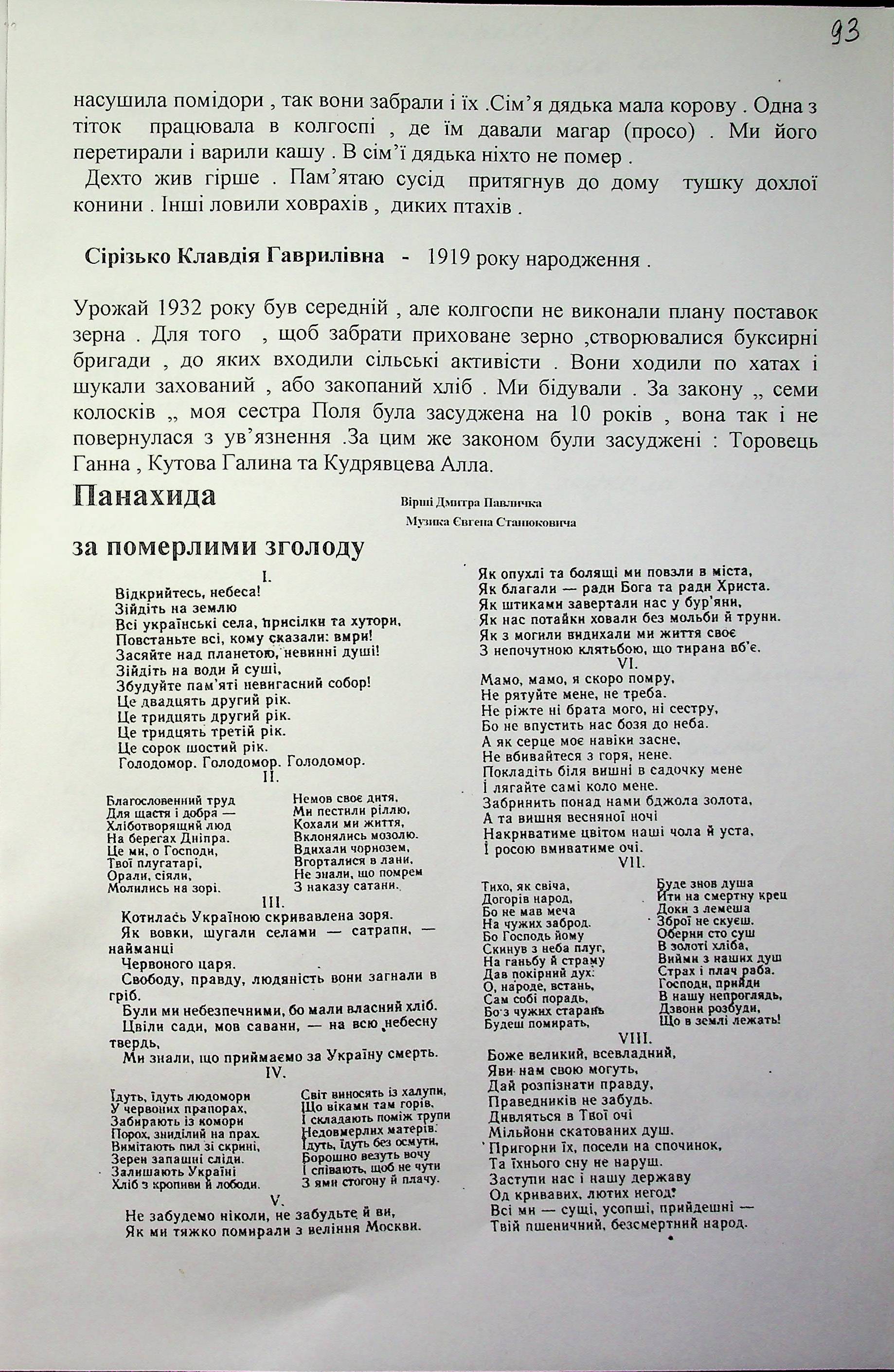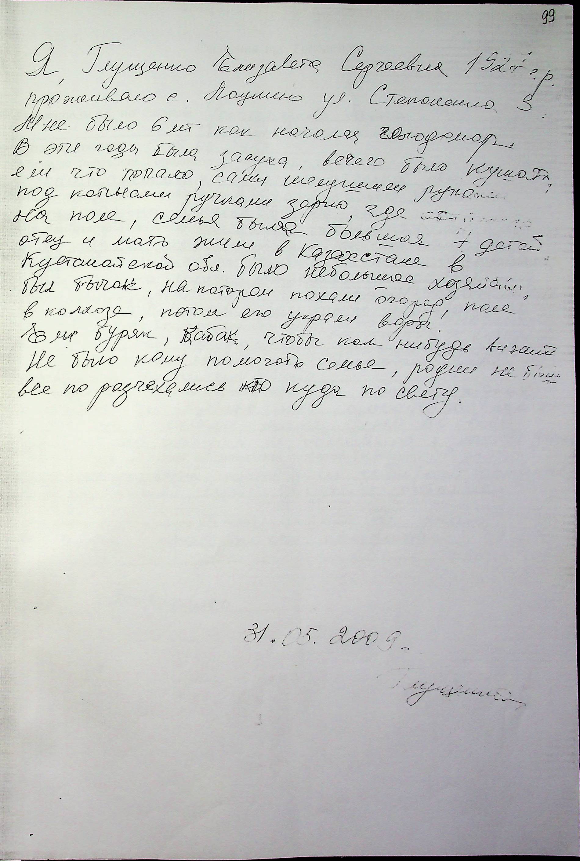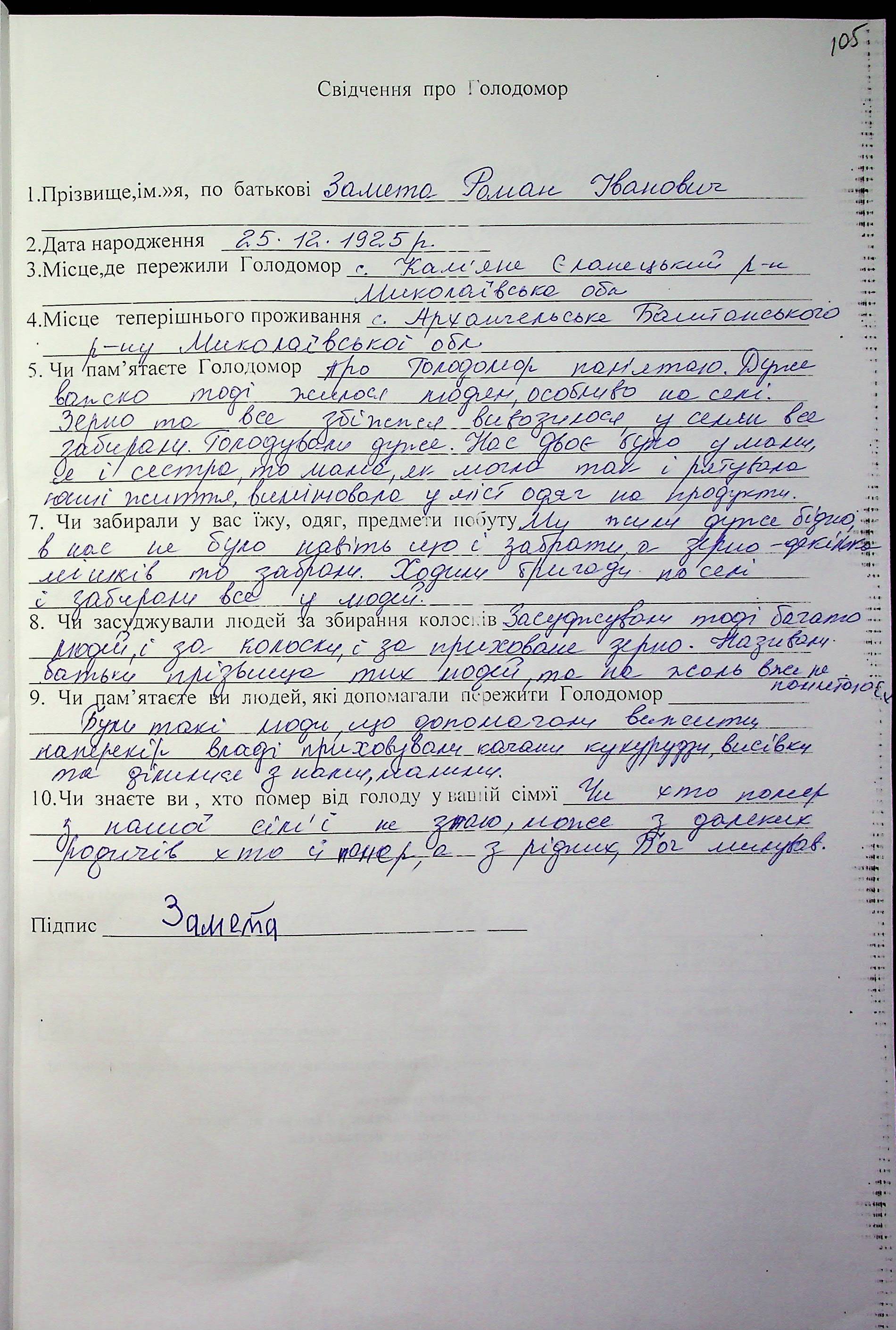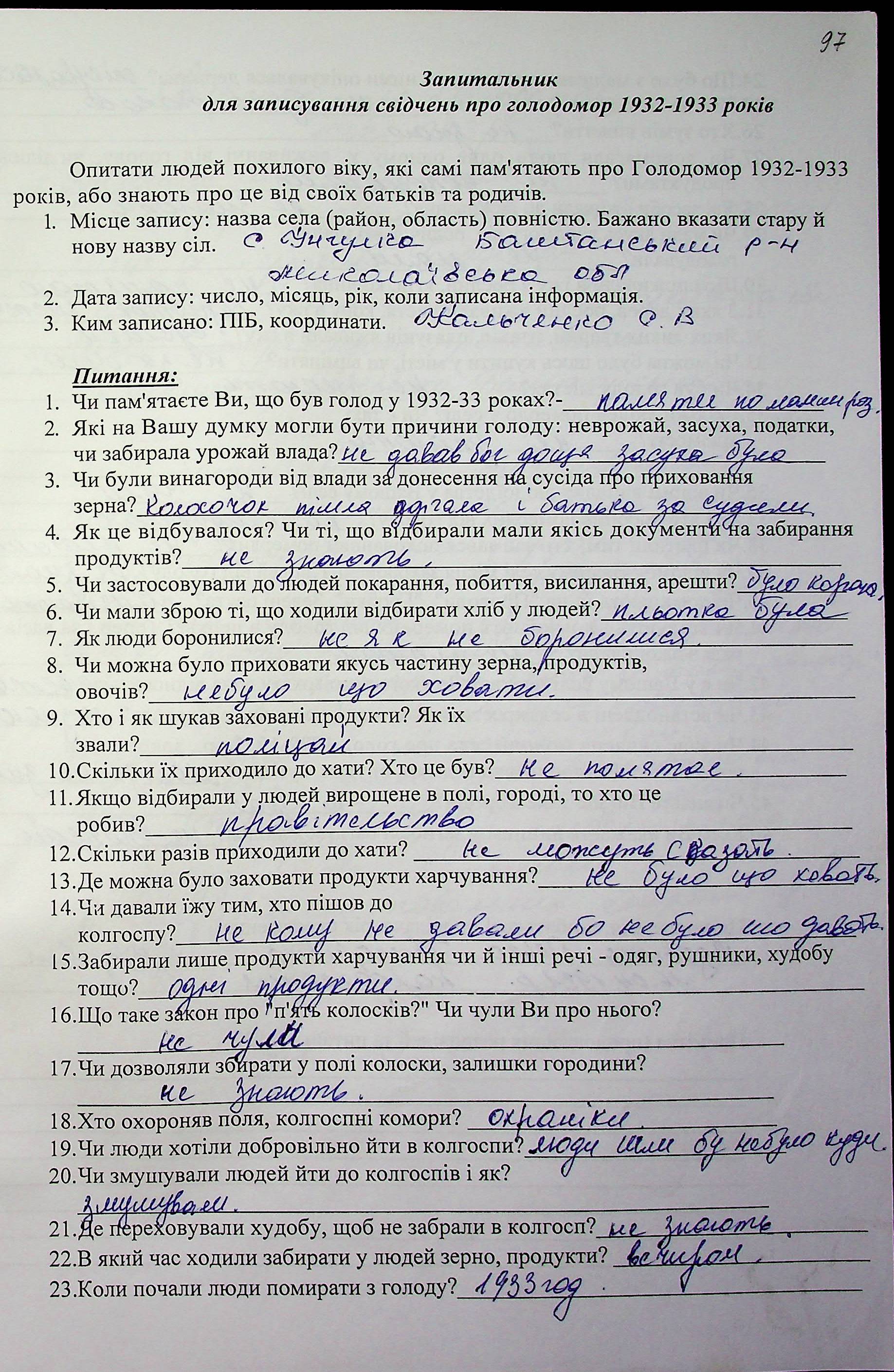 • • • • Справа № 11 “Свідчення очевидців Голодомору 1932-1933 років, які проживають у Баштанському районі, з прізвищами на літери А–Я (доповнення)”