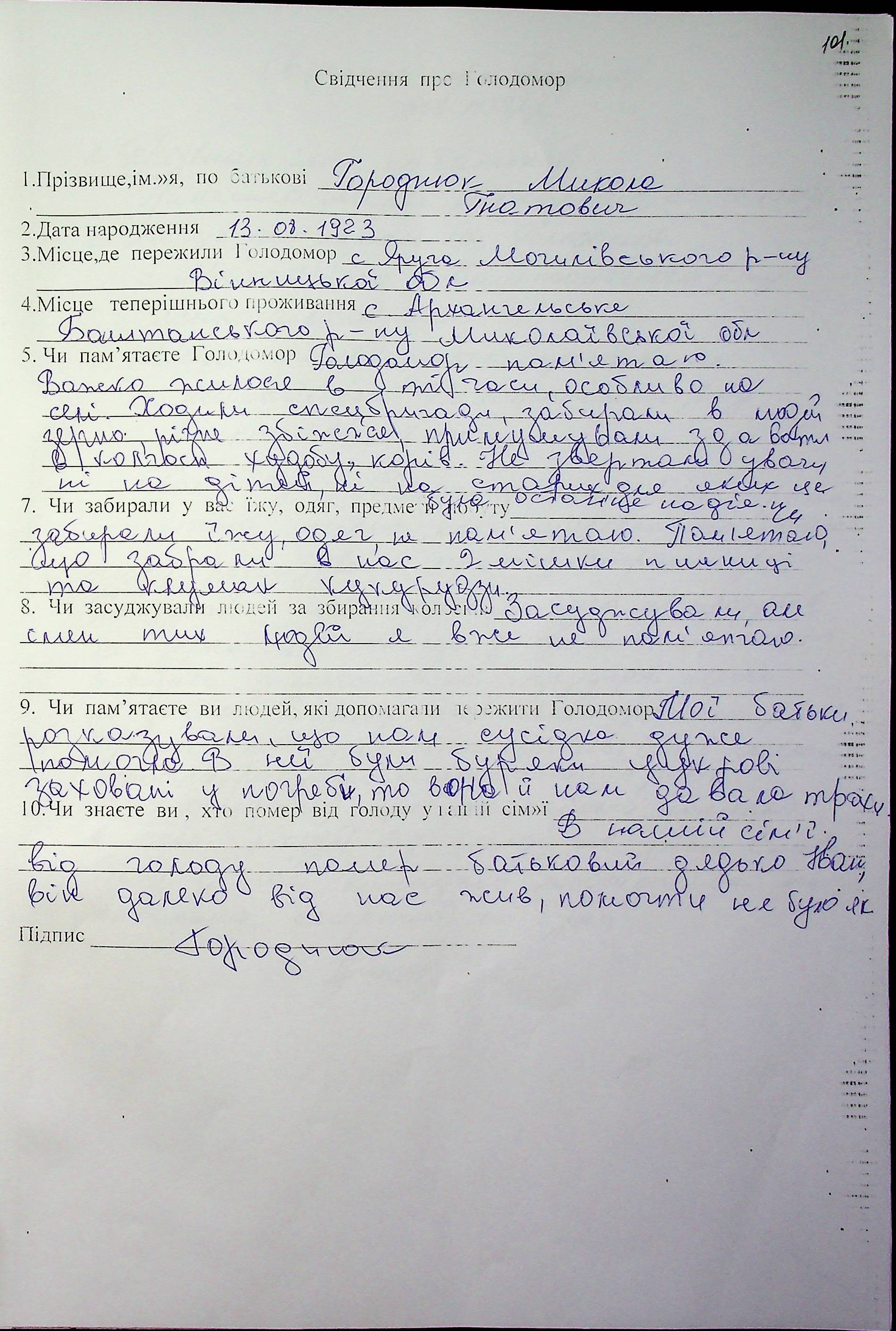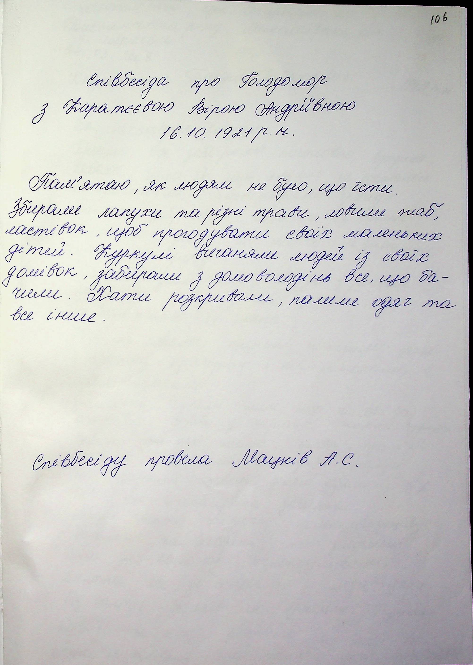 ◦ ◦ Фонд № 6146 “Колекція свідчень очевидців Голодомору 1932-1933 рр., нині проживаючих у Миколаївській області”