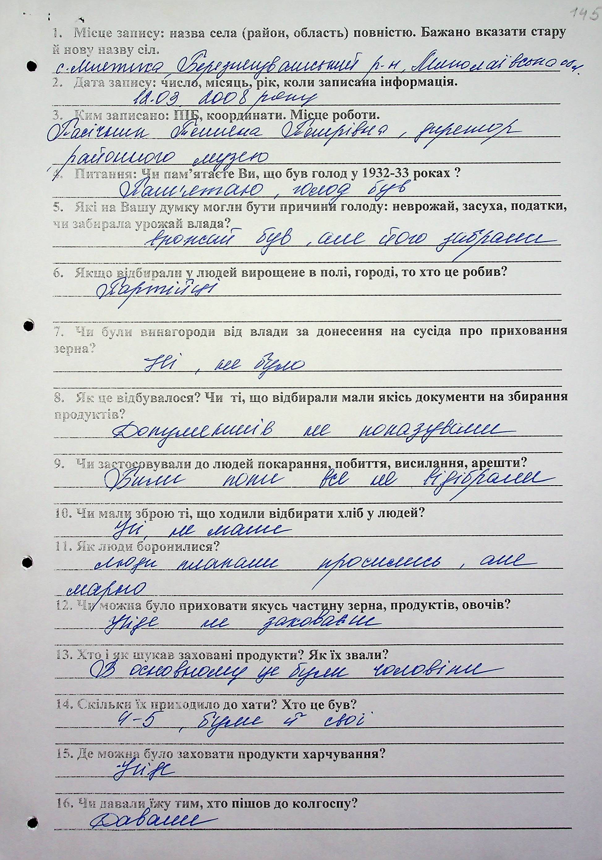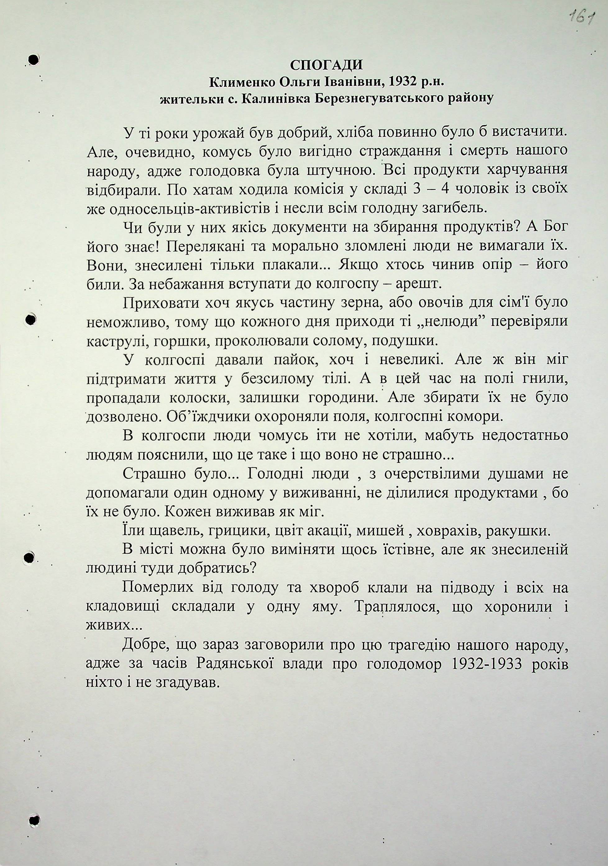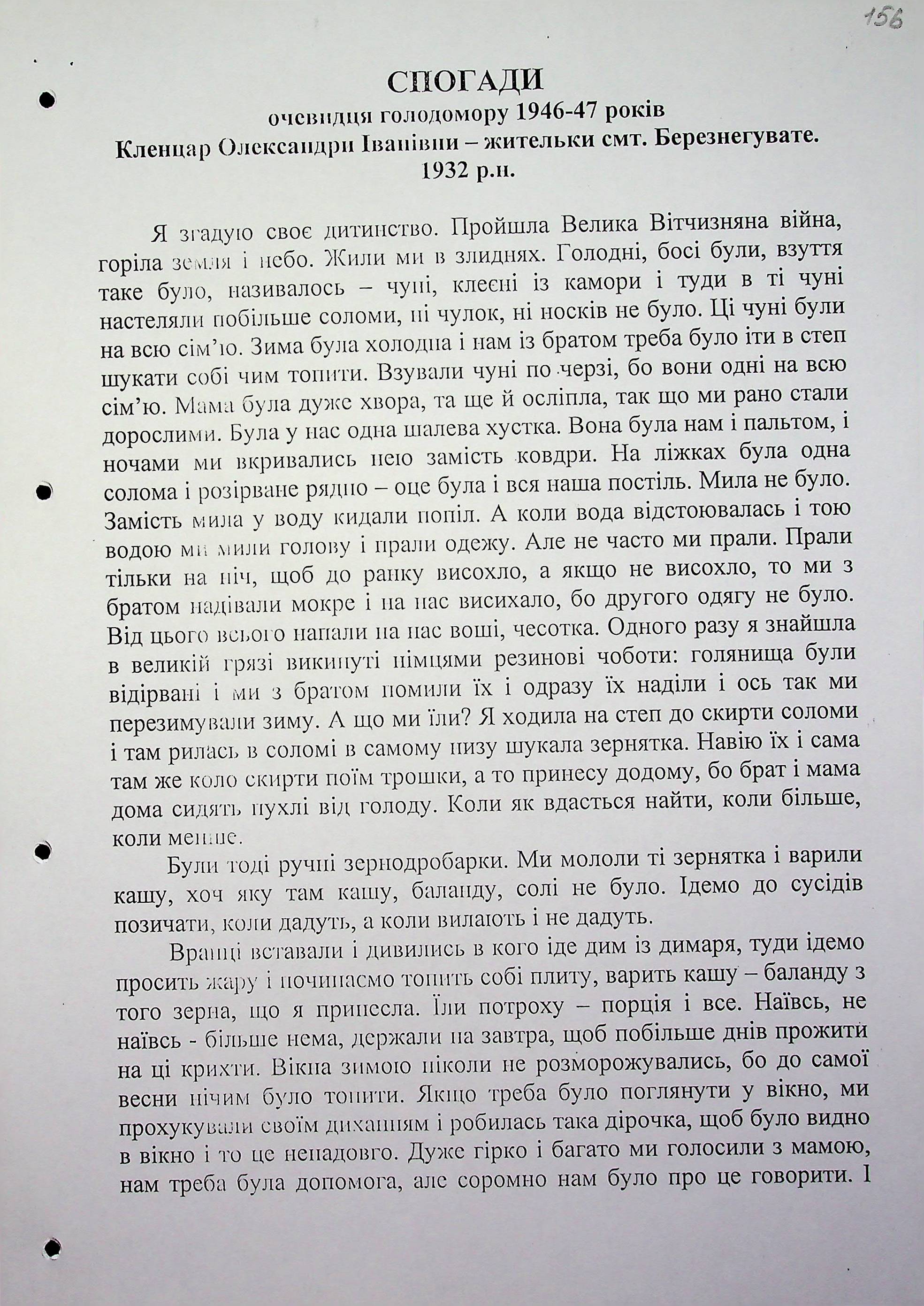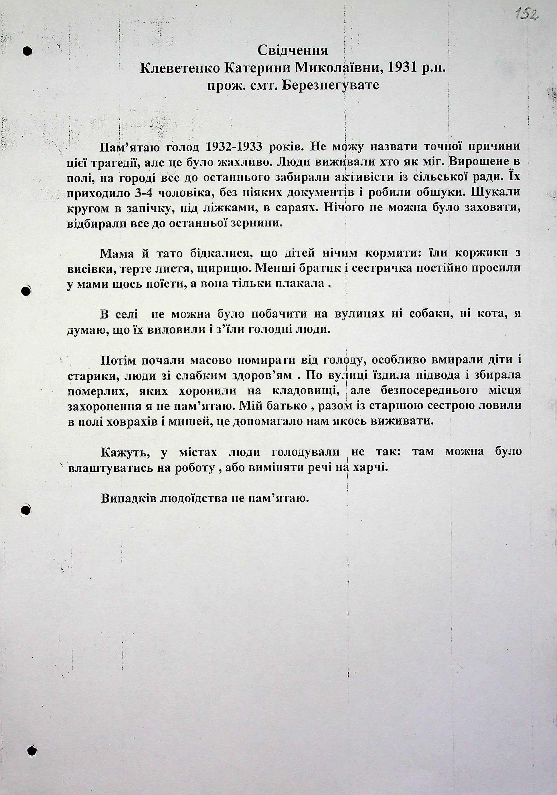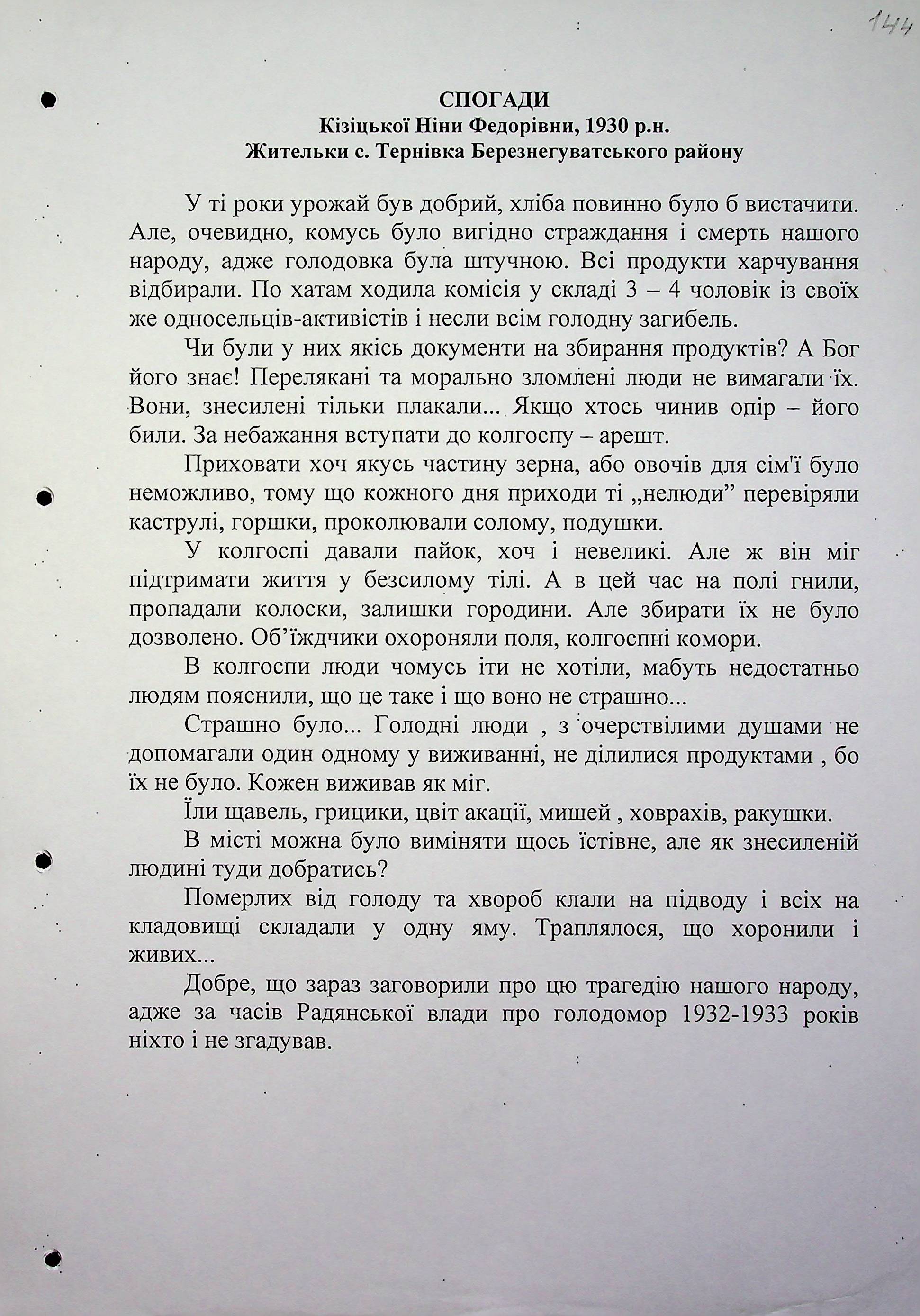 ◦ ◦ Фонд № 6146 “Колекція свідчень очевидців Голодомору 1932-1933 рр., нині проживаючих у Миколаївській області”