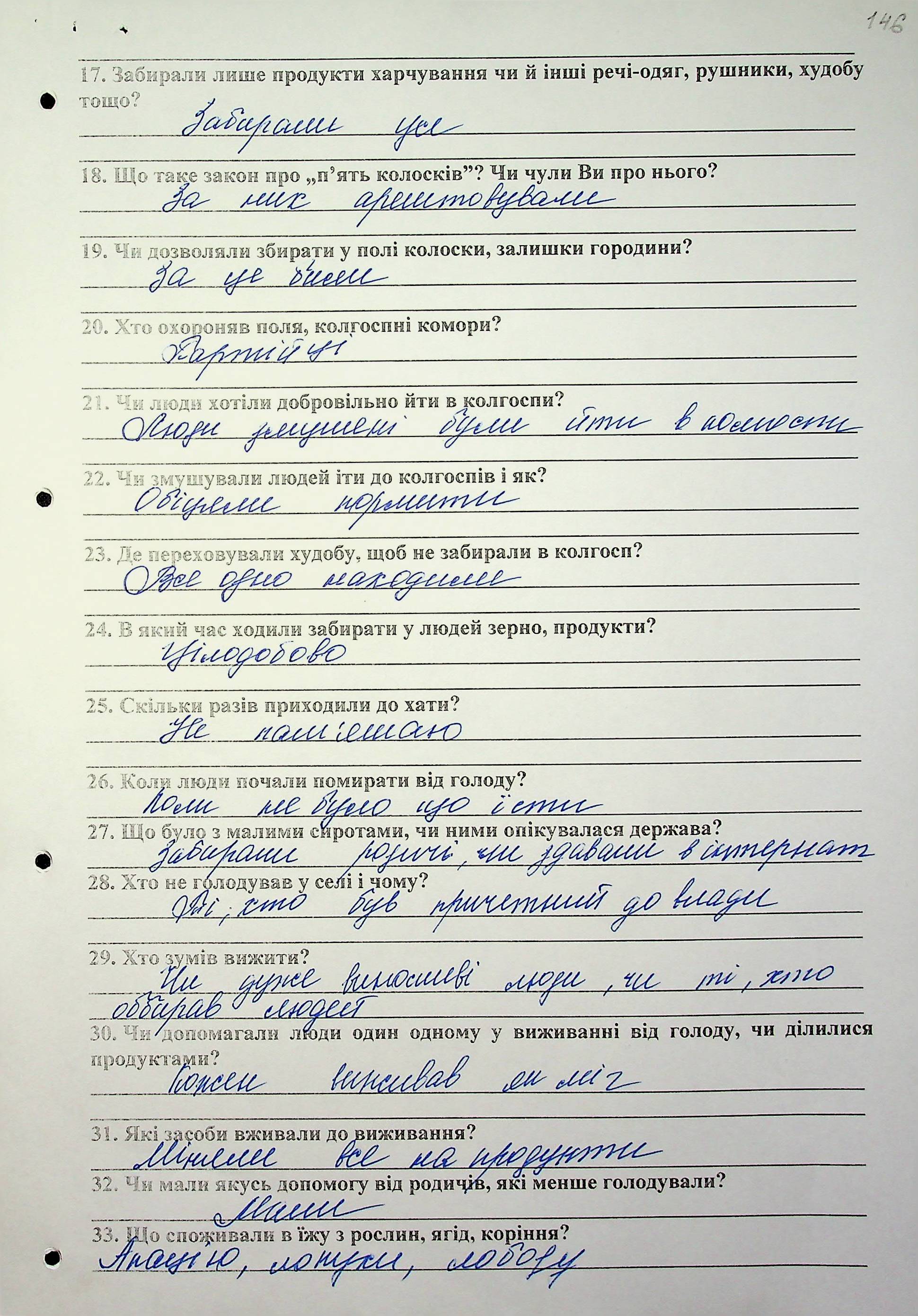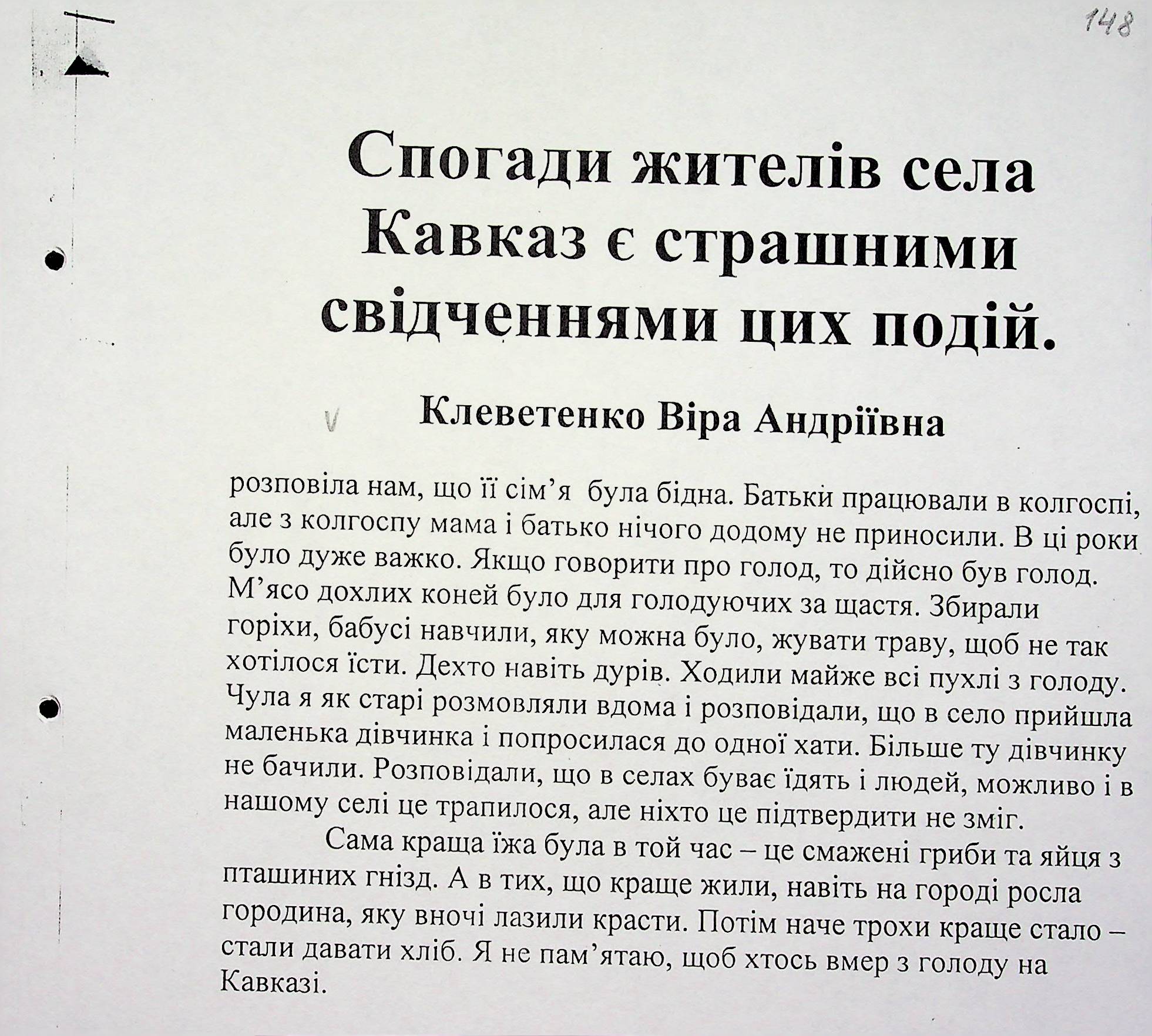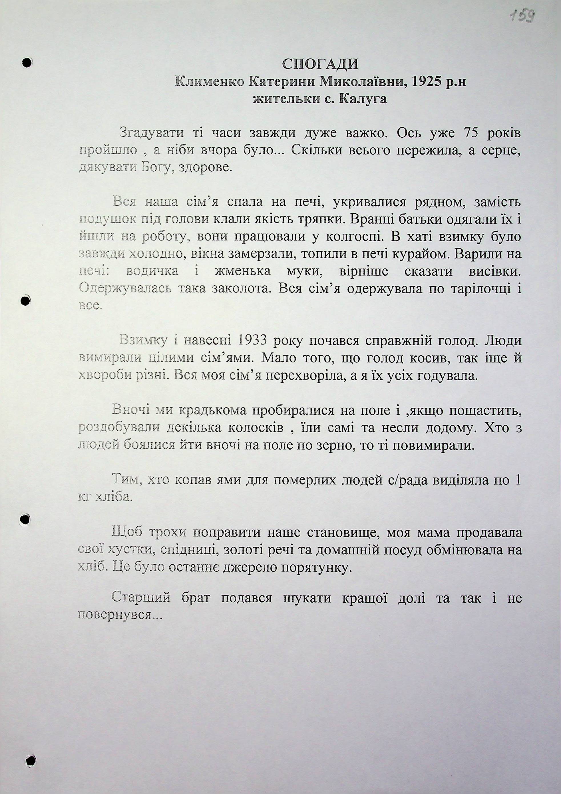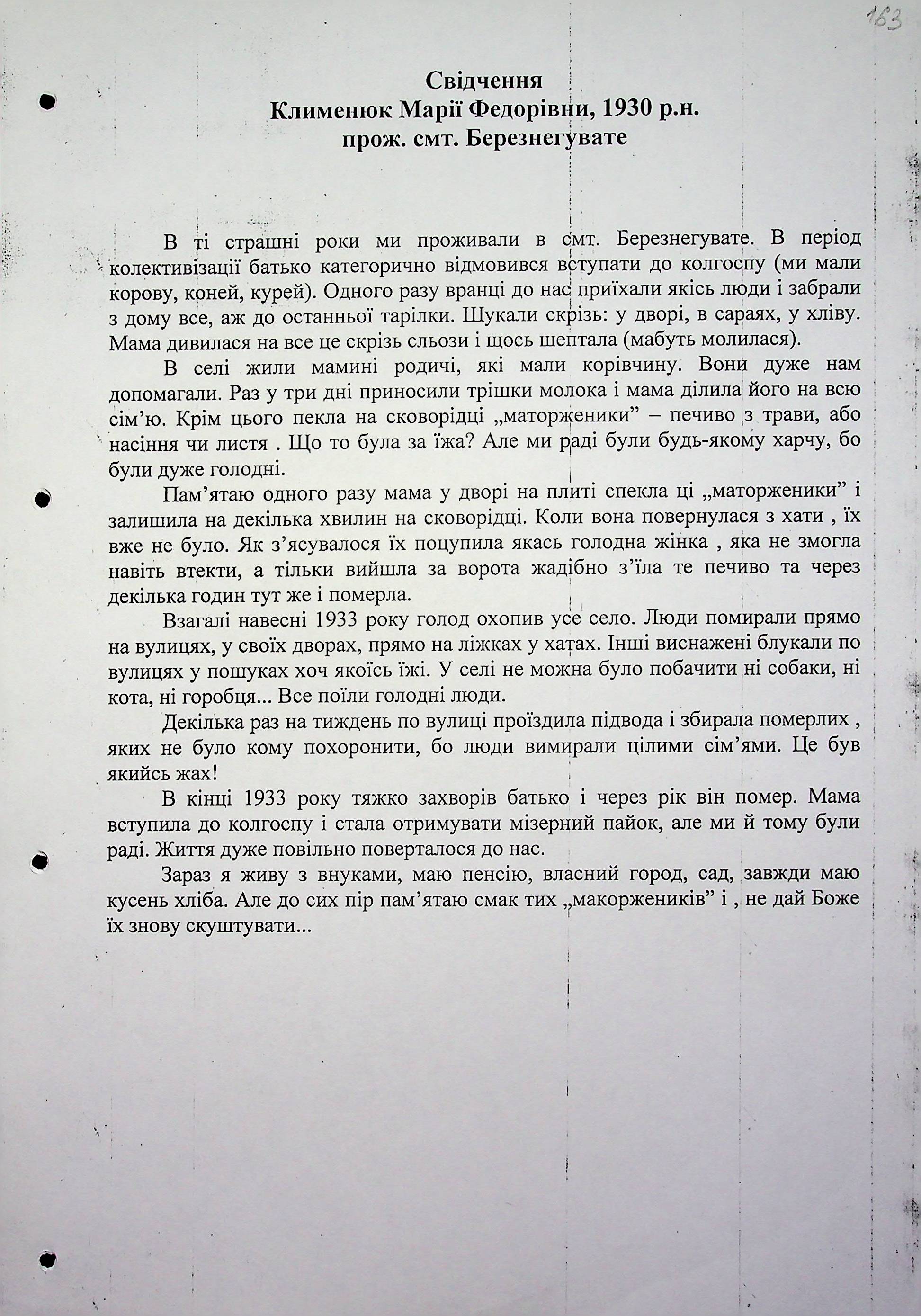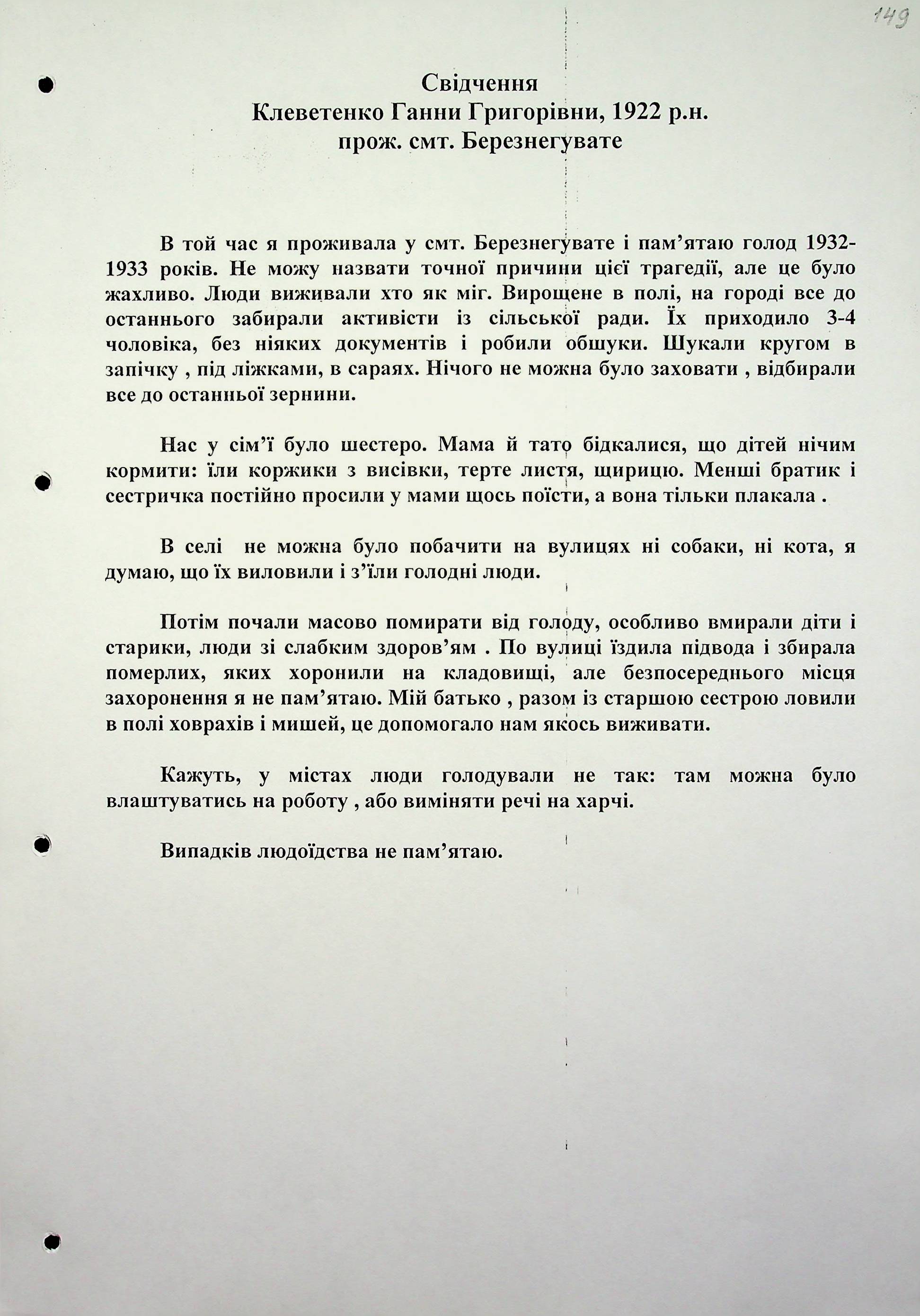◦ ◦ Фонд № 6146 “Колекція свідчень очевидців Голодомору 1932-1933 рр., нині проживаючих у Миколаївській області”