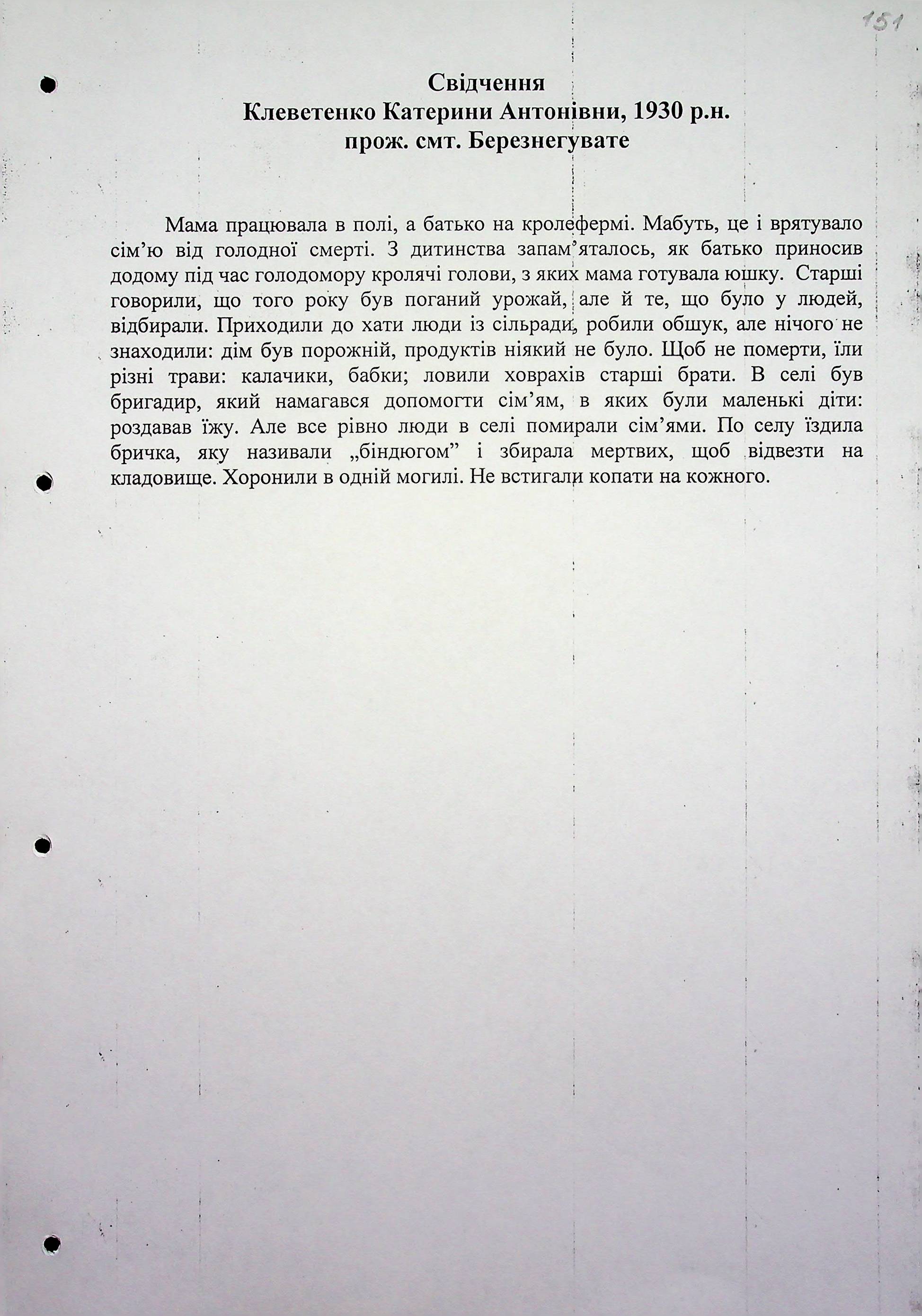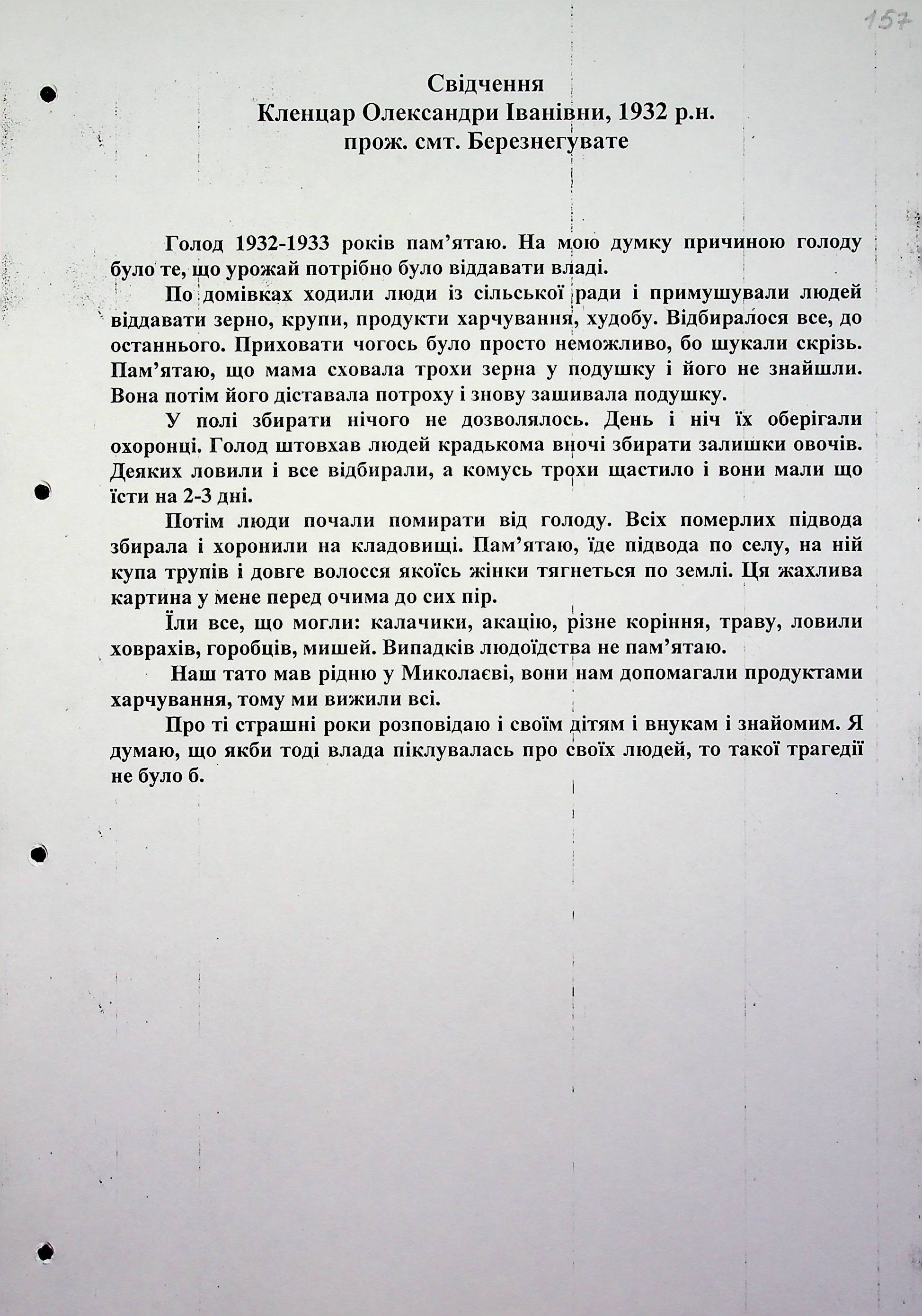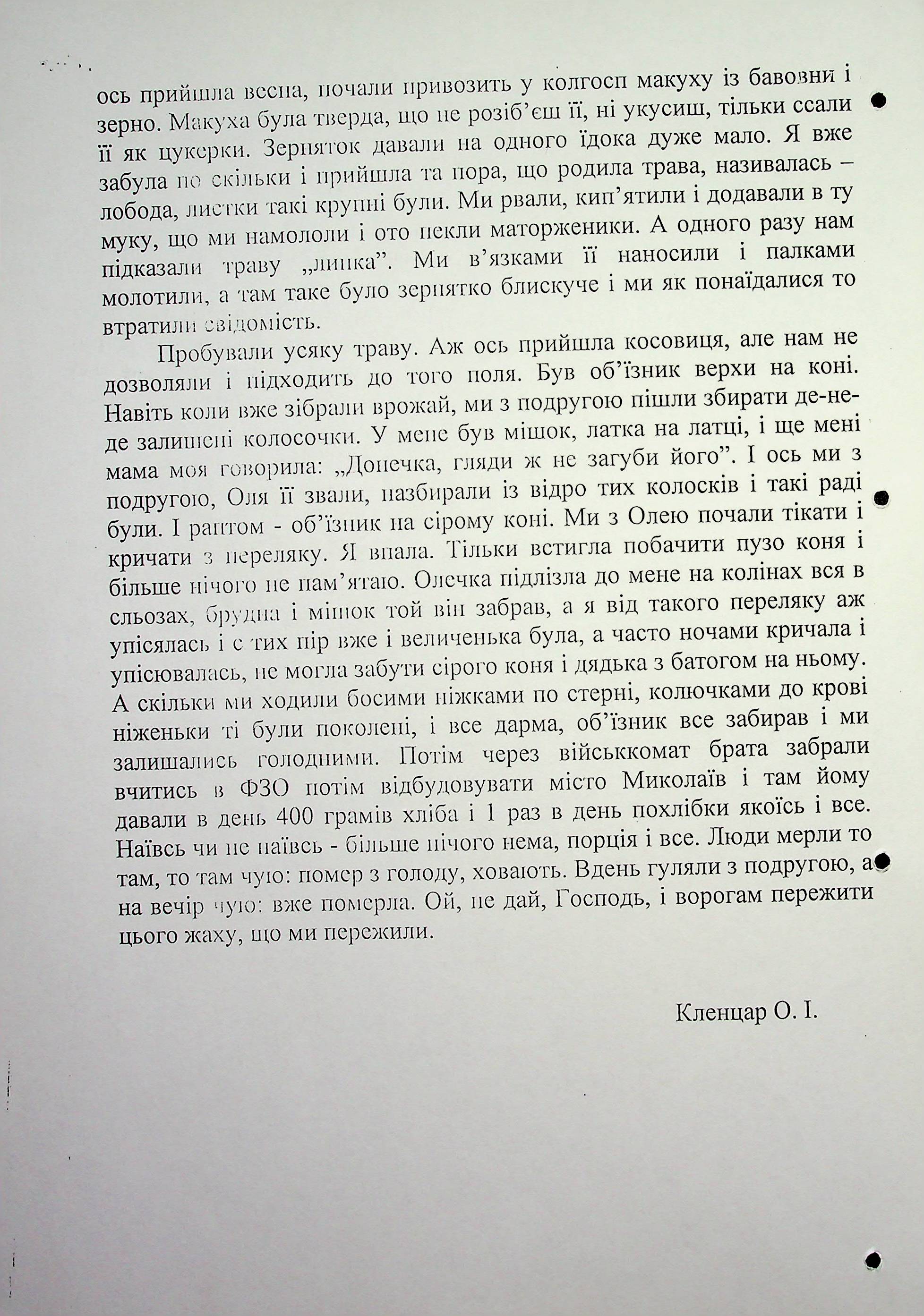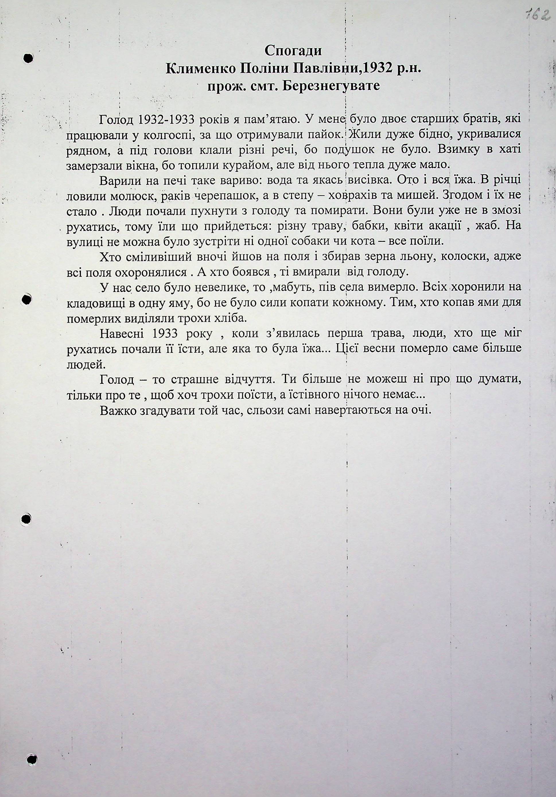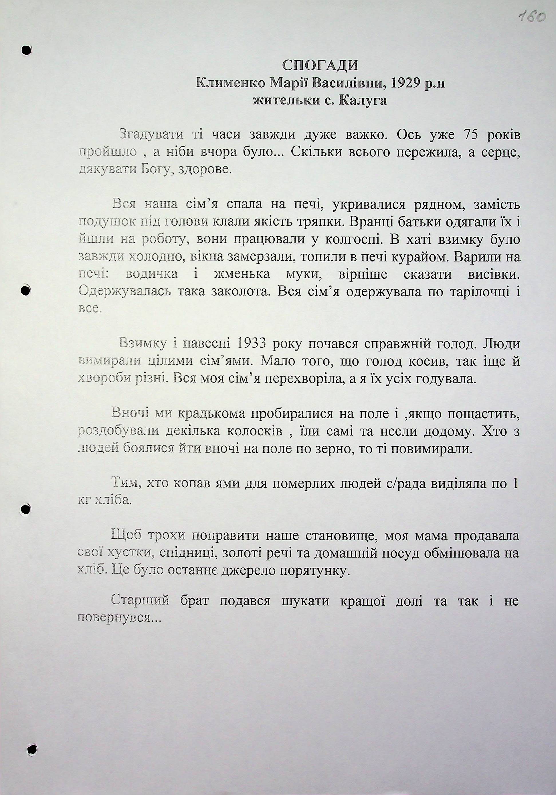 ◦ ◦ Фонд № 6146 “Колекція свідчень очевидців Голодомору 1932-1933 рр., нині проживаючих у Миколаївській області”