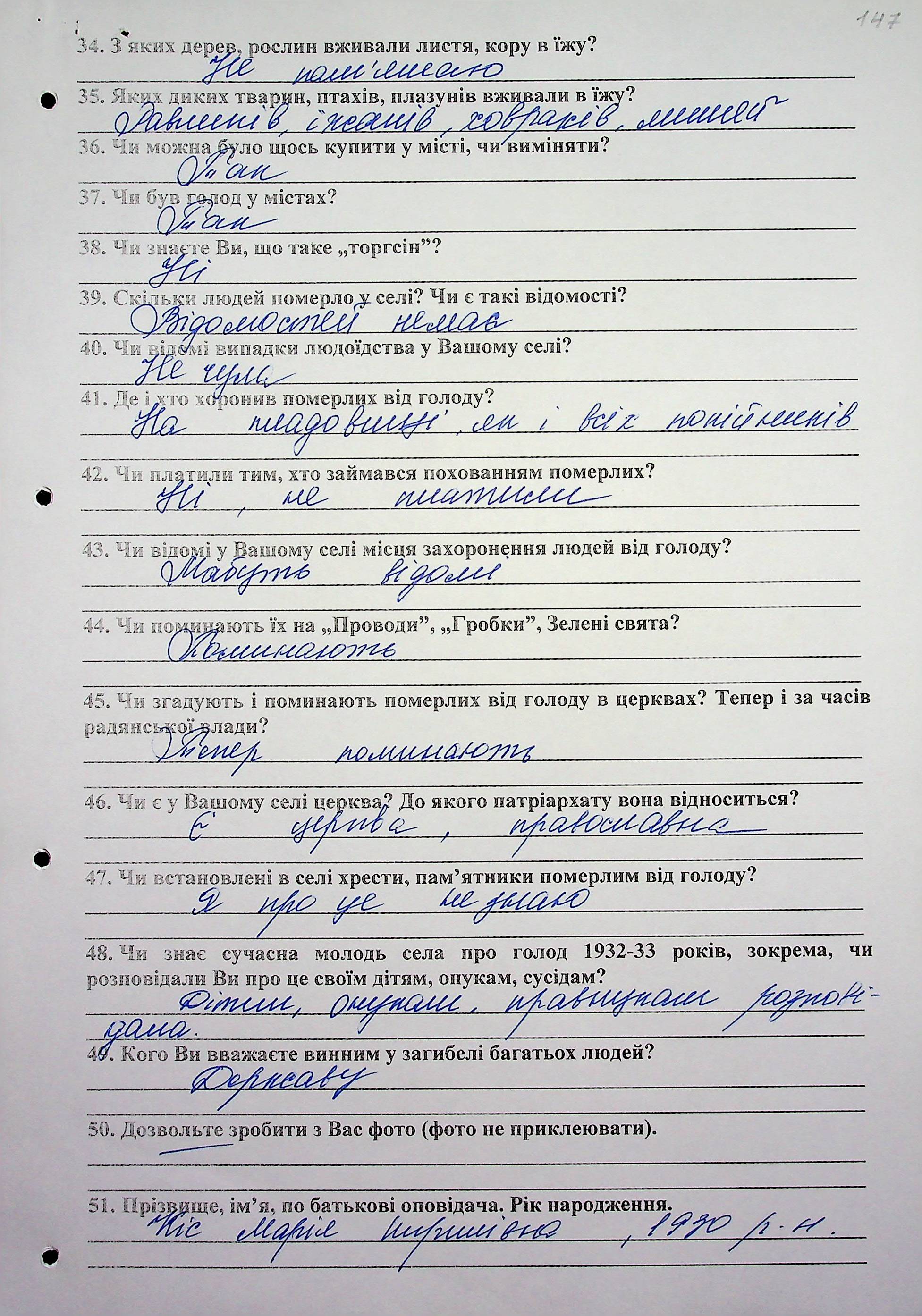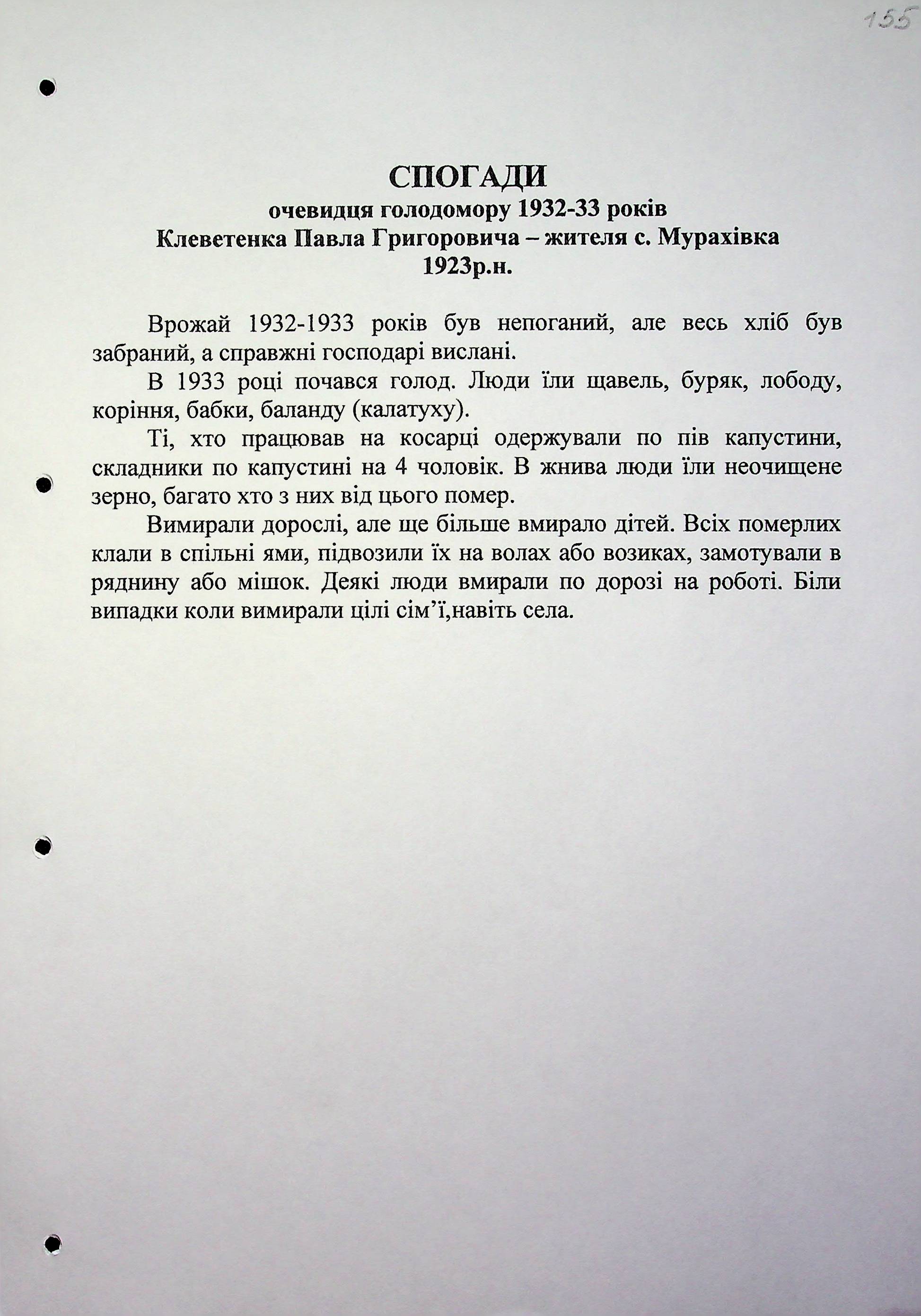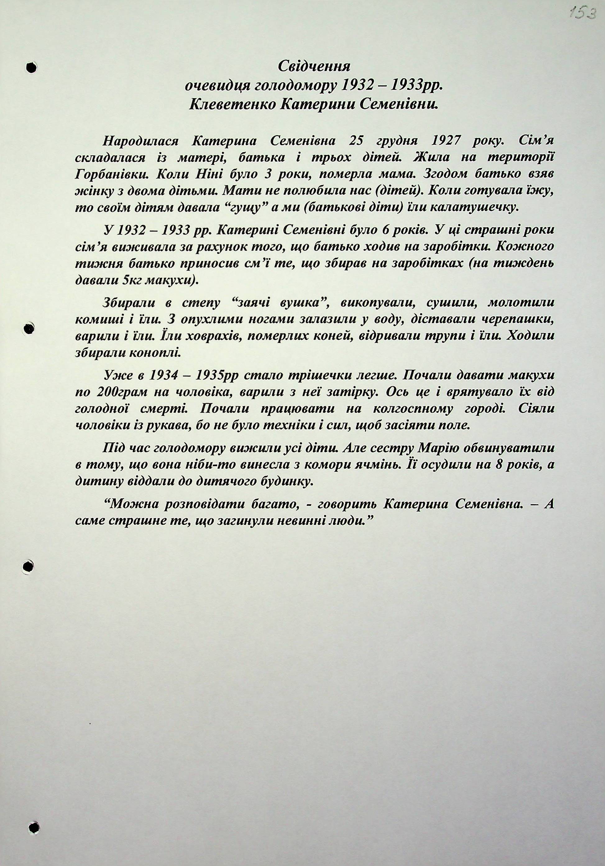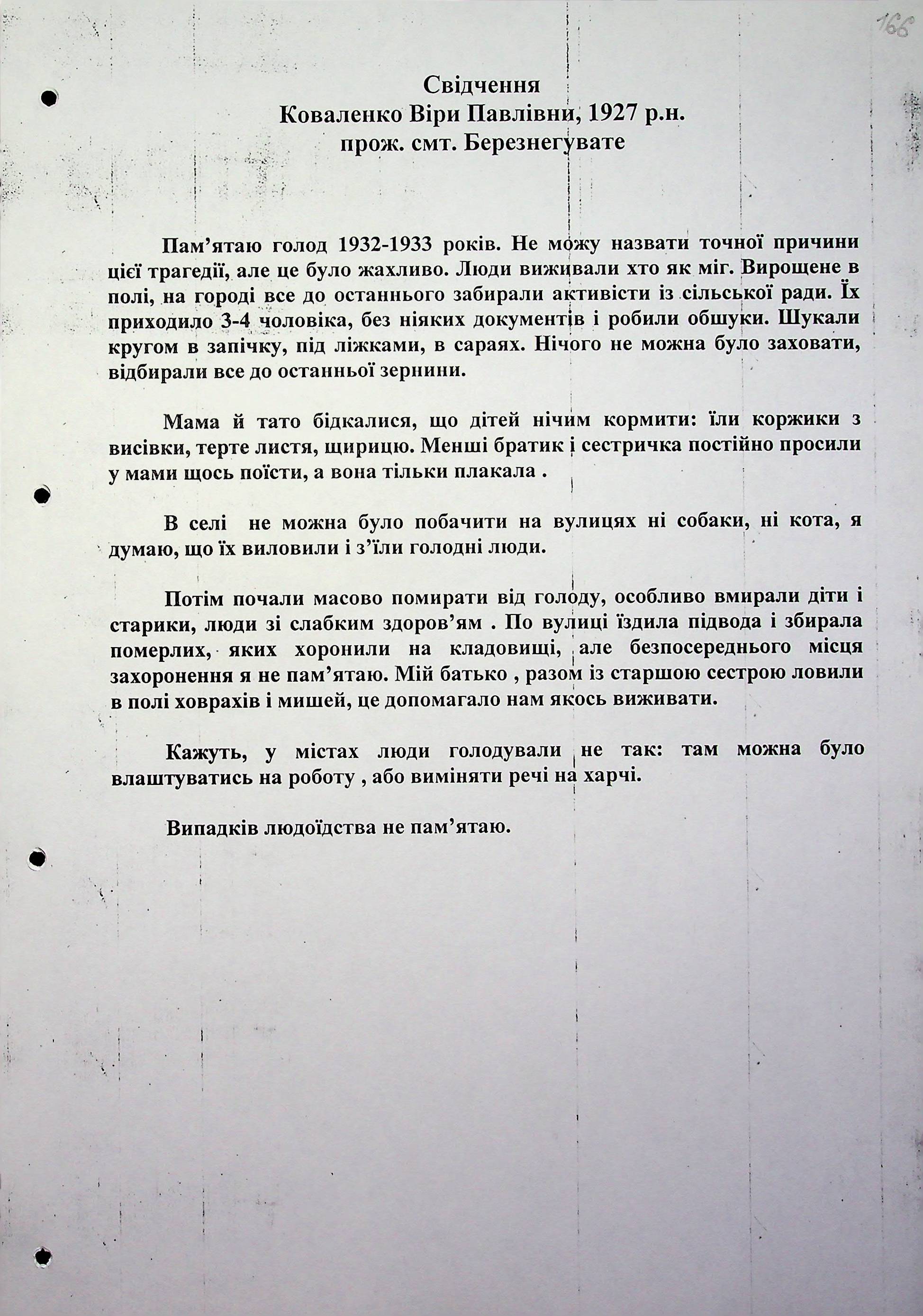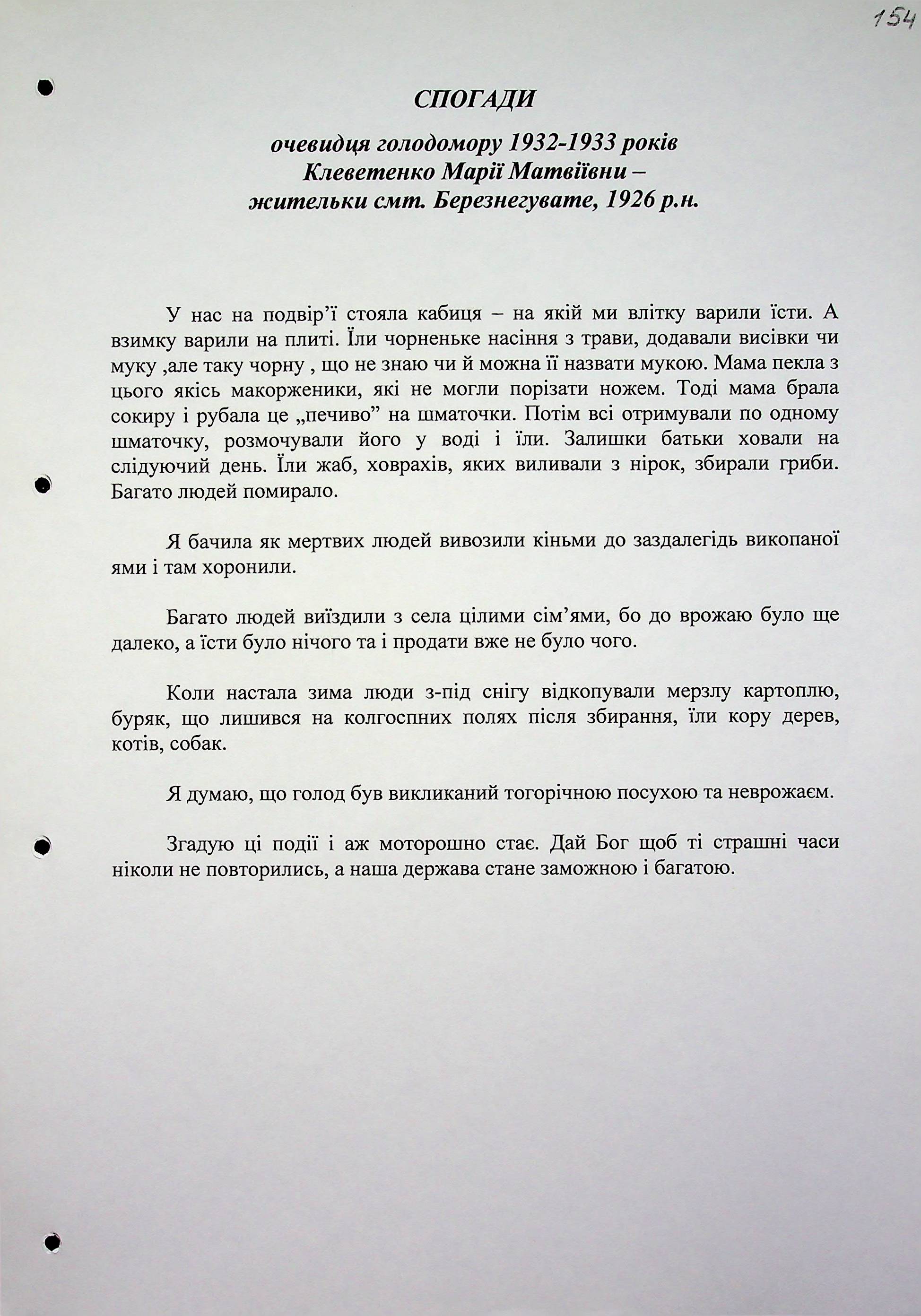 ◦ ◦ Фонд № 6146 “Колекція свідчень очевидців Голодомору 1932-1933 рр., нині проживаючих у Миколаївській області”
