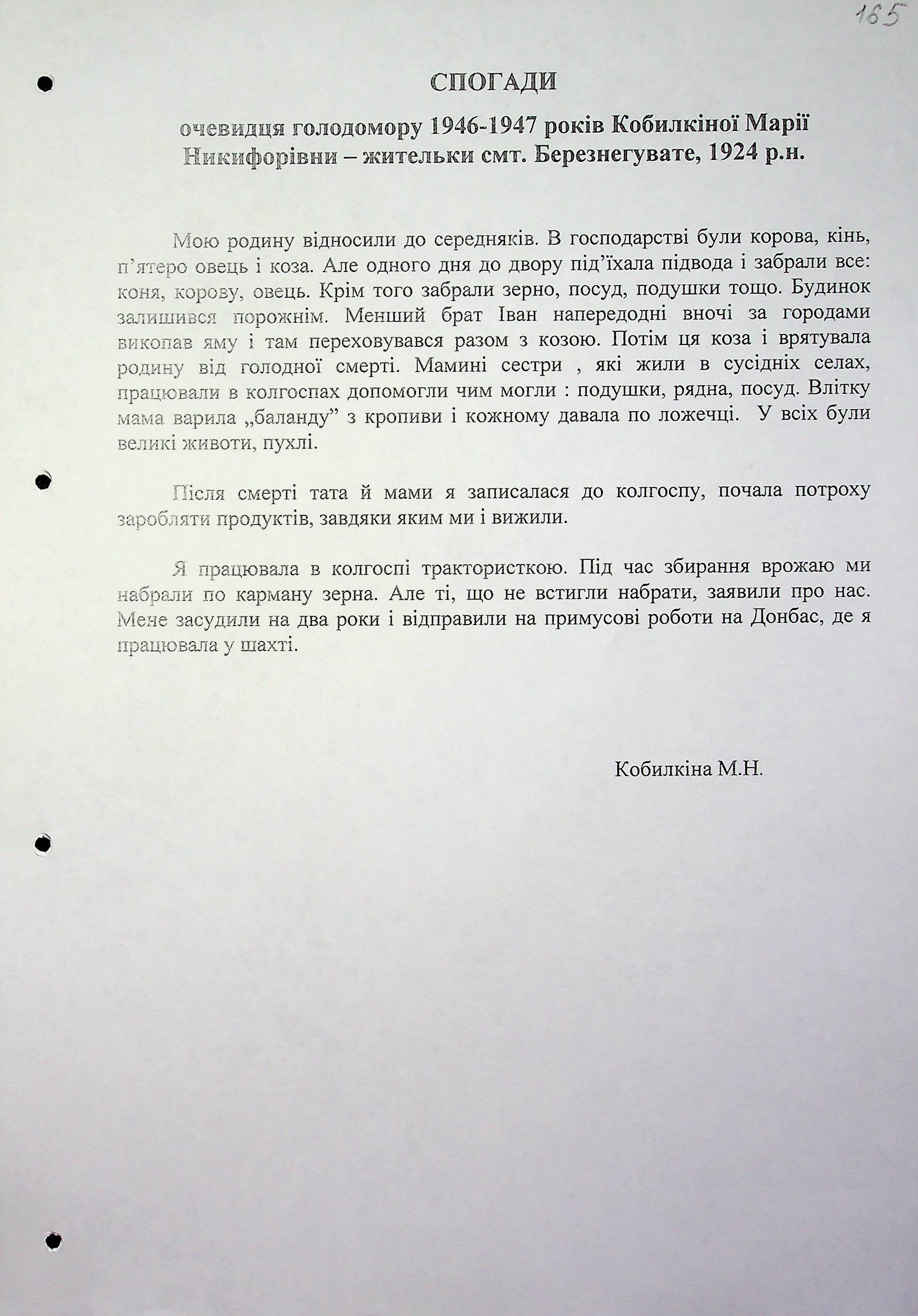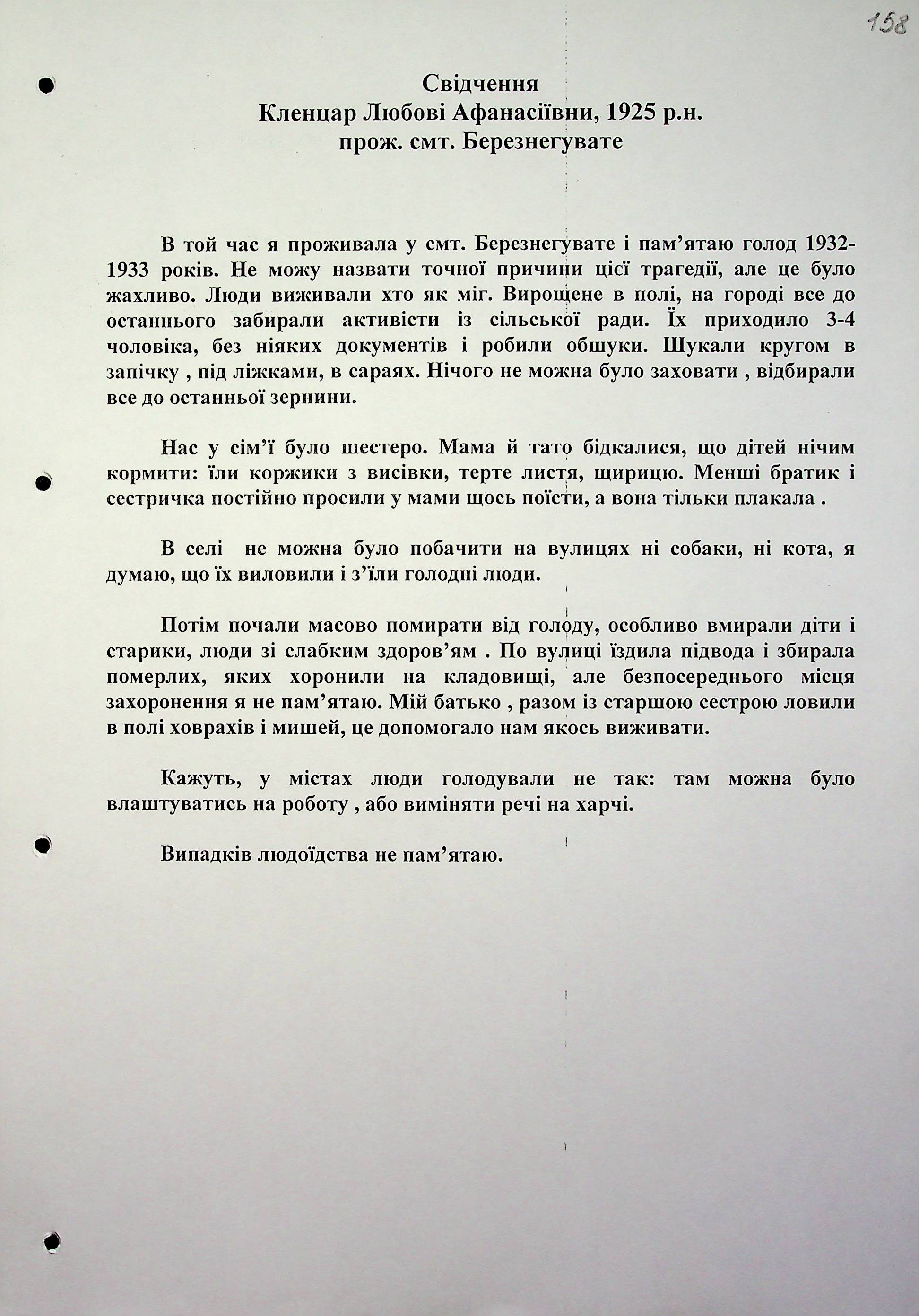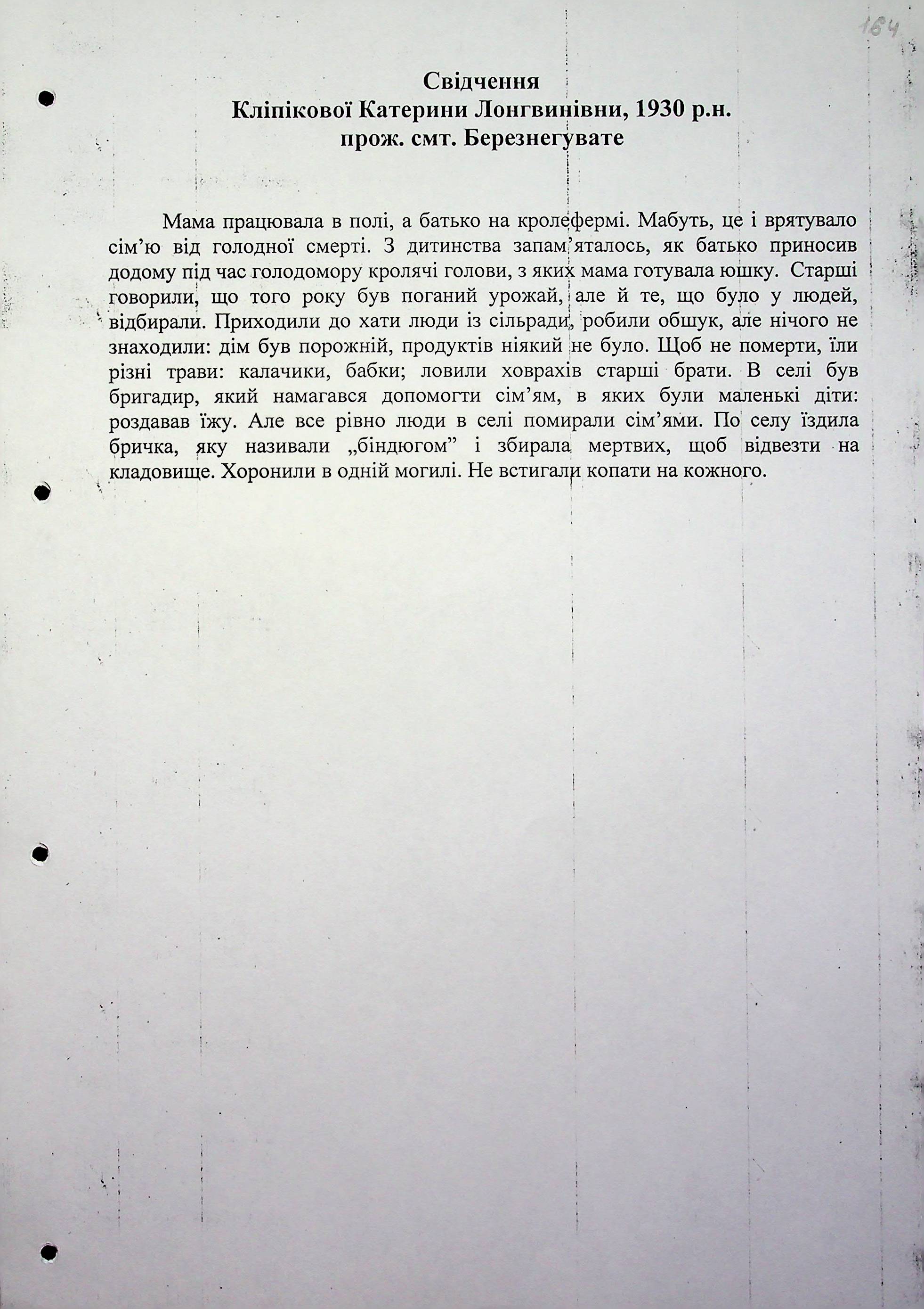 • • • • Справа № 14 “Свідчення очевидців Голодомору 1932-1933 років, які проживають у Березнегуватському районі, з прізвищами на літери Д–К”