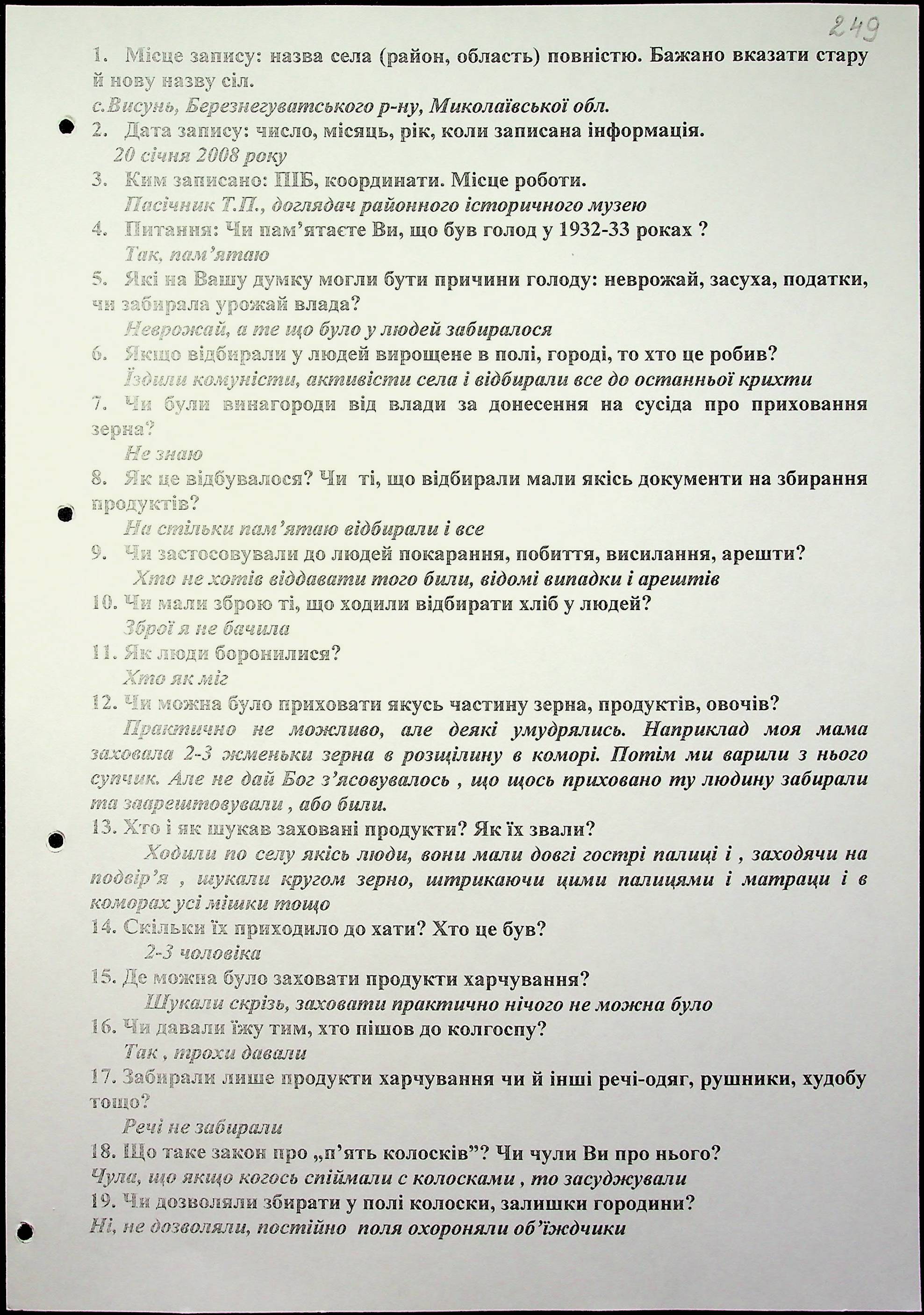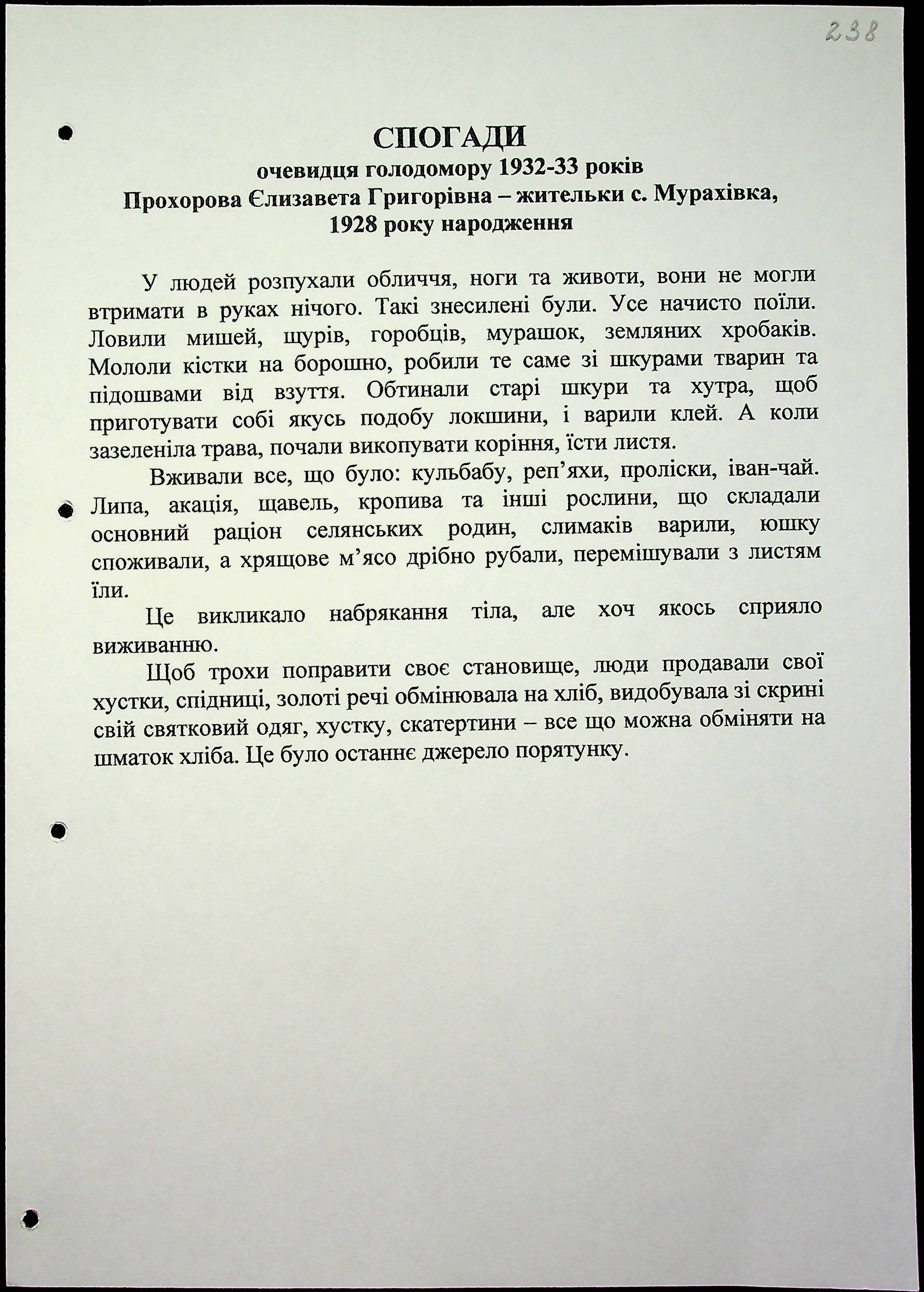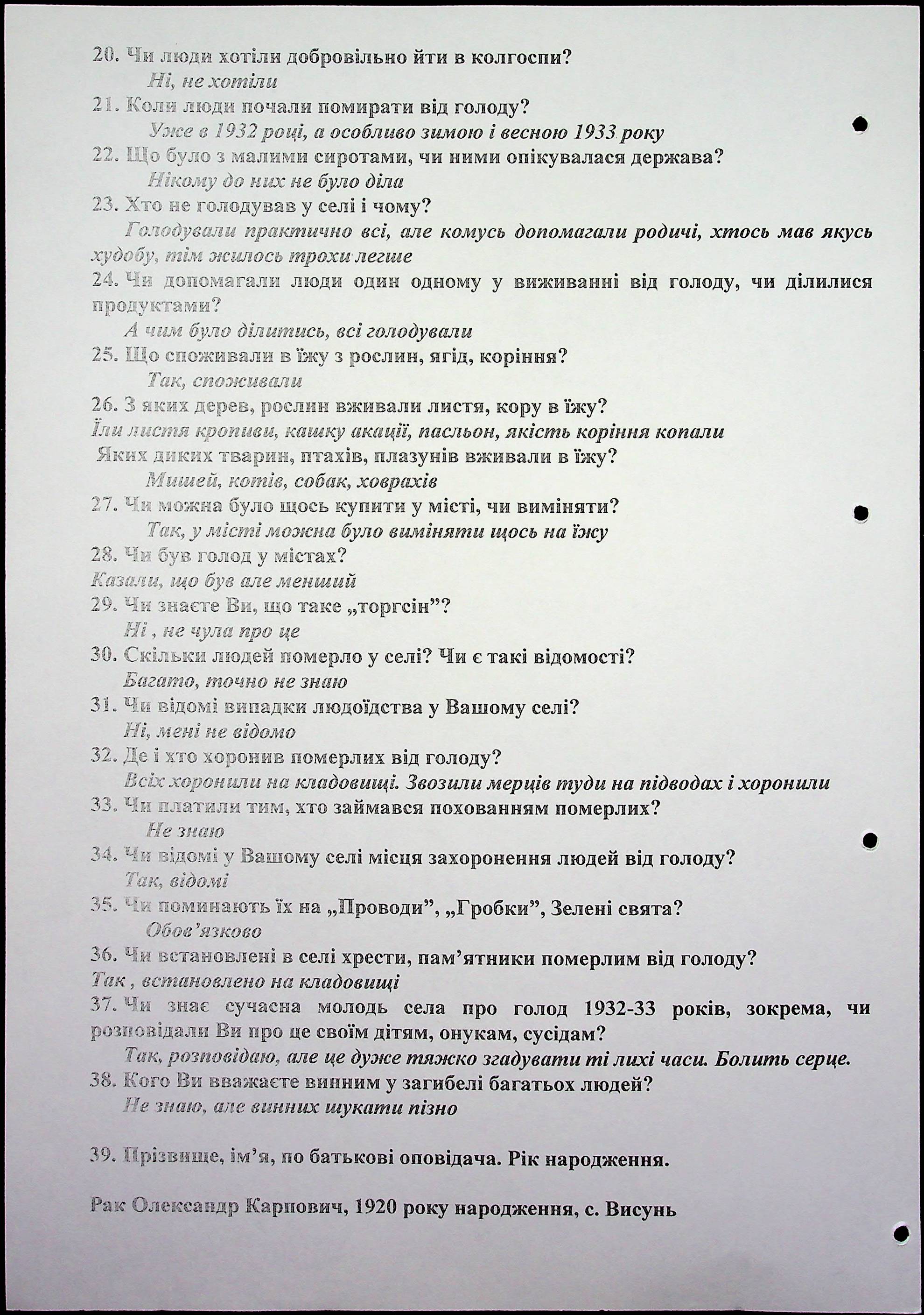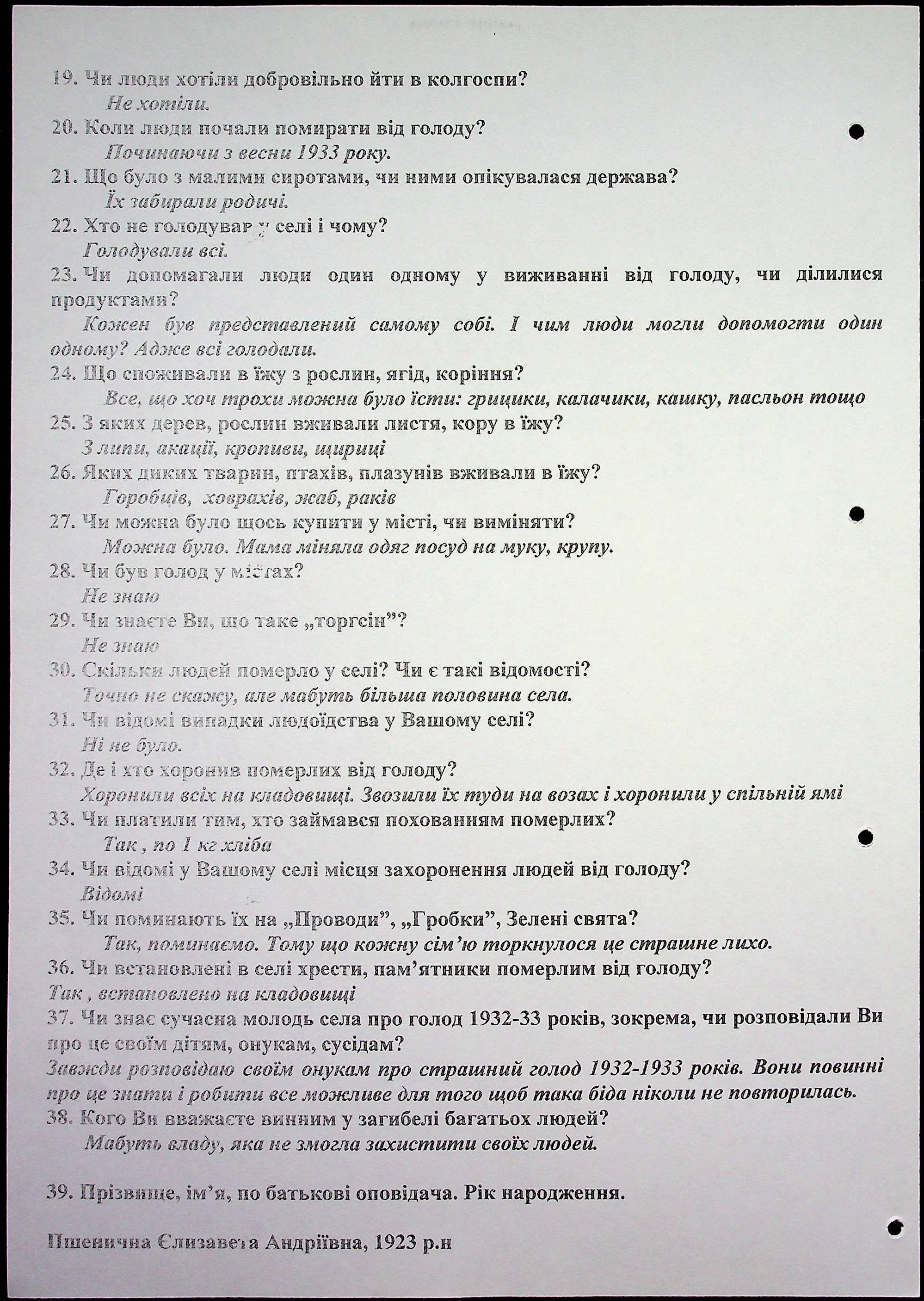 ◦ ◦ Фонд № 6146 “Колекція свідчень очевидців Голодомору 1932-1933 рр., нині проживаючих у Миколаївській області”