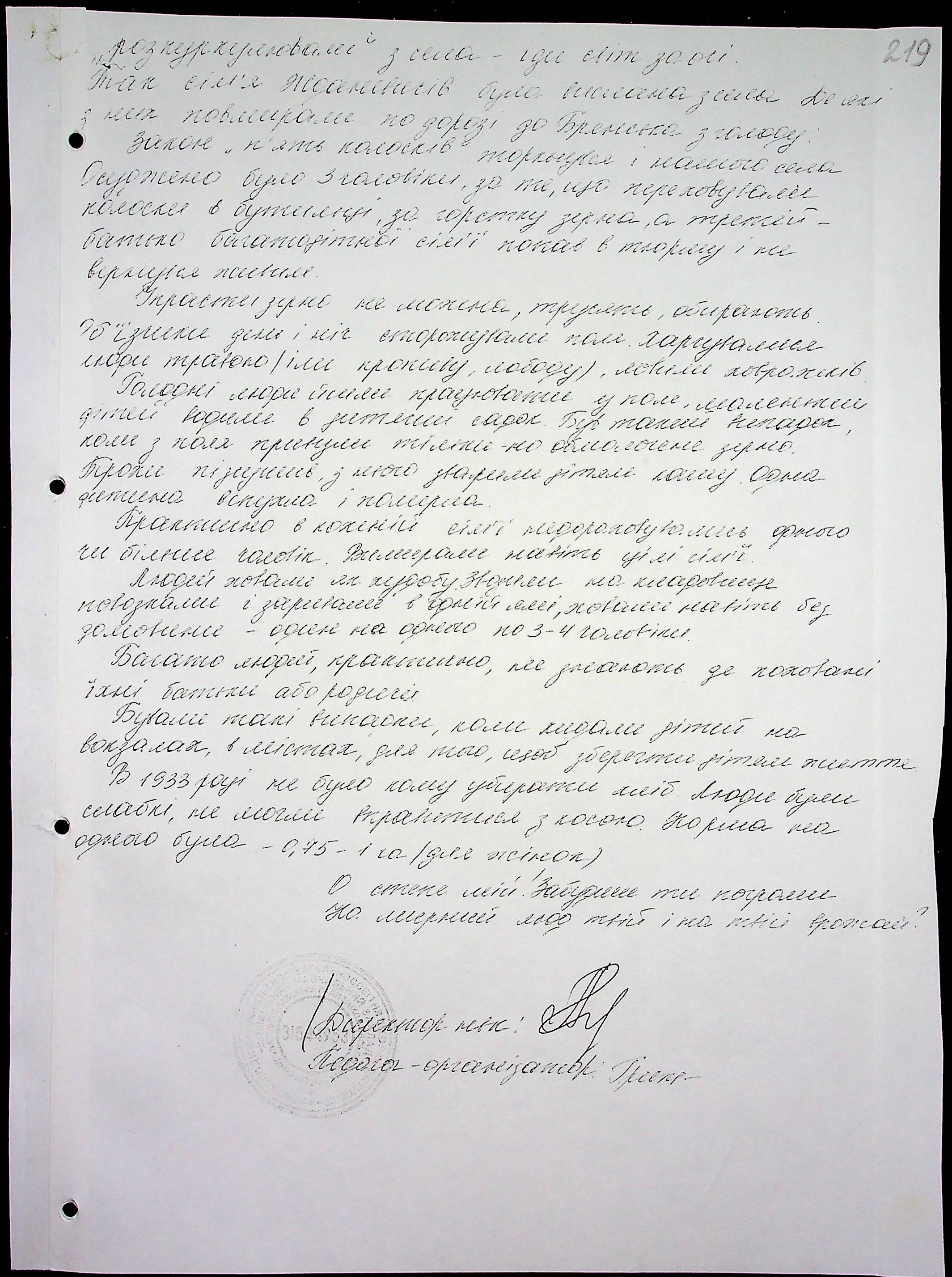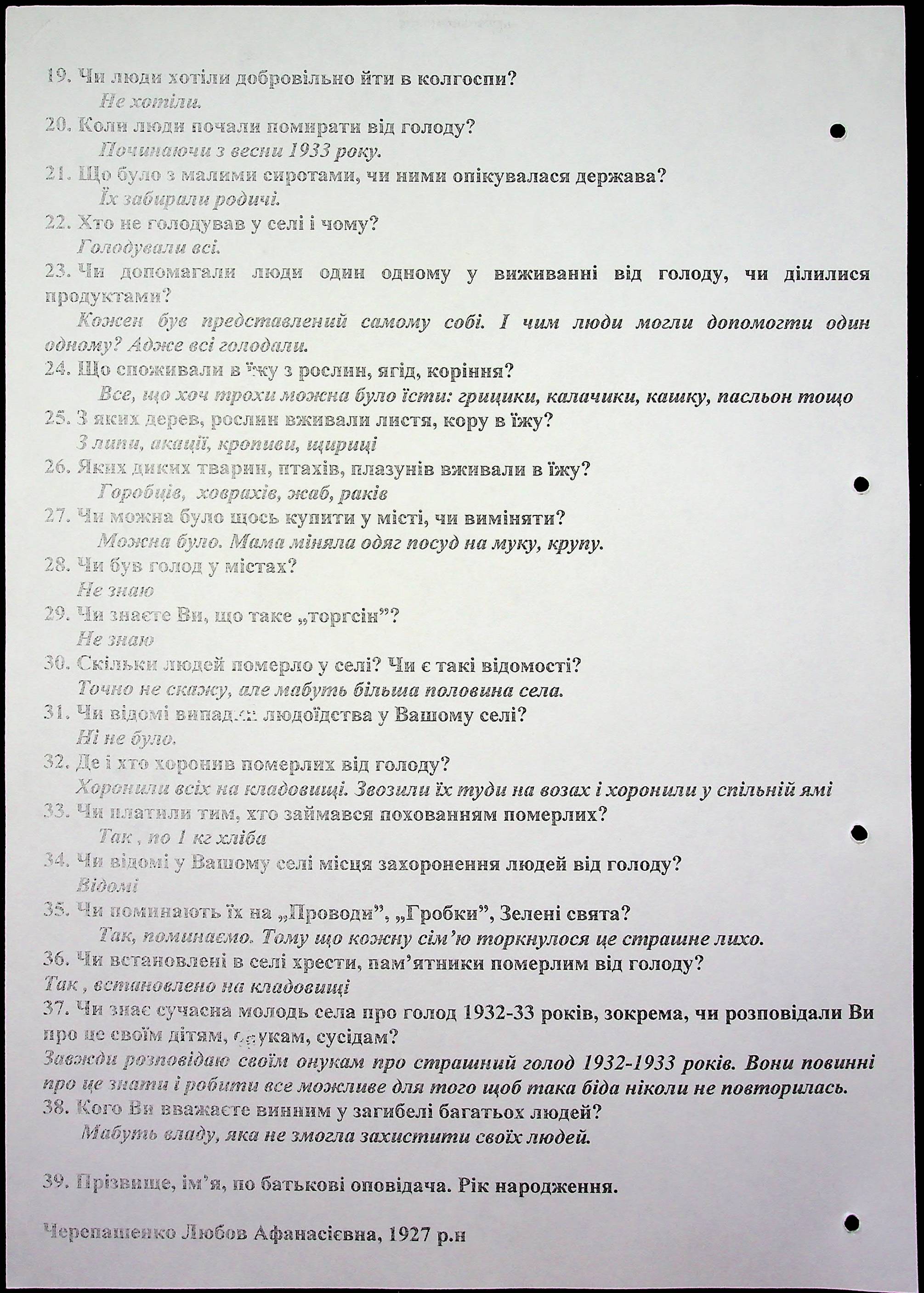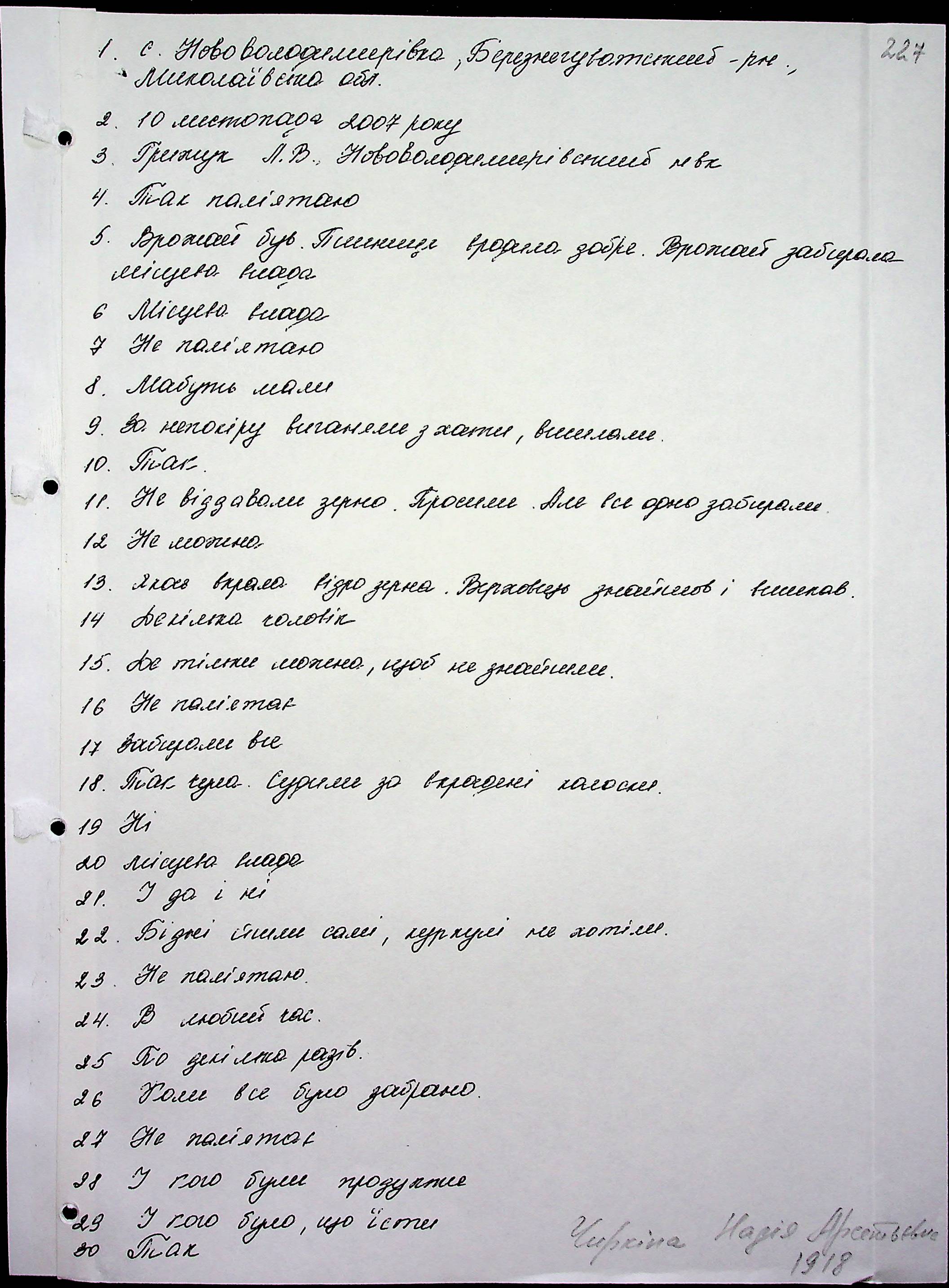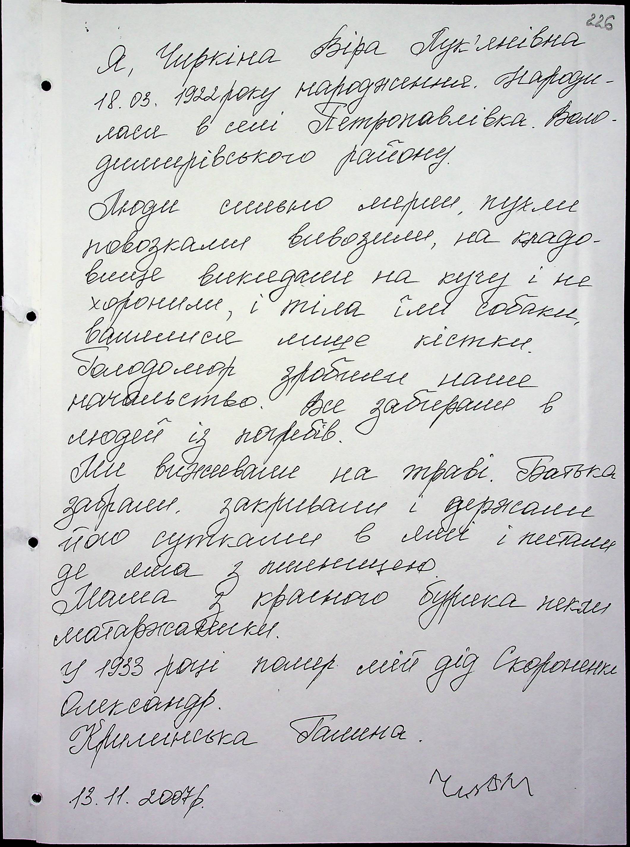 • • • • Справа № 16 “Свідчення очевидців Голодомору 1932-1933 років, які проживають у Березнегуватському районі, з прізвищами на літери С–Я”