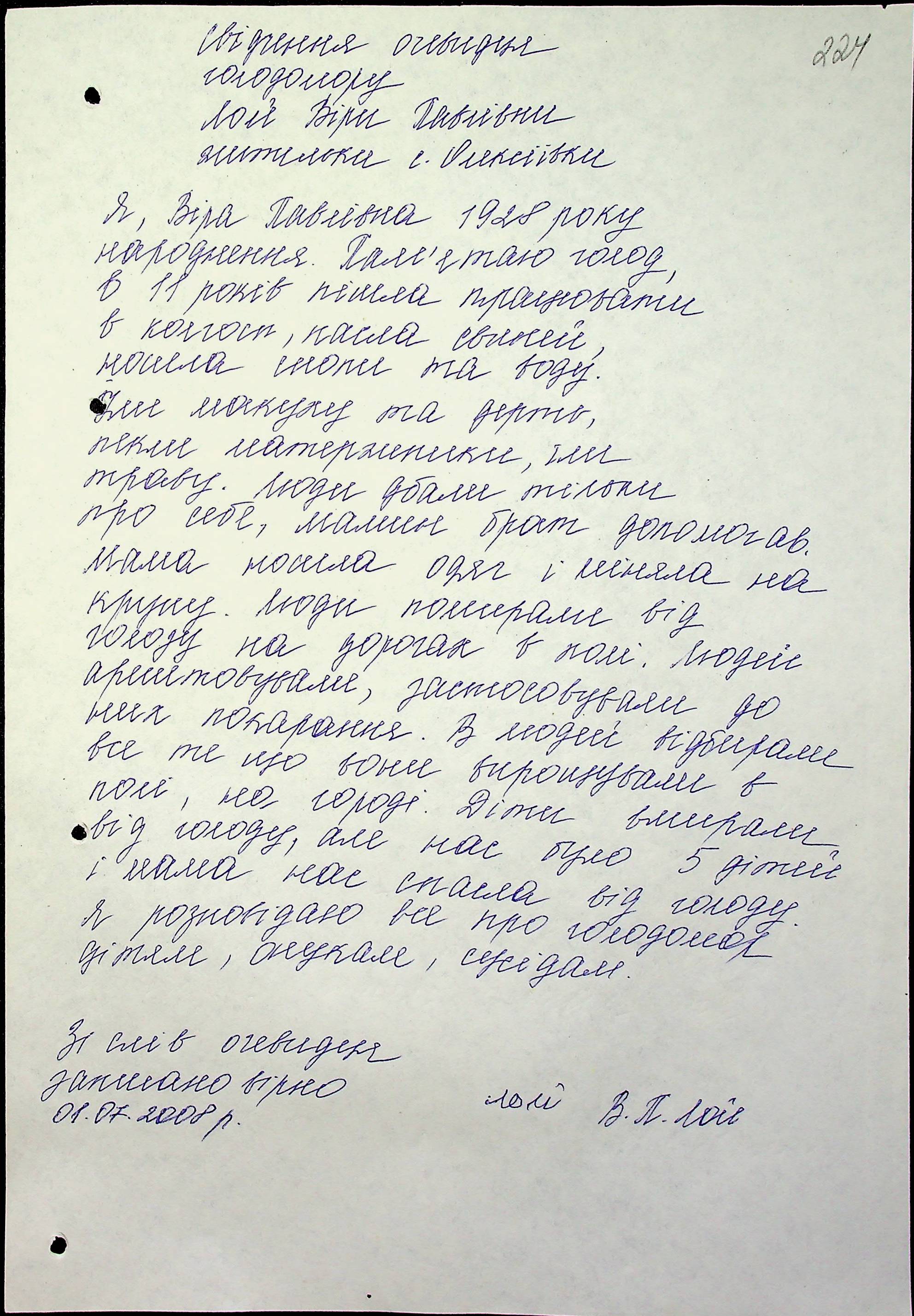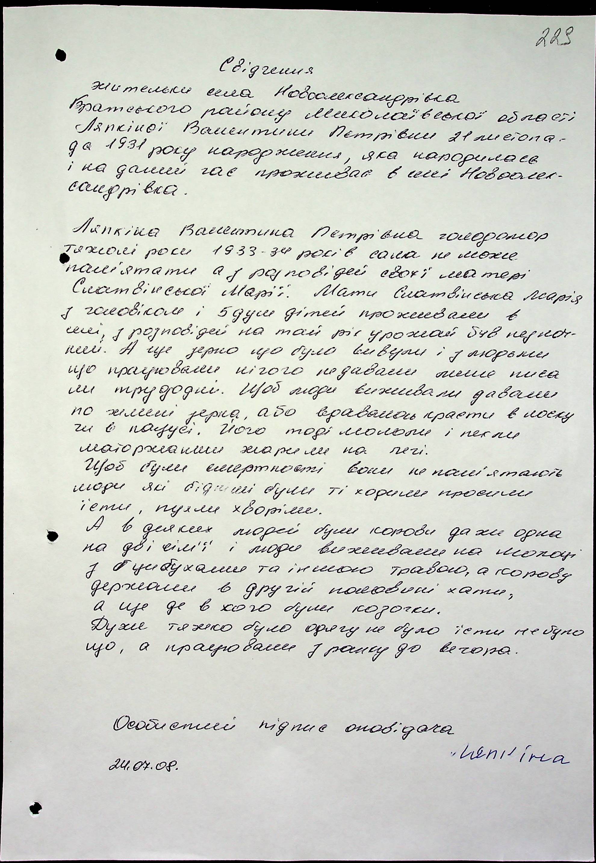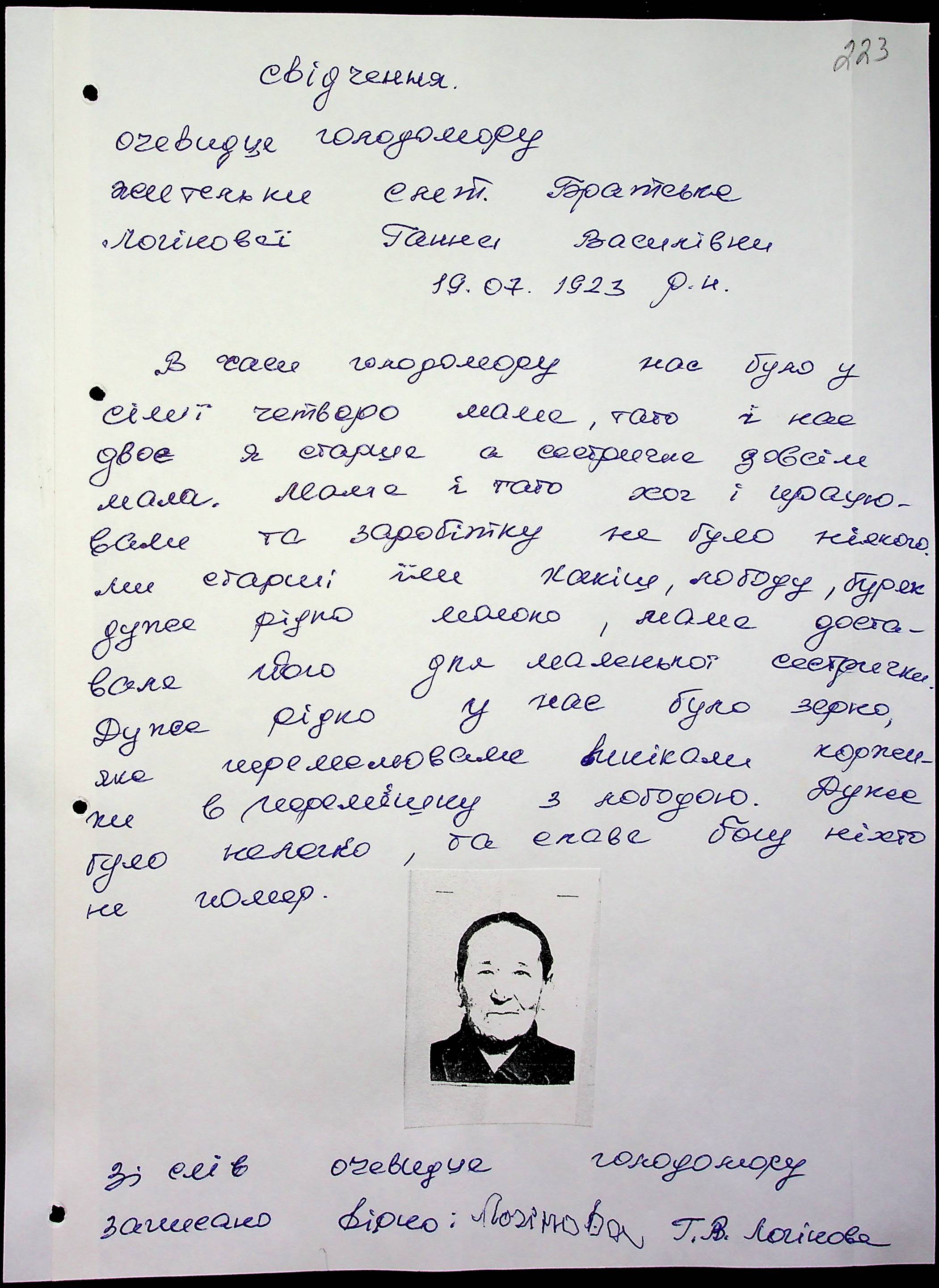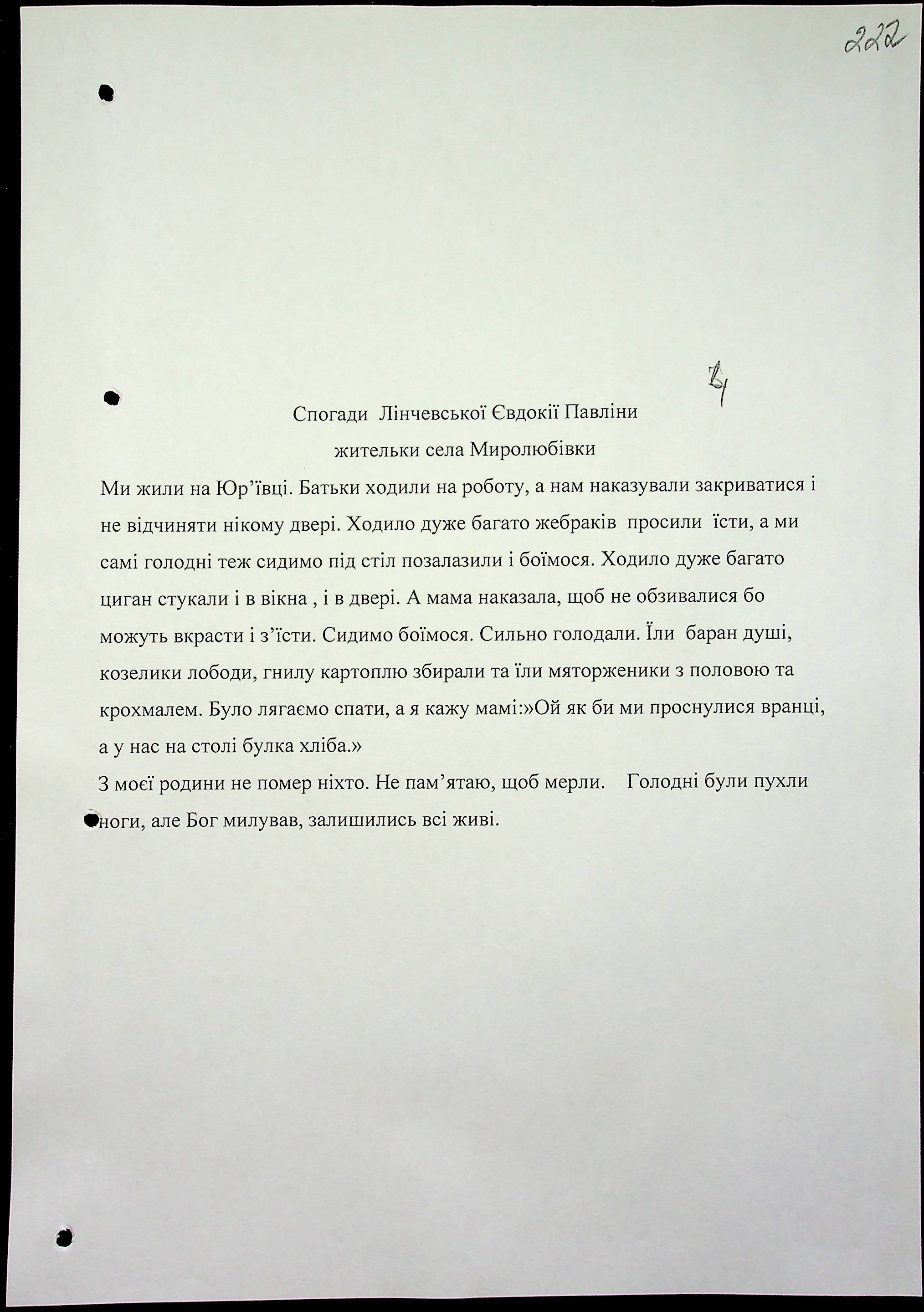 • • • • Справа № 17 “Свідчення очевидців Голодомору 1932-1933 років, які проживають у Братському районі, з прізвищами на літери А–Л”