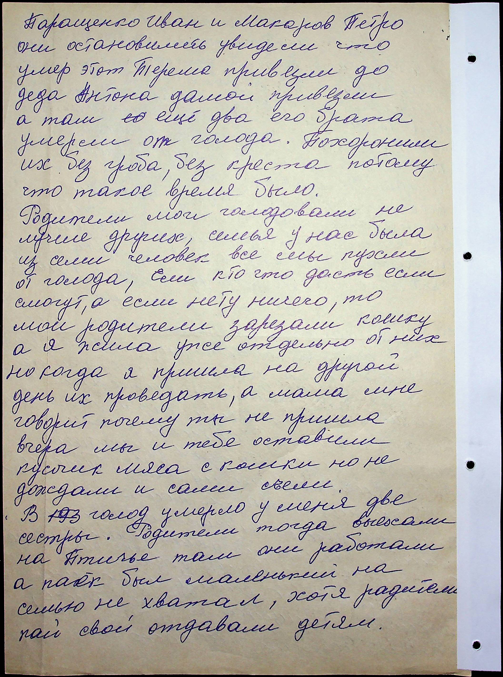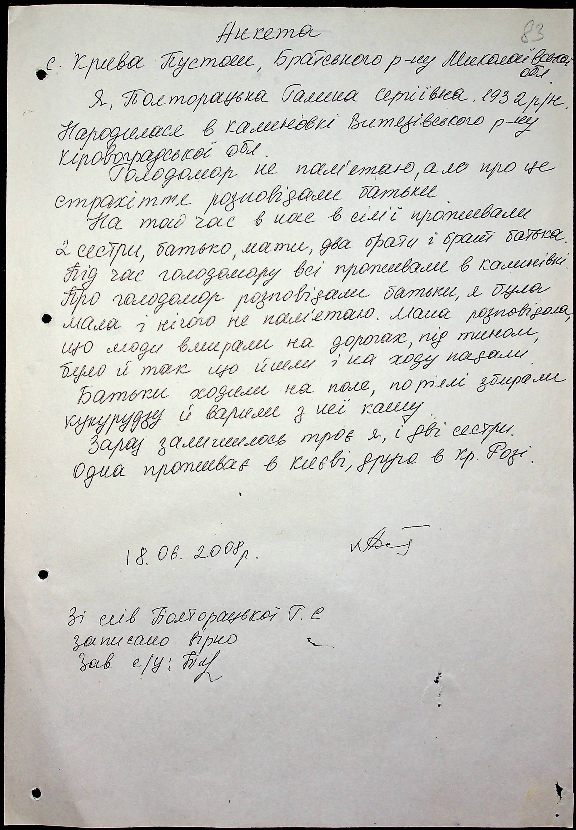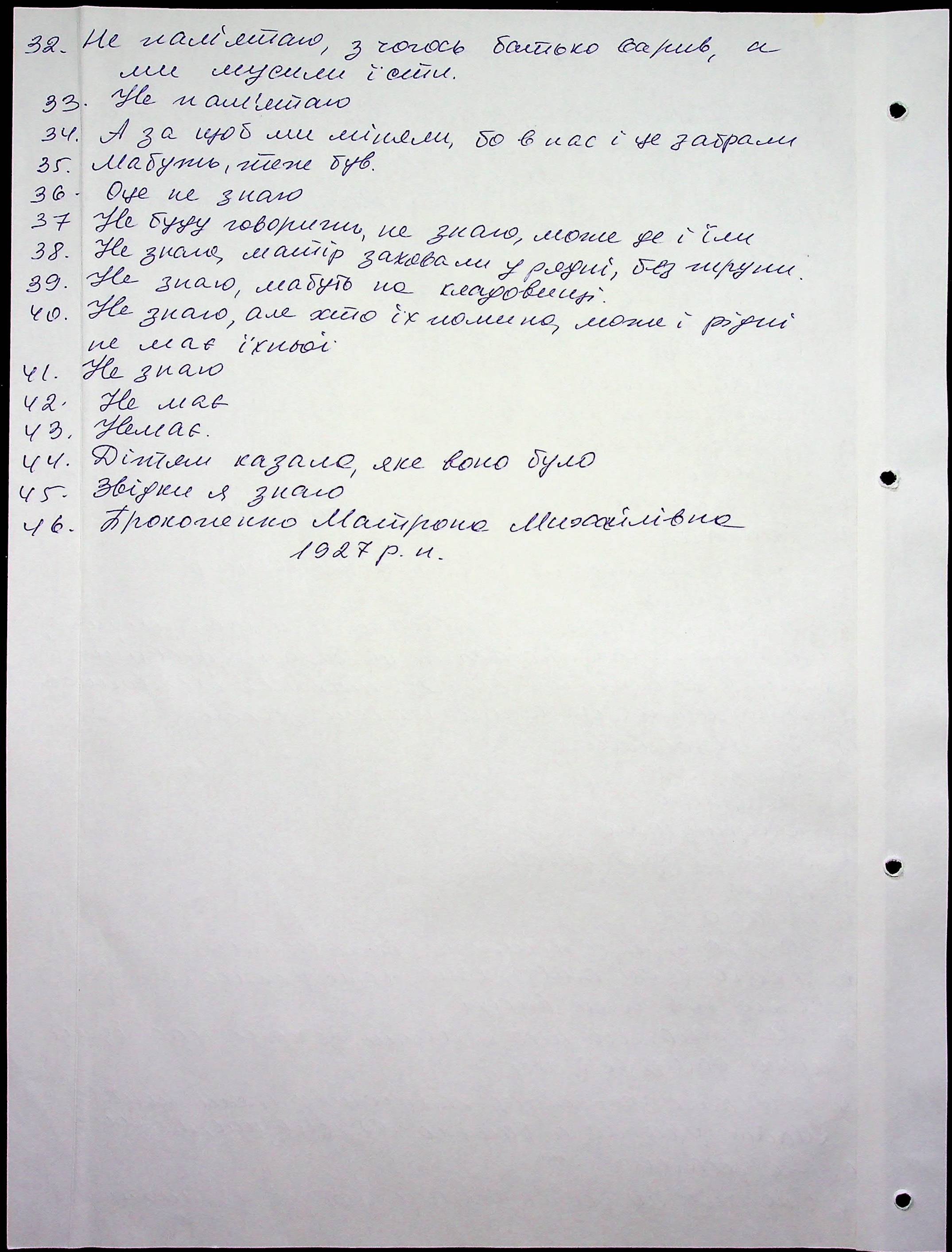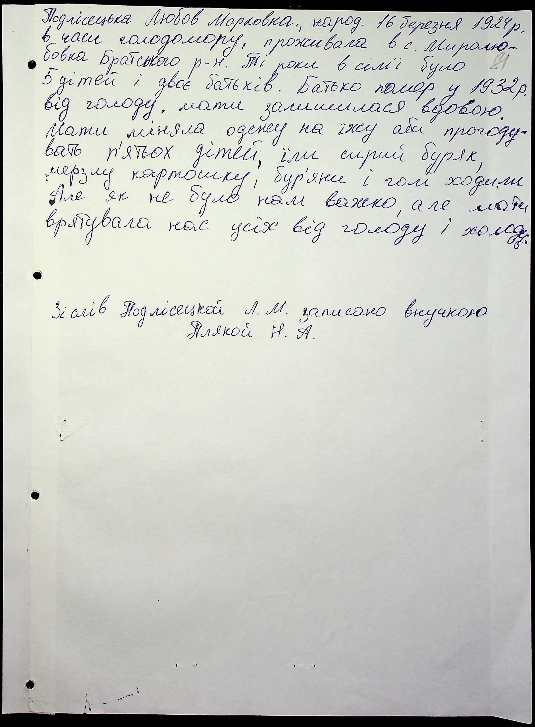 • • • • Справа № 18 “Свідчення очевидців Голодомору 1932-1933 років, які проживають у Братському районі, з прізвищами на літери А–Л”