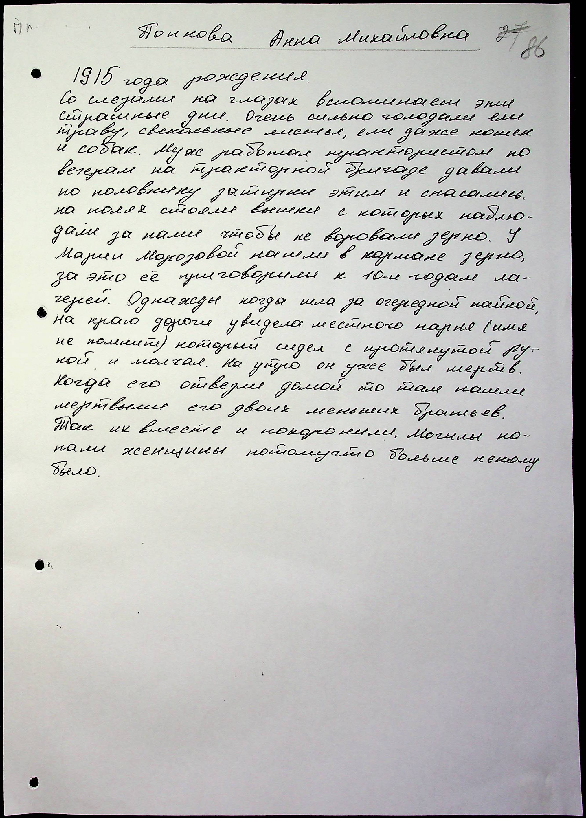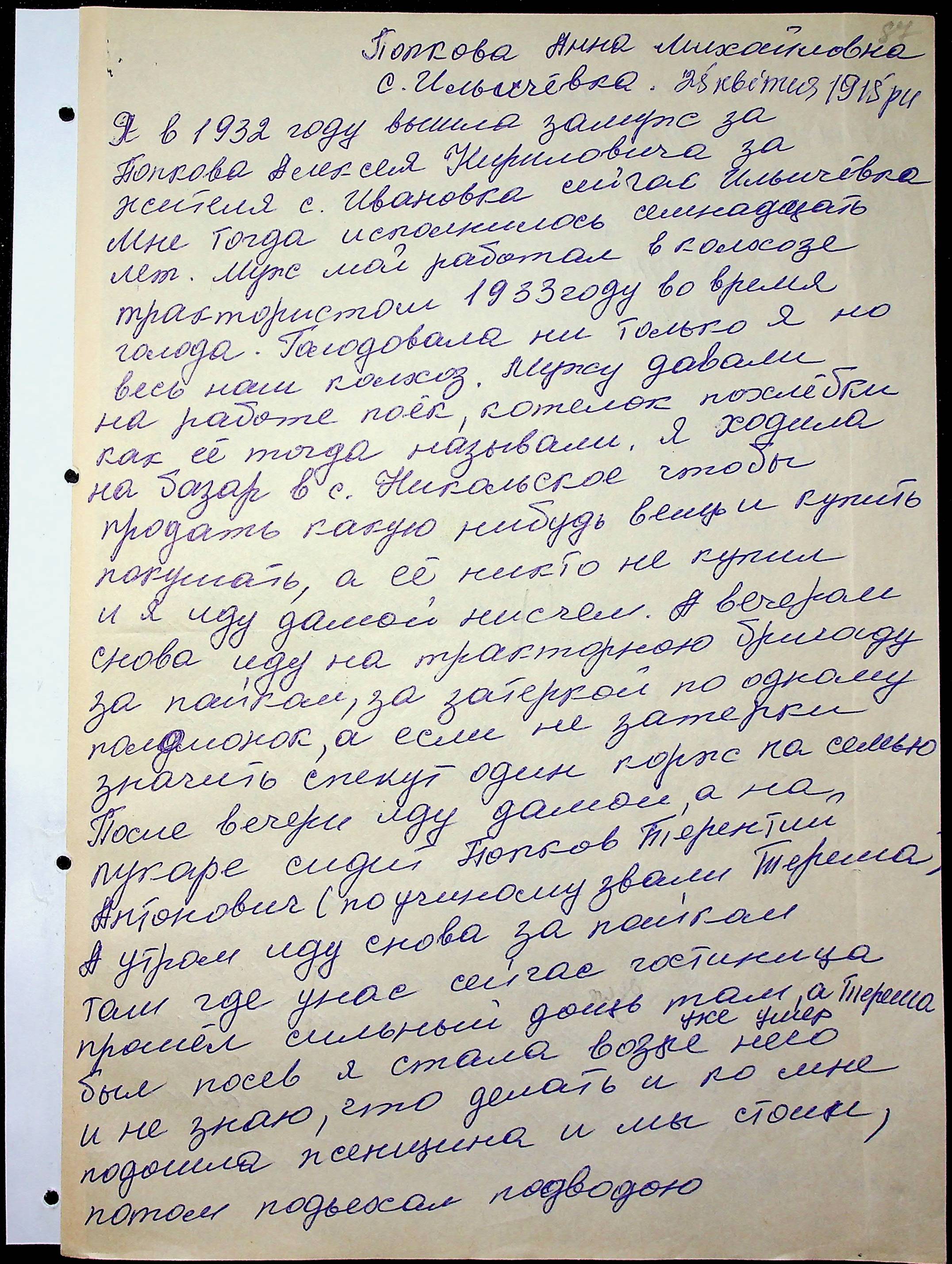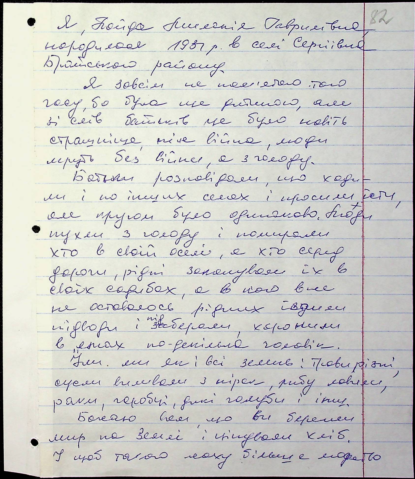 • • • • Справа № 18 “Свідчення очевидців Голодомору 1932-1933 років, які проживають у Братському районі, з прізвищами на літери А–Л”