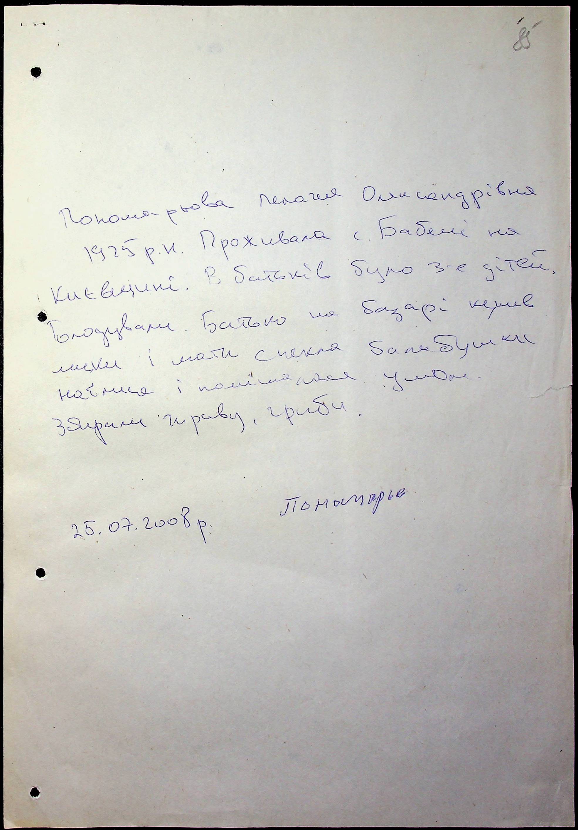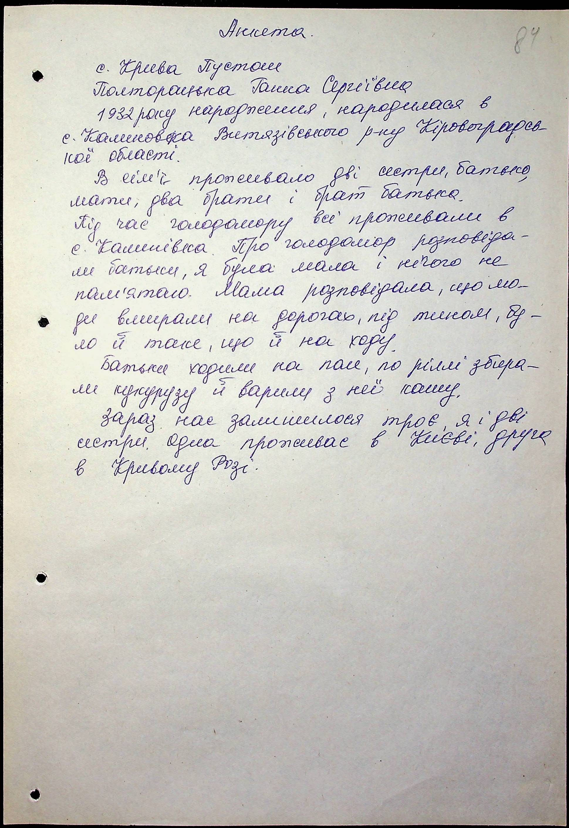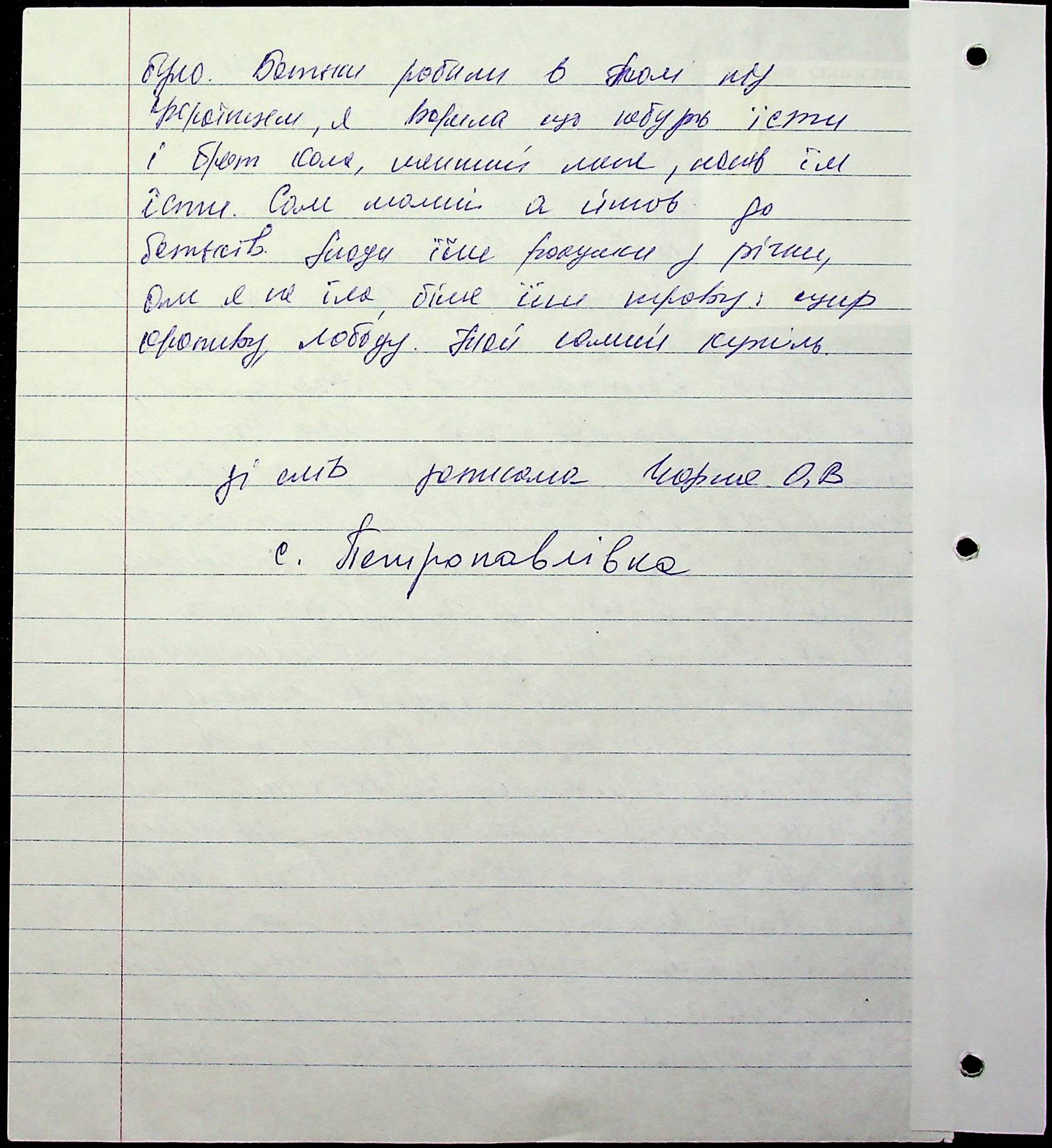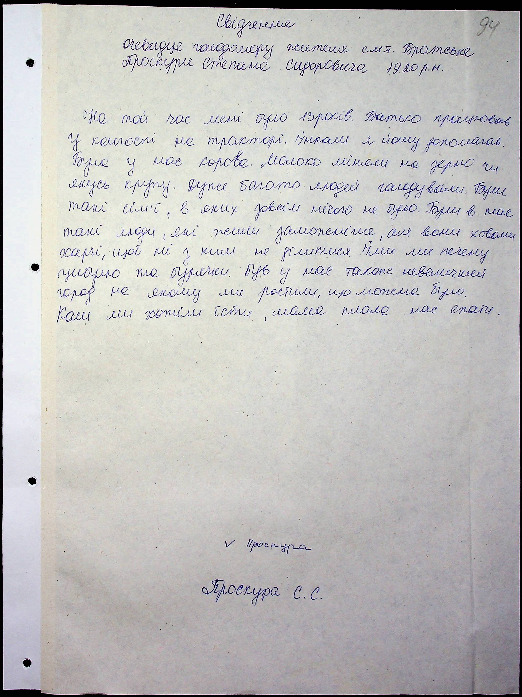 • • • • Справа № 18 “Свідчення очевидців Голодомору 1932-1933 років, які проживають у Братському районі, з прізвищами на літери А–Л”