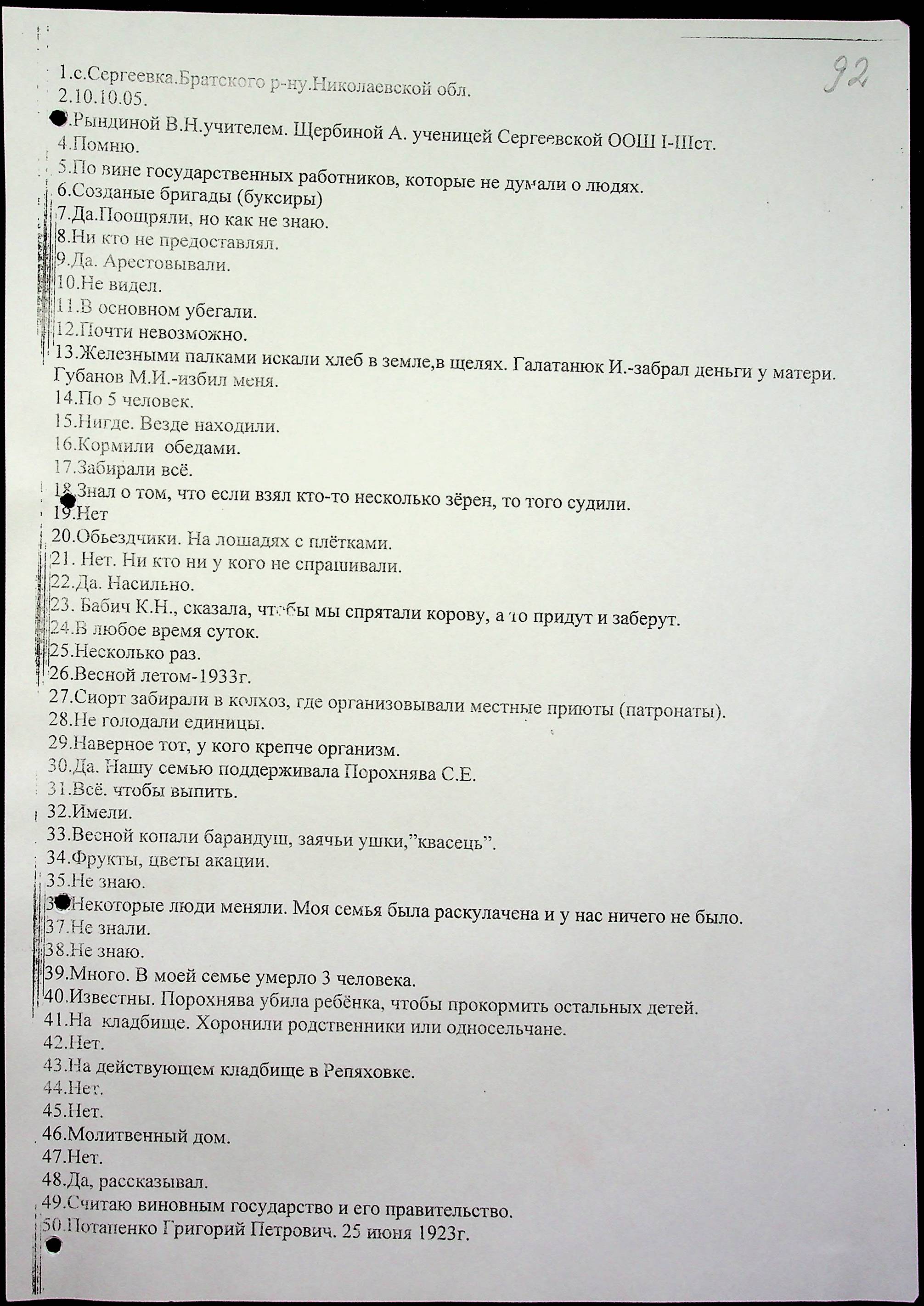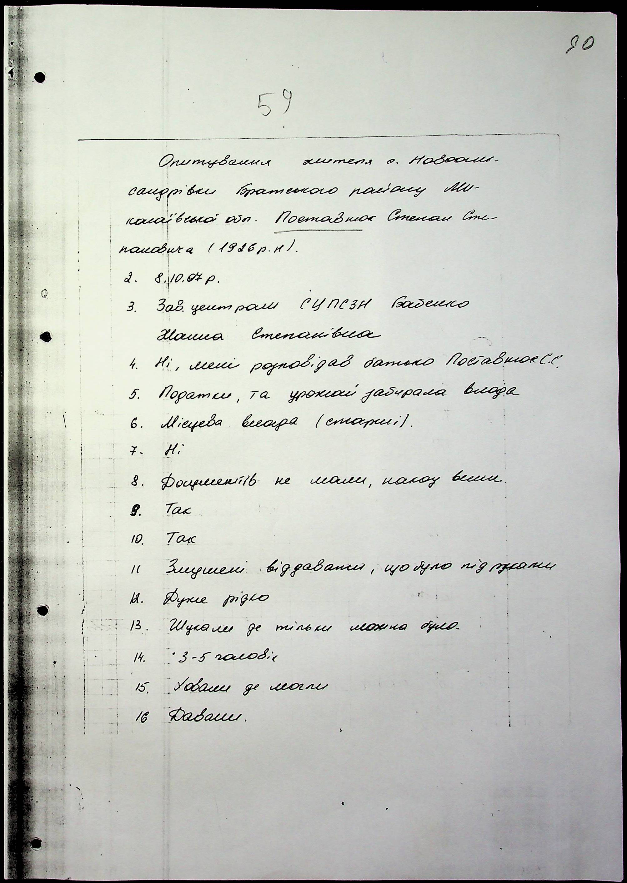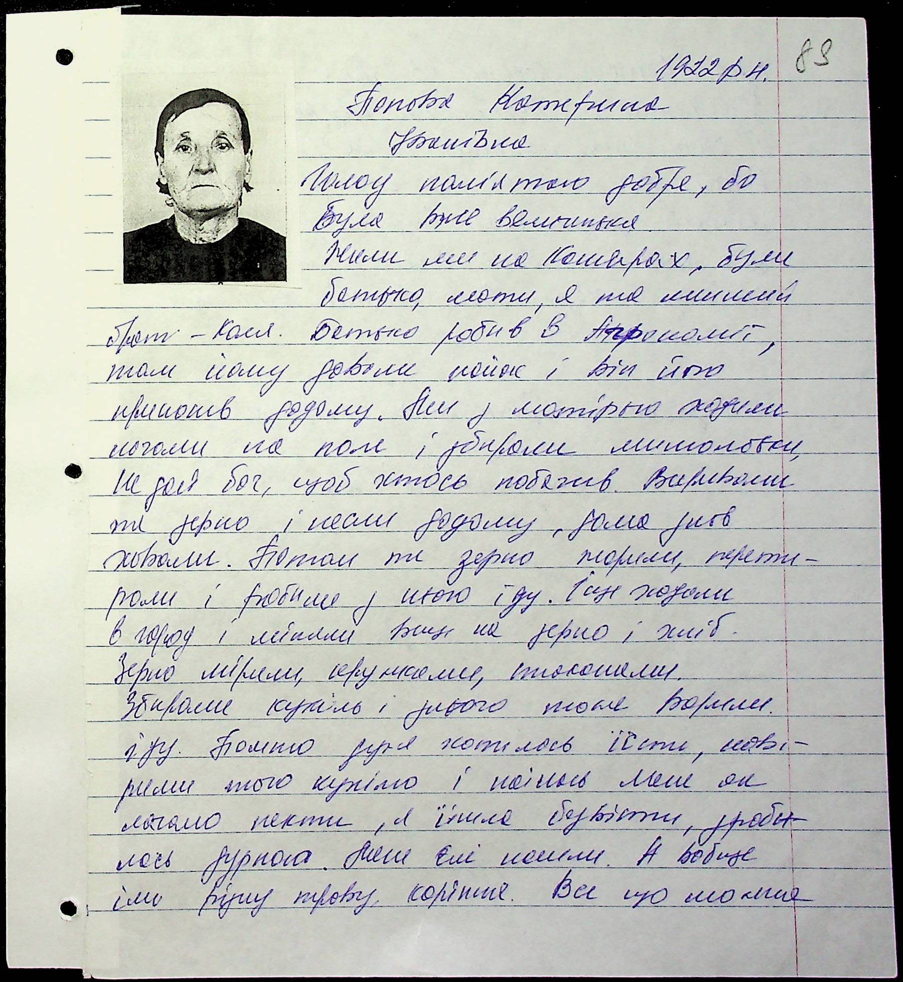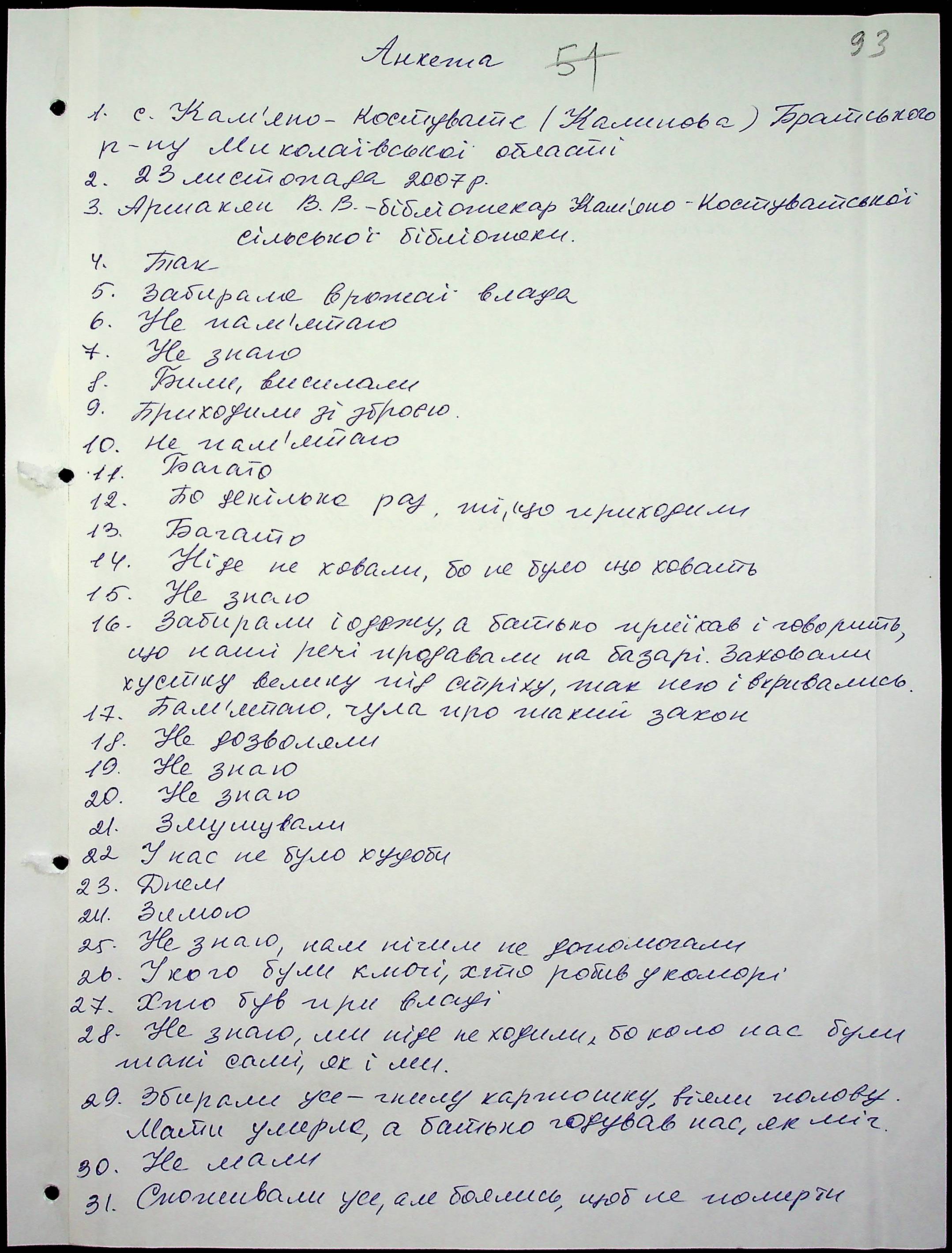 ◦ ◦ Фонд № 6146 “Колекція свідчень очевидців Голодомору 1932-1933 рр., нині проживаючих у Миколаївській області”