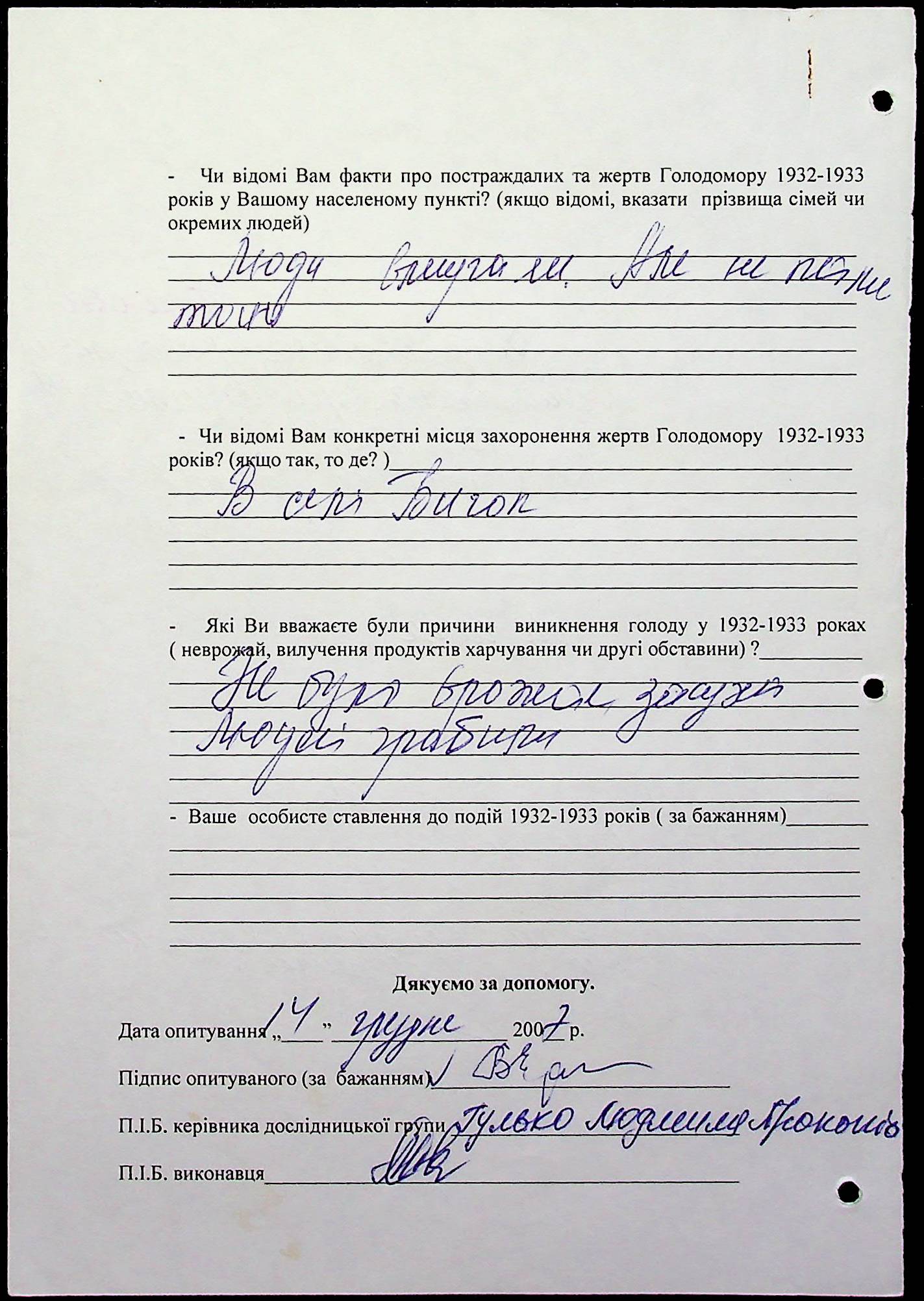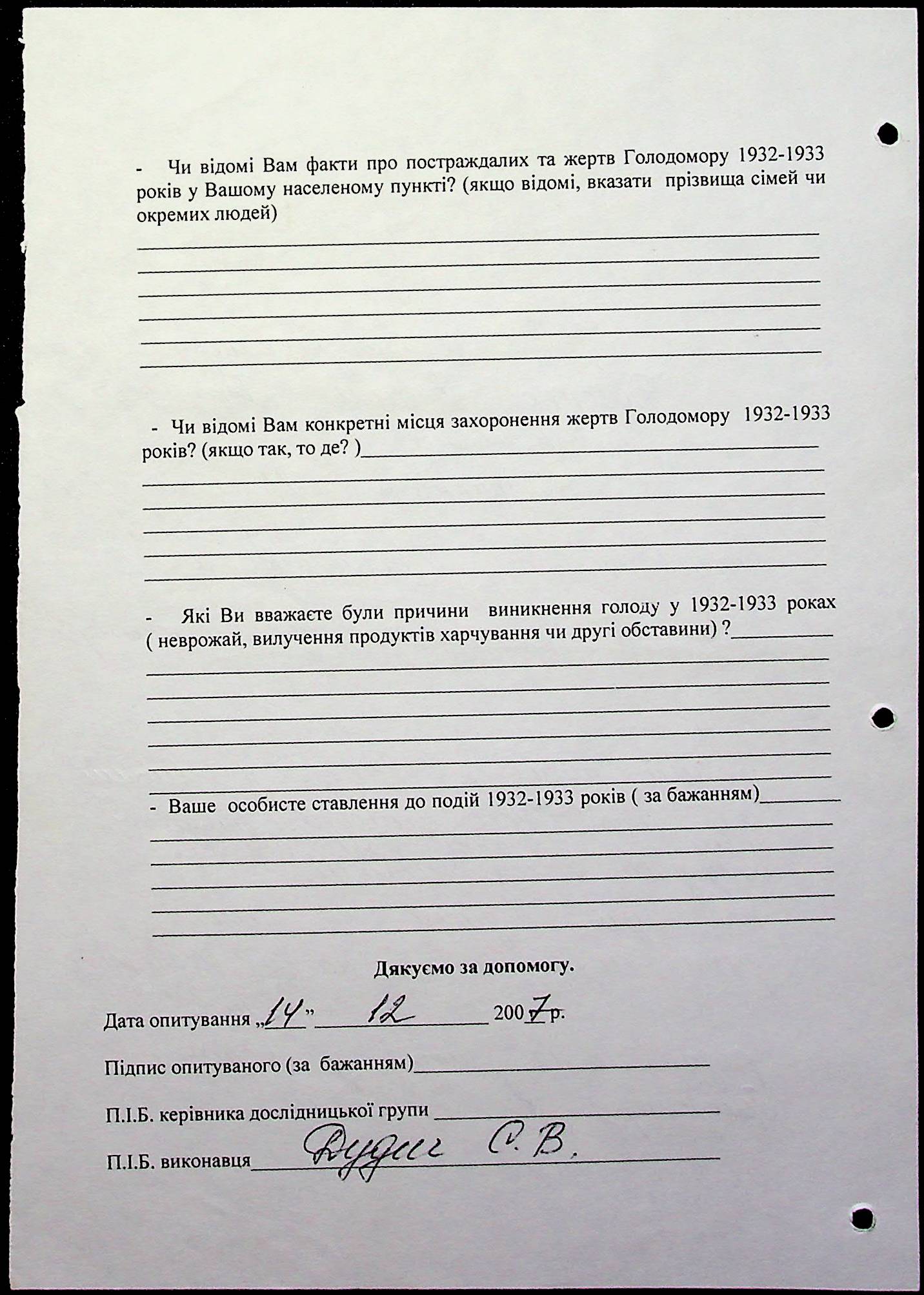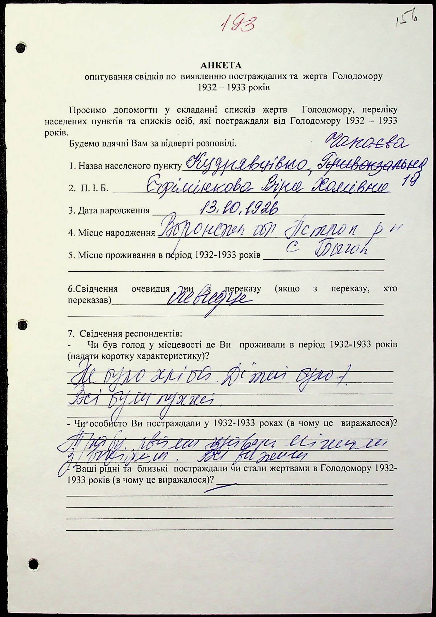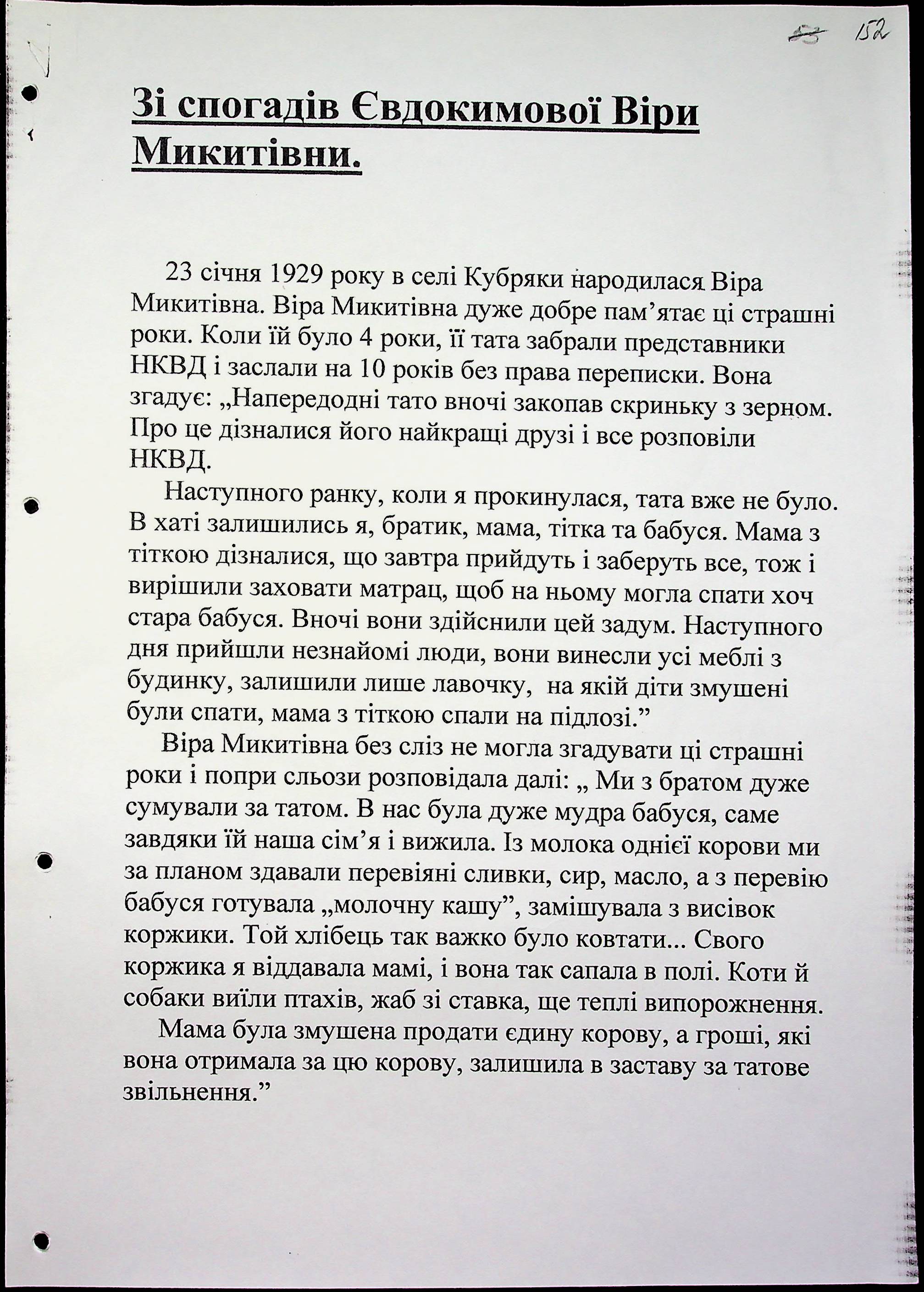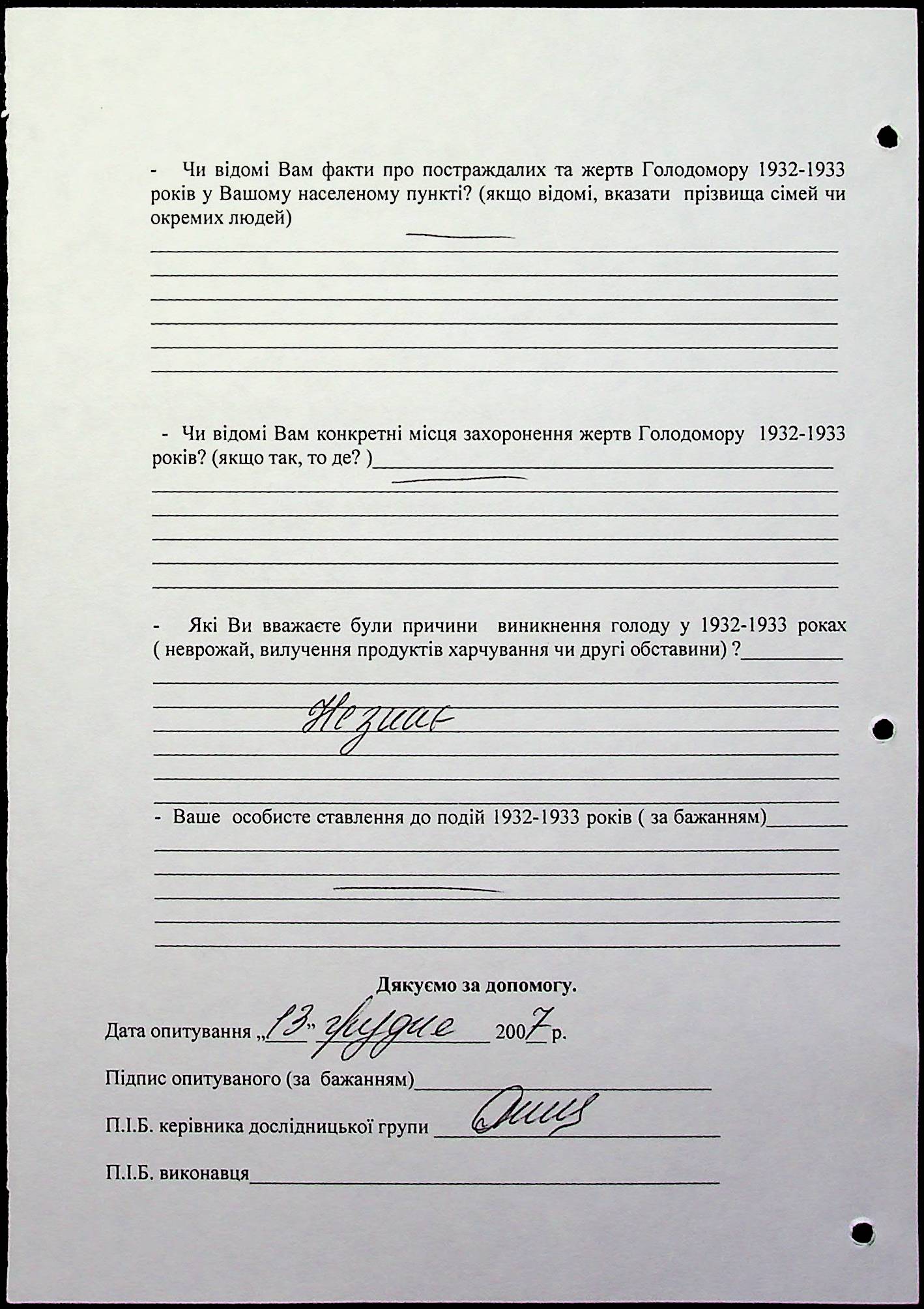 • • • • Справа № 20 “Свідчення очевидців Голодомору 1932-1933 років, які проживають у Веселинівському районі, з прізвищами на літери А–К”
