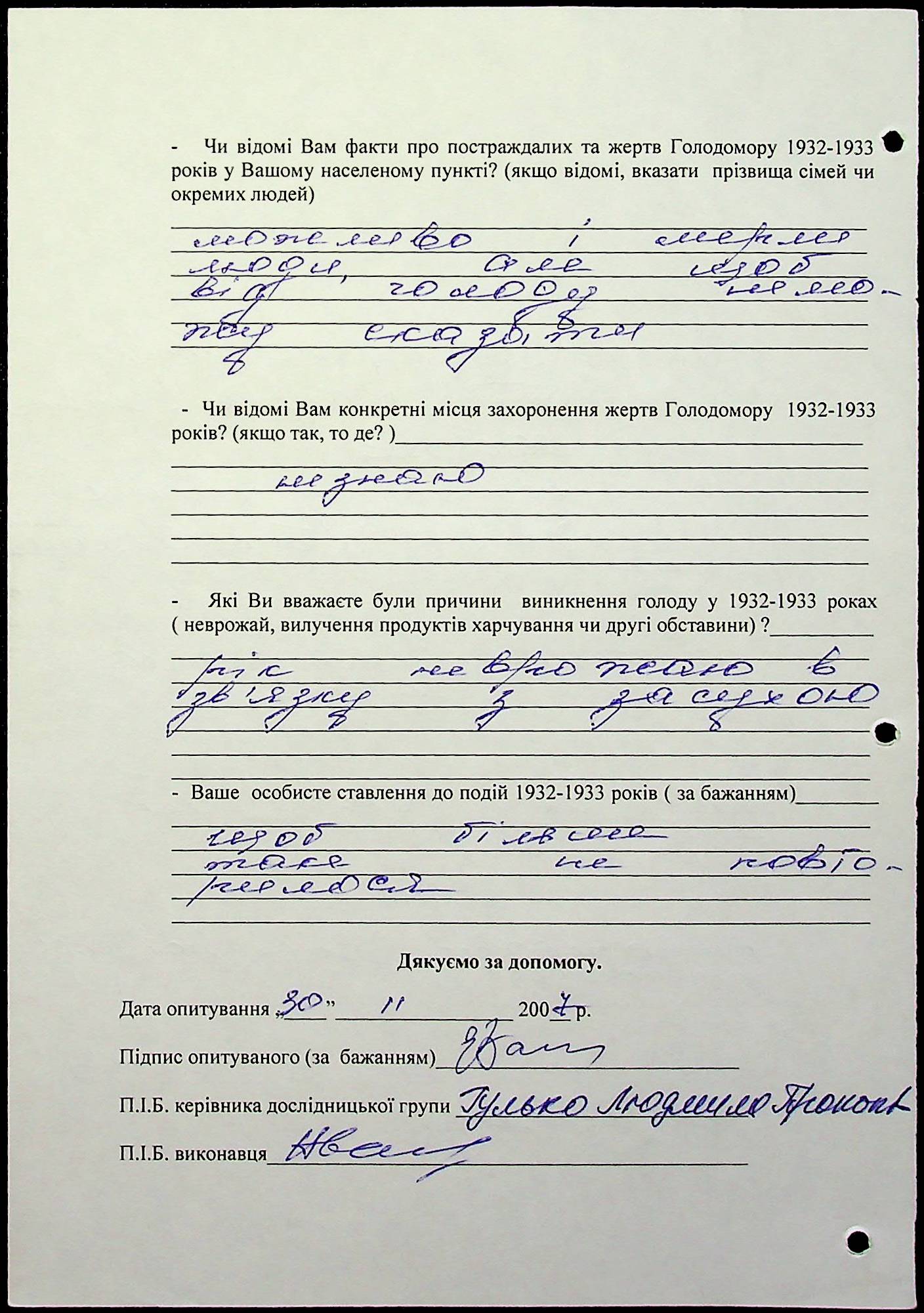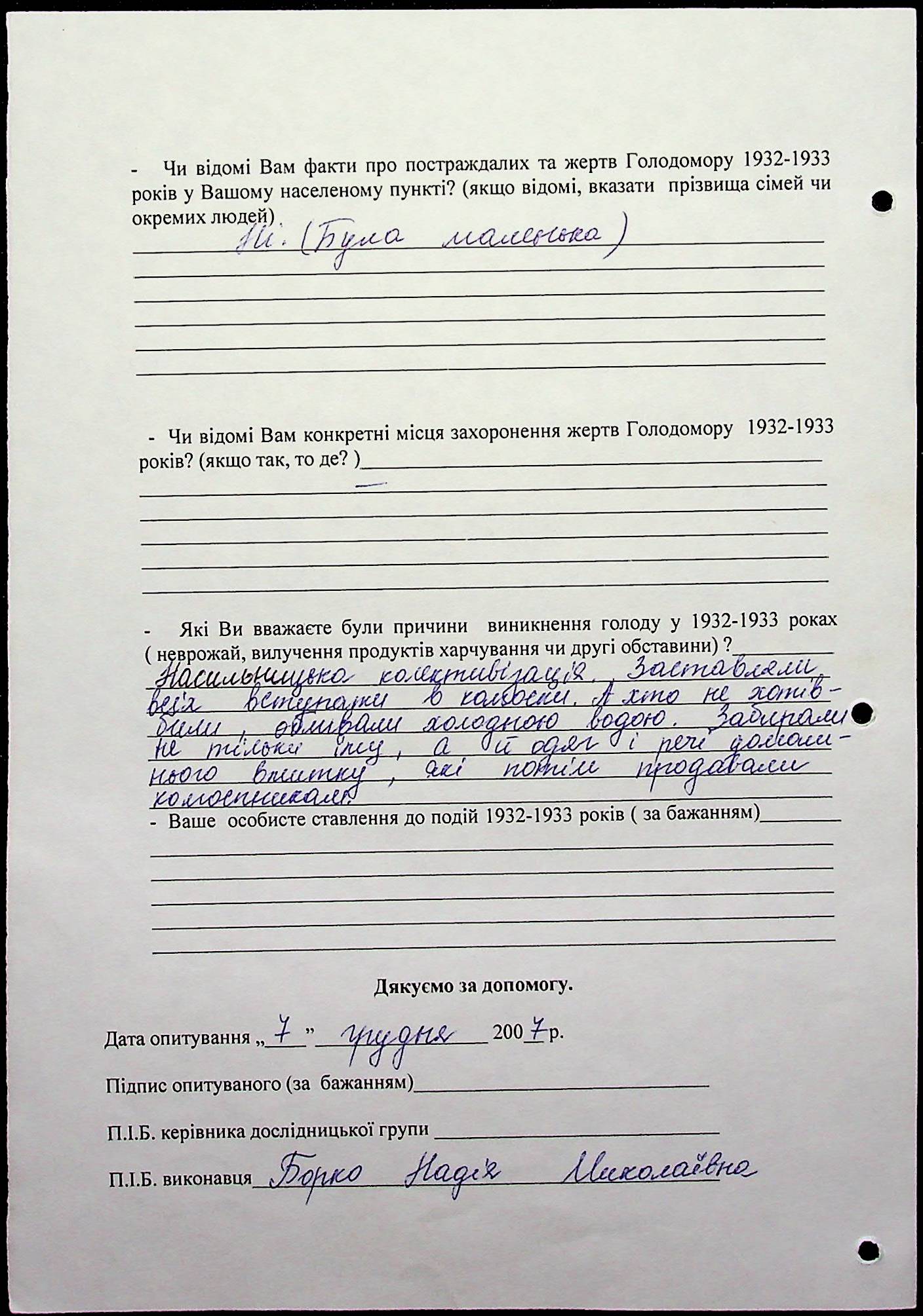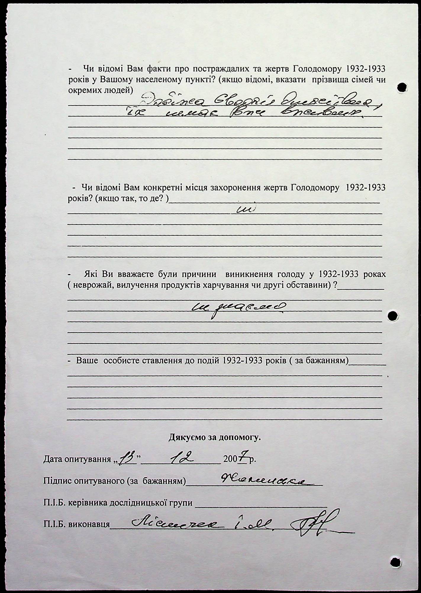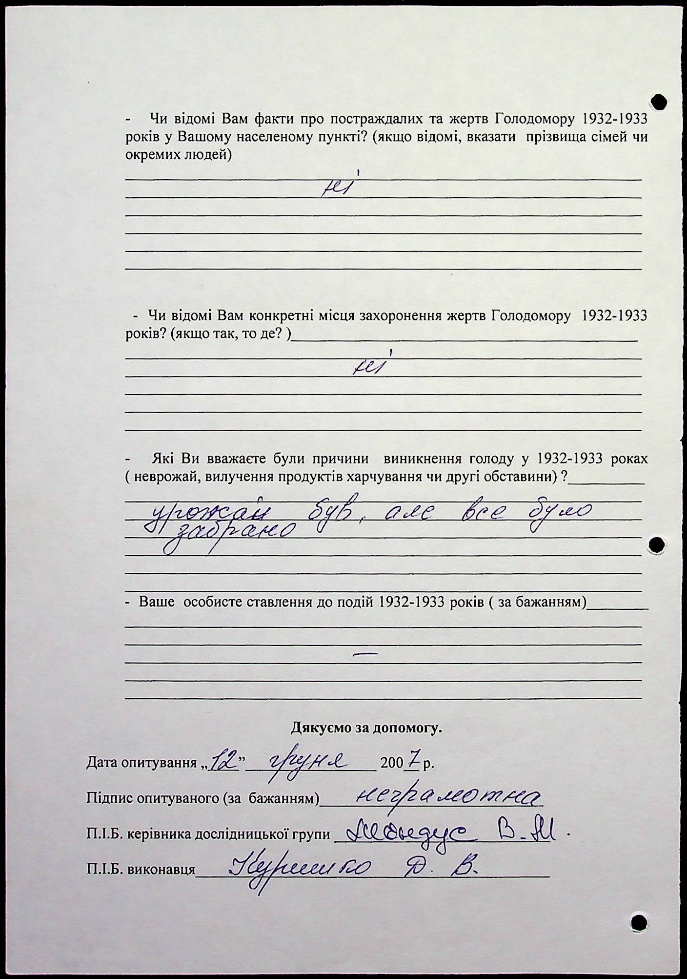 • • • • Справа № 20 “Свідчення очевидців Голодомору 1932-1933 років, які проживають у Веселинівському районі, з прізвищами на літери А–К”