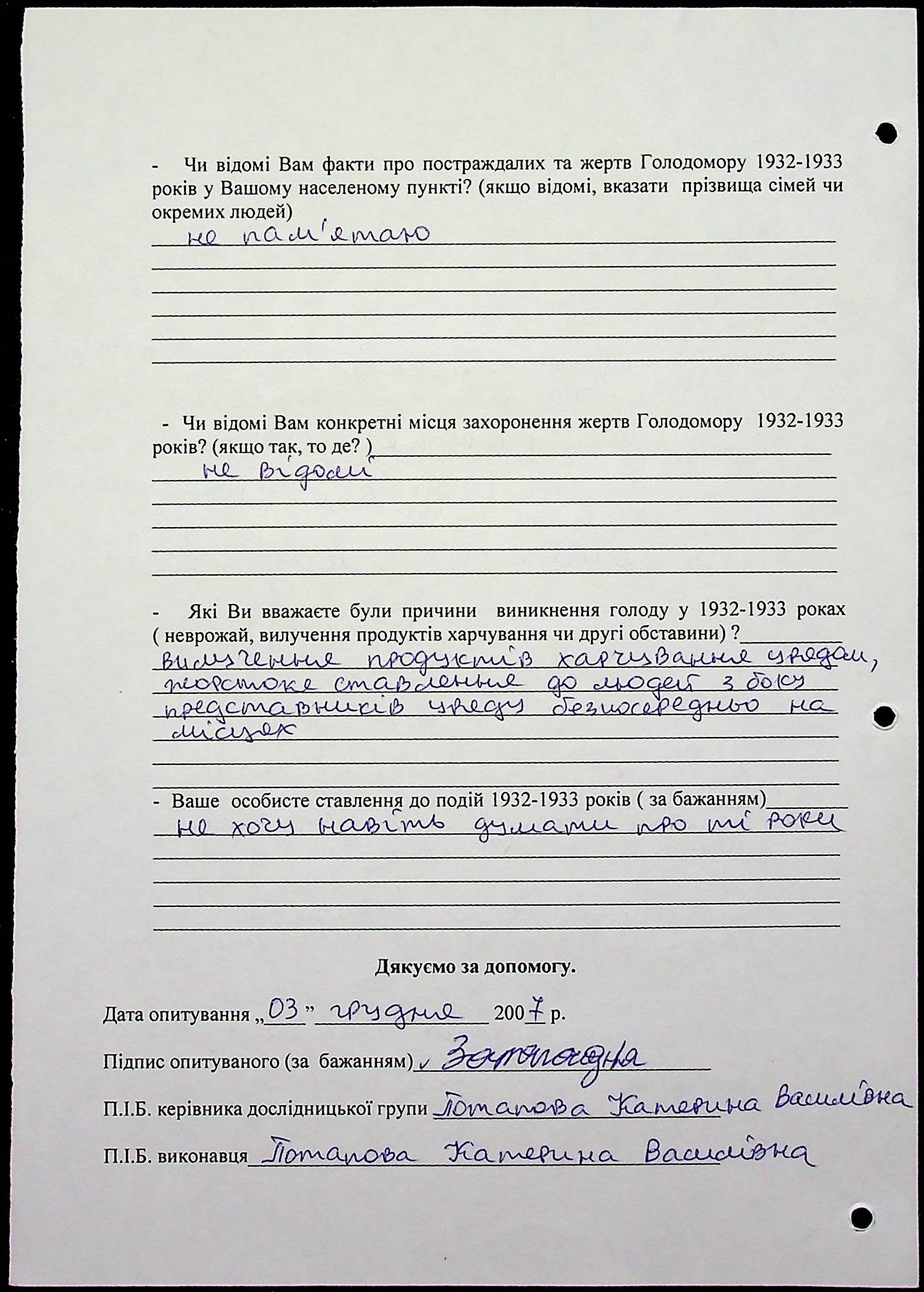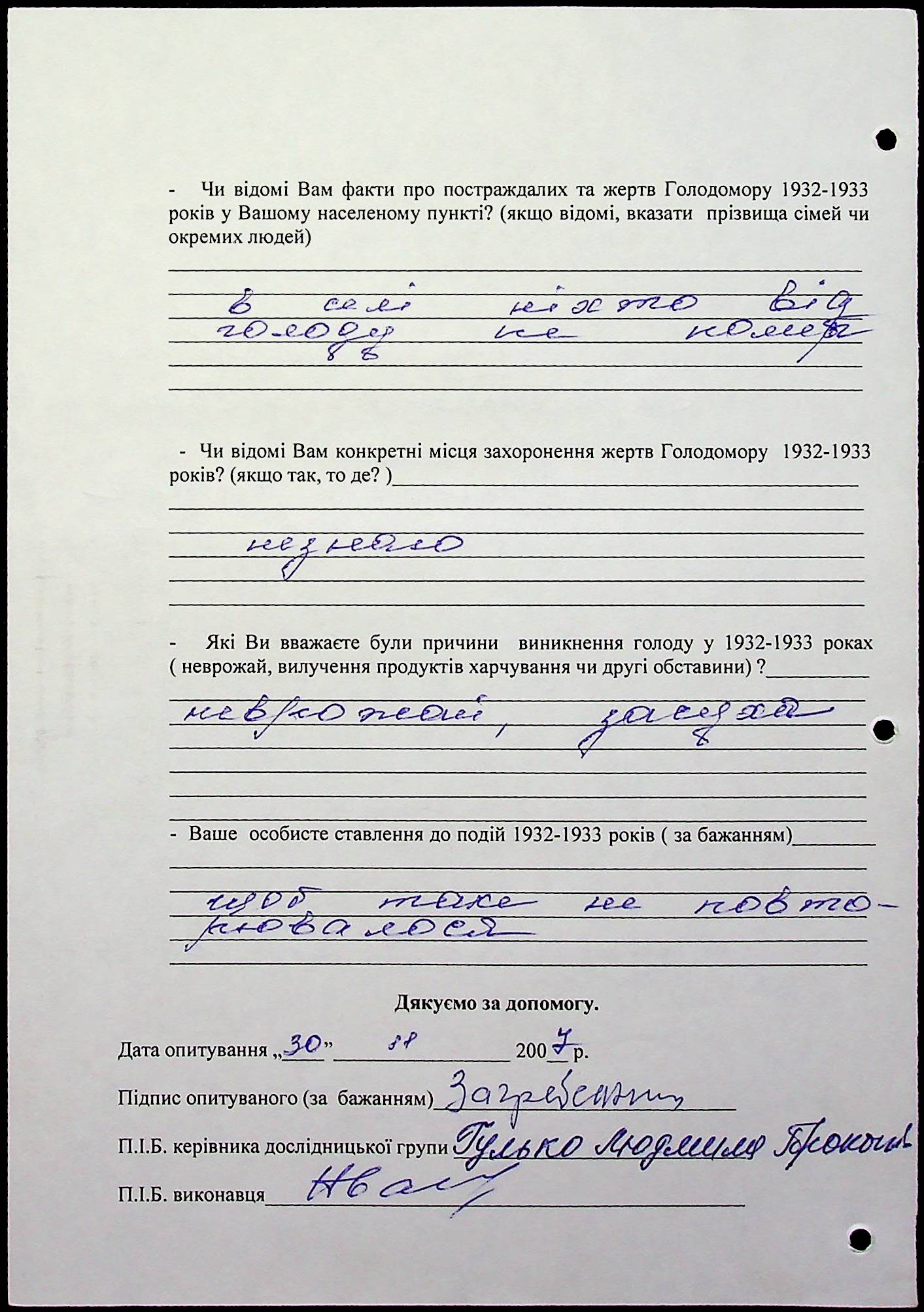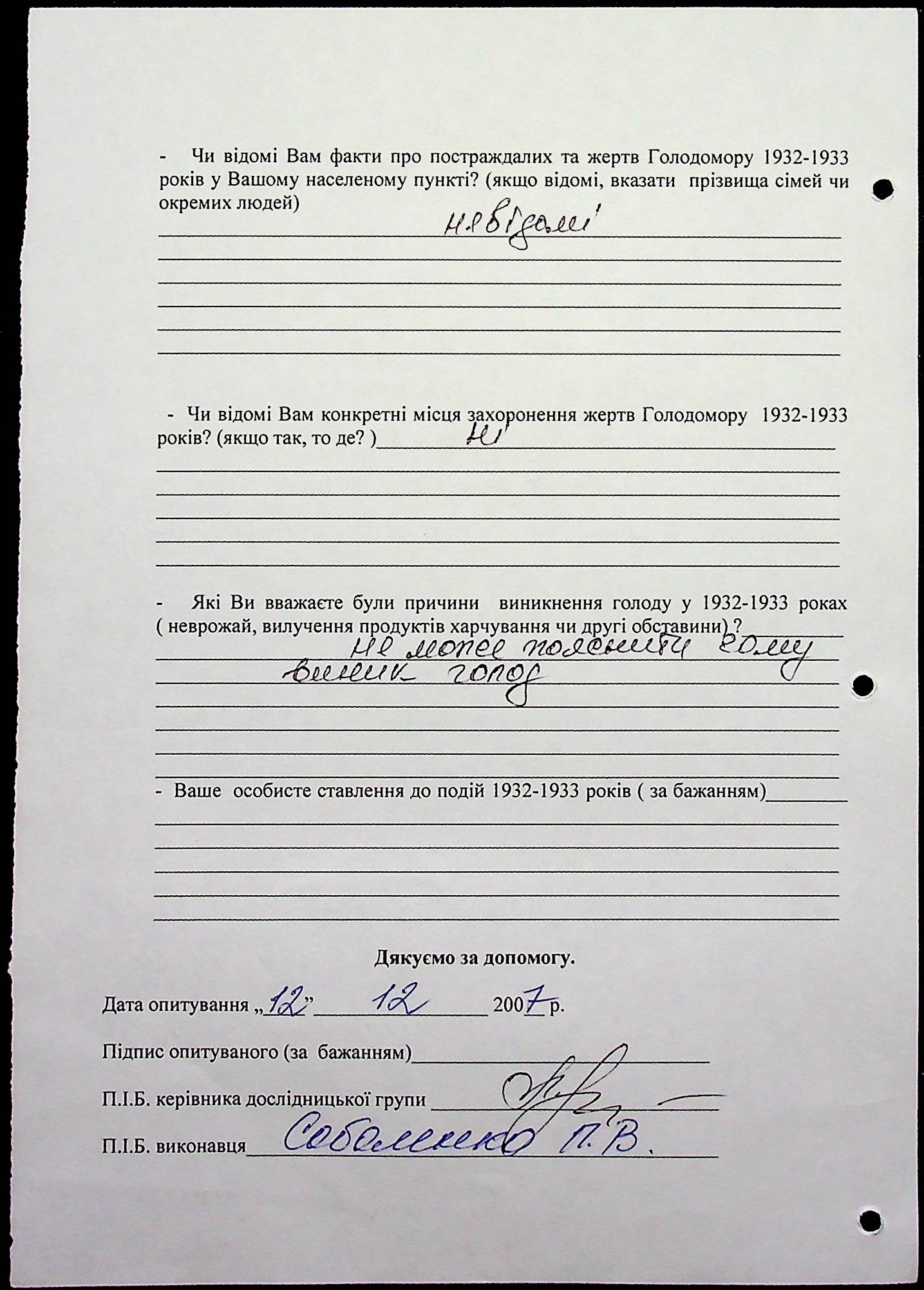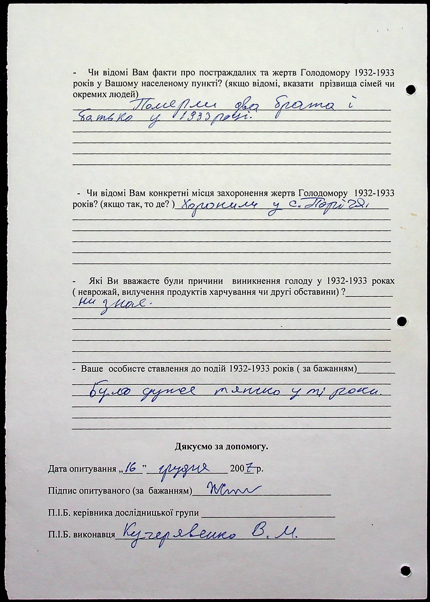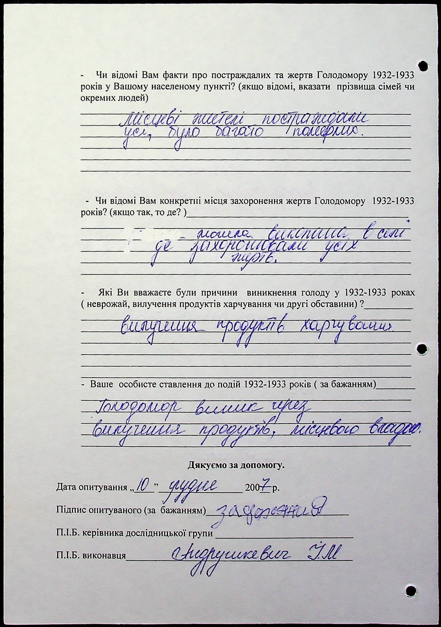 • • • • Справа № 20 “Свідчення очевидців Голодомору 1932-1933 років, які проживають у Веселинівському районі, з прізвищами на літери А–К”