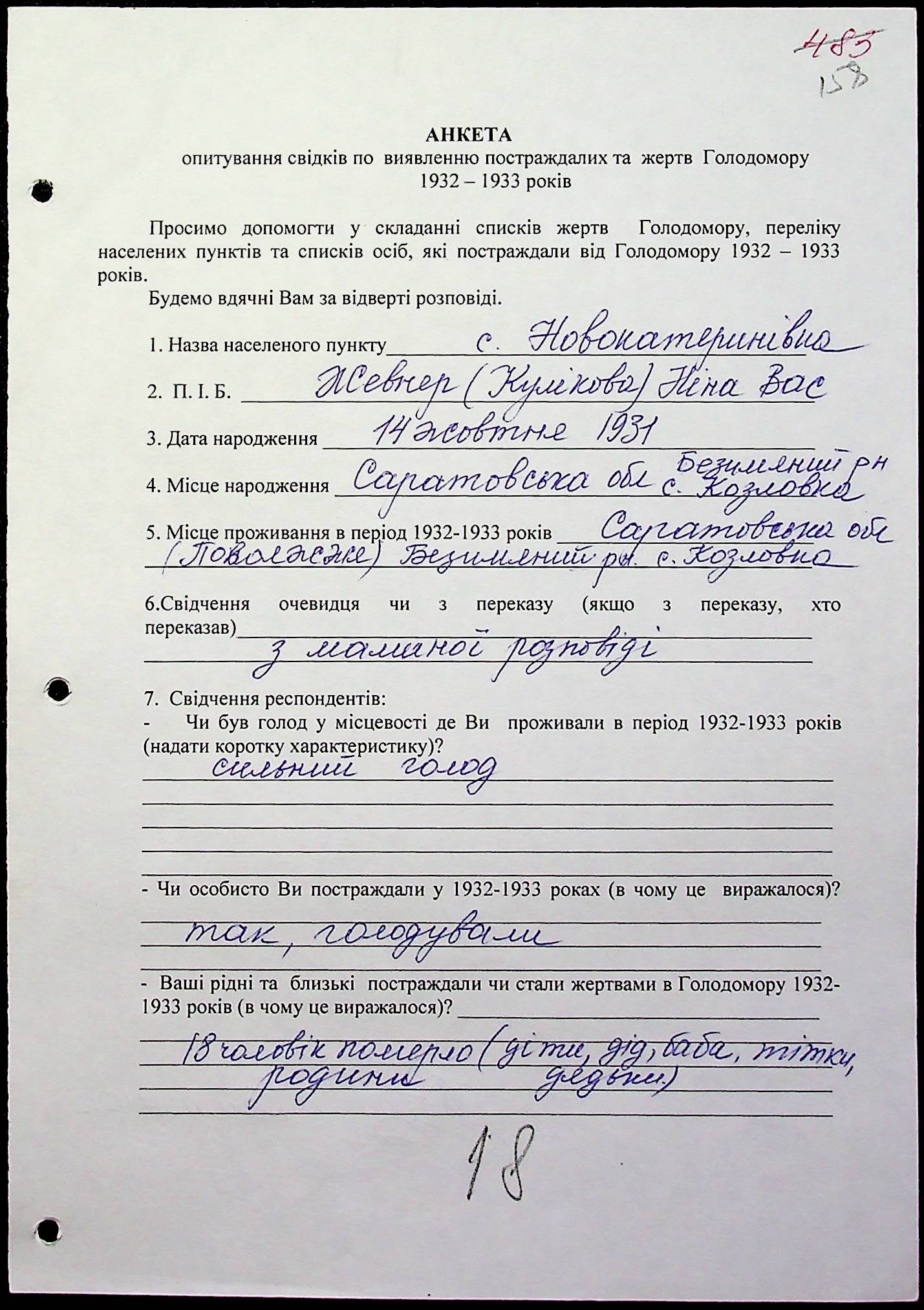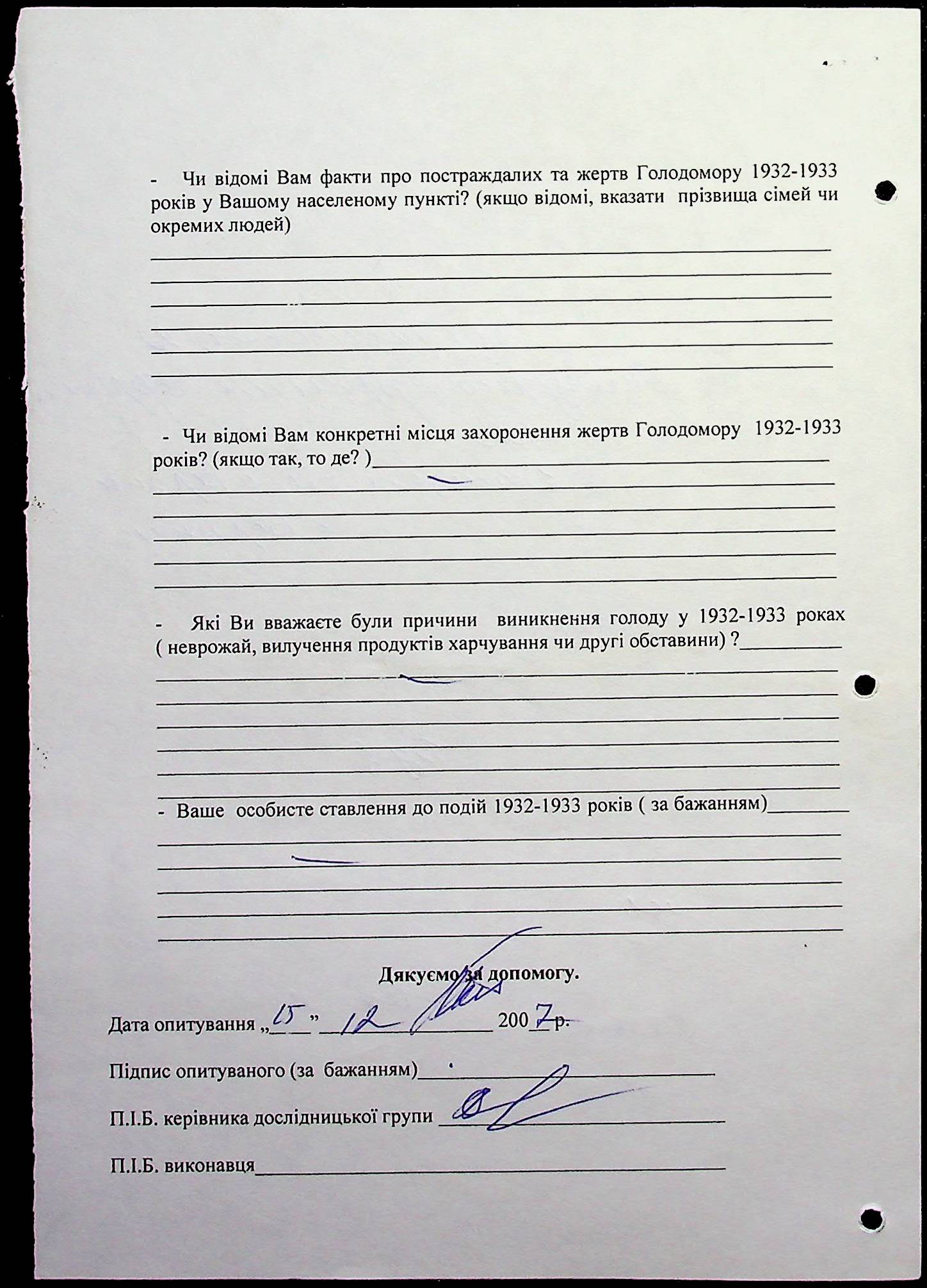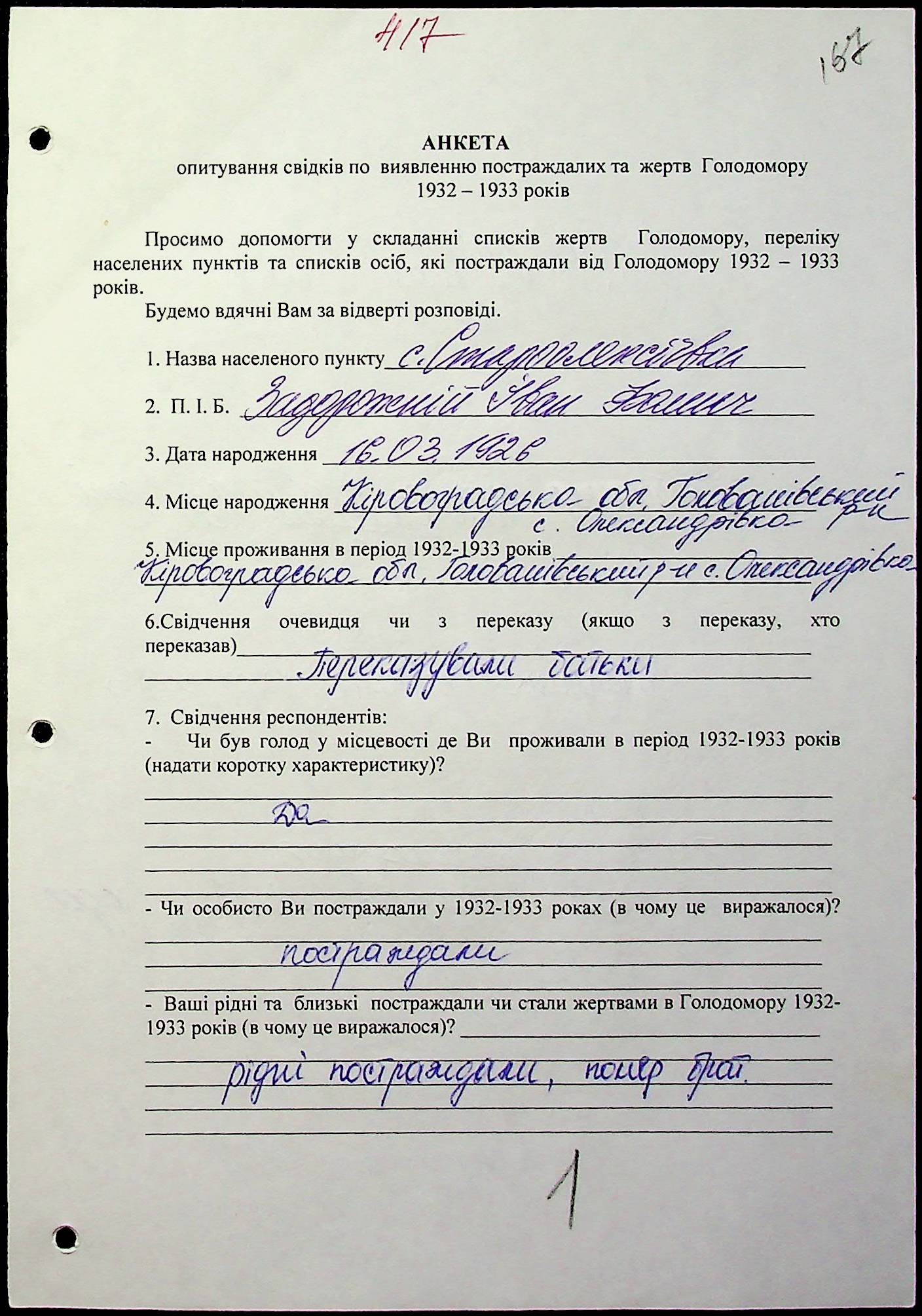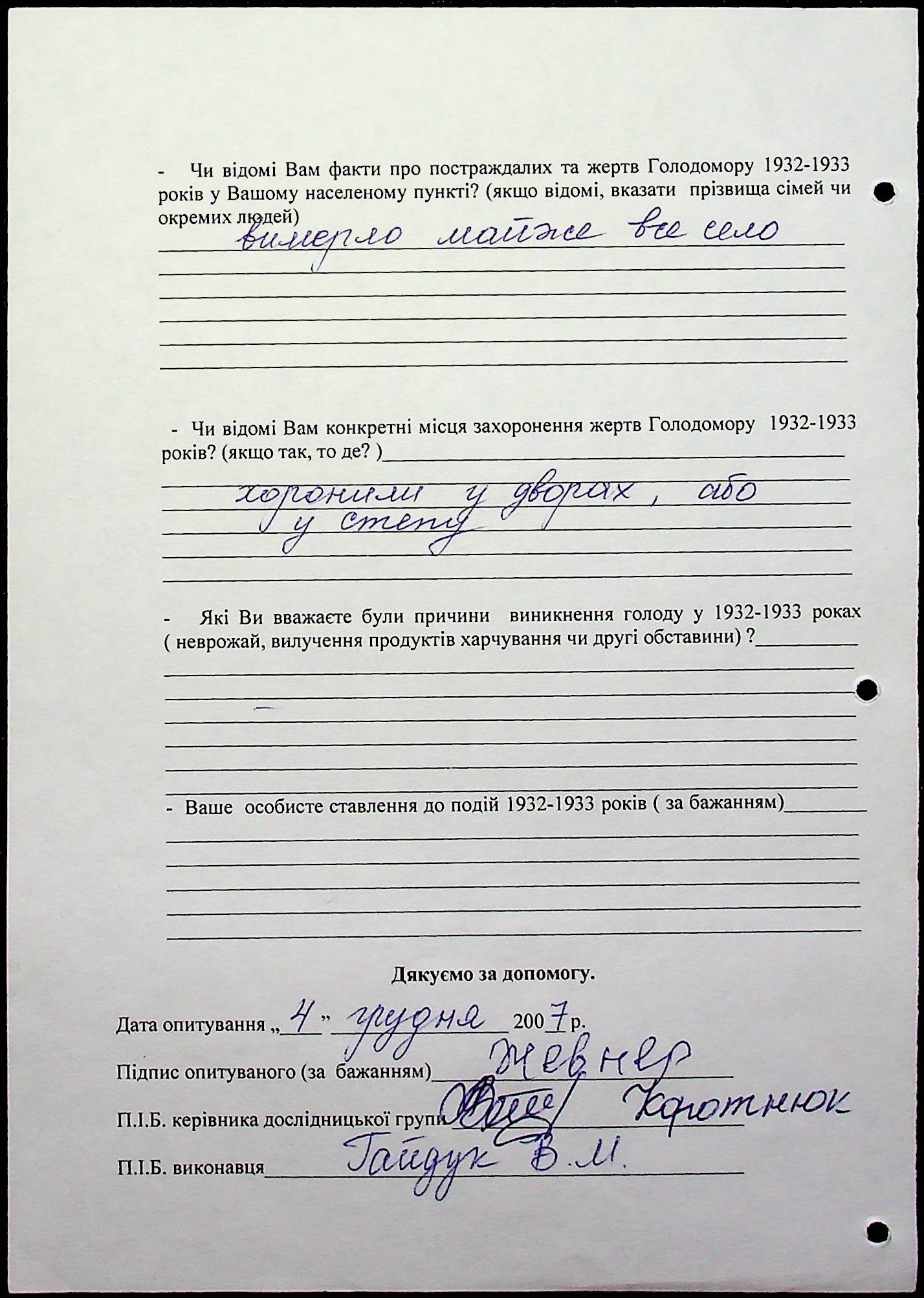 • • • • Справа № 20 “Свідчення очевидців Голодомору 1932-1933 років, які проживають у Веселинівському районі, з прізвищами на літери А–К”