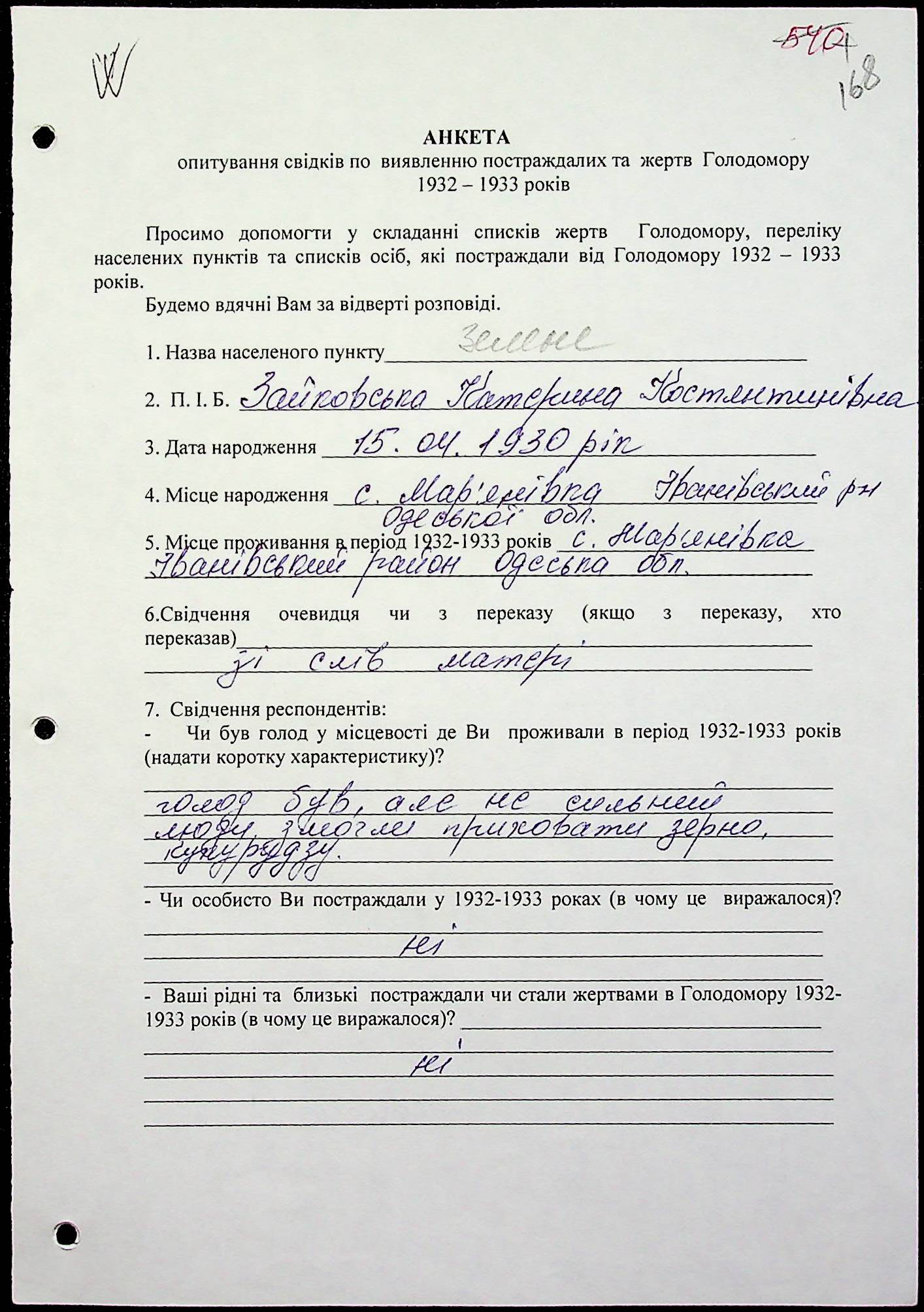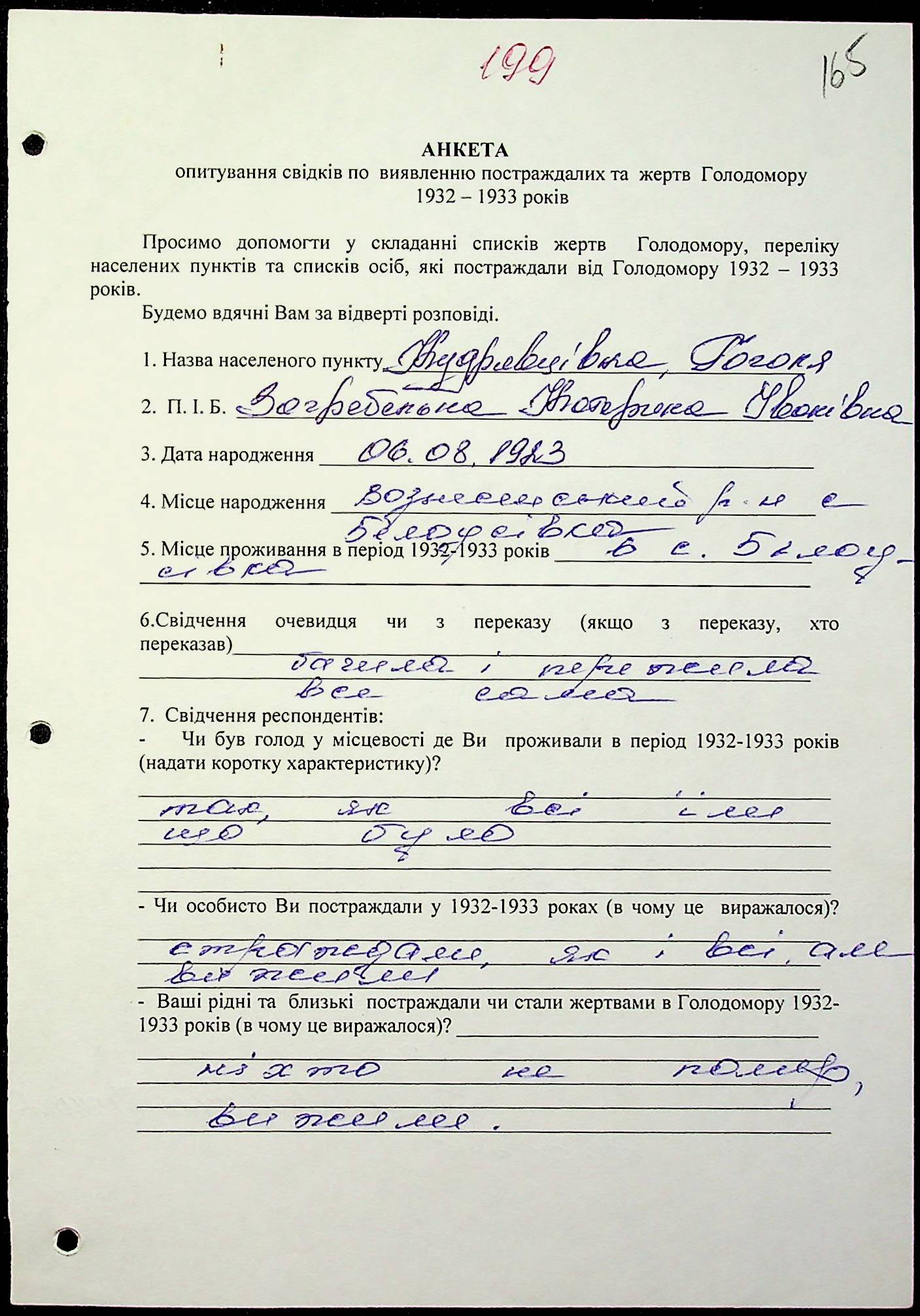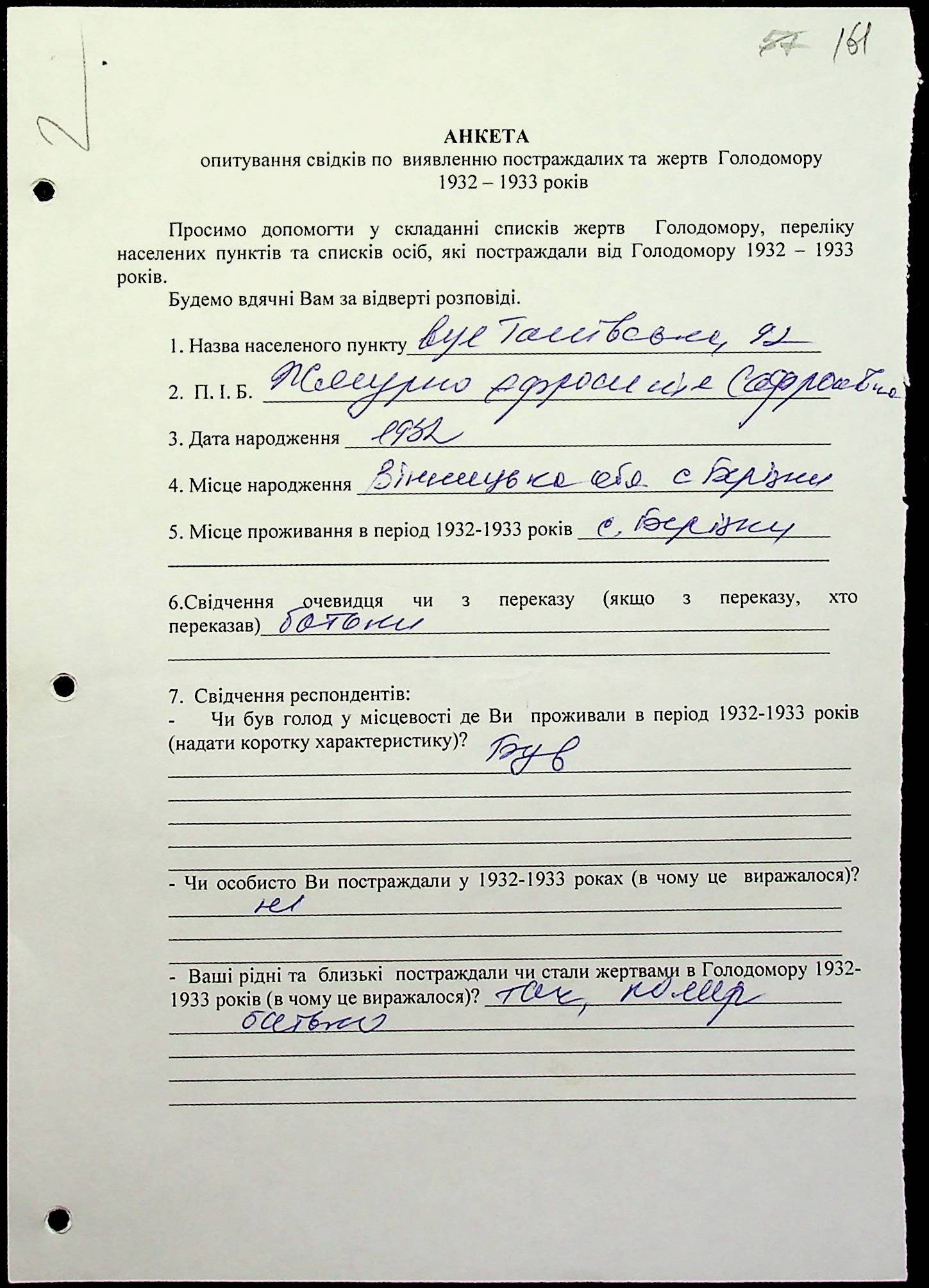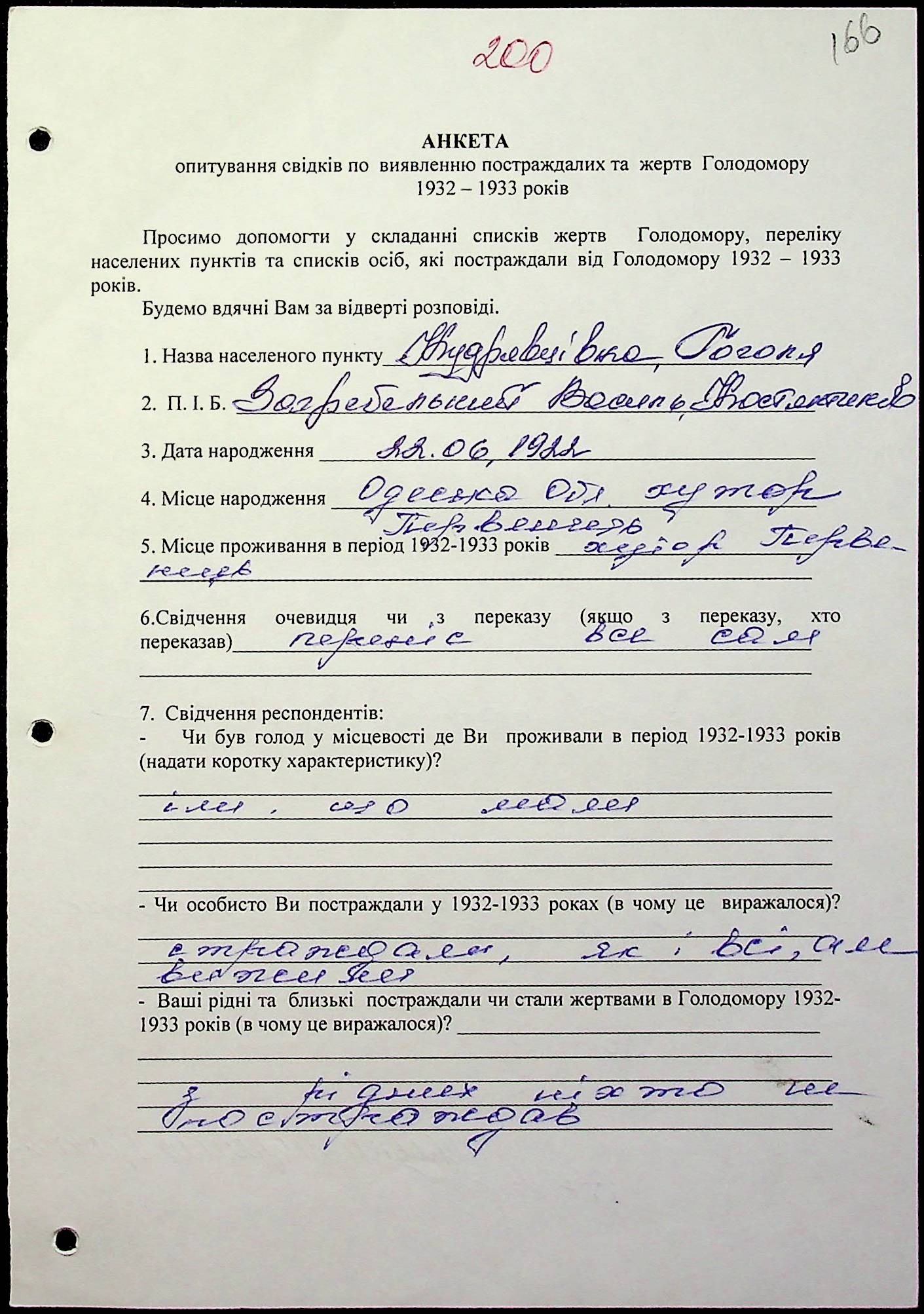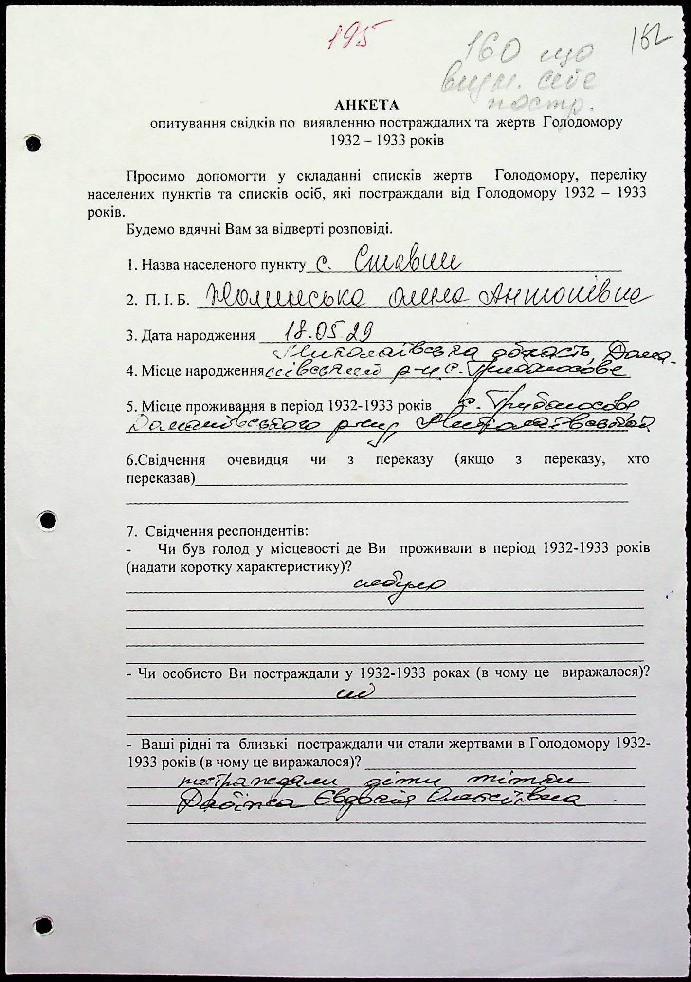 ◦ ◦ Фонд № 6146 “Колекція свідчень очевидців Голодомору 1932-1933 рр., нині проживаючих у Миколаївській області”