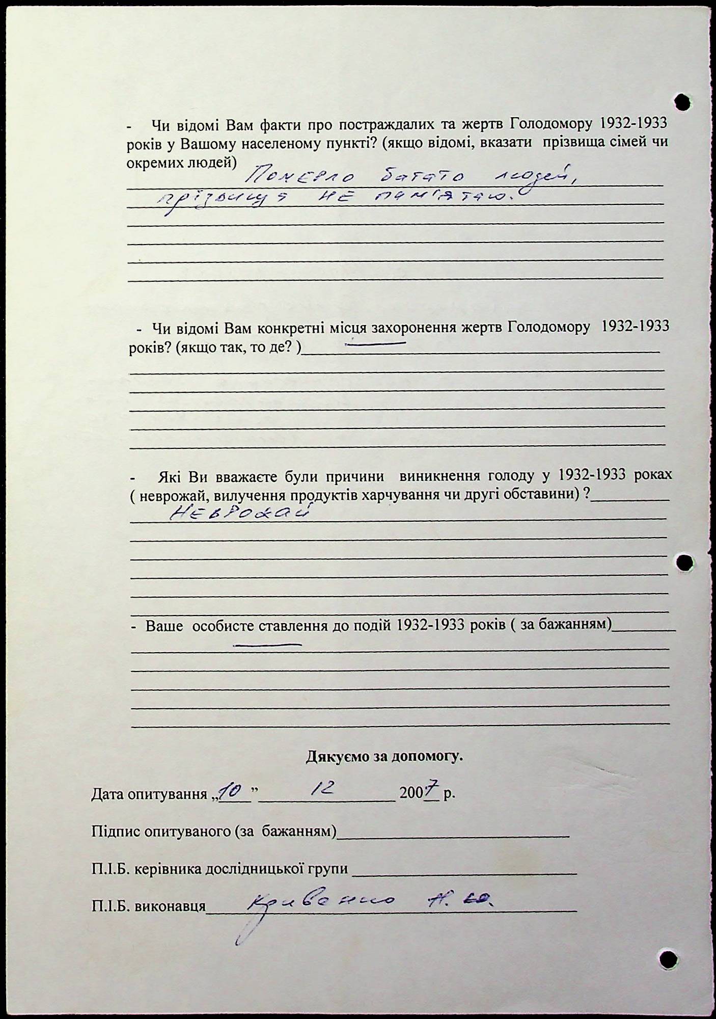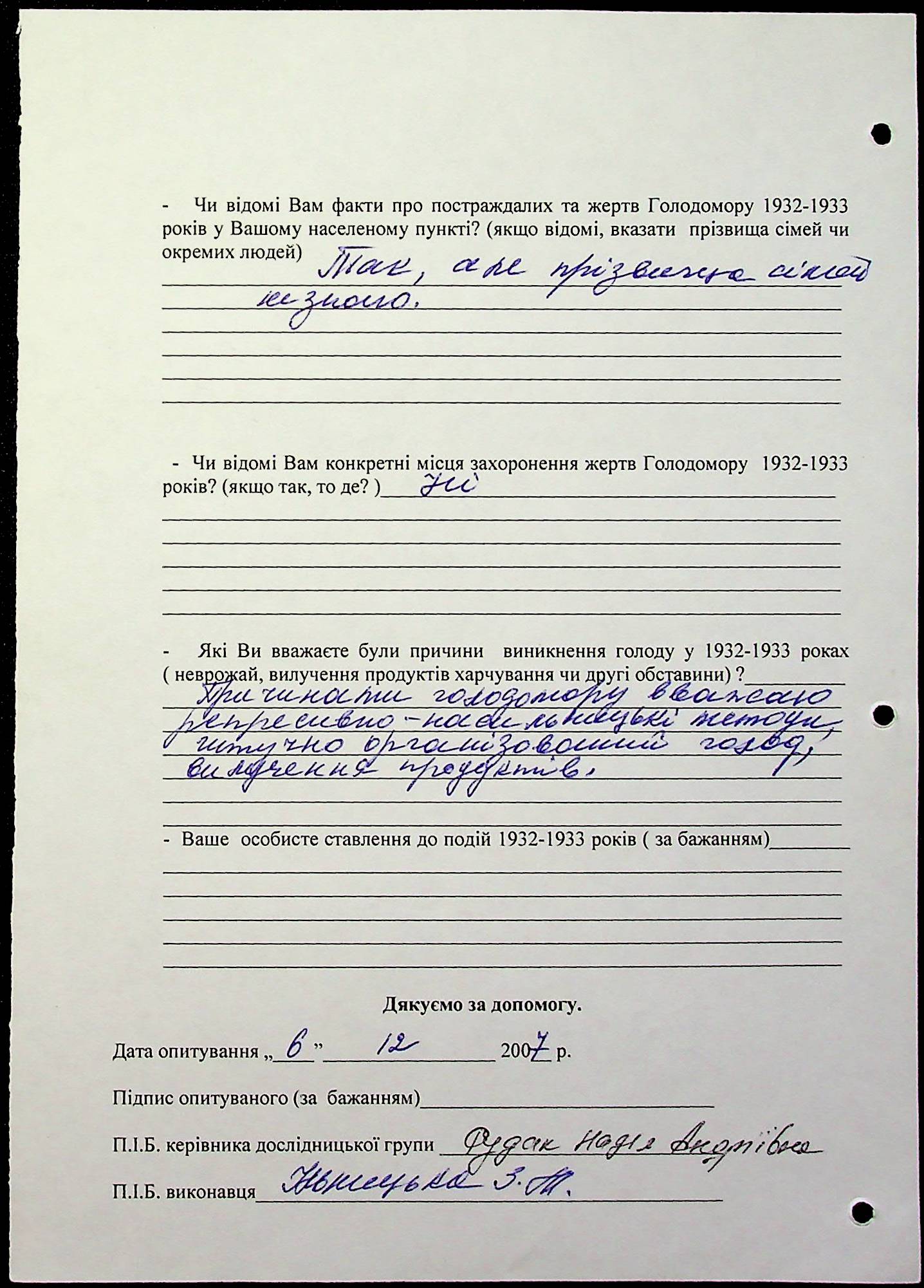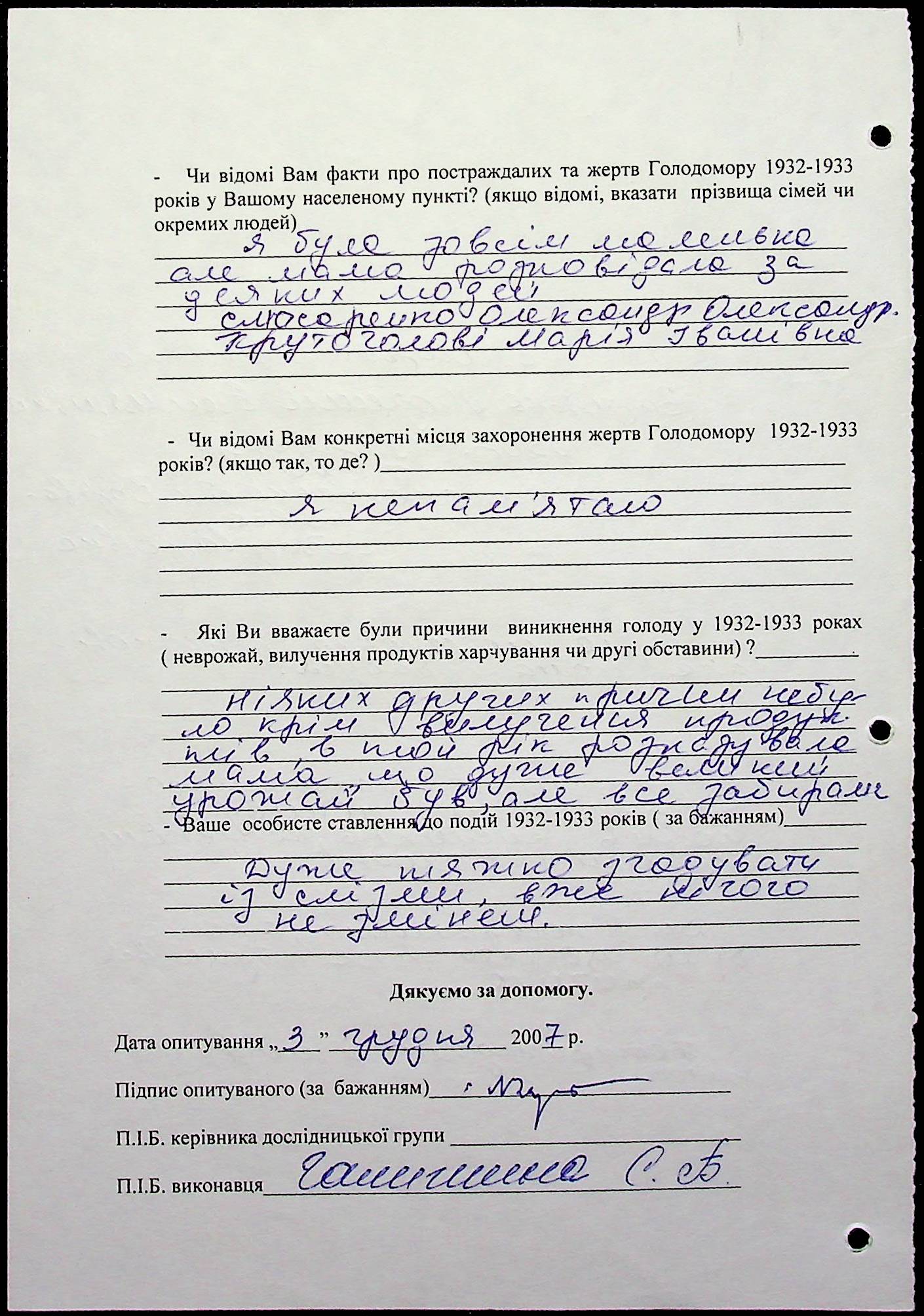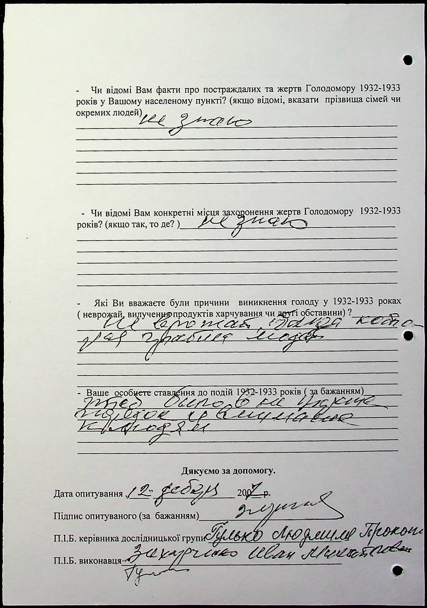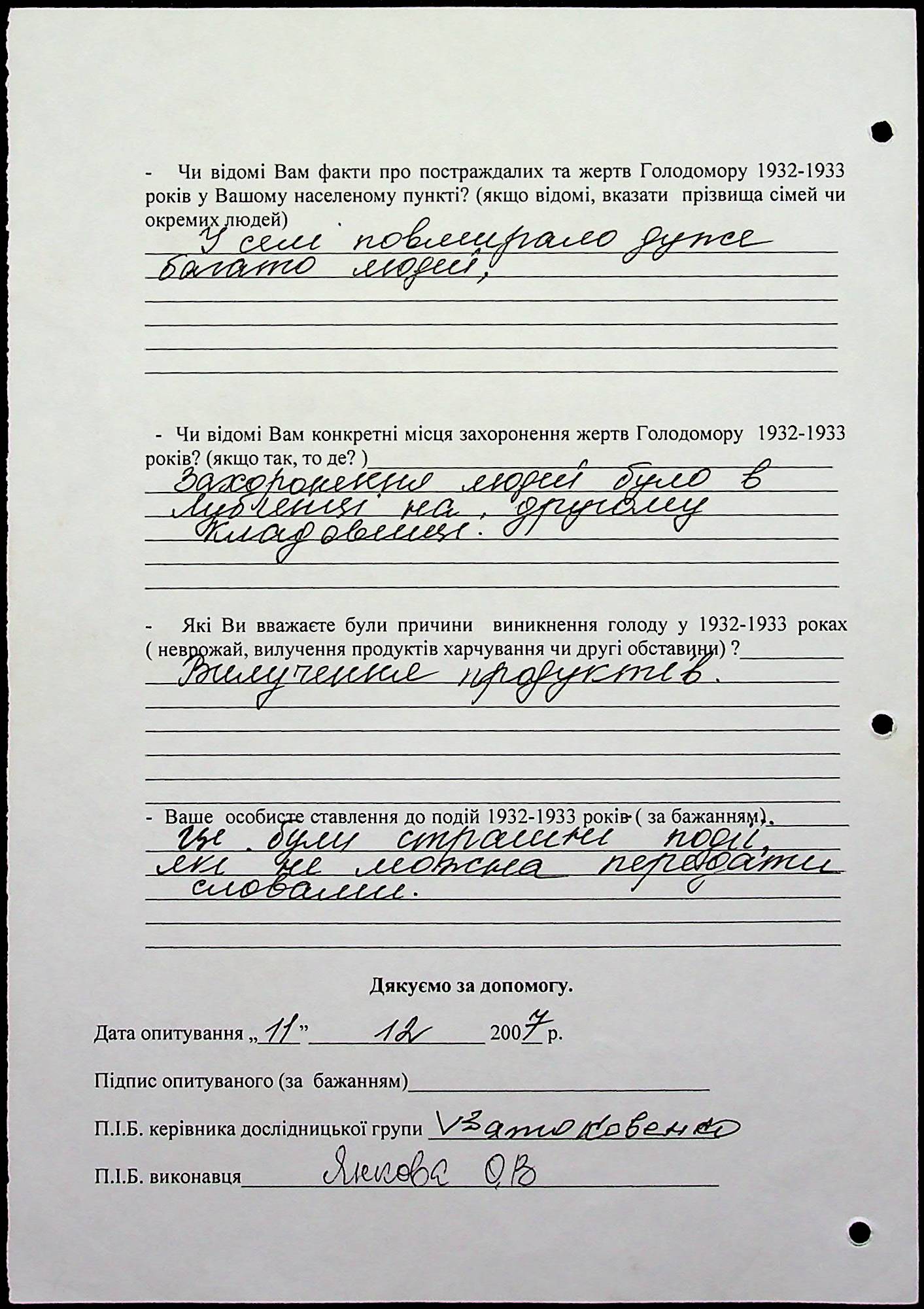 • • • • Справа № 20 “Свідчення очевидців Голодомору 1932-1933 років, які проживають у Веселинівському районі, з прізвищами на літери А–К”