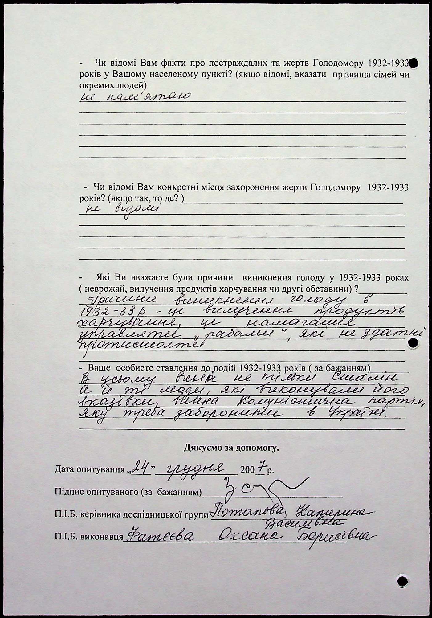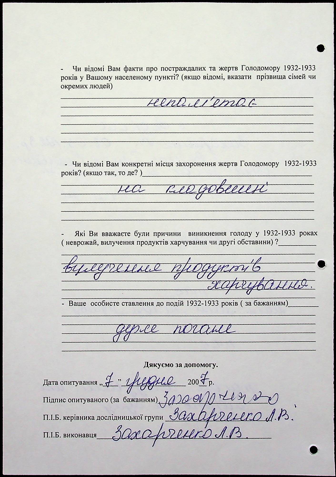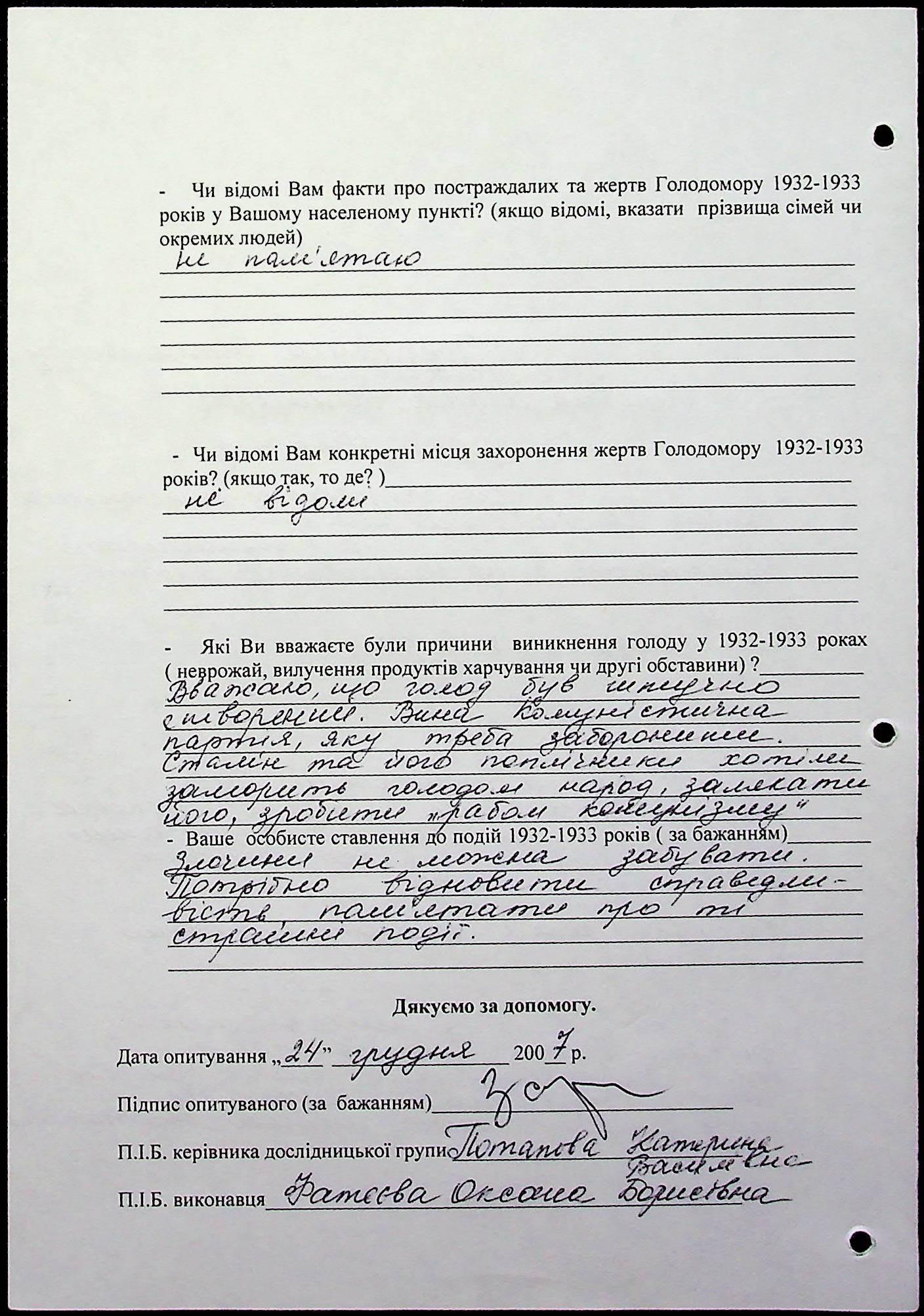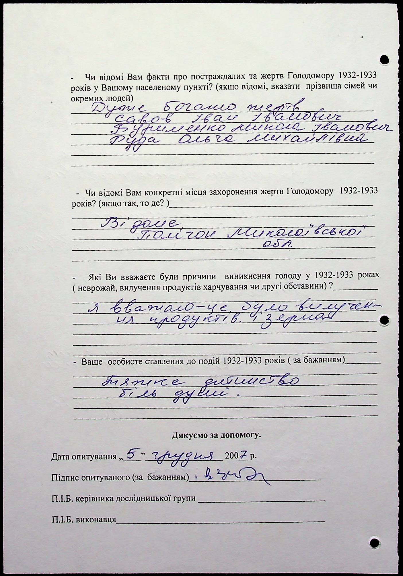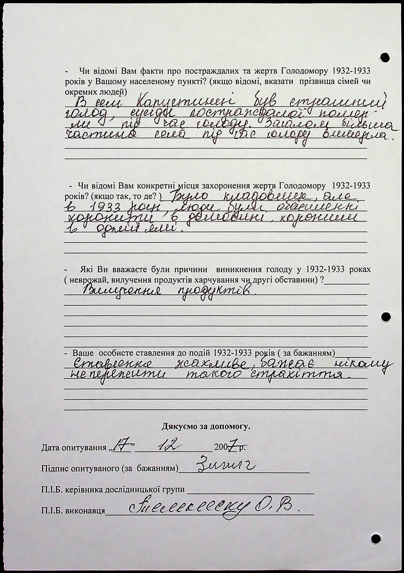 • • • • Справа № 20 “Свідчення очевидців Голодомору 1932-1933 років, які проживають у Веселинівському районі, з прізвищами на літери А–К”