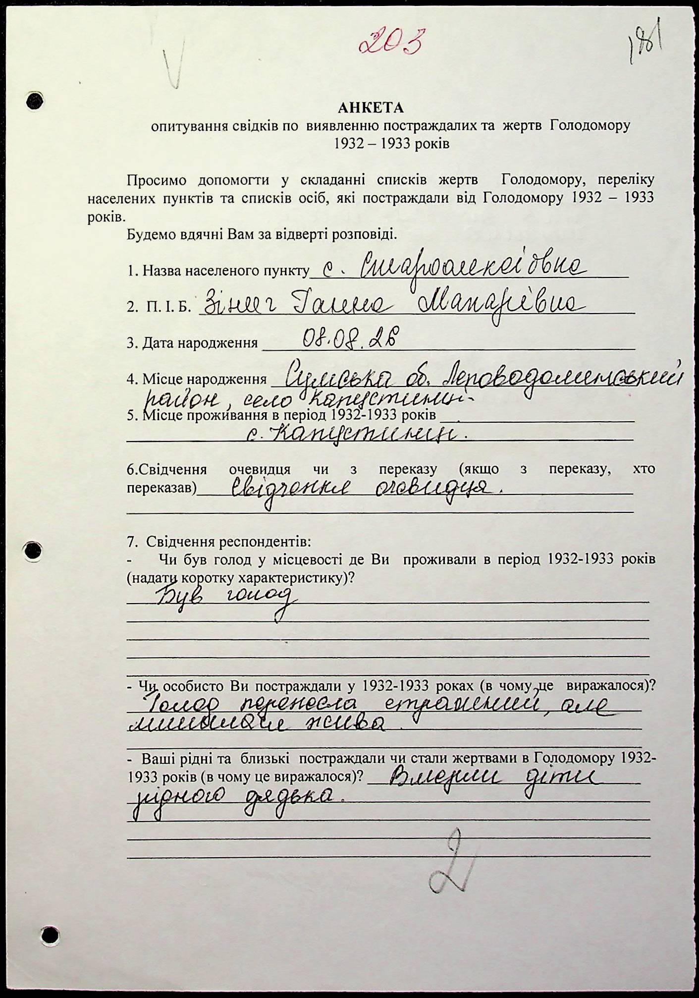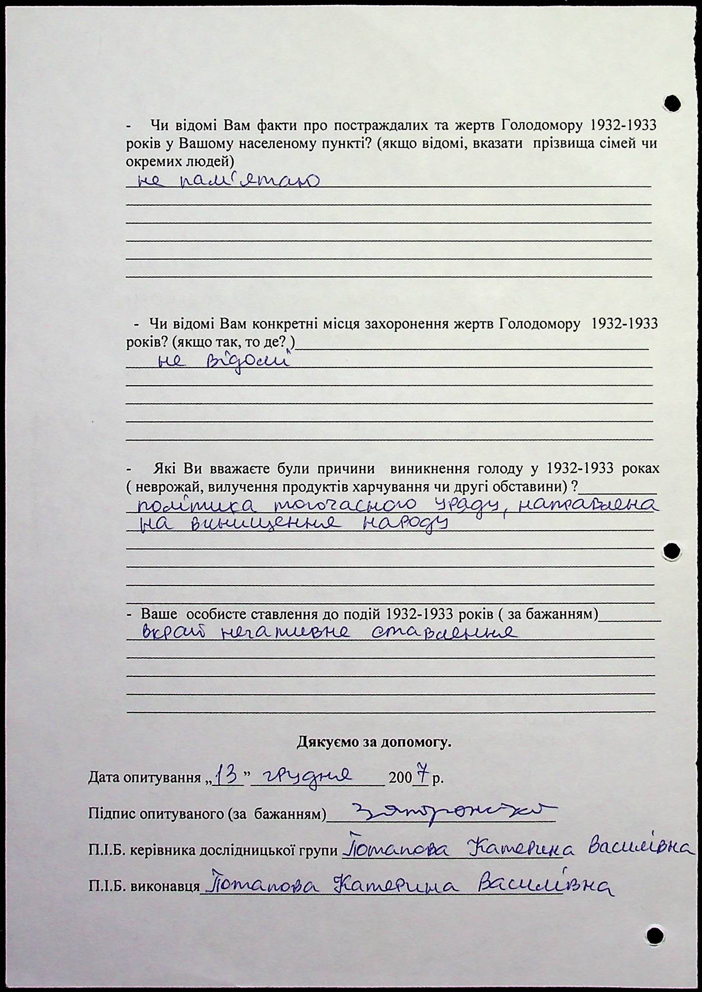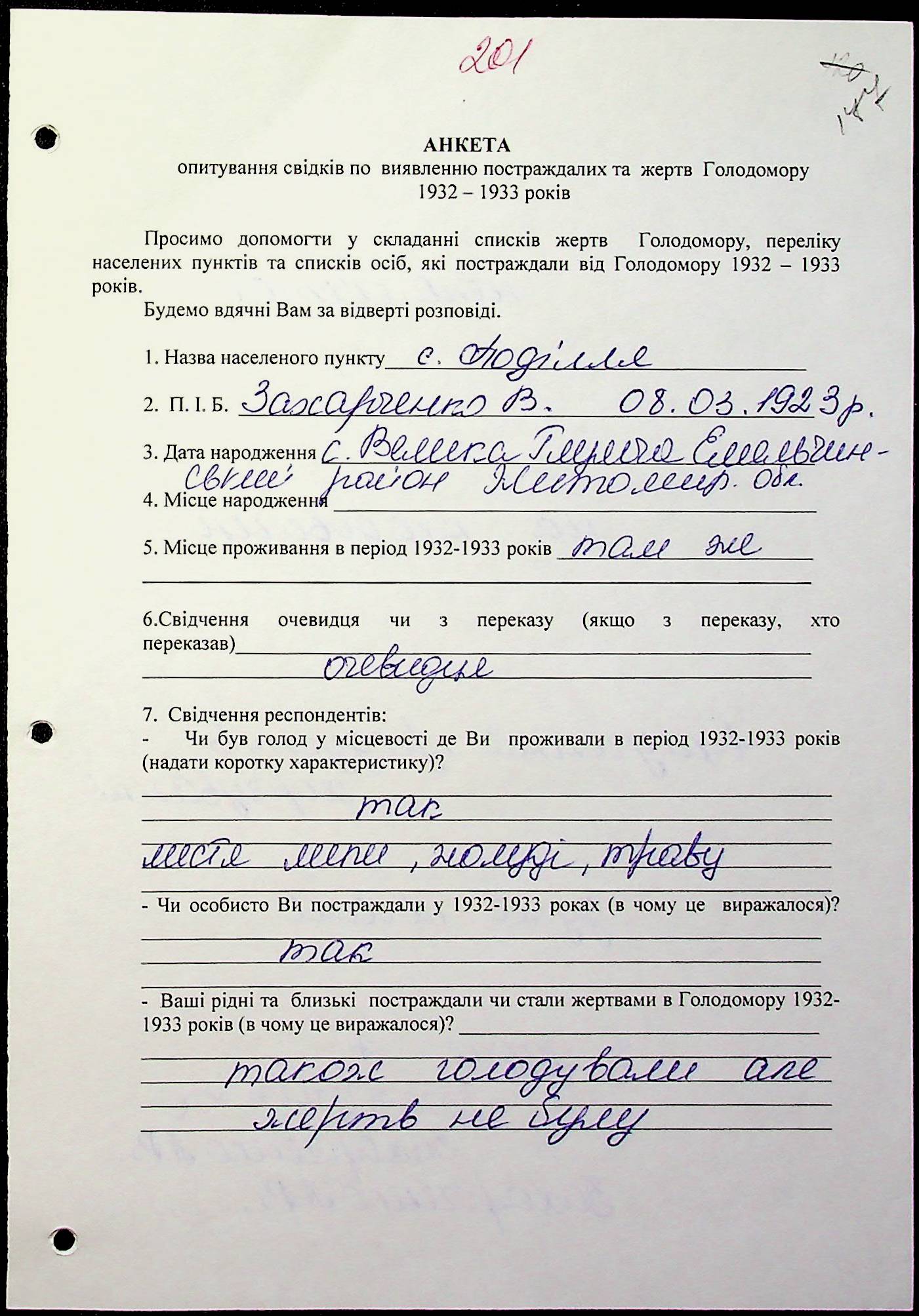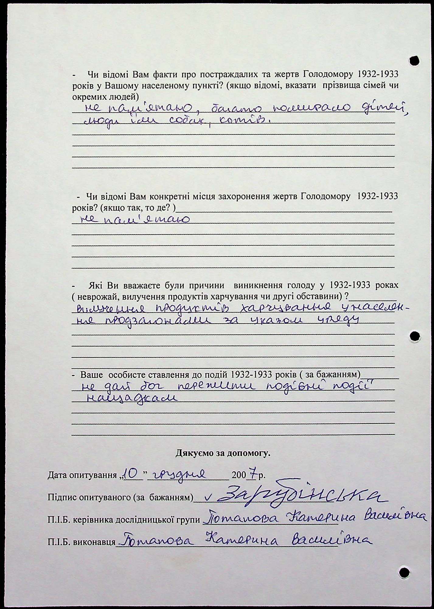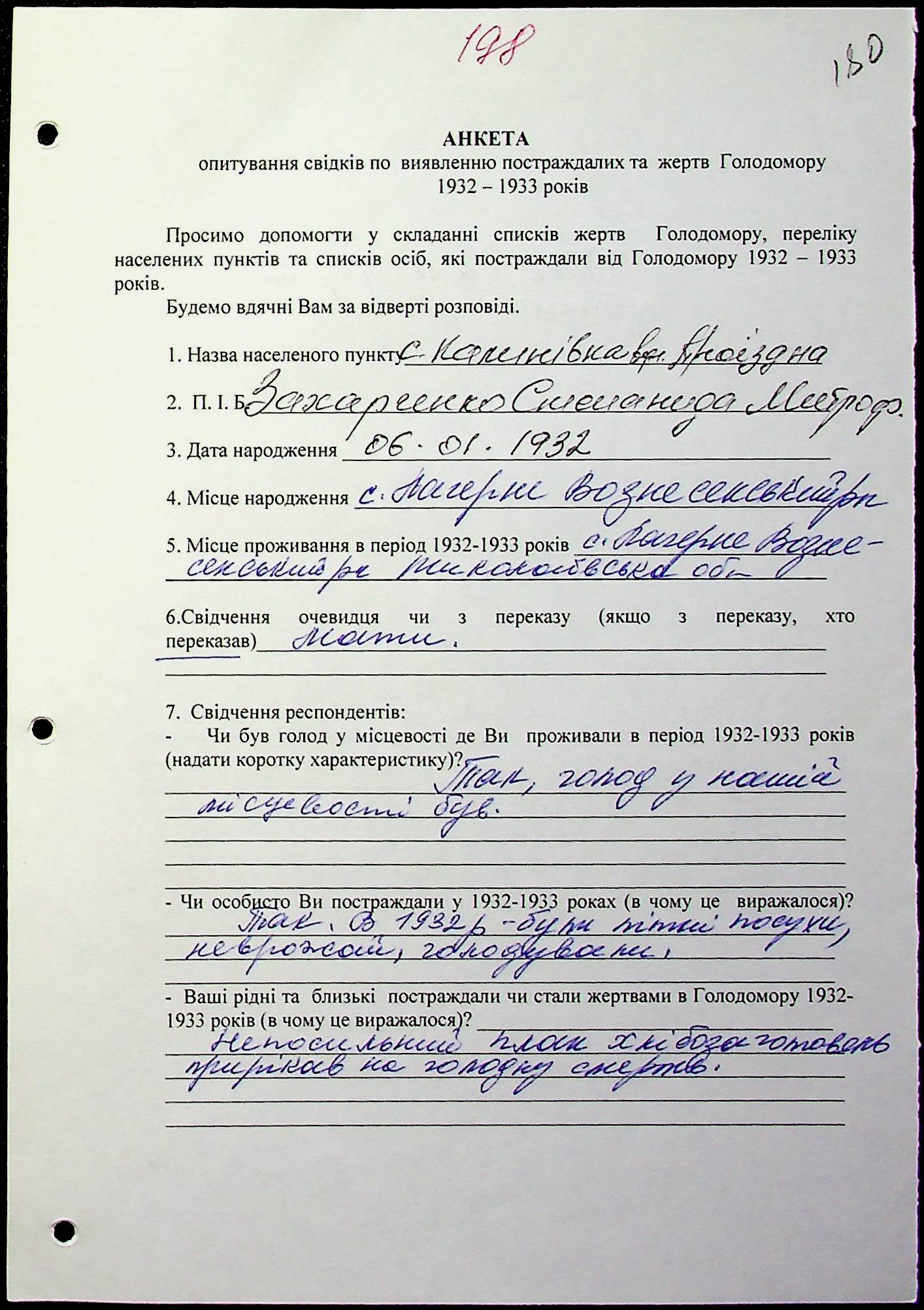 • • • • Справа № 20 “Свідчення очевидців Голодомору 1932-1933 років, які проживають у Веселинівському районі, з прізвищами на літери А–К”